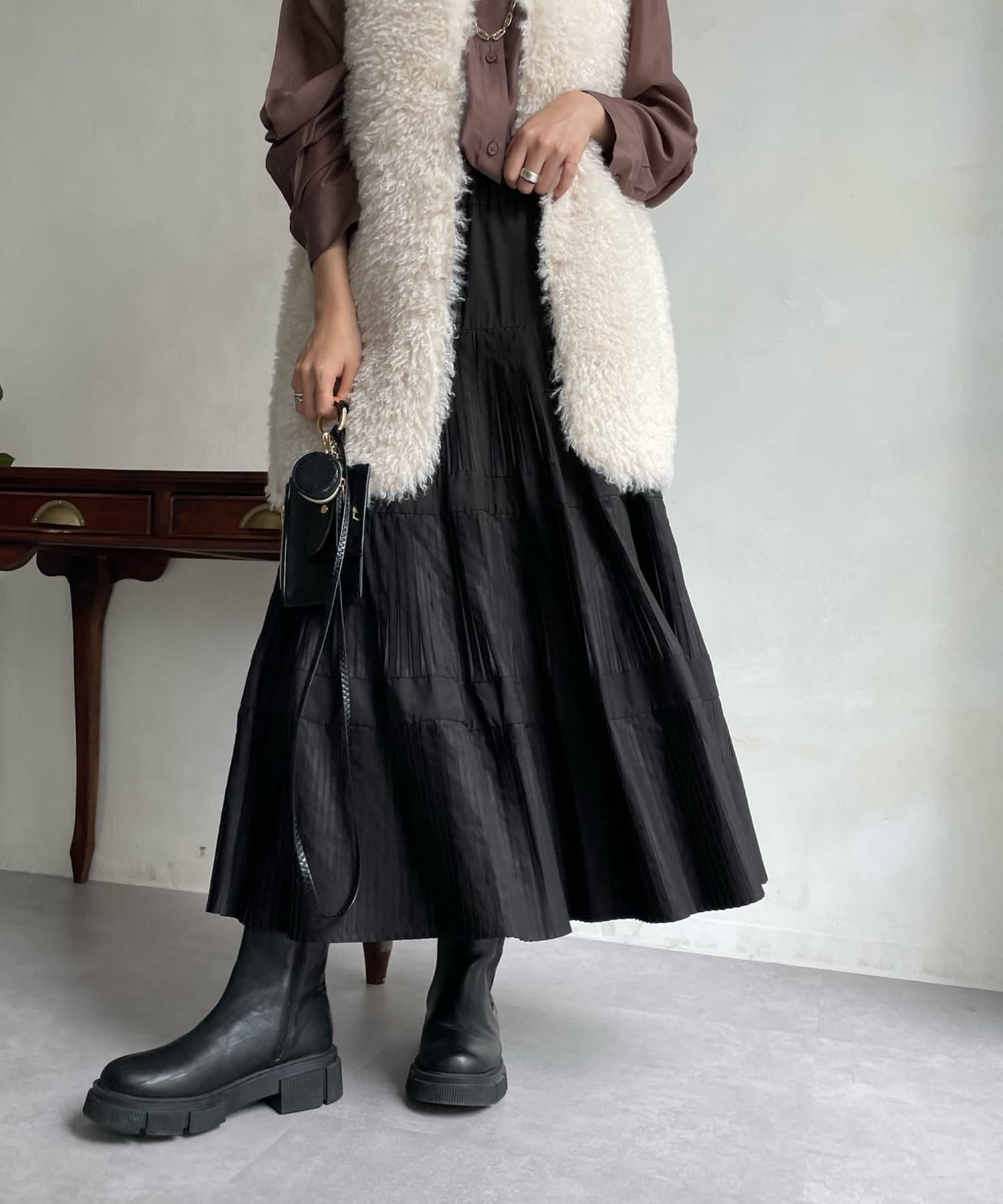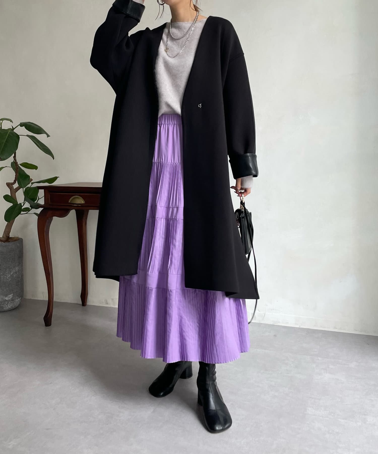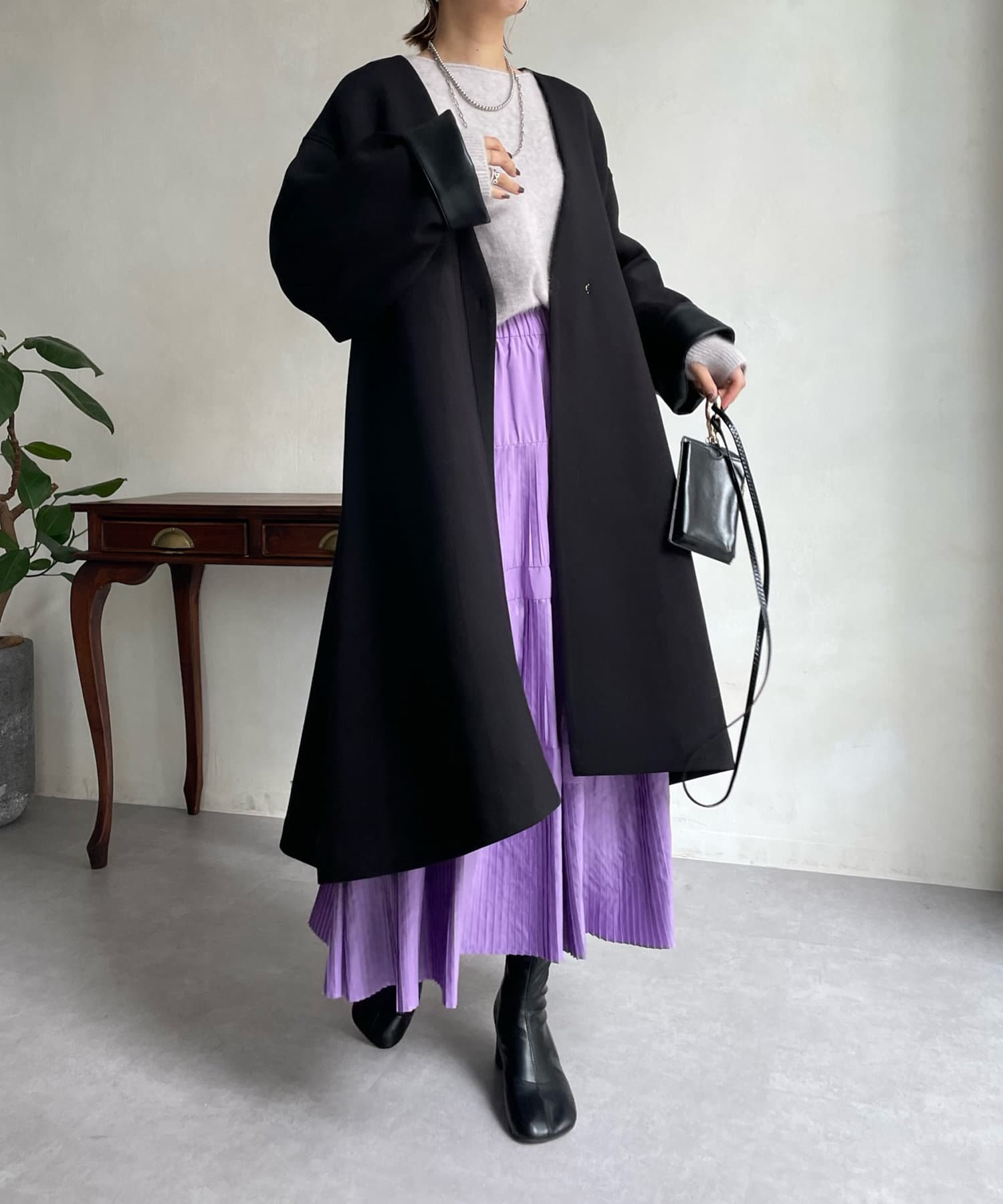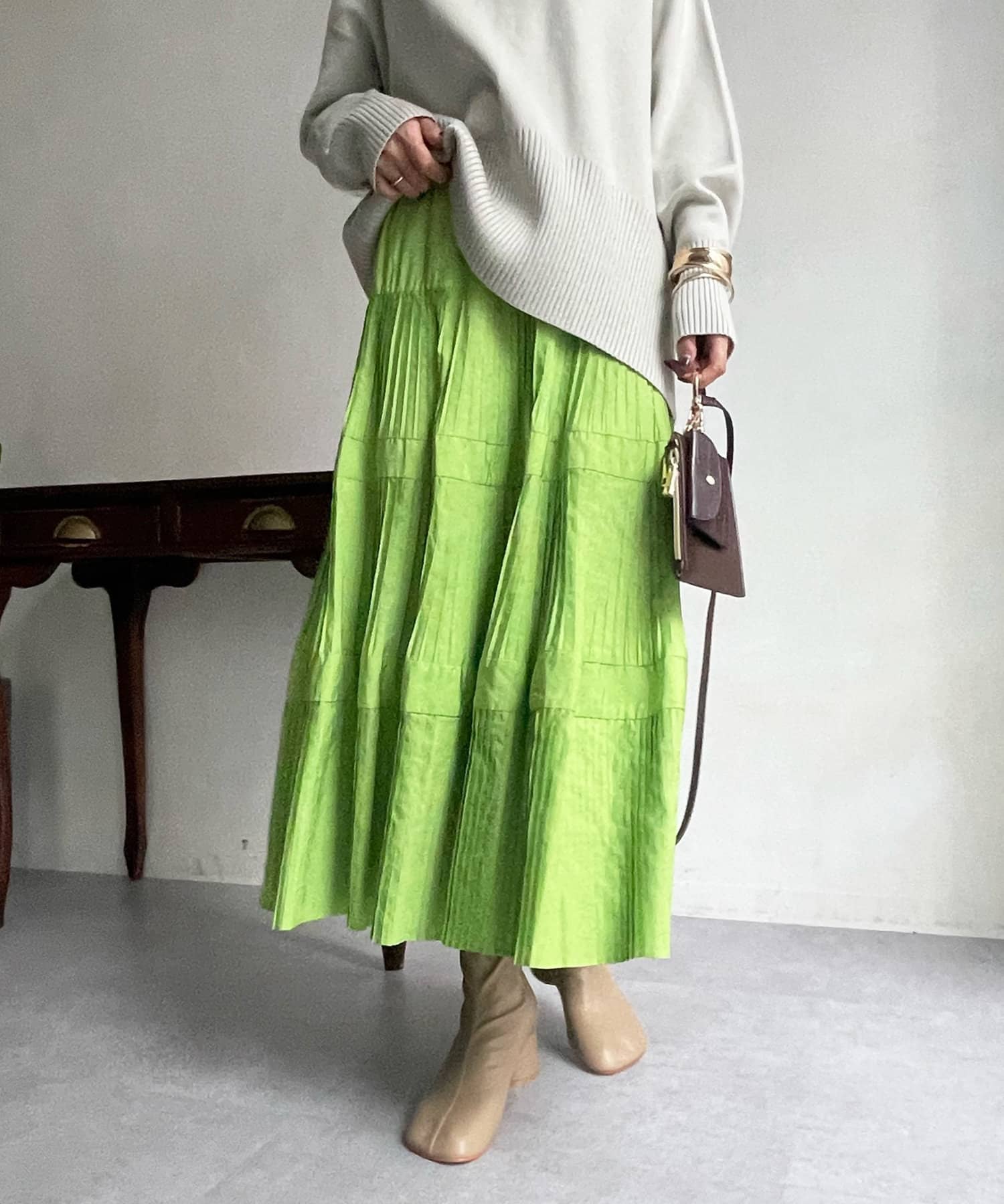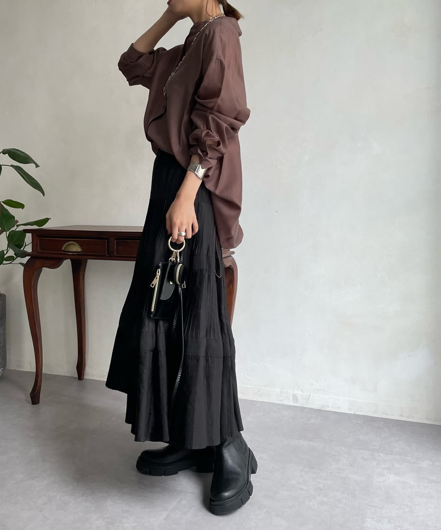 柔らかみのある生地と、3段プリーツが豊かな表情を演出します。