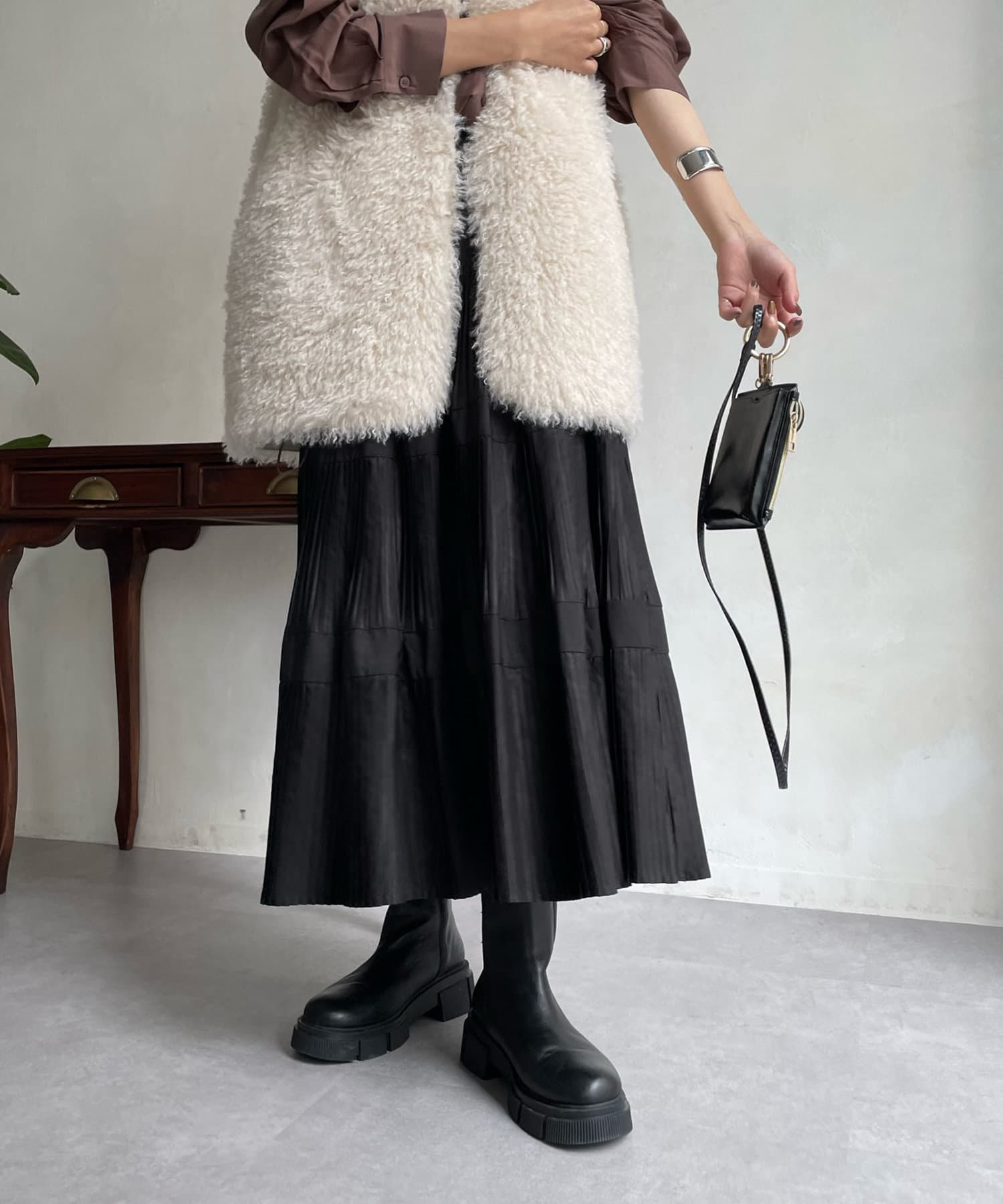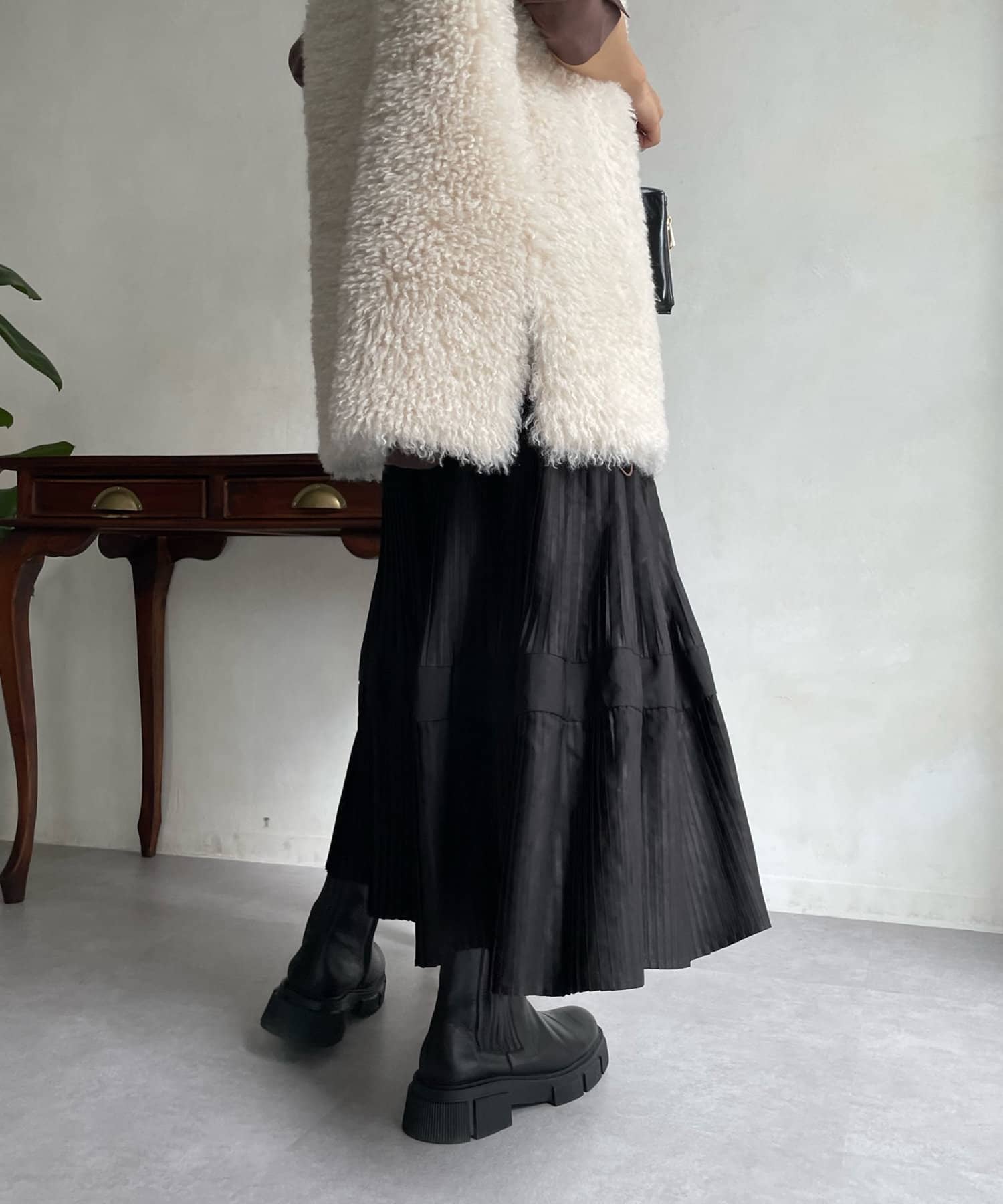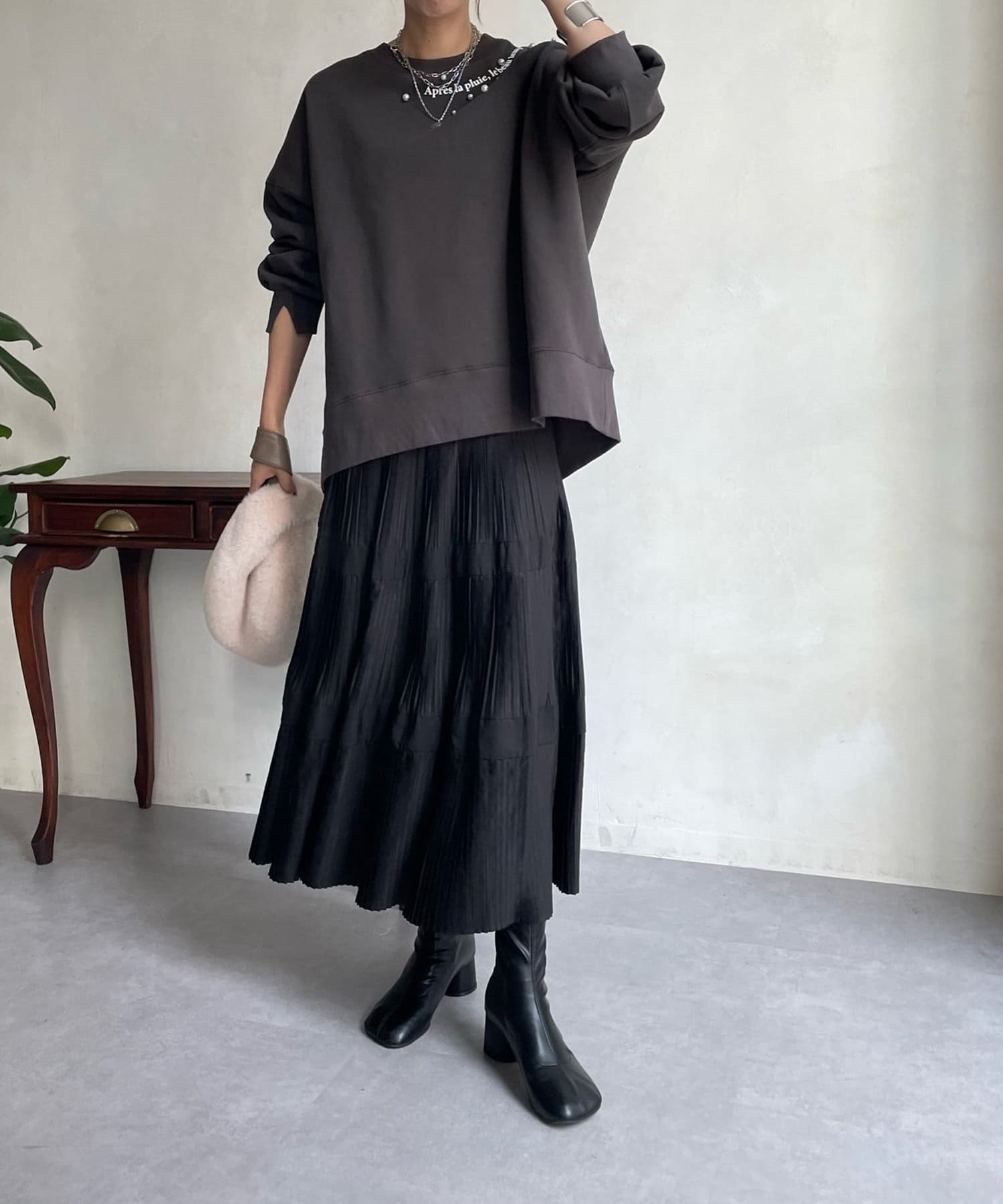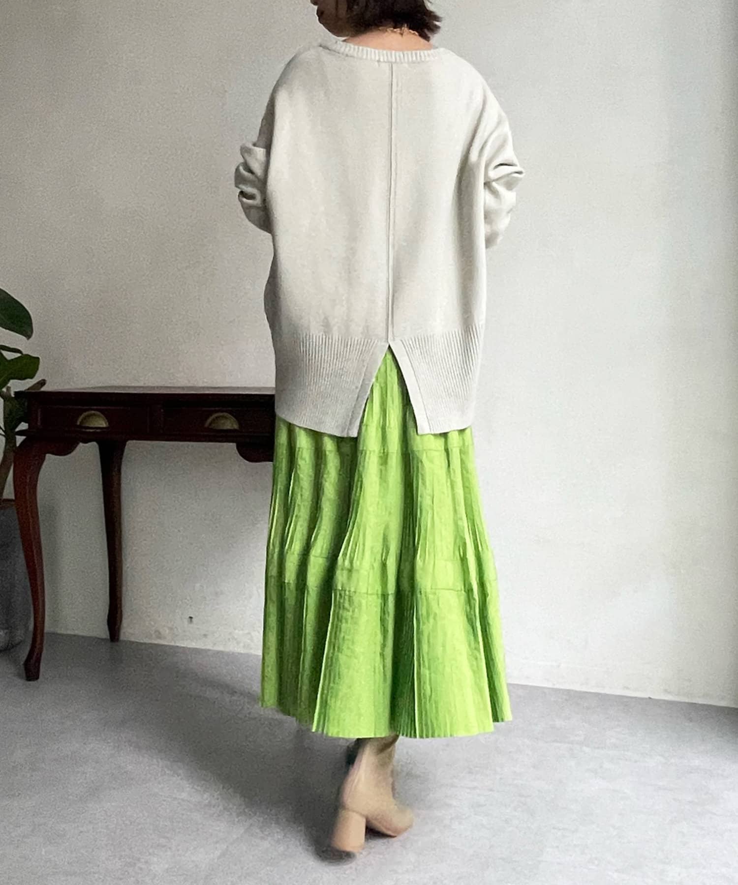 柔らかみのある生地と、3段プリーツが豊かな表情を演出します。