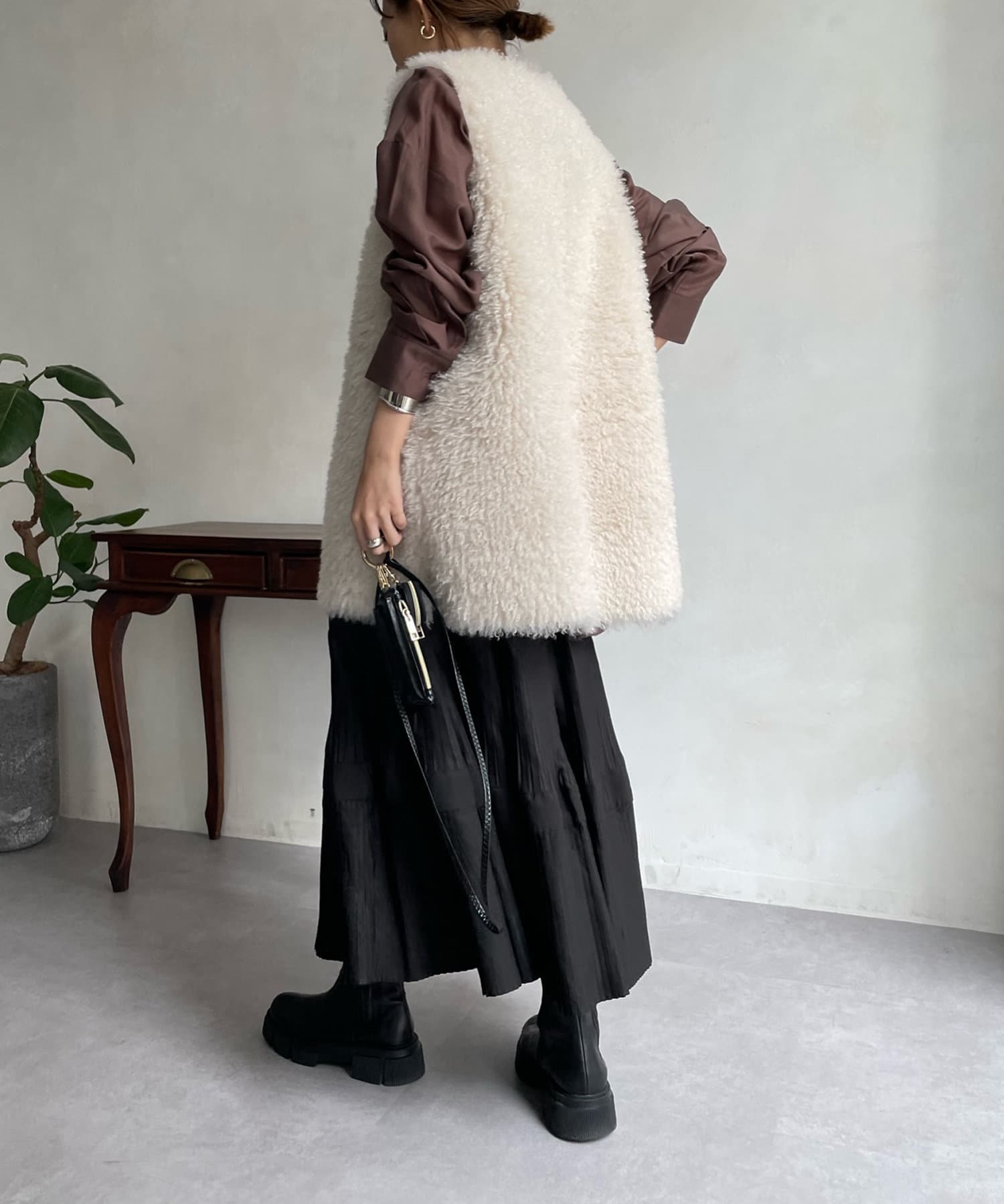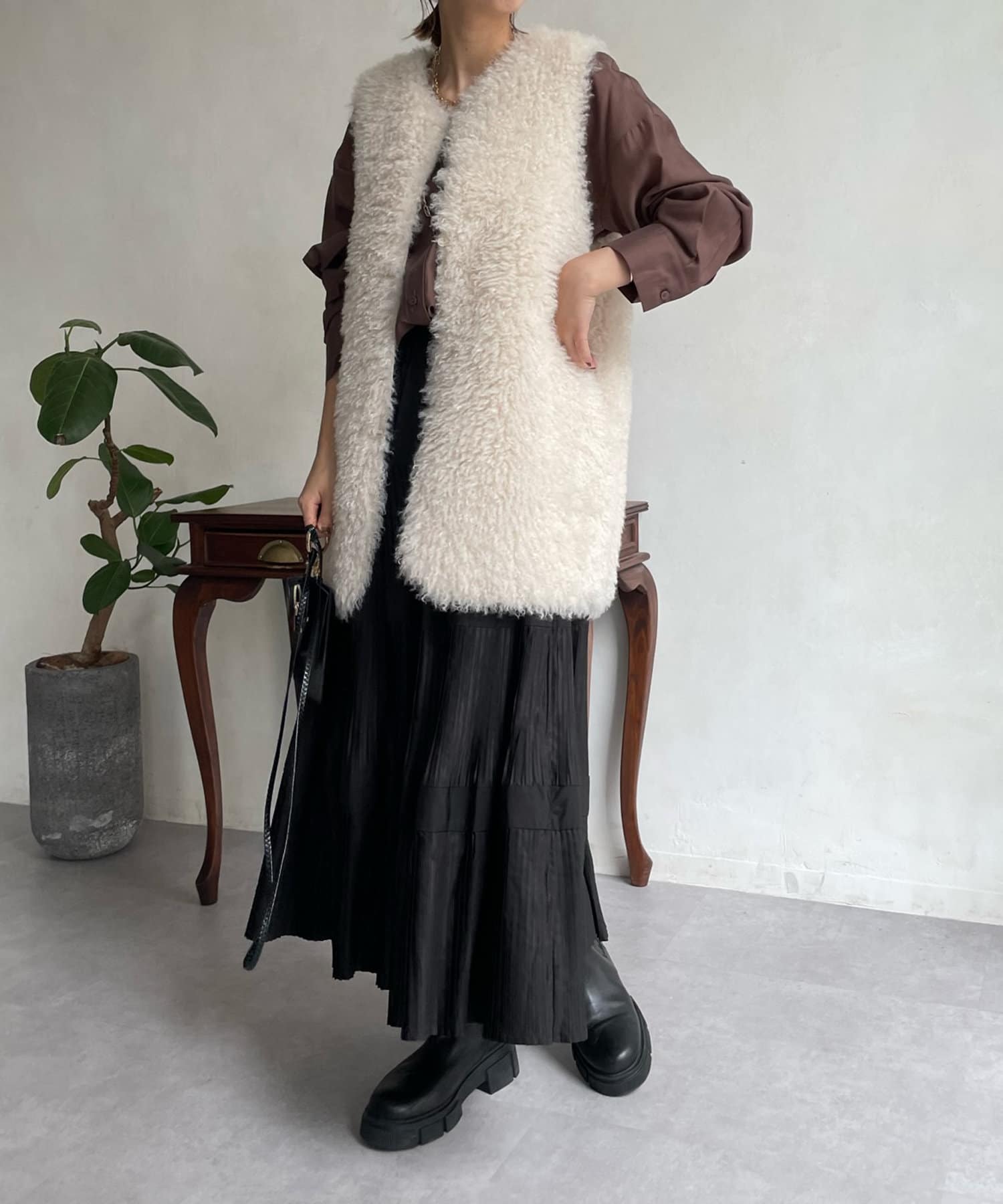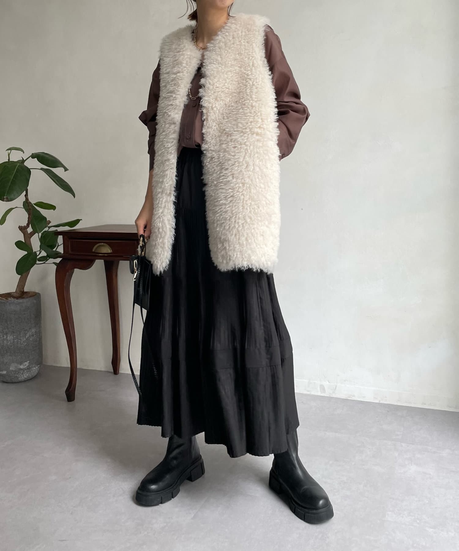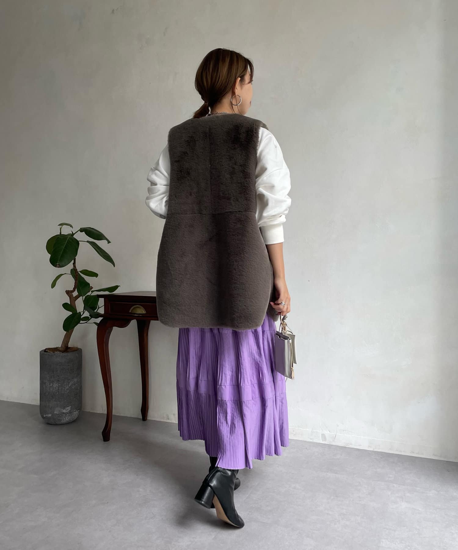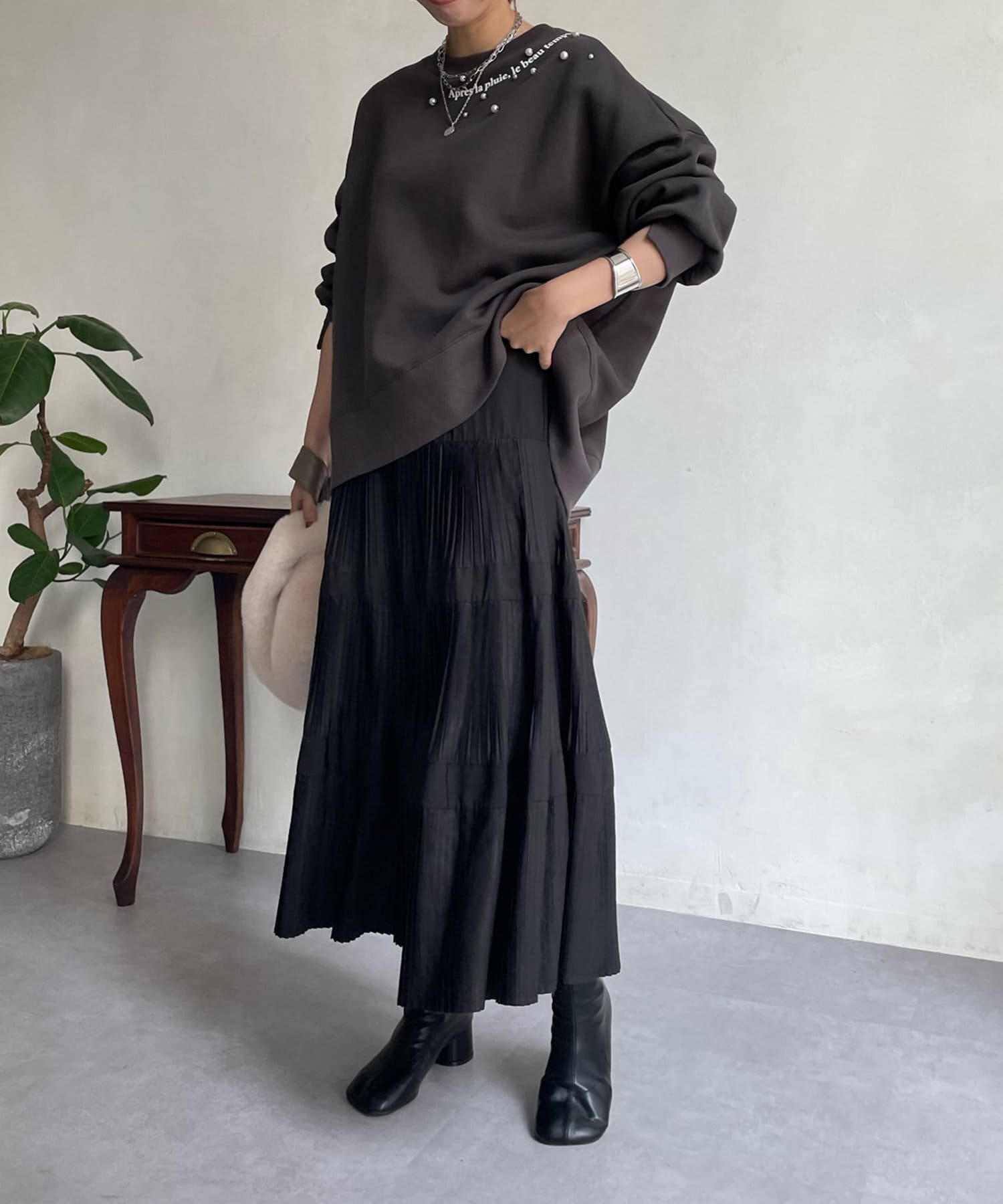柔らかみのある生地と、3段プリーツが豊かな表情を演出します。