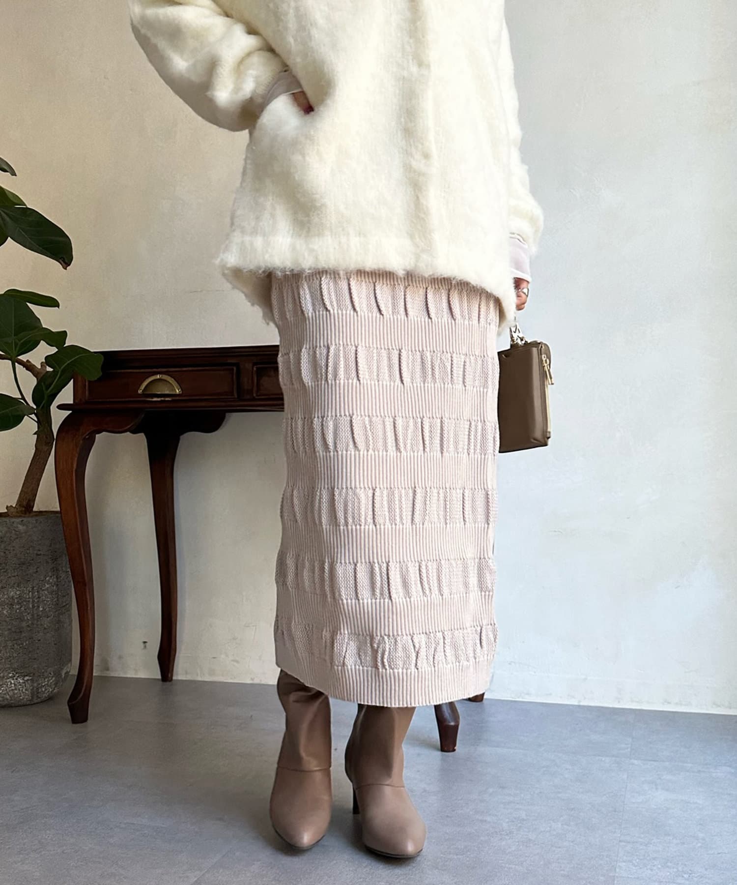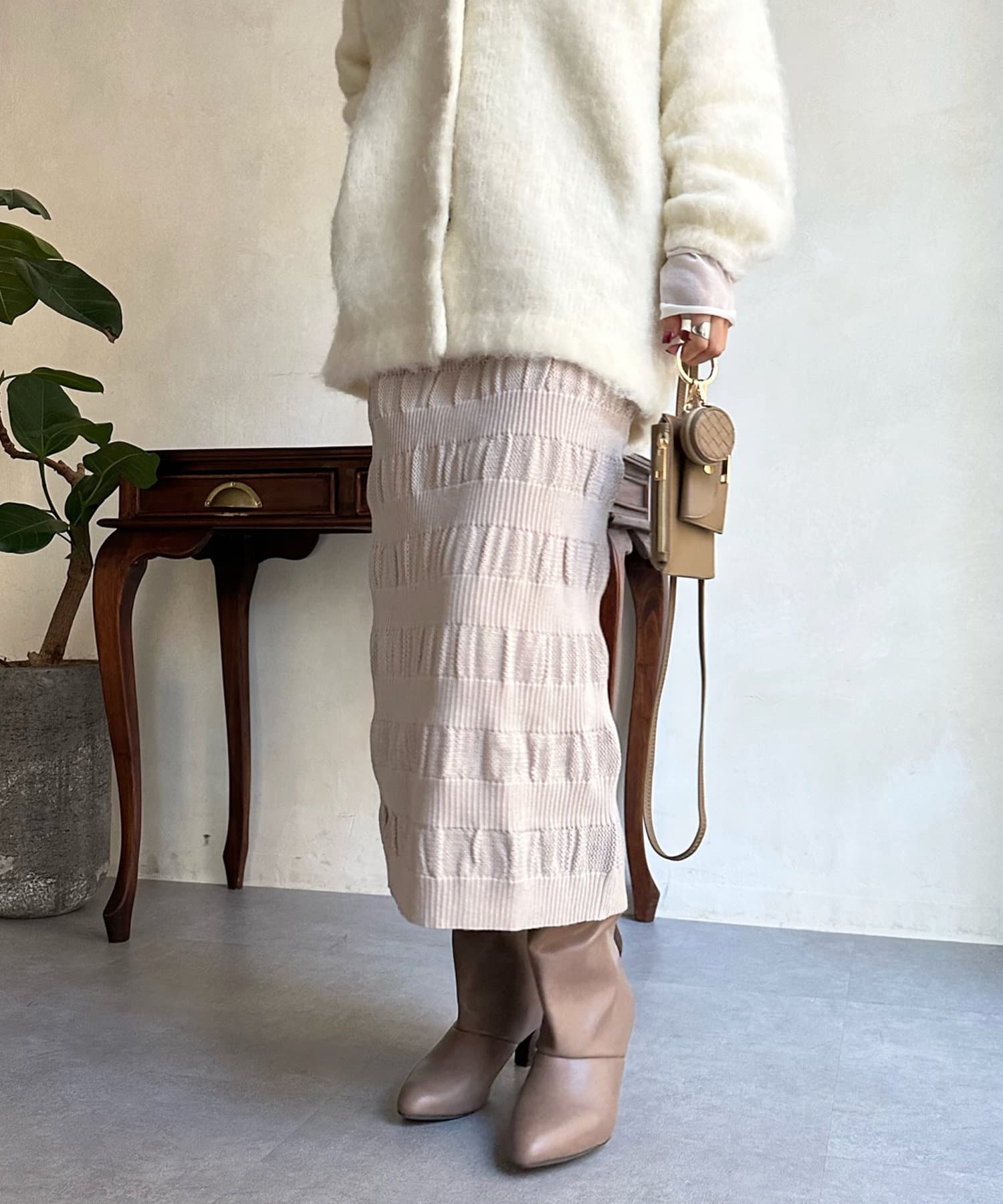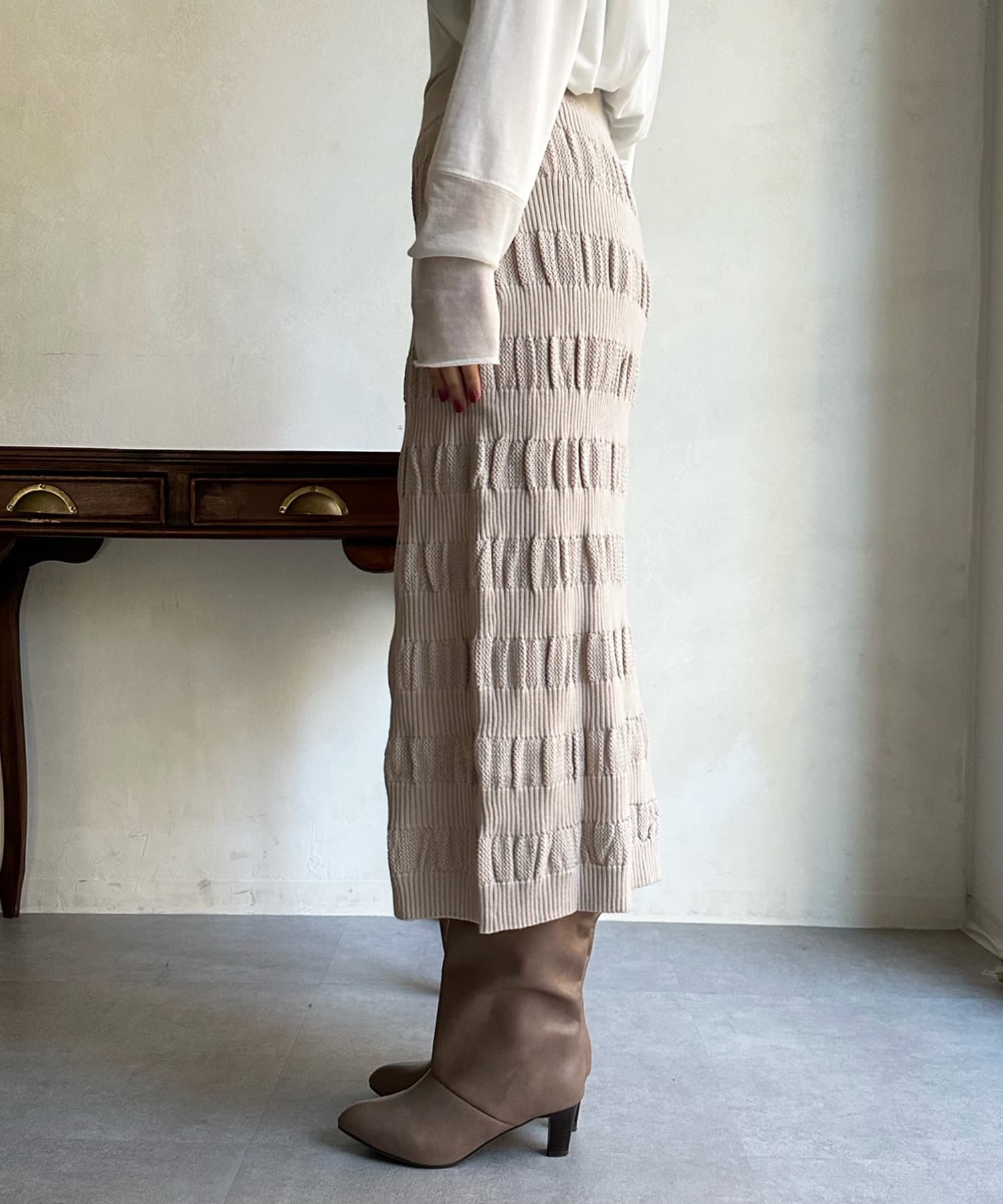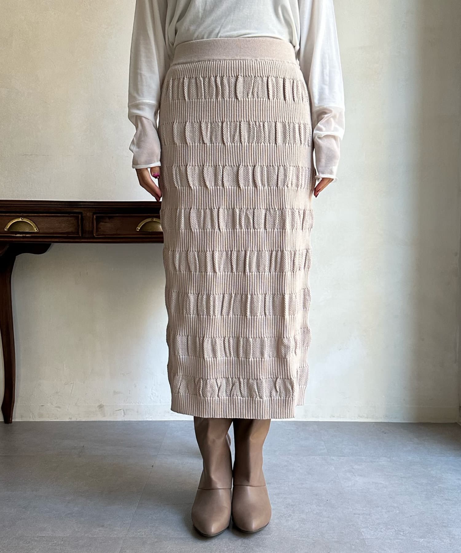 表情あるメッシュ編みがサマ見えするタイトスカート