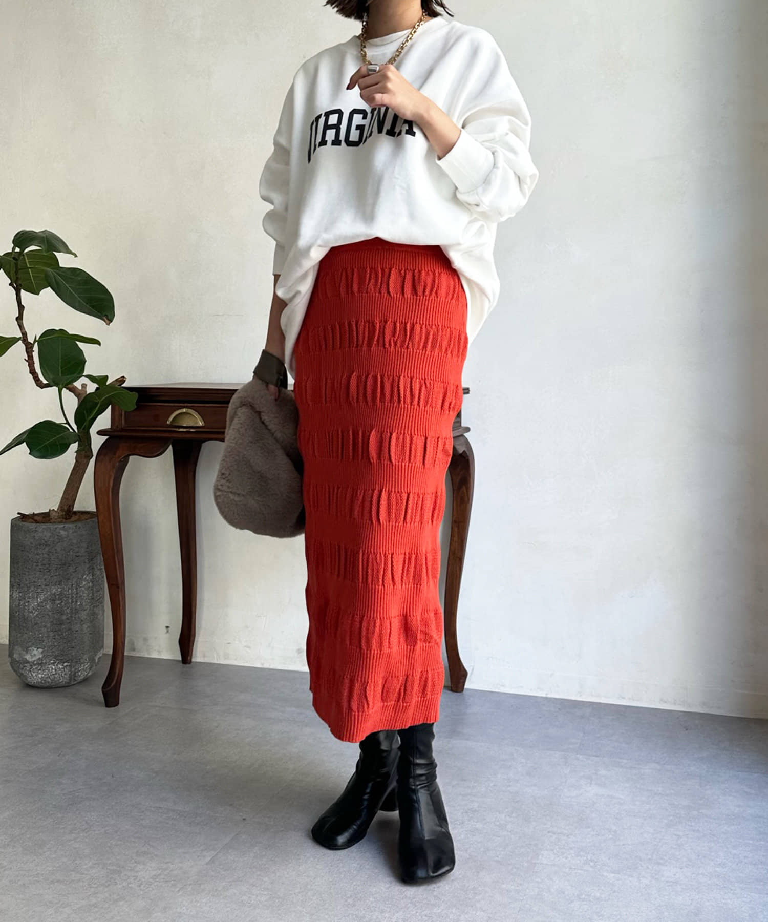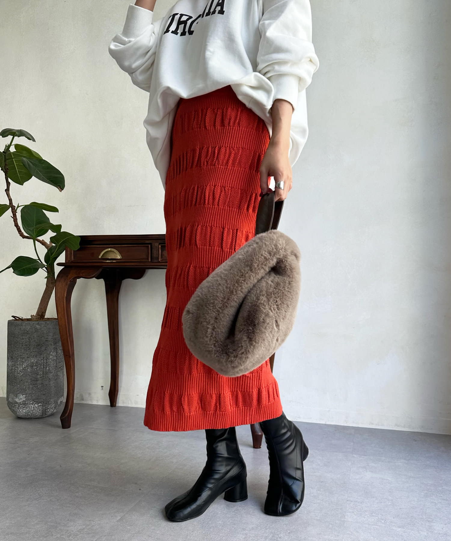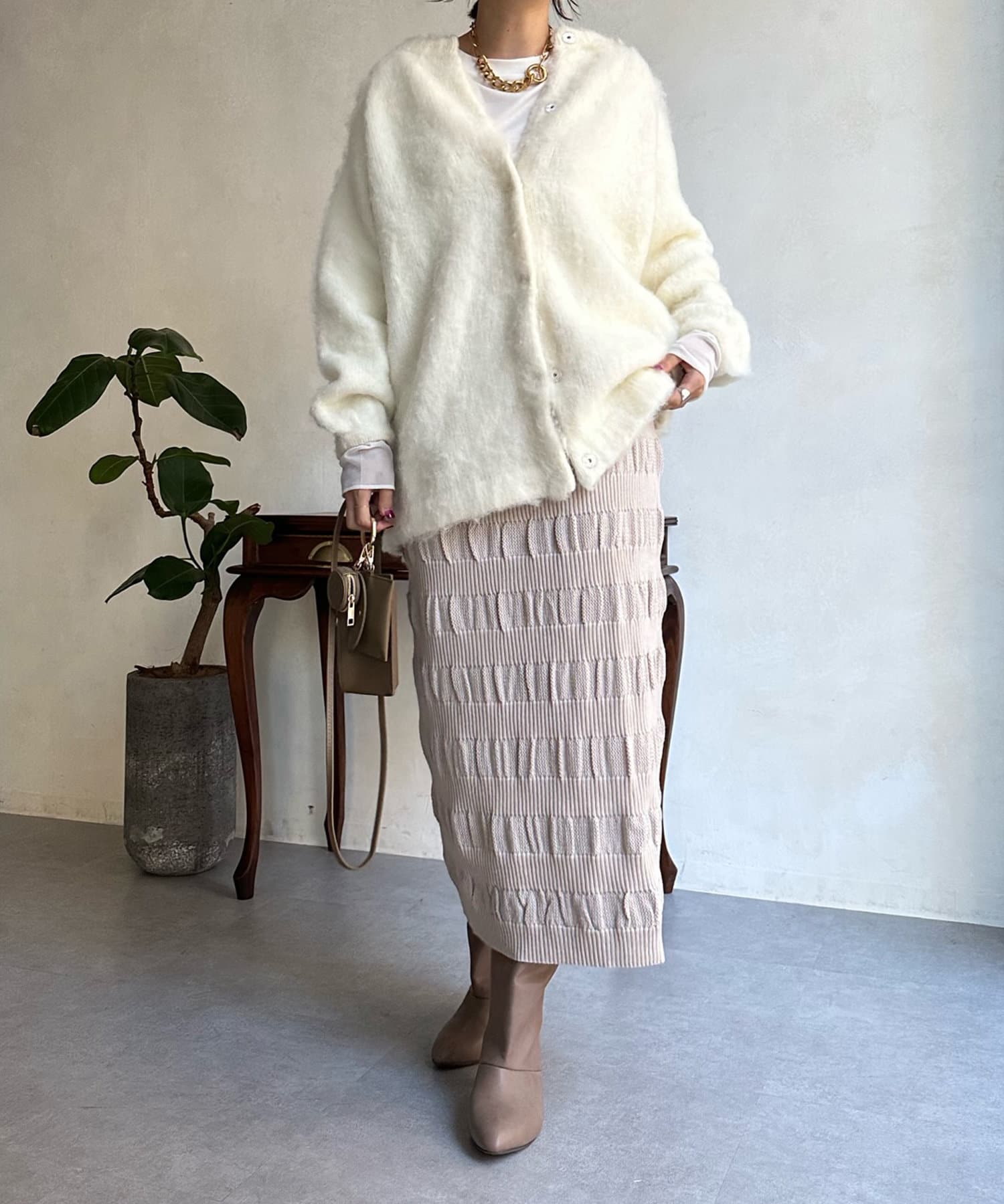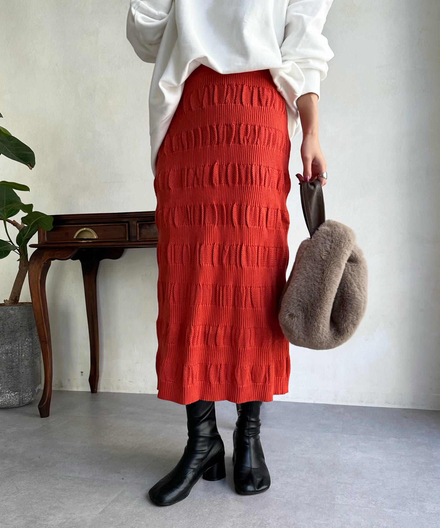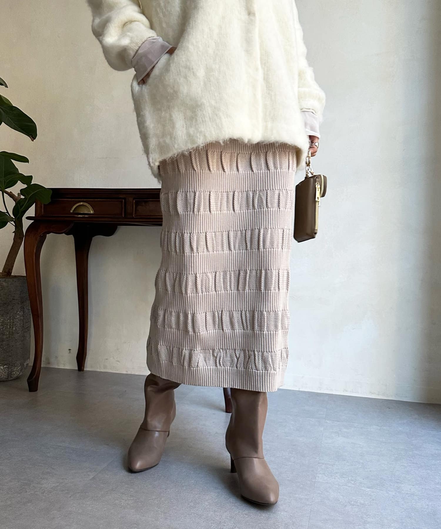 表情あるメッシュ編みがサマ見えするタイトスカート