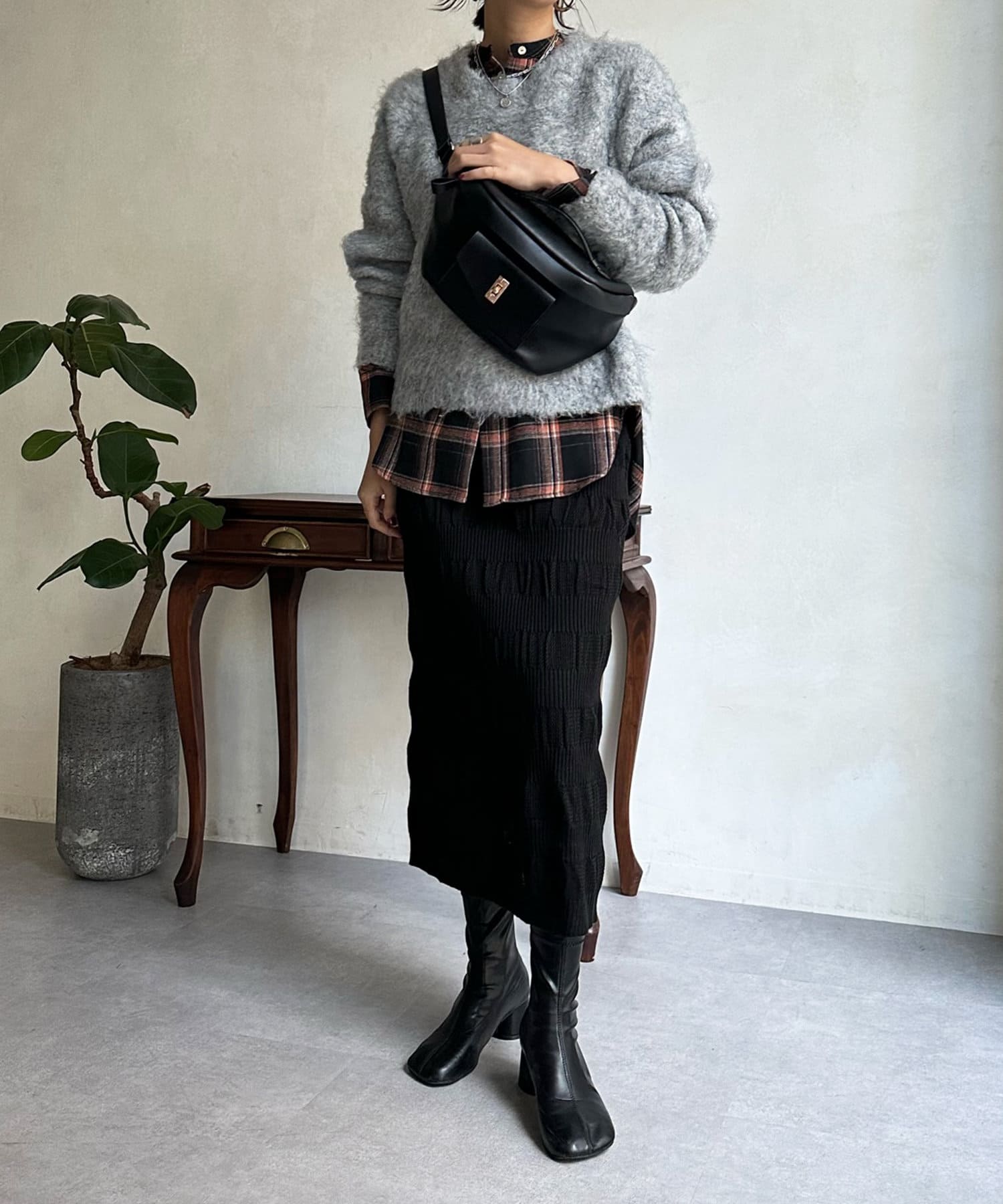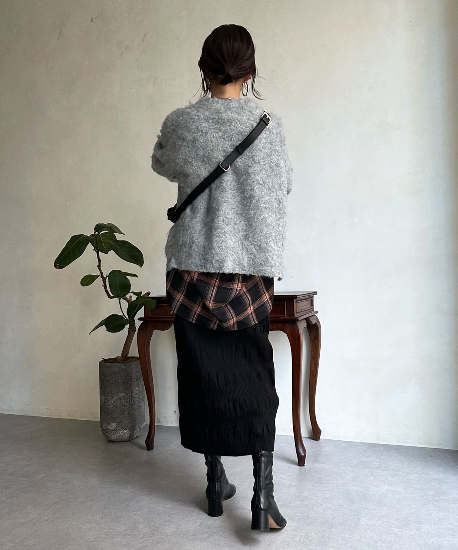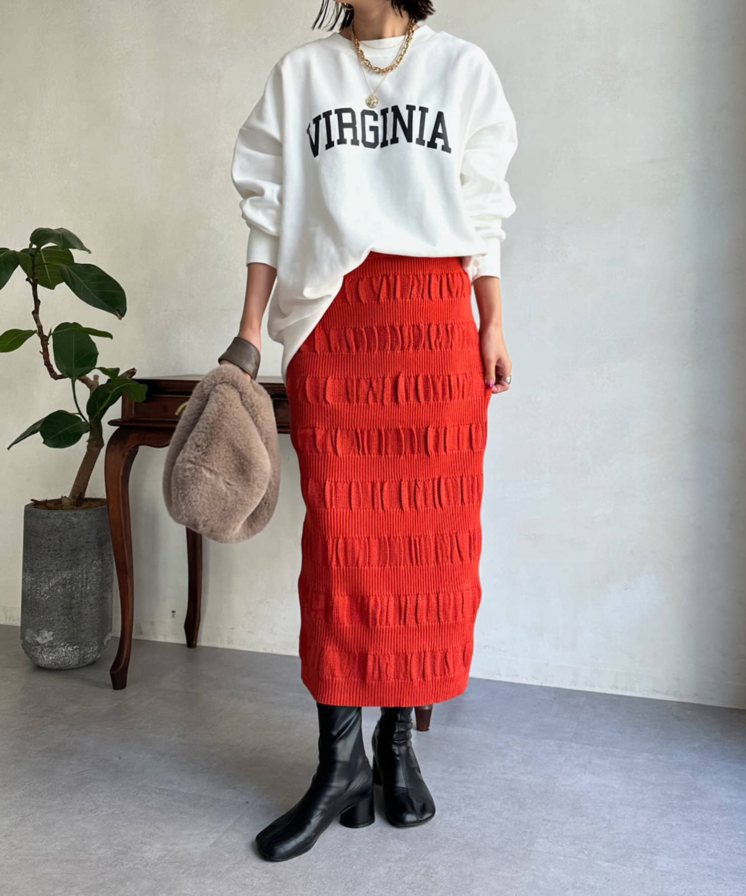 表情感のある生地感が、シンプルなスタイリングのサマ見えポイントとなってくれます。