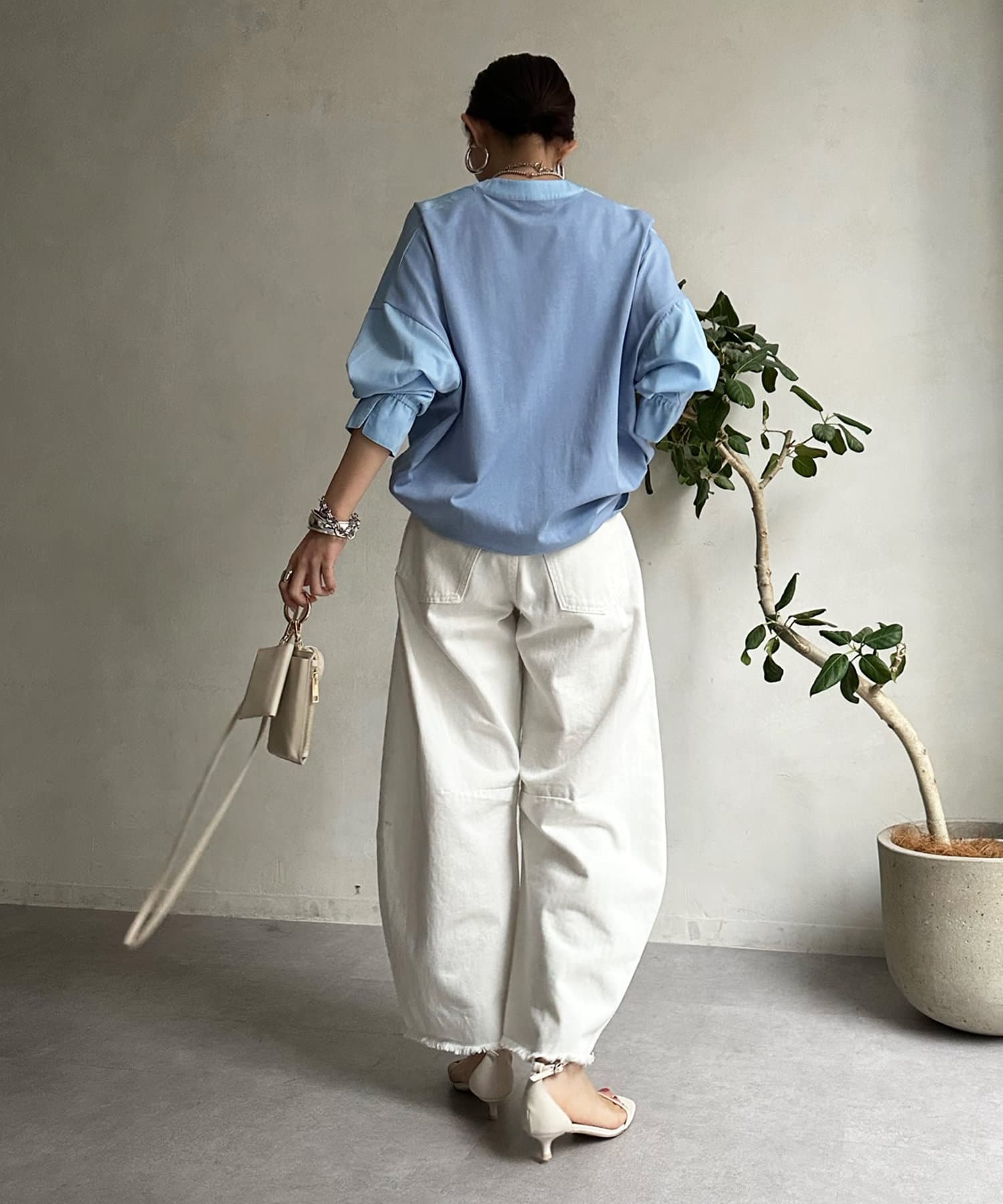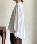背中部分をカットソー素材に切り替え、Tシャツ感覚でさっと着られるブラウス。