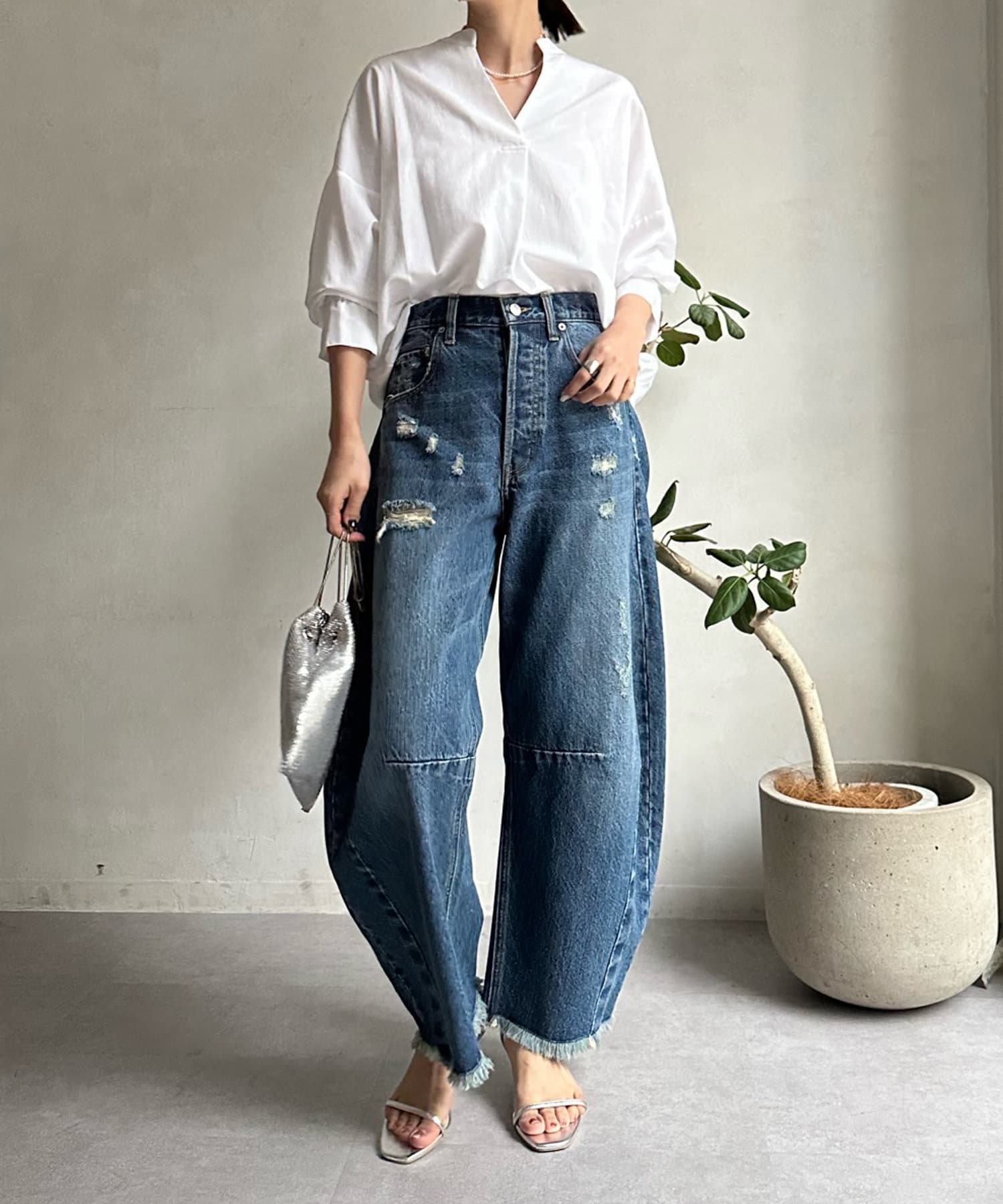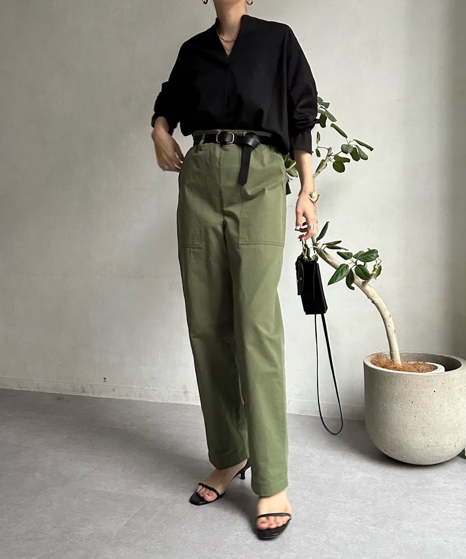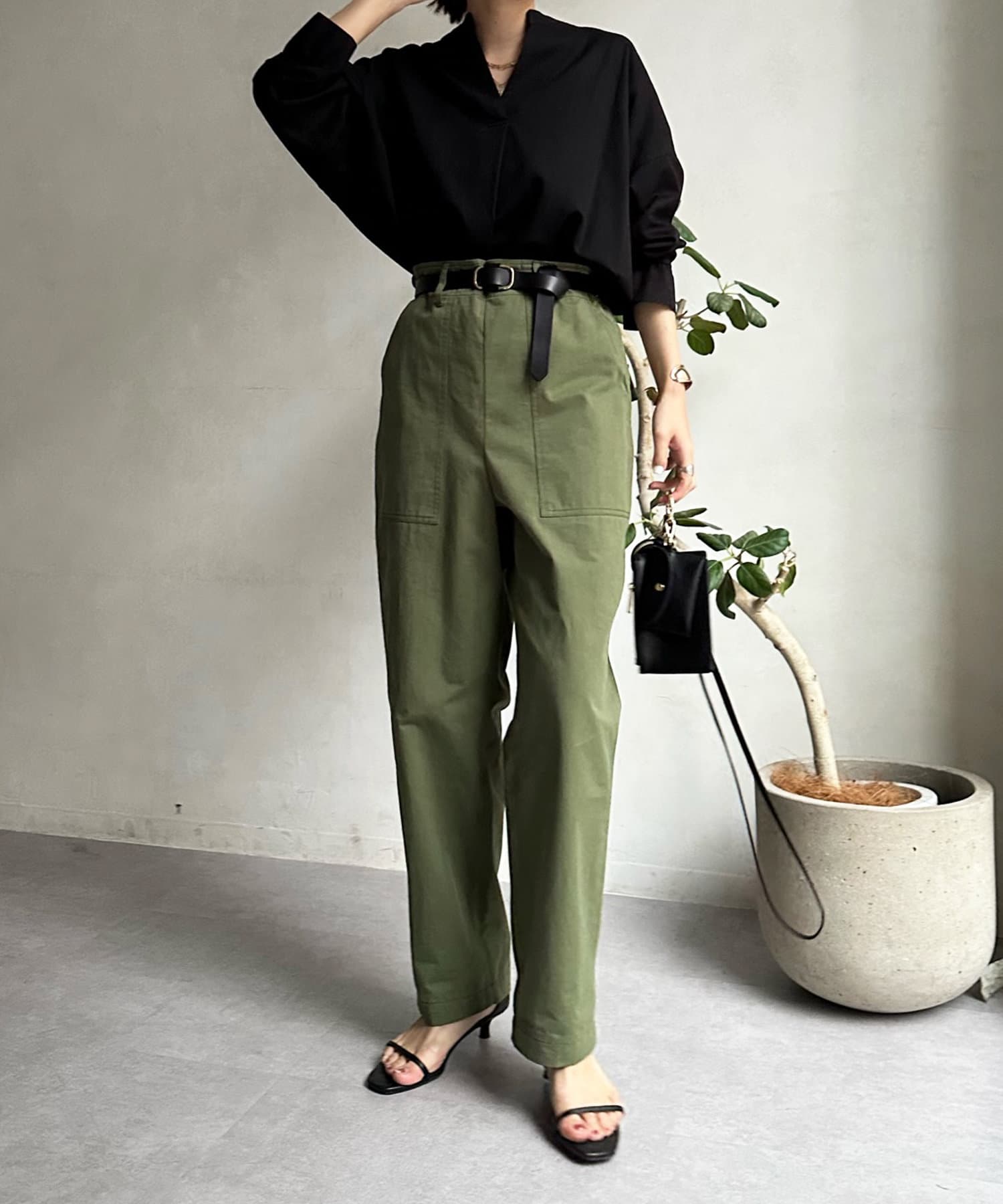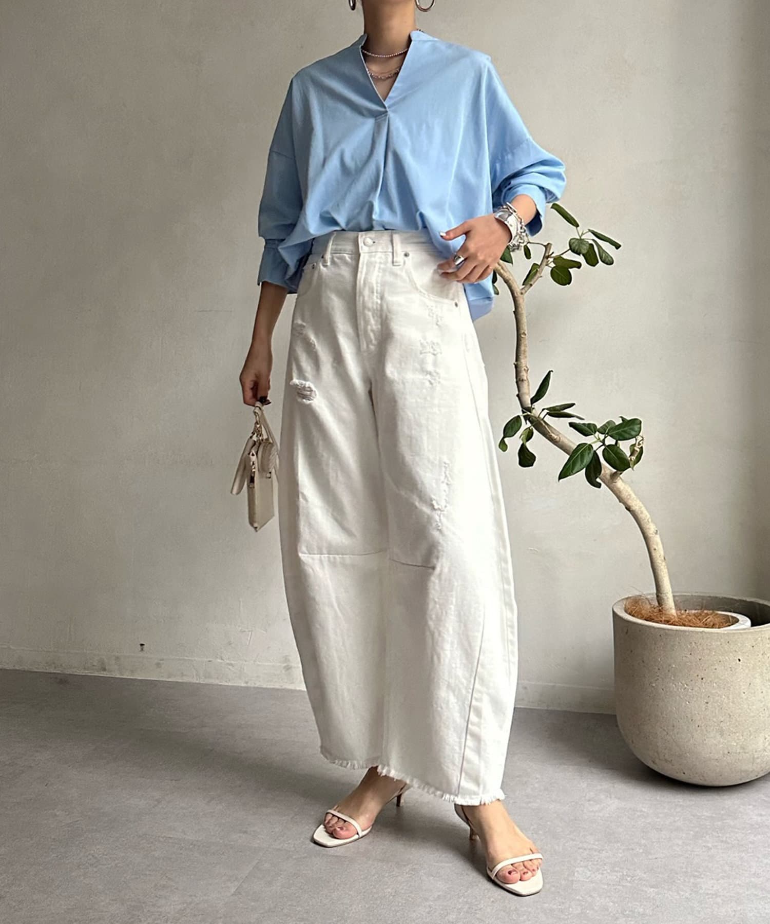首元のスキッパーデザインは大人な雰囲気を醸し、ショートネックレスなどとも相性抜群。ぜひお手持ちのお気に入りアクセサリー合わせでお楽しみください。