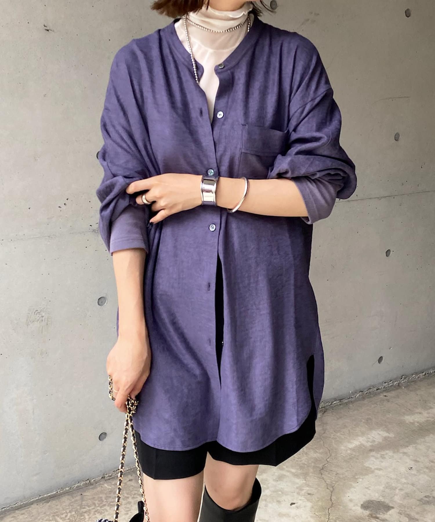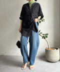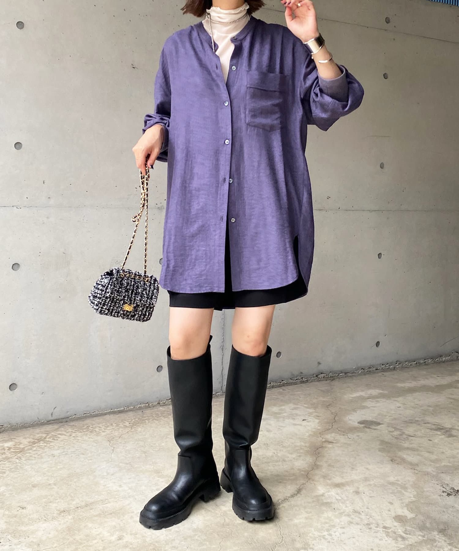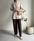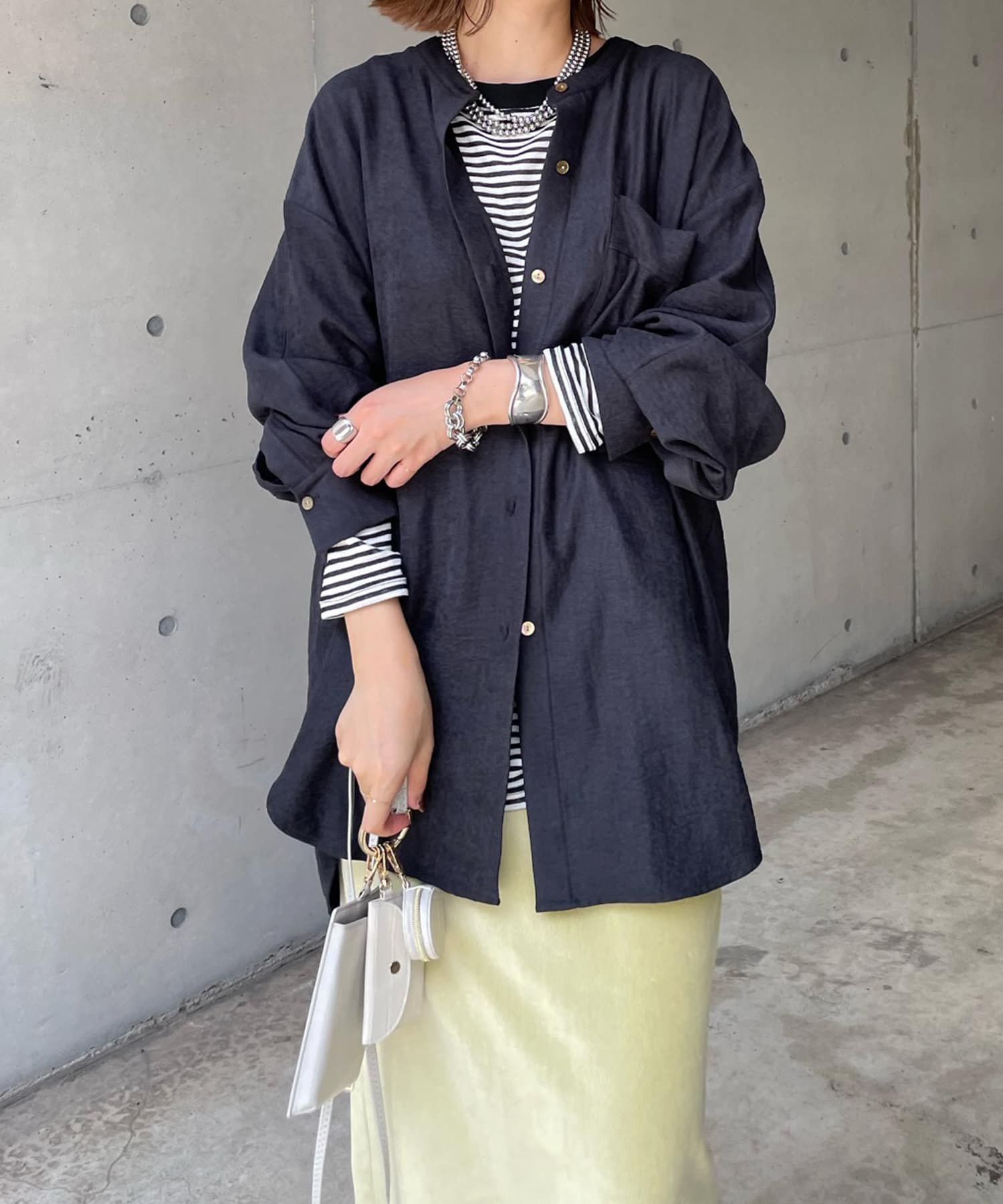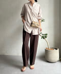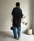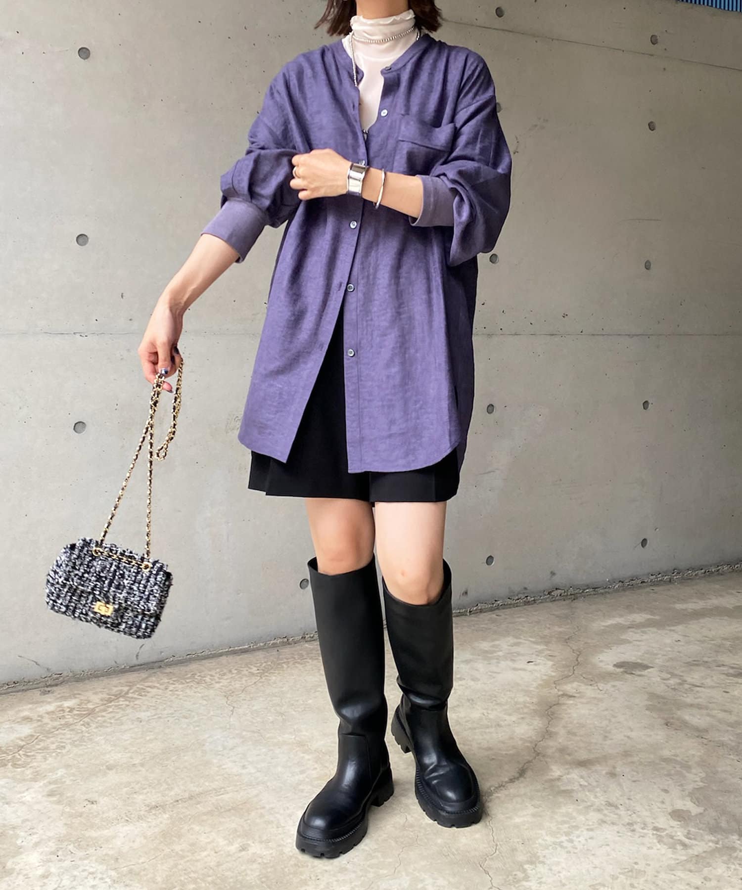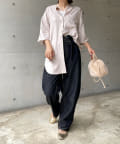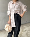 シルエットはゆるっとラフに着られるサイズ感のため、インナーを重ねたレイヤードコーデがおすすめです◎