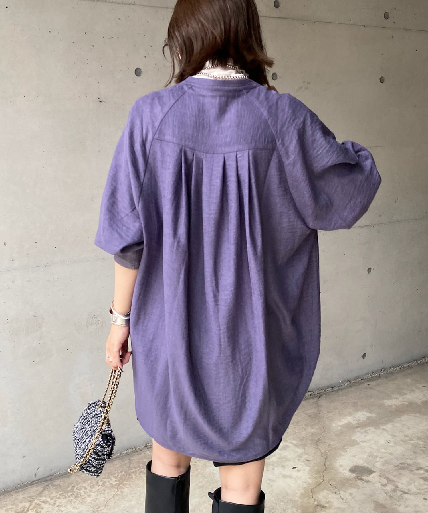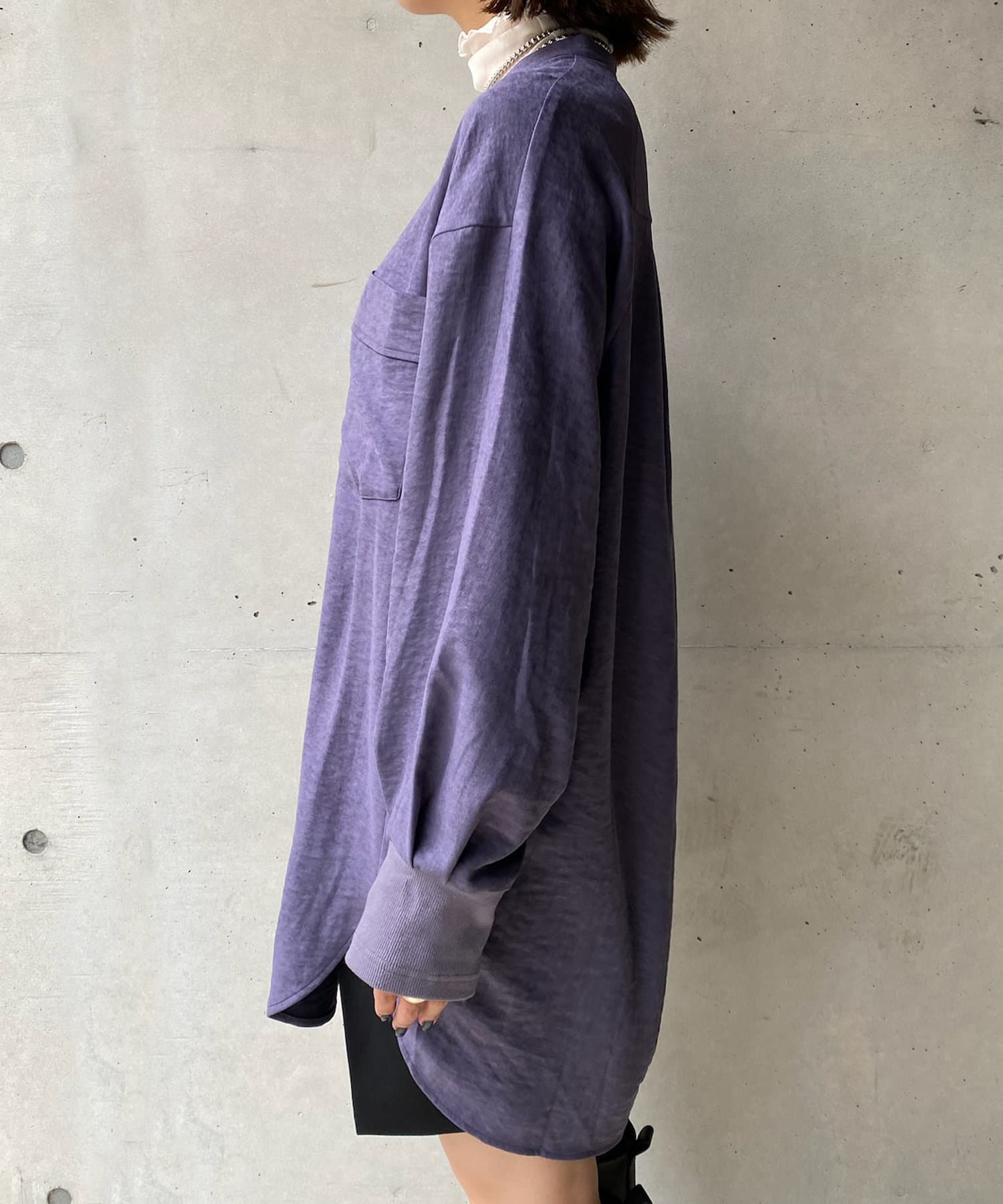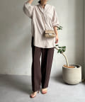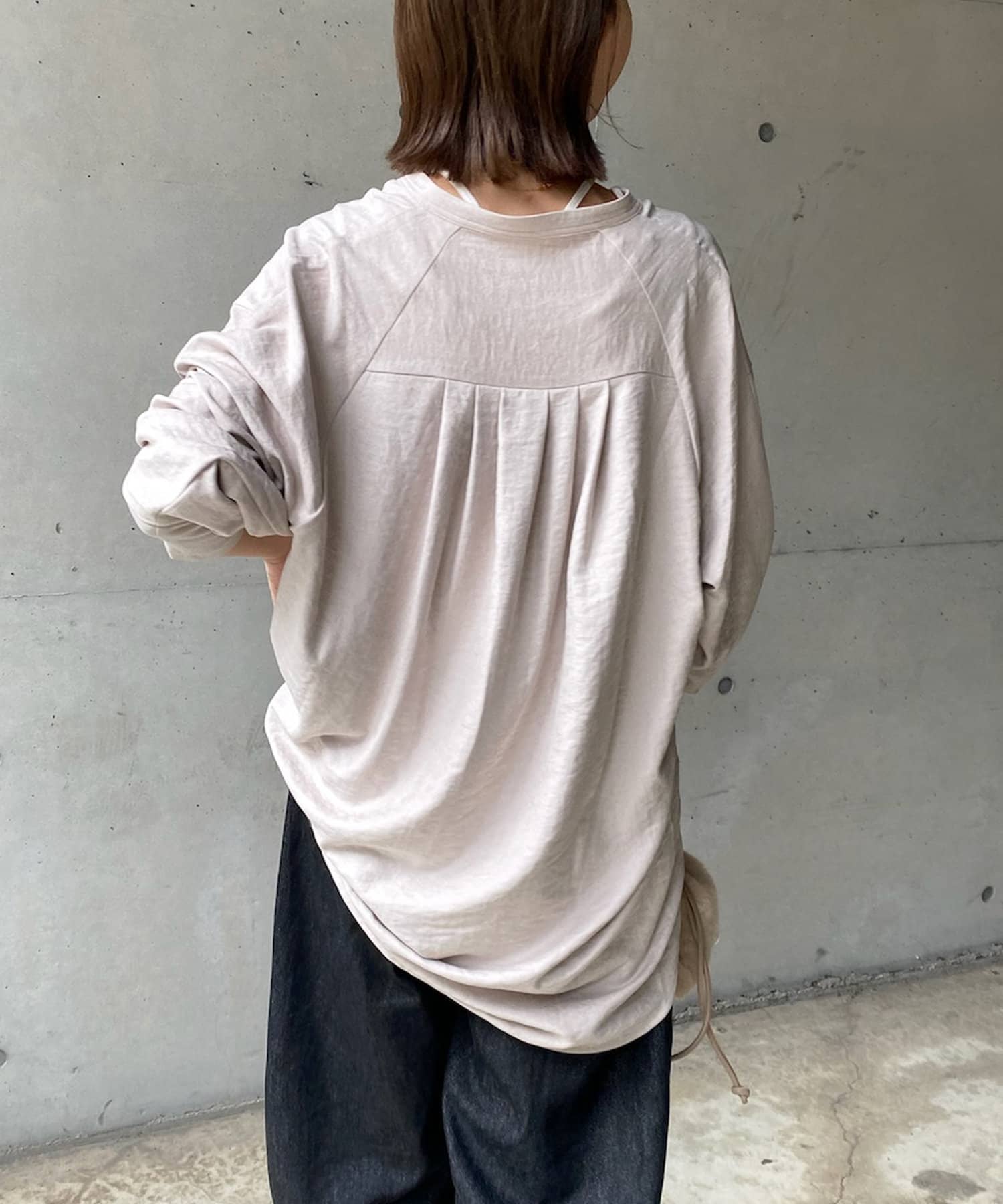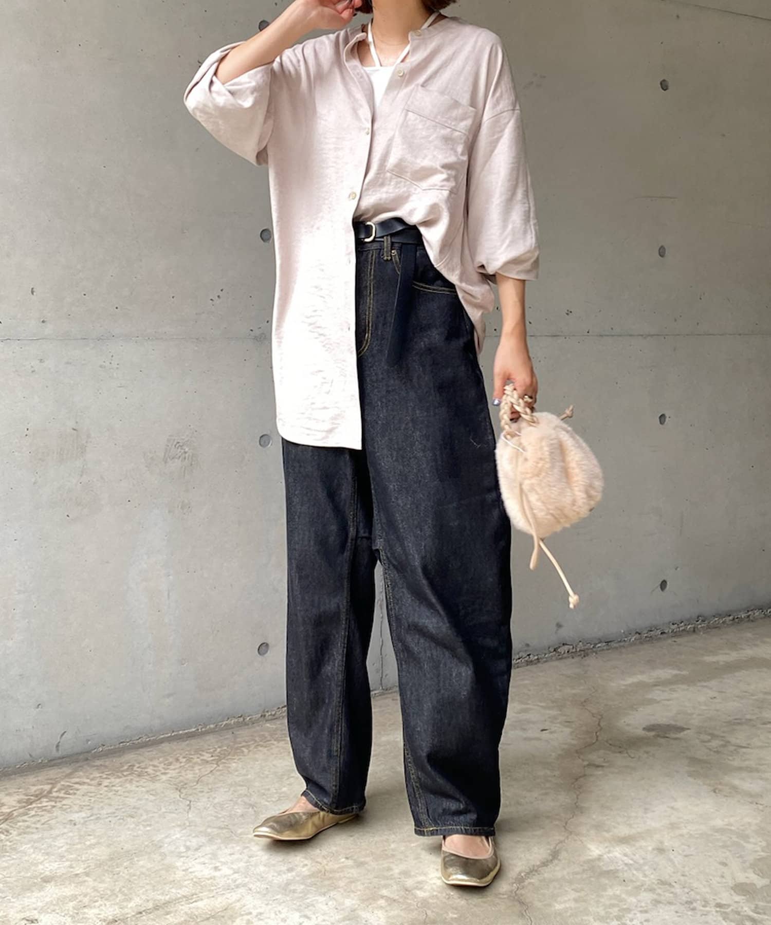 シルエットはゆるっとラフに着られるサイズ感のため、インナーを重ねたレイヤードコーデがおすすめです◎