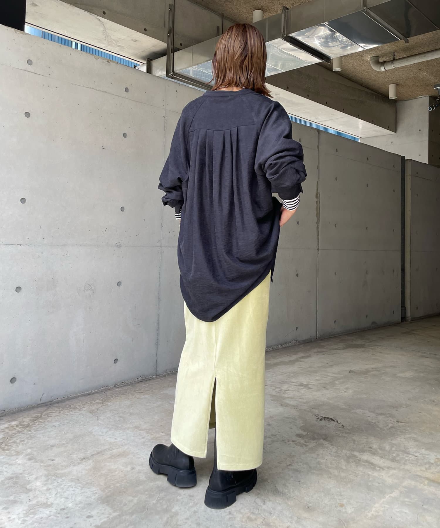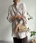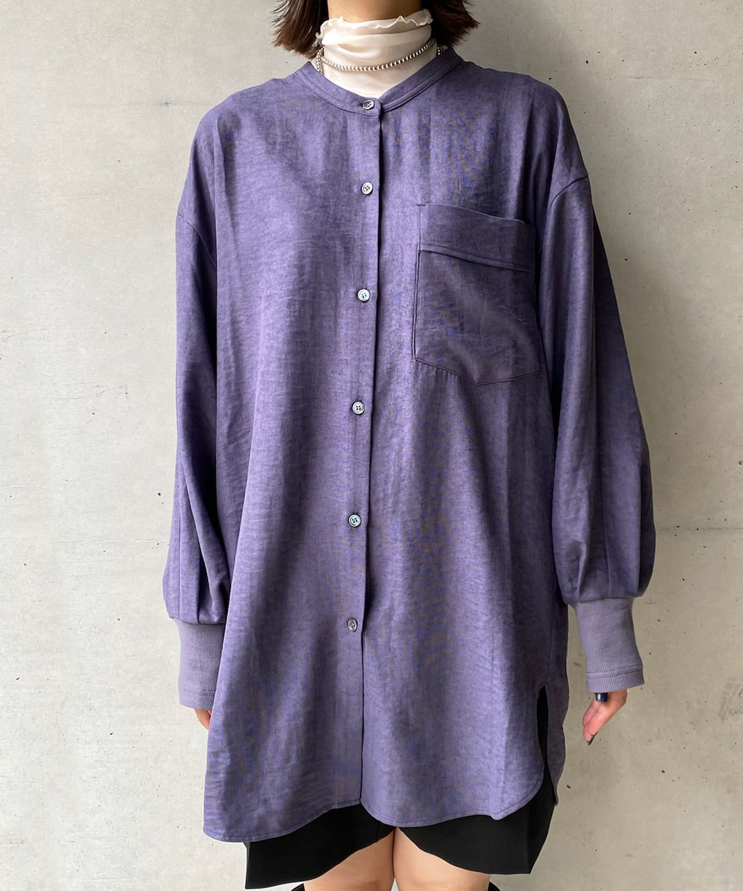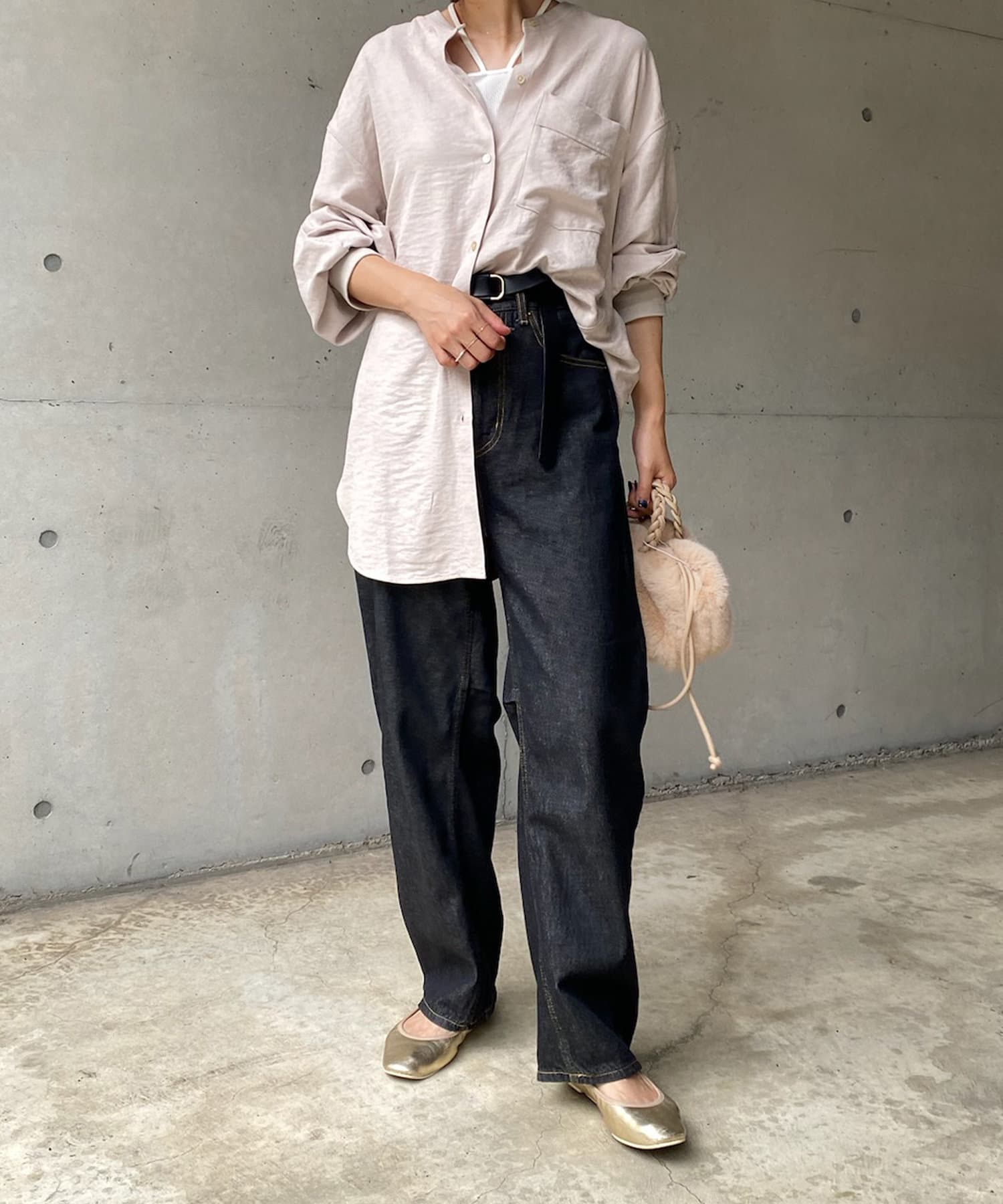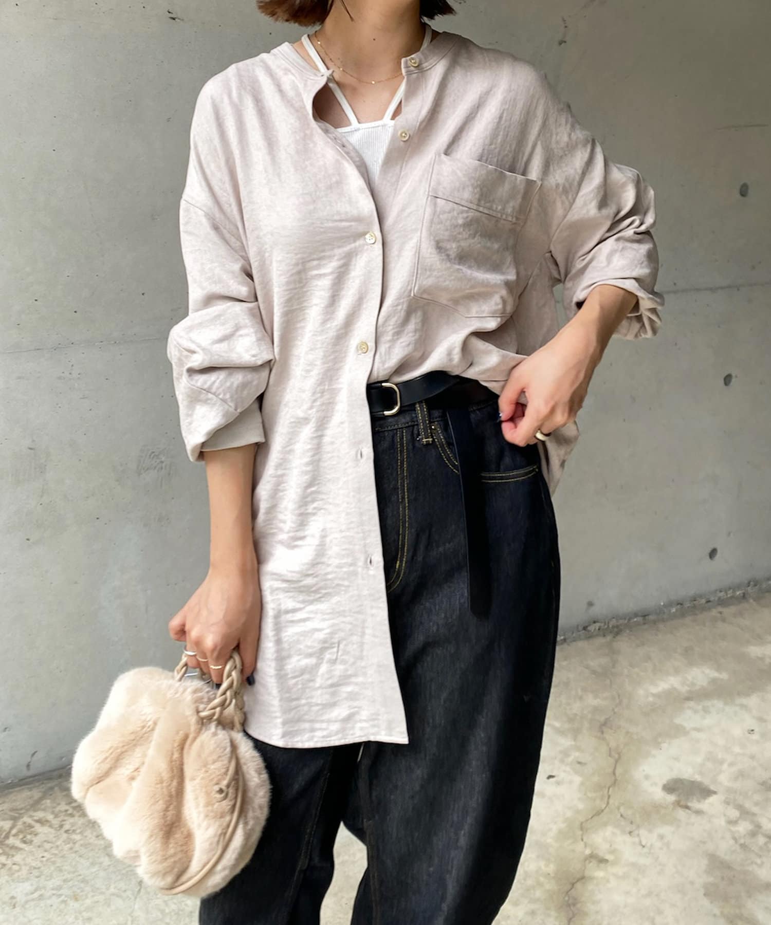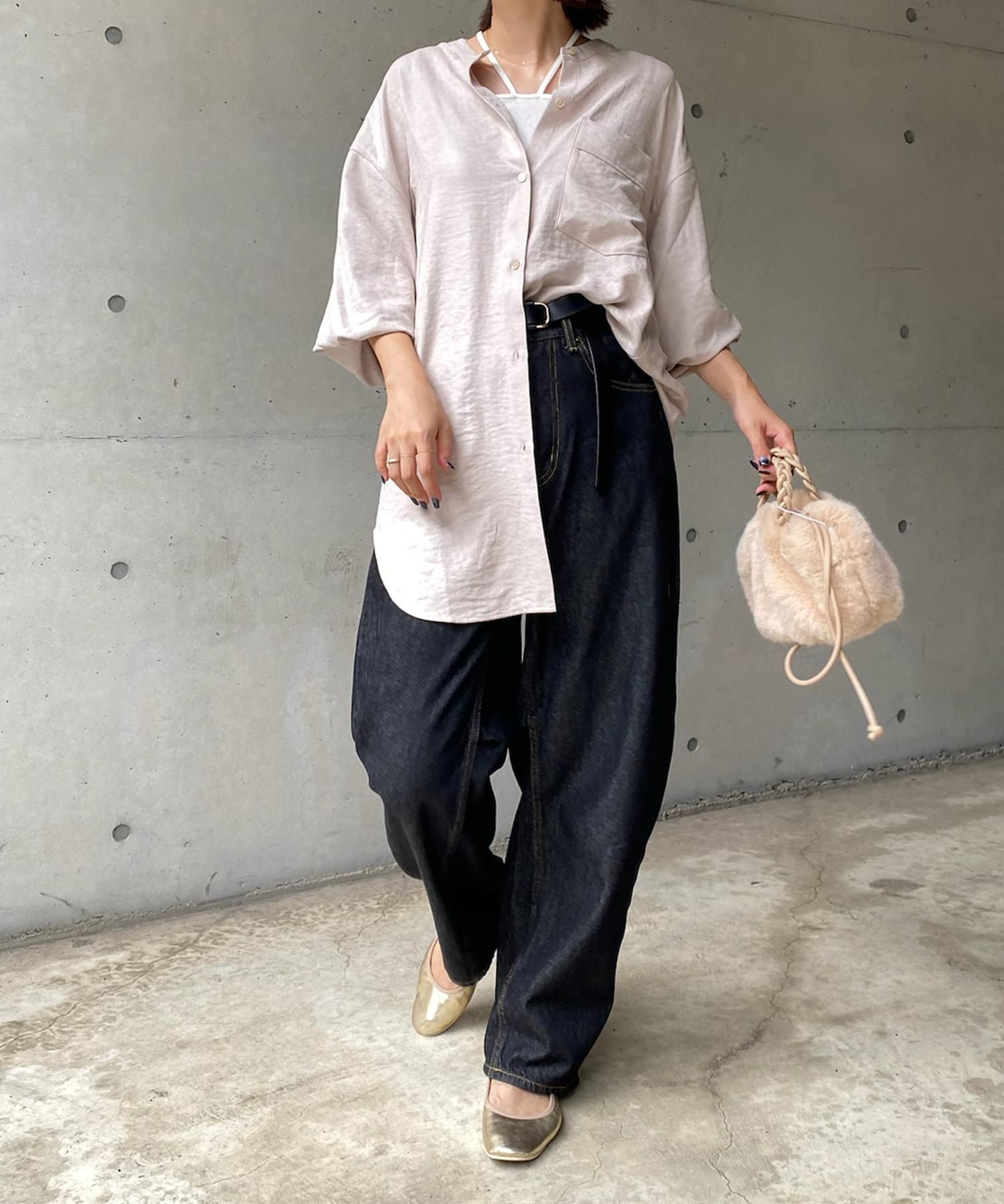 シルエットはゆるっとラフに着られるサイズ感のため、インナーを重ねたレイヤードコーデがおすすめです◎