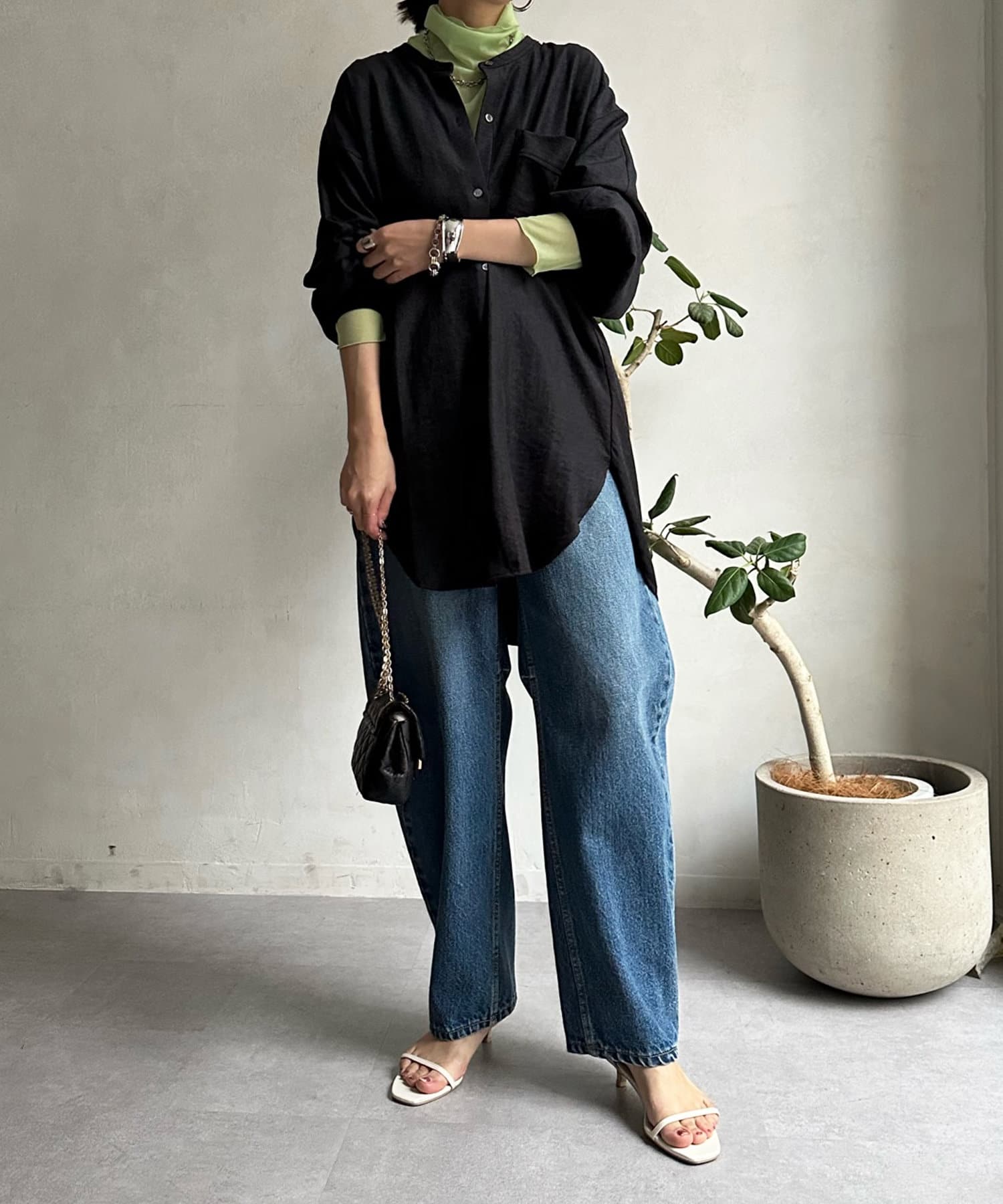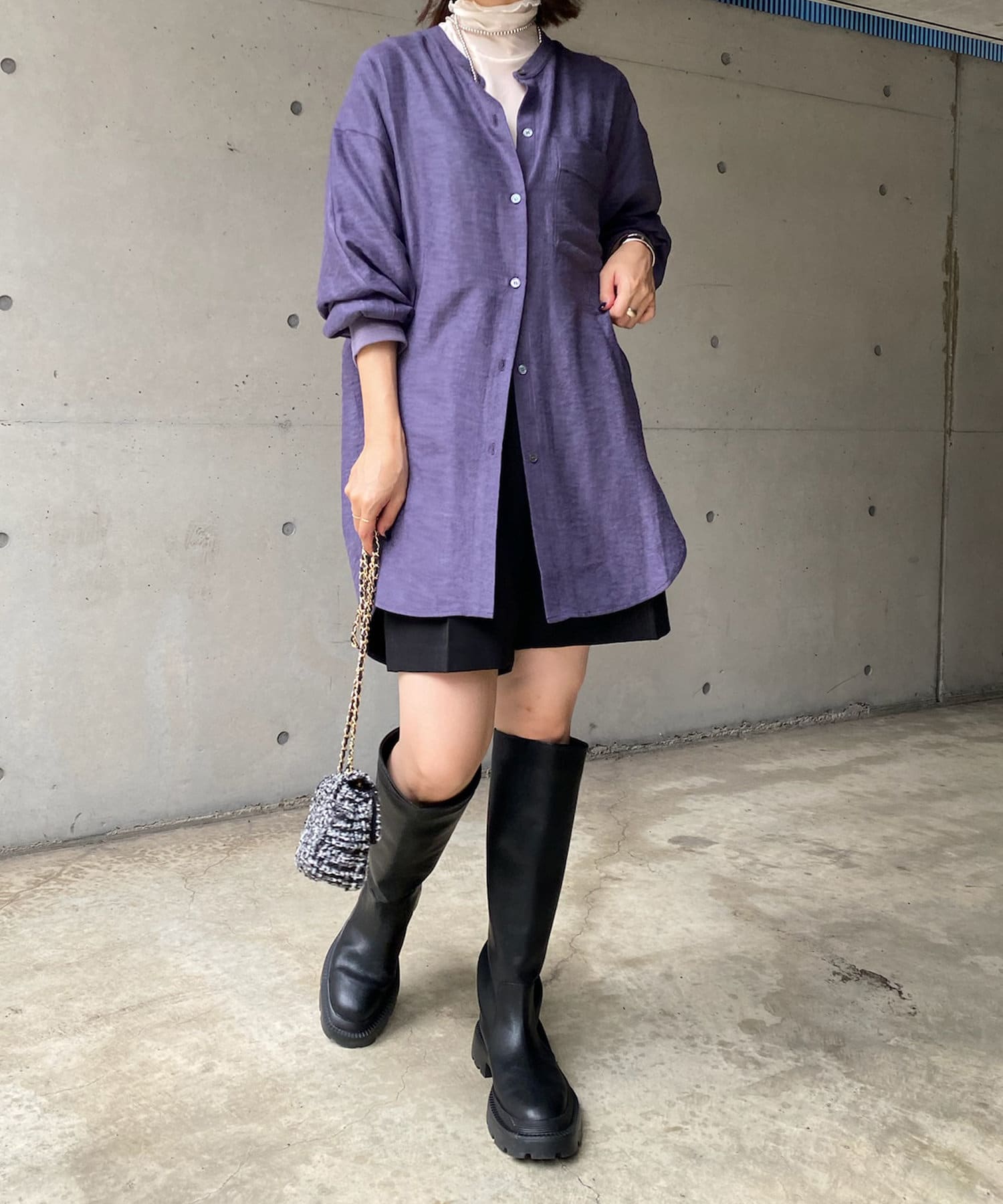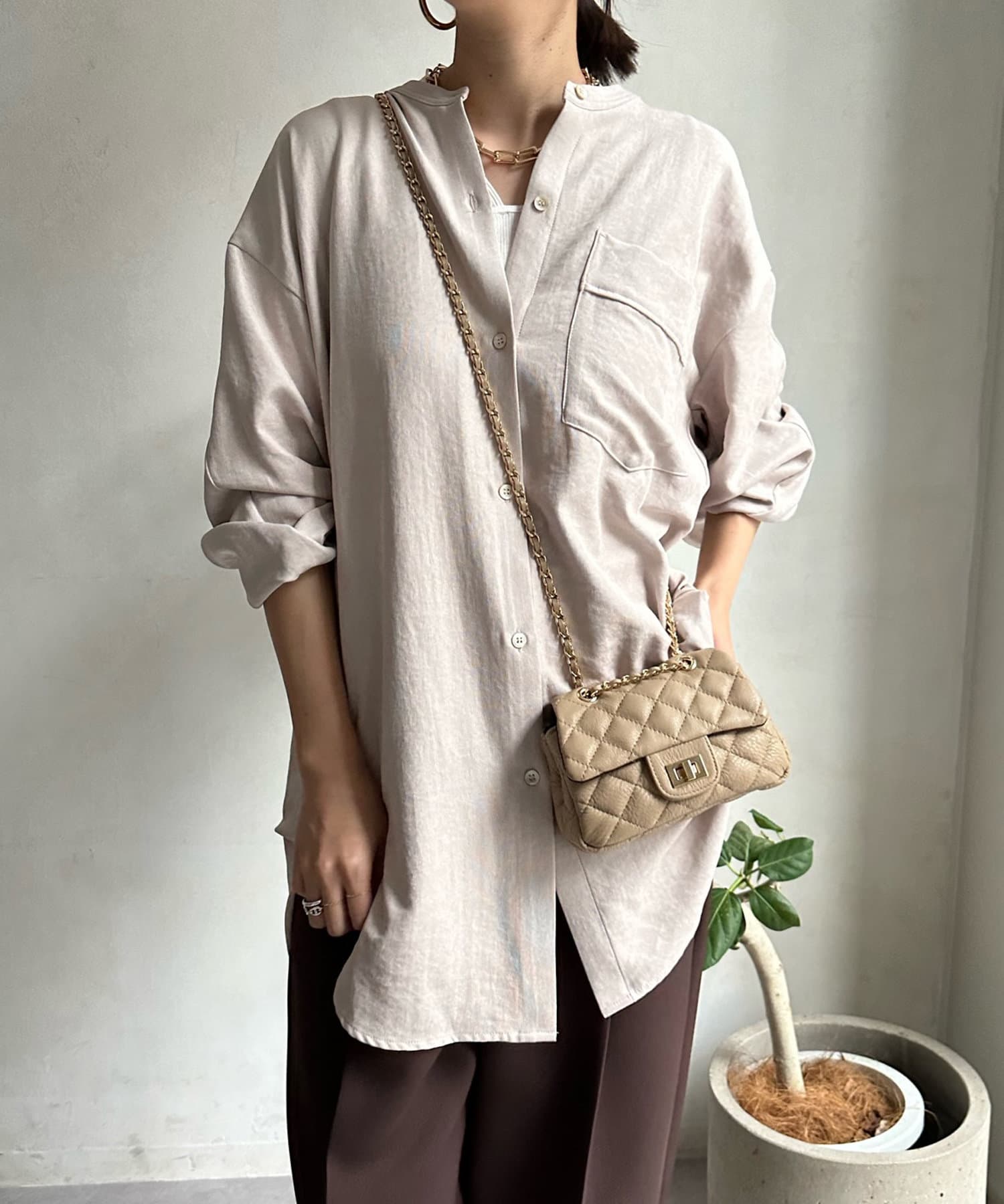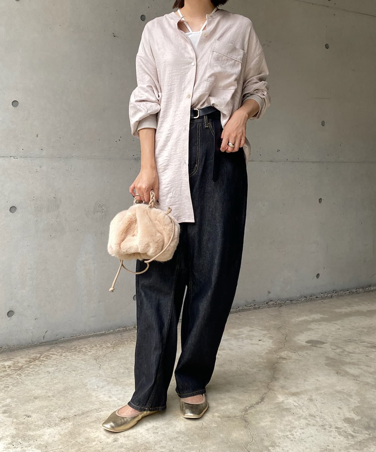 シルエットはゆるっとラフに着られるサイズ感のため、インナーを重ねたレイヤードコーデがおすすめです◎