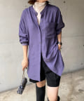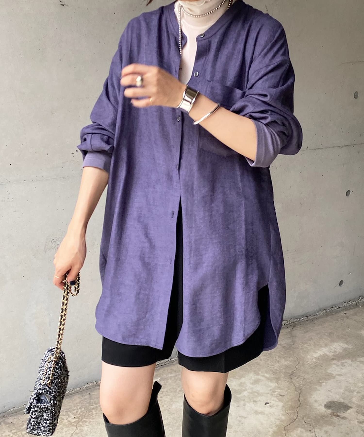 細コール袖リブオーバーシャツ