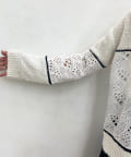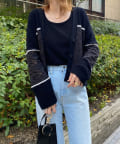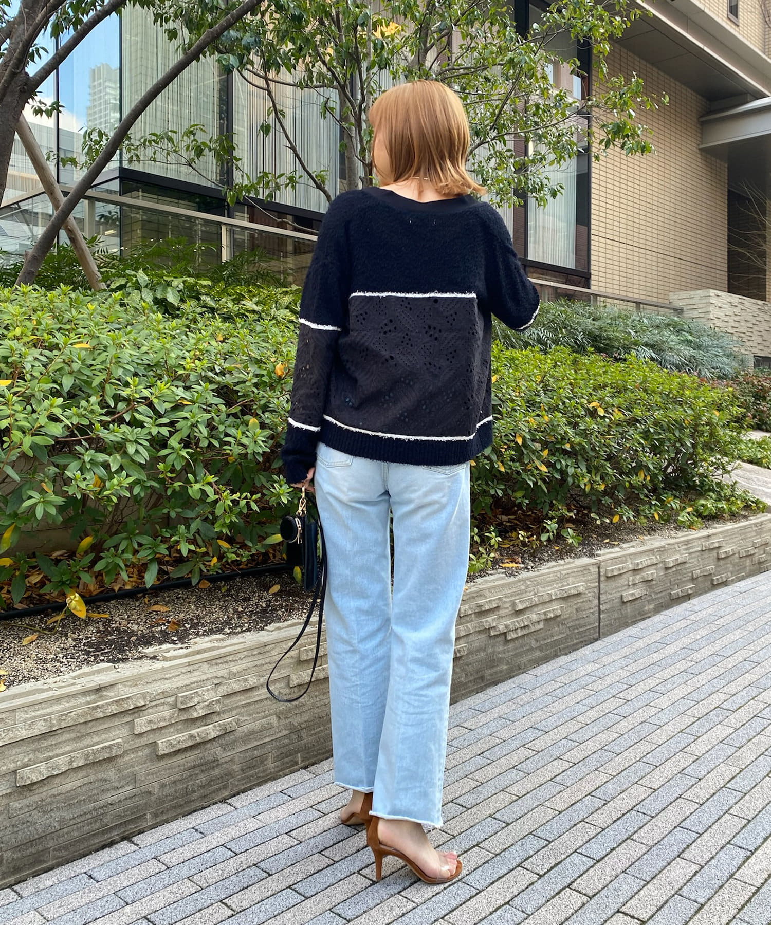 表面感があり、薄手なニットで春先にぴったりな1着です。甘すぎないレースの柄がカジュアルなスタイリングにも好相性!