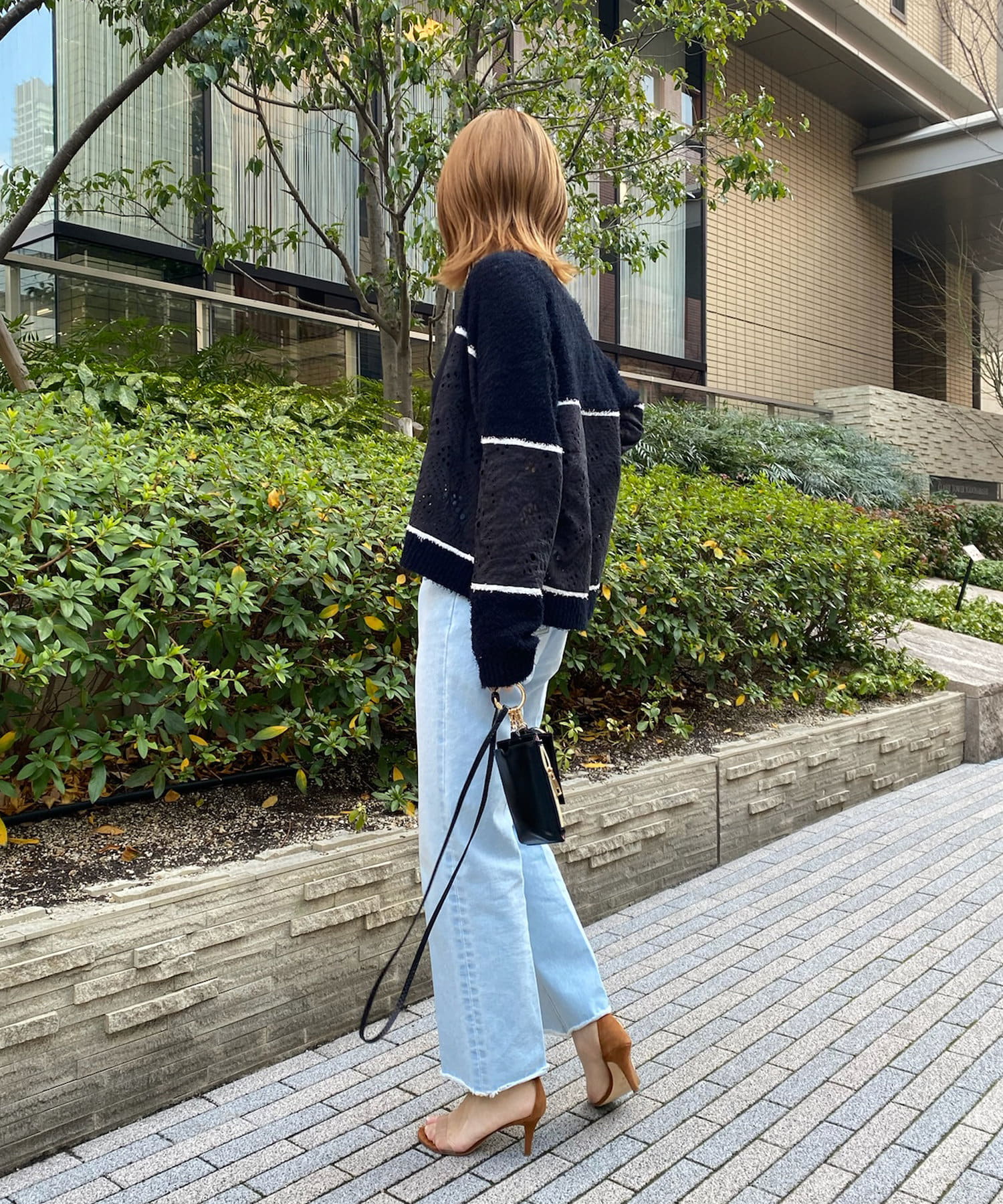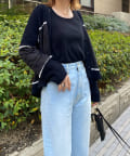 すっきりめに仕上げた丈感と、お袖は少し長めで可愛らしい雰囲気をプラスしてくれます。