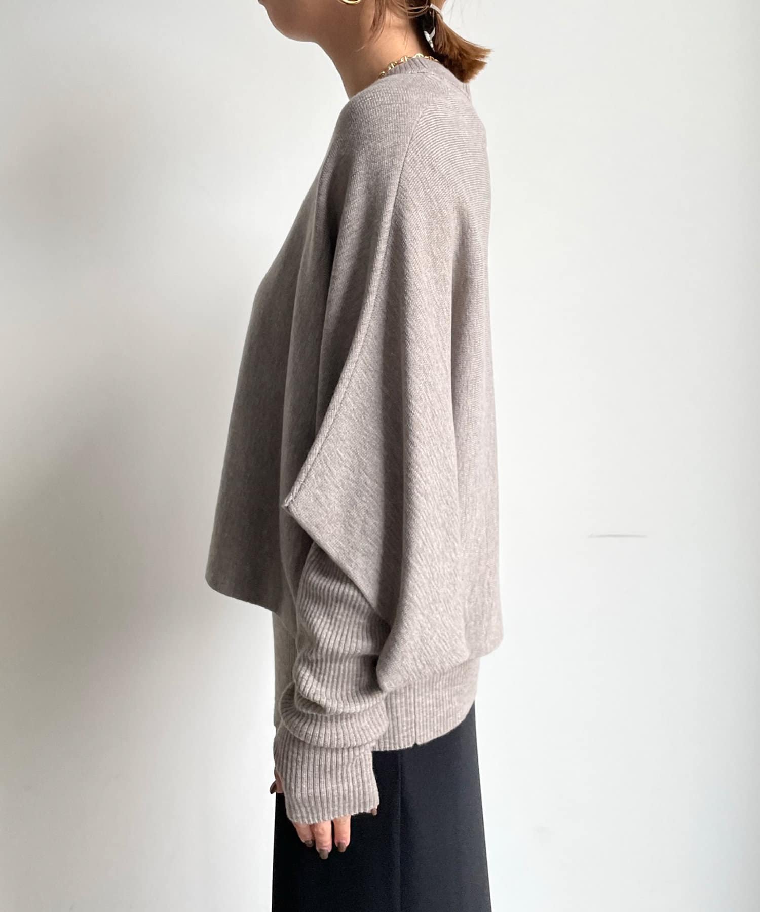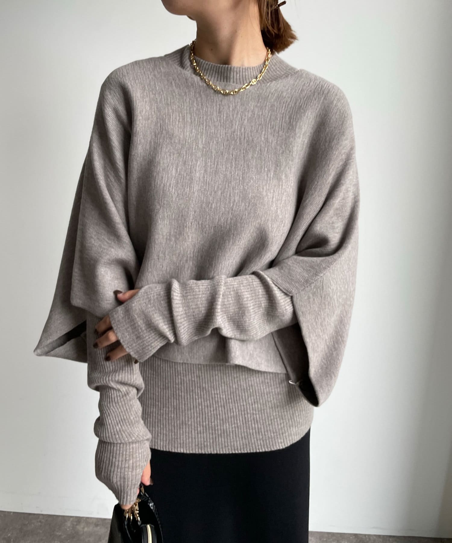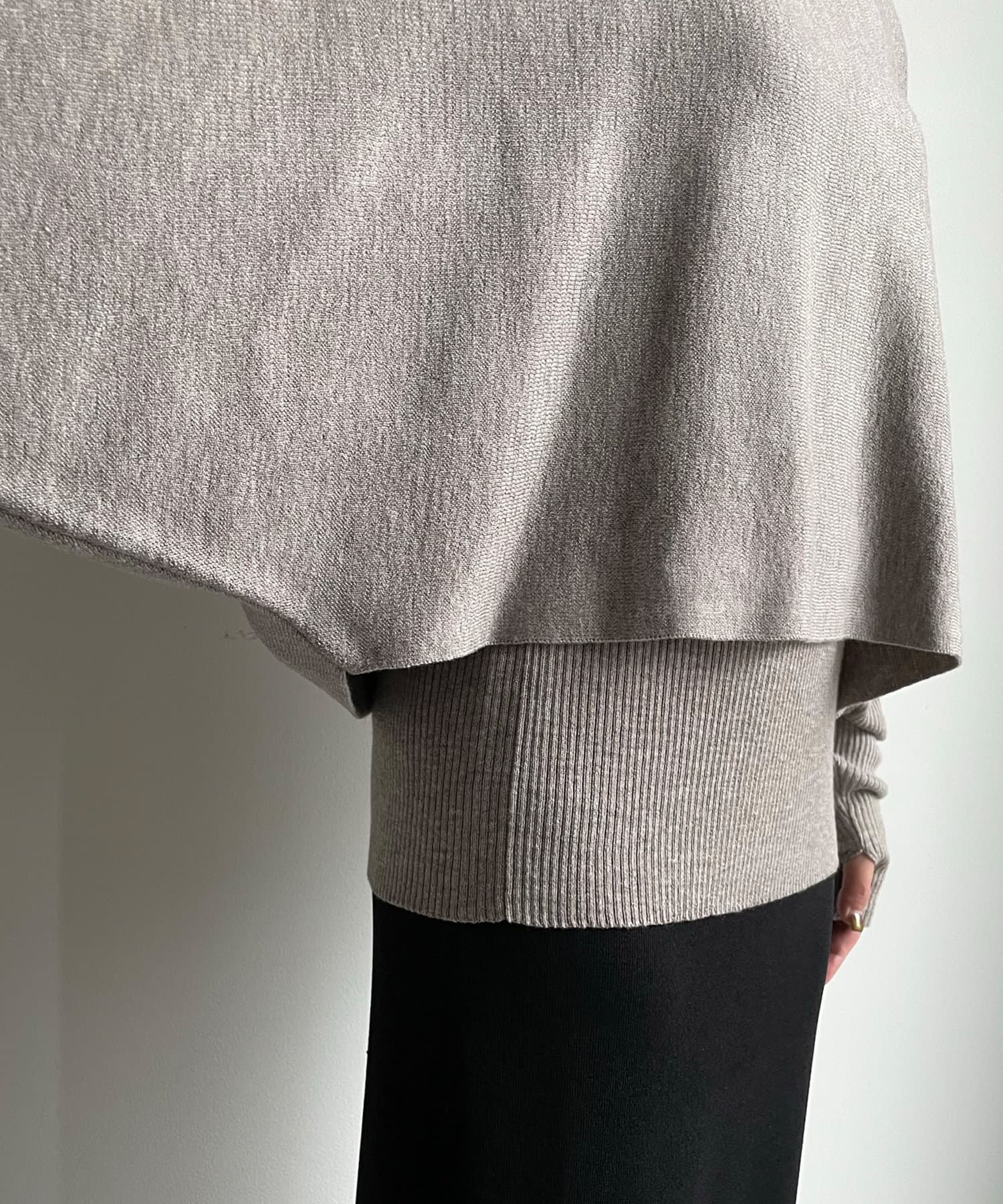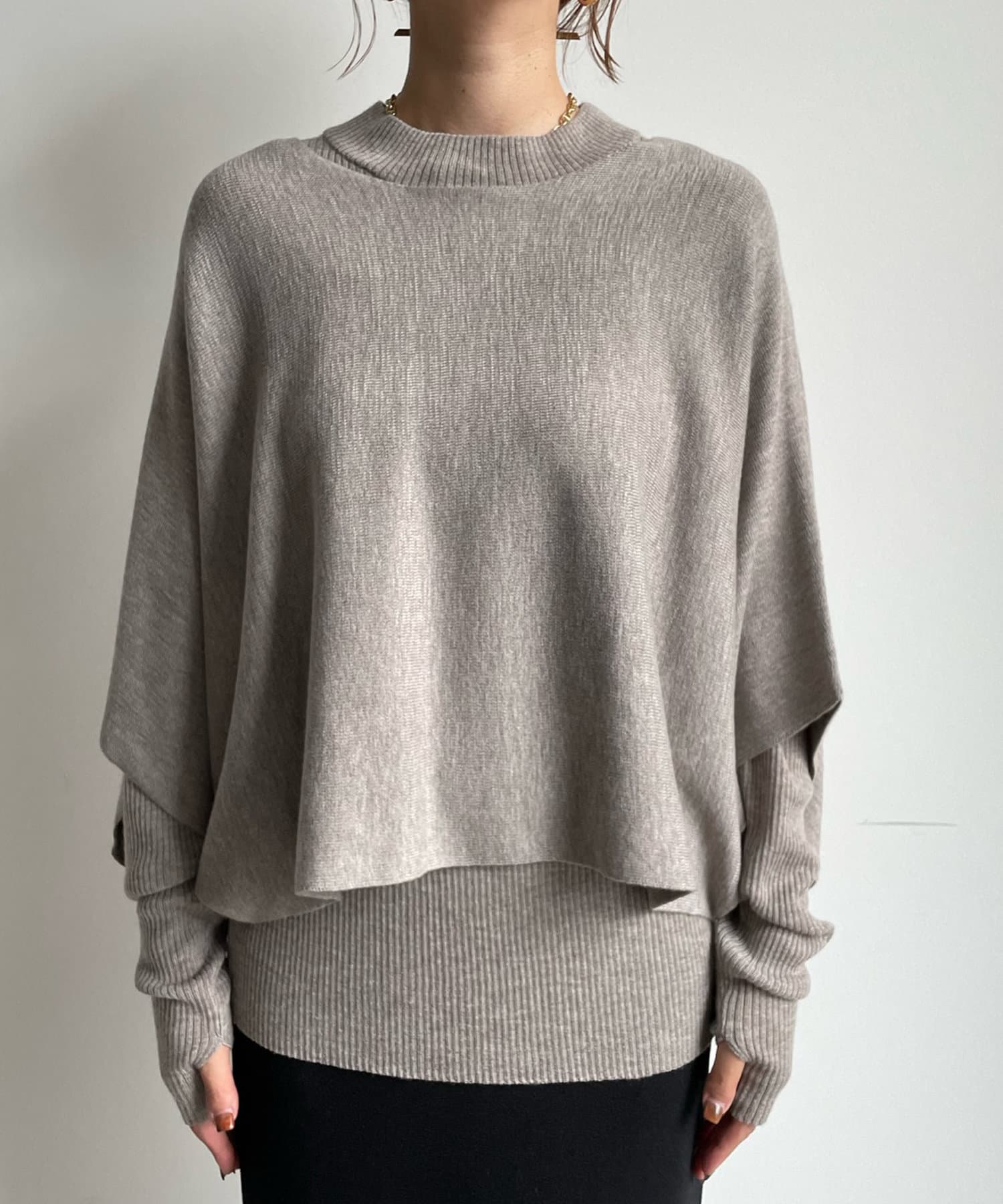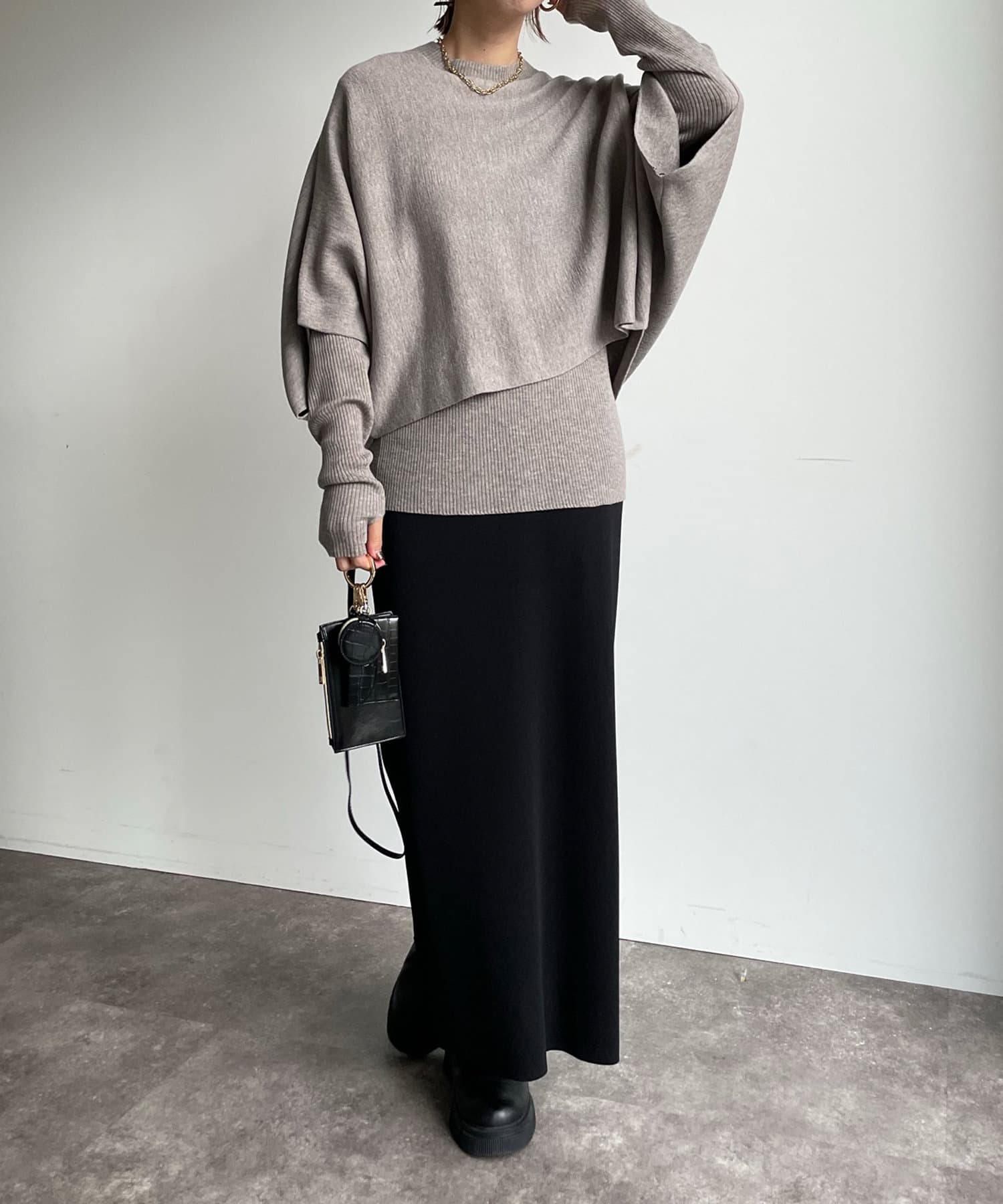 ゆったりポンチョシルエットのニットと、細身のリブニットがセットになったお得感◎のアイテム。