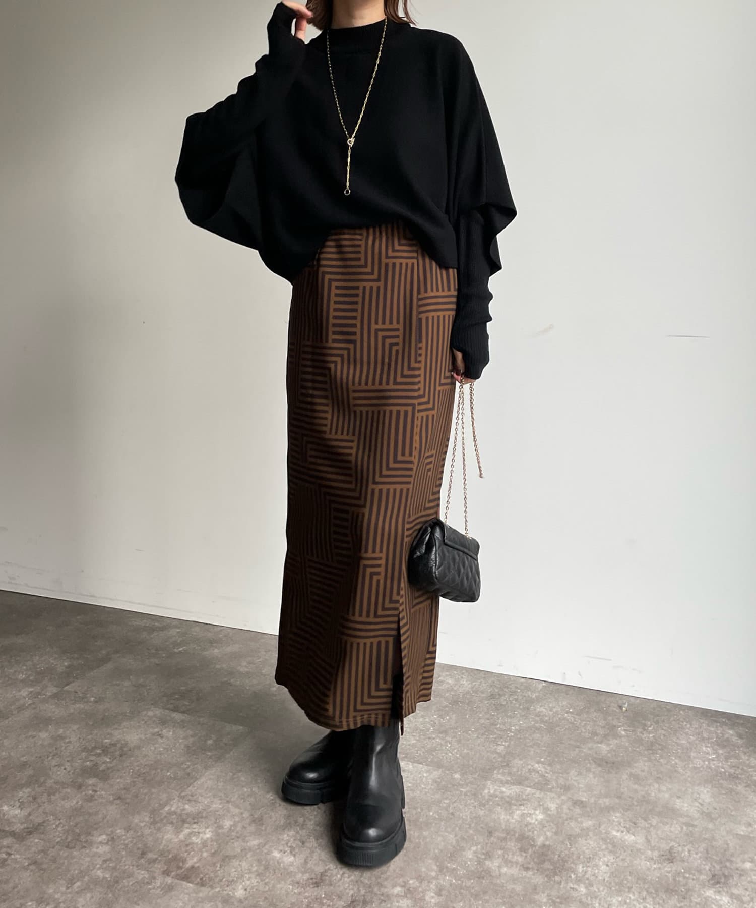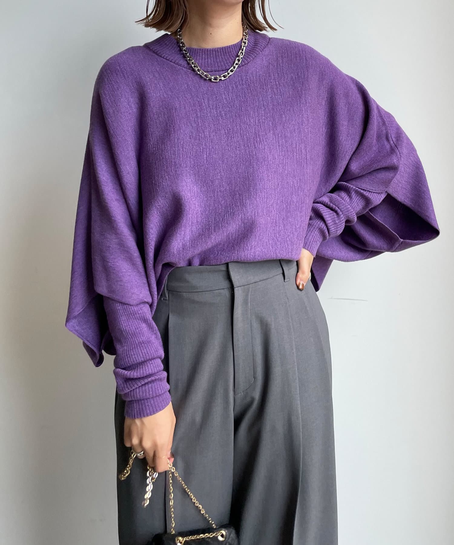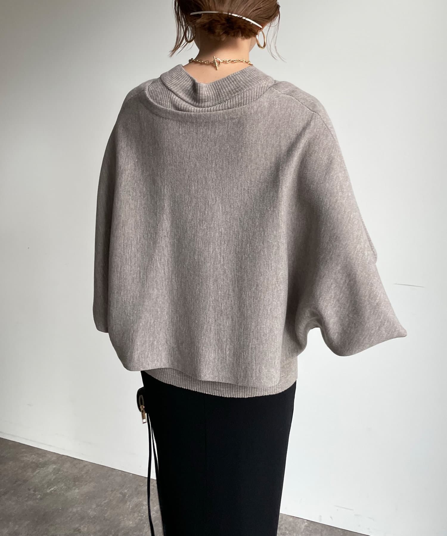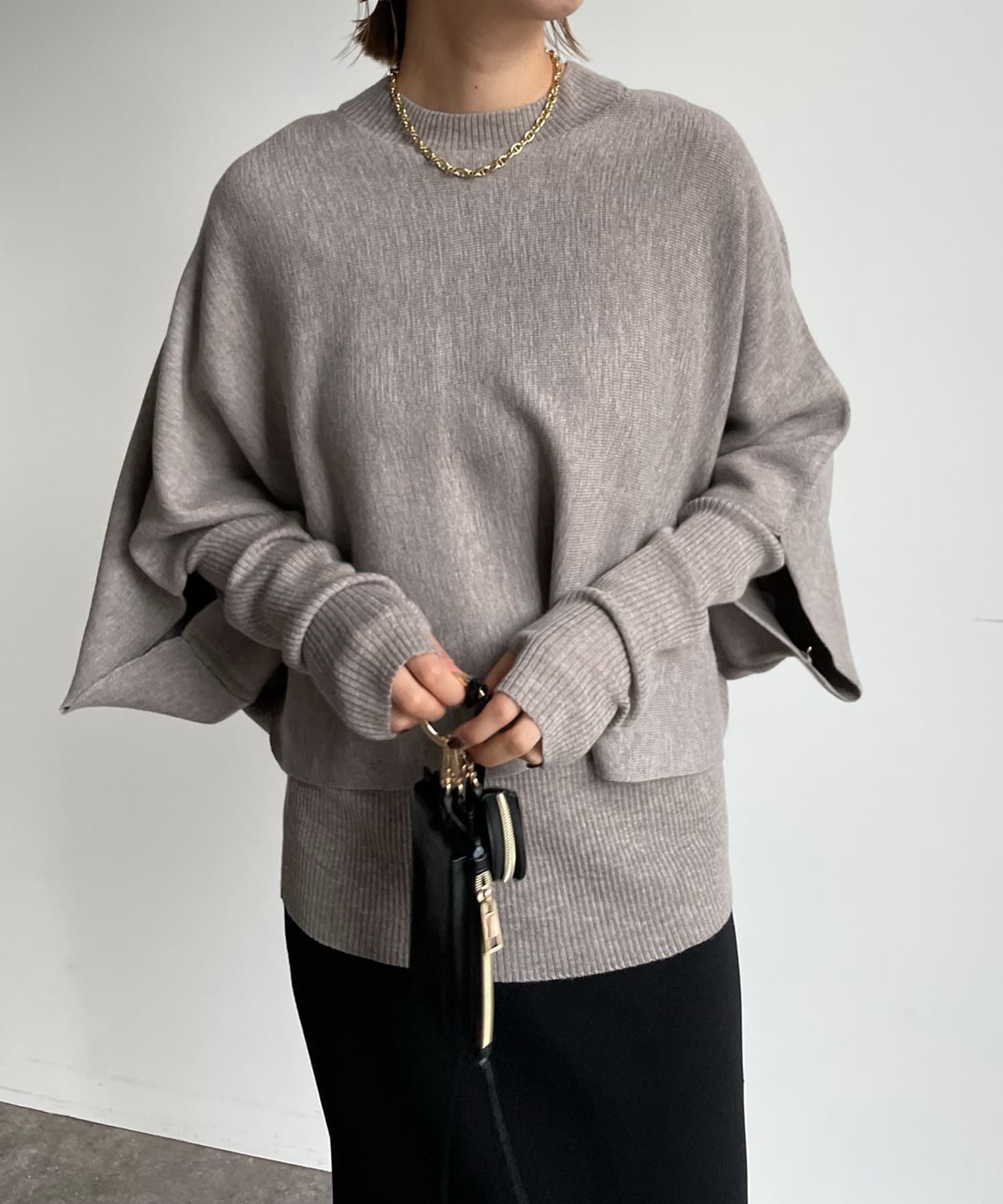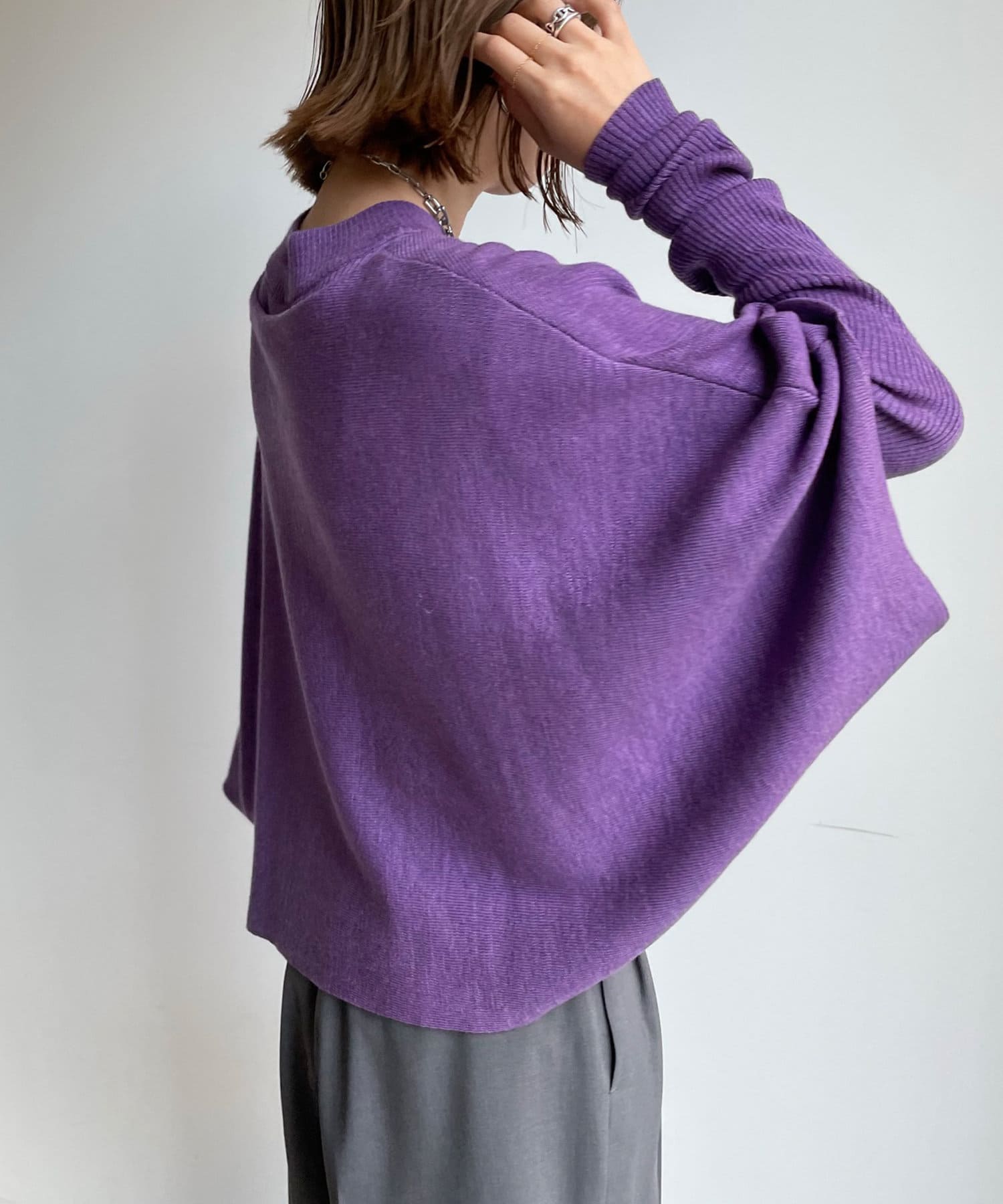 ゆったりポンチョシルエットのニットと、細身のリブニットがセットになったお得感◎のアイテム。