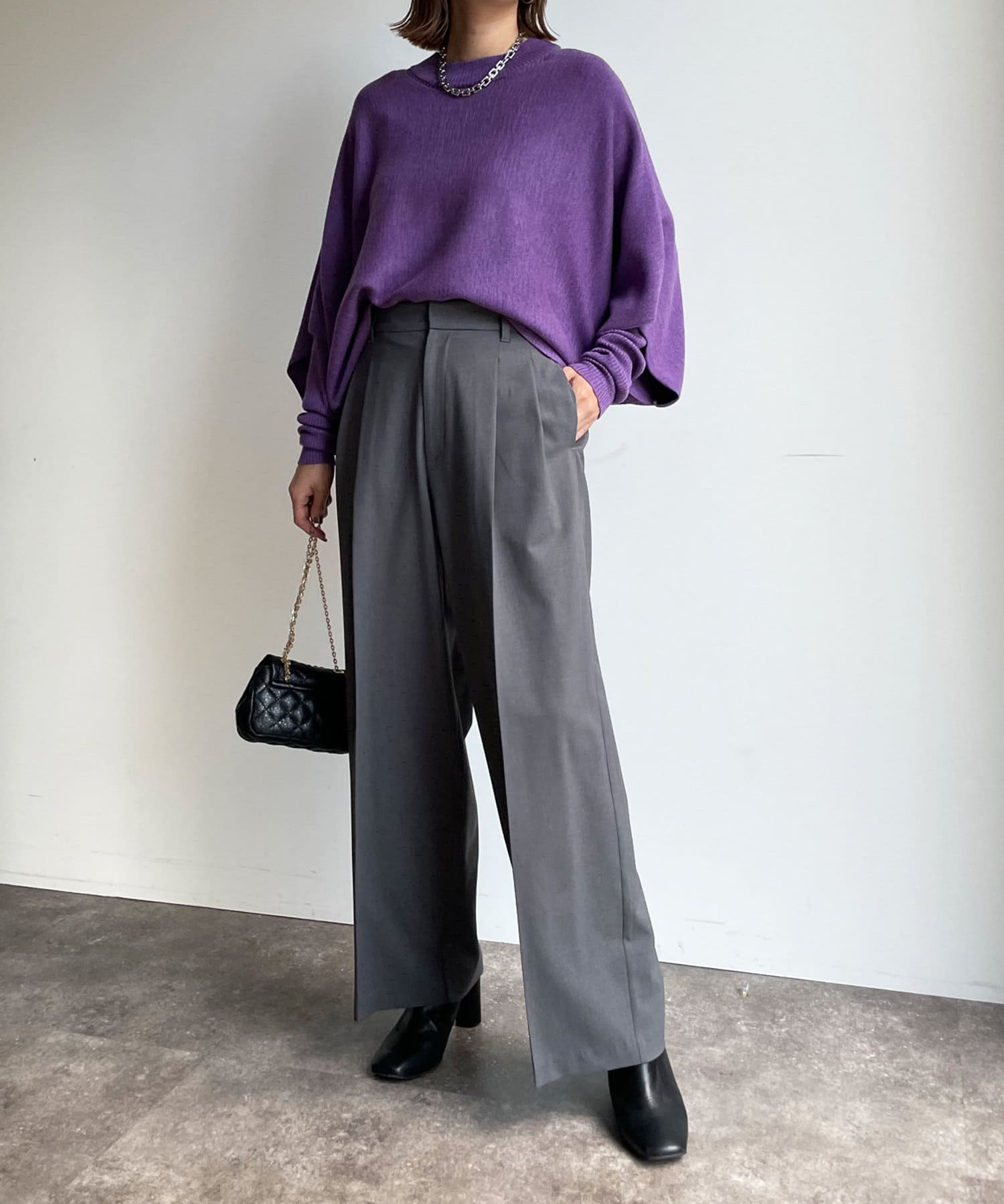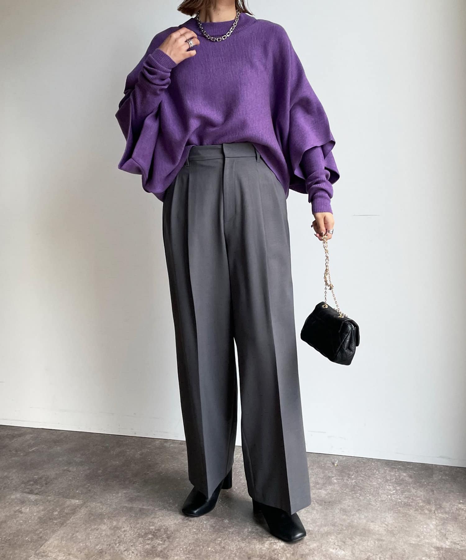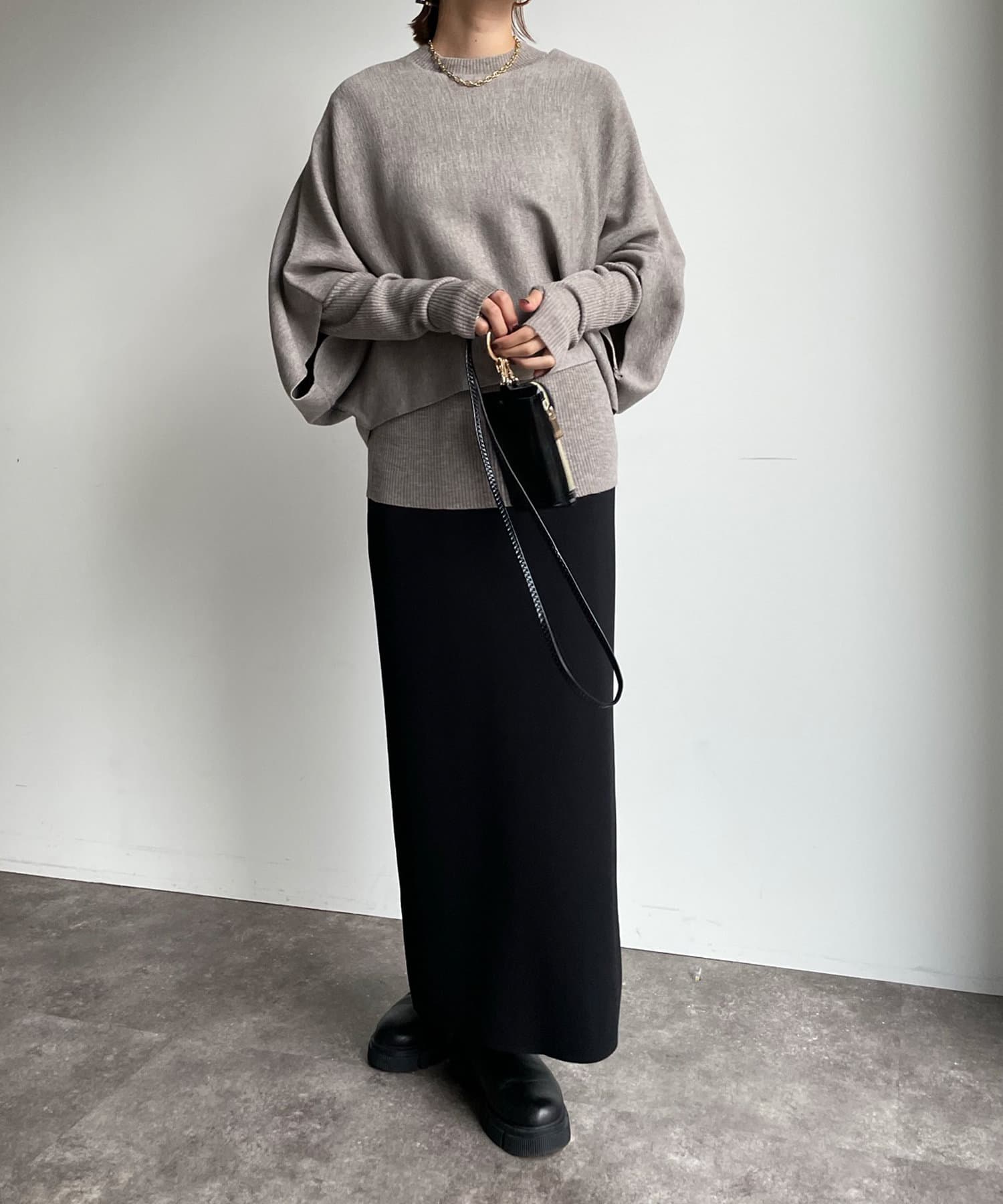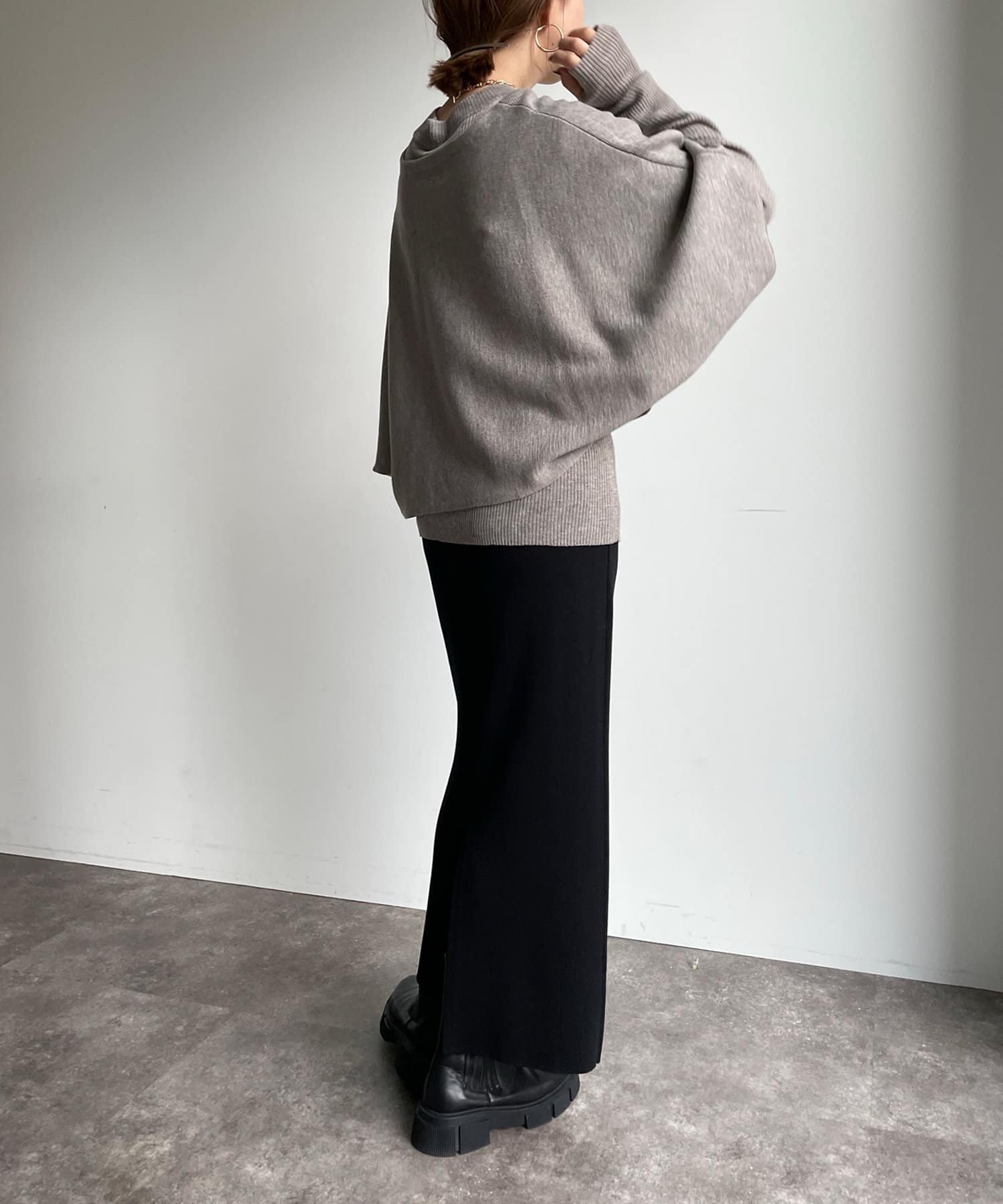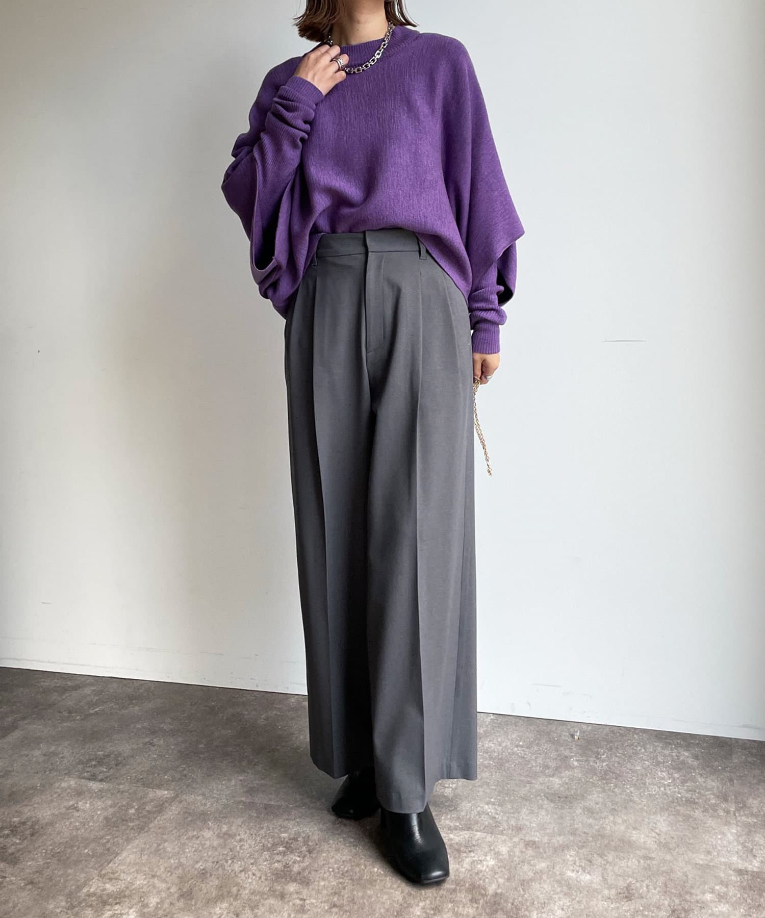 同色でシンプルながら、それぞれ編地とシルエットが違うので別々に単品で着回すと印象が違うコーディネートもお楽しみ頂けます!