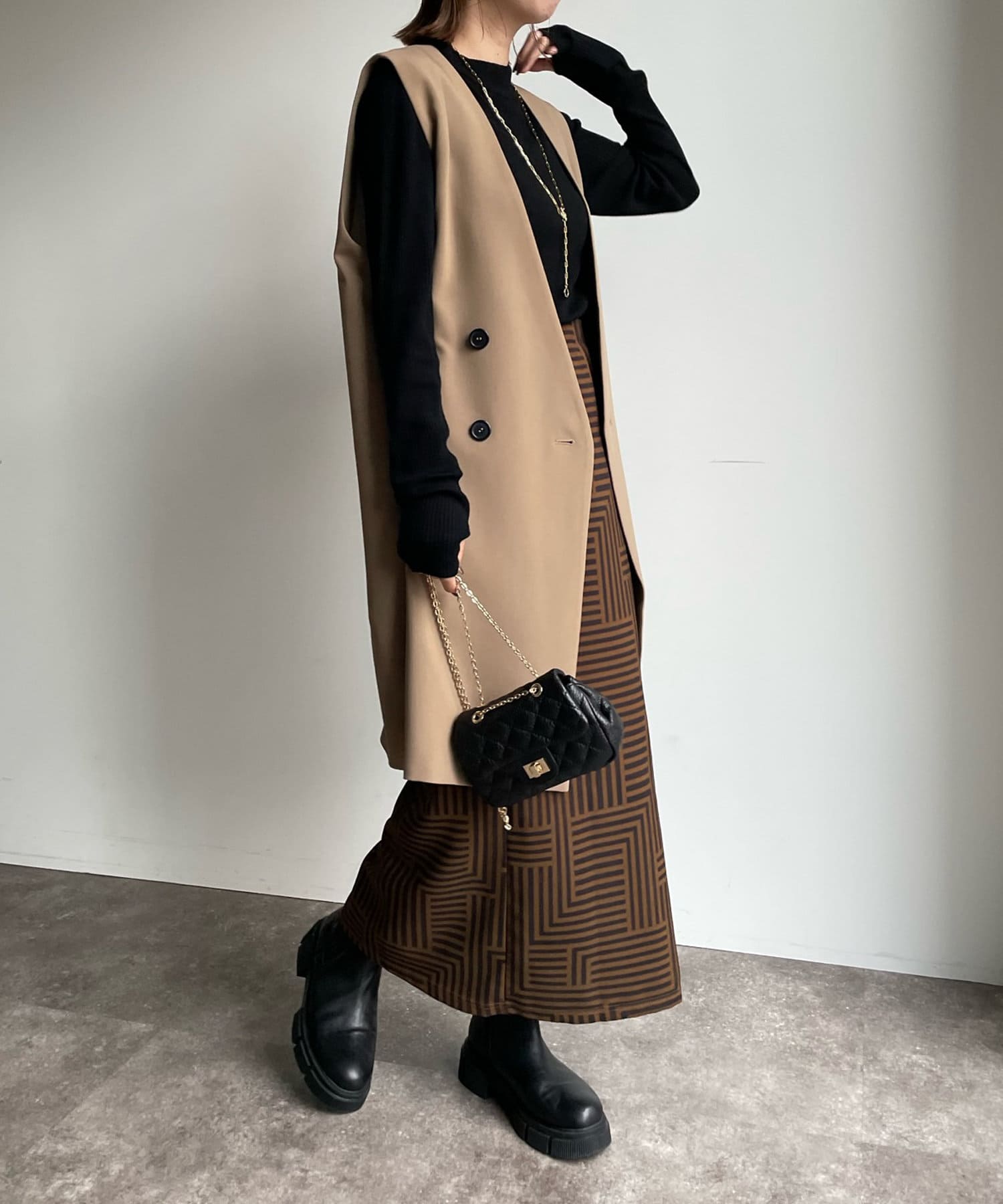 パンツスタイルでカッコよくも、スッキリラインのスカート合わせで大人なモードスタイルもオススメです。