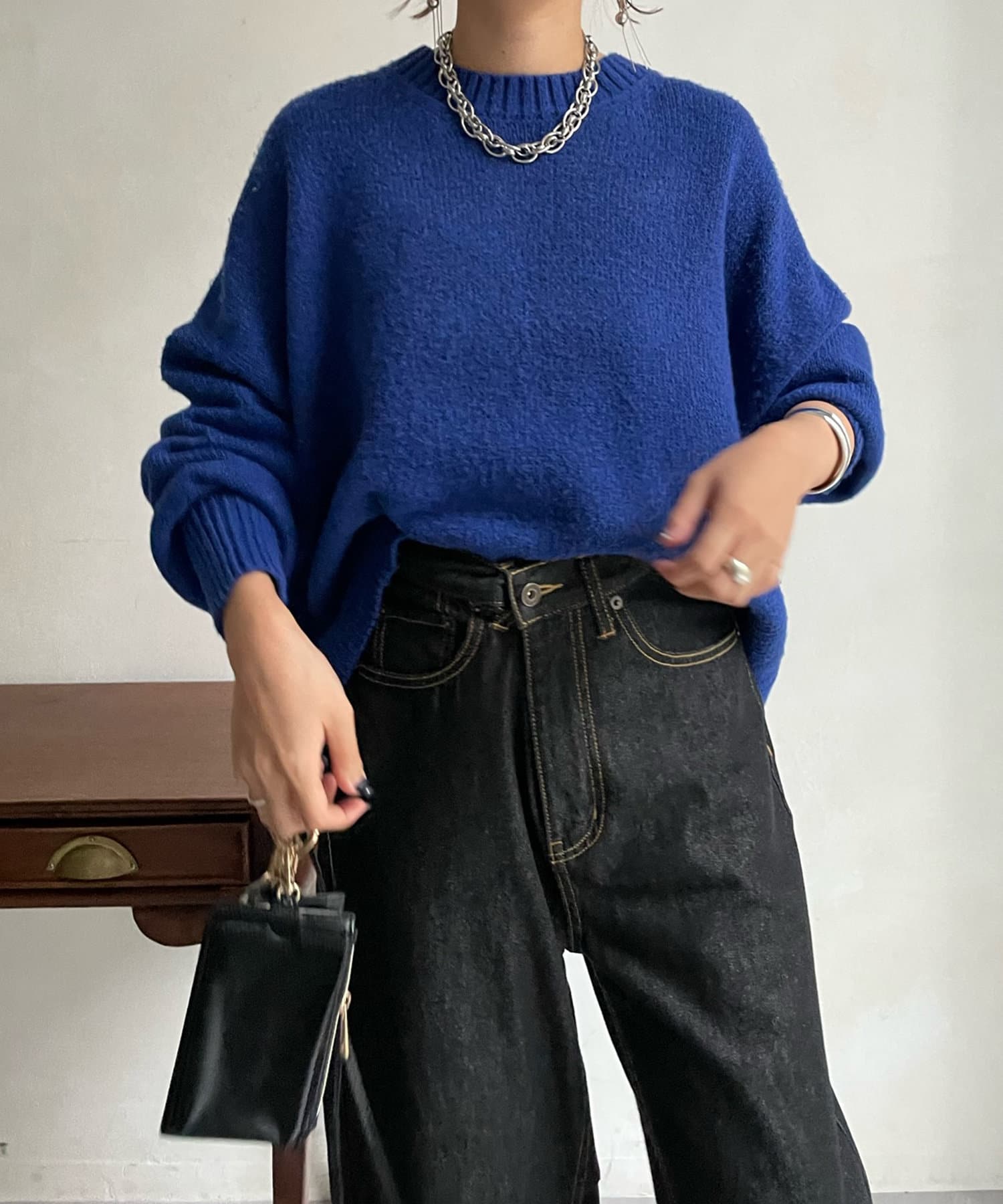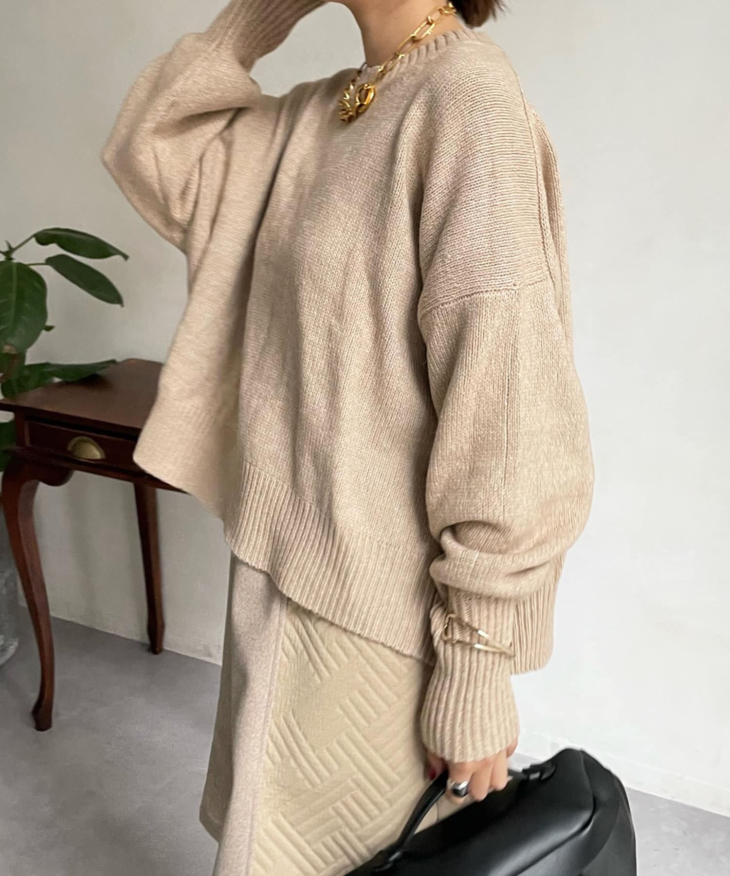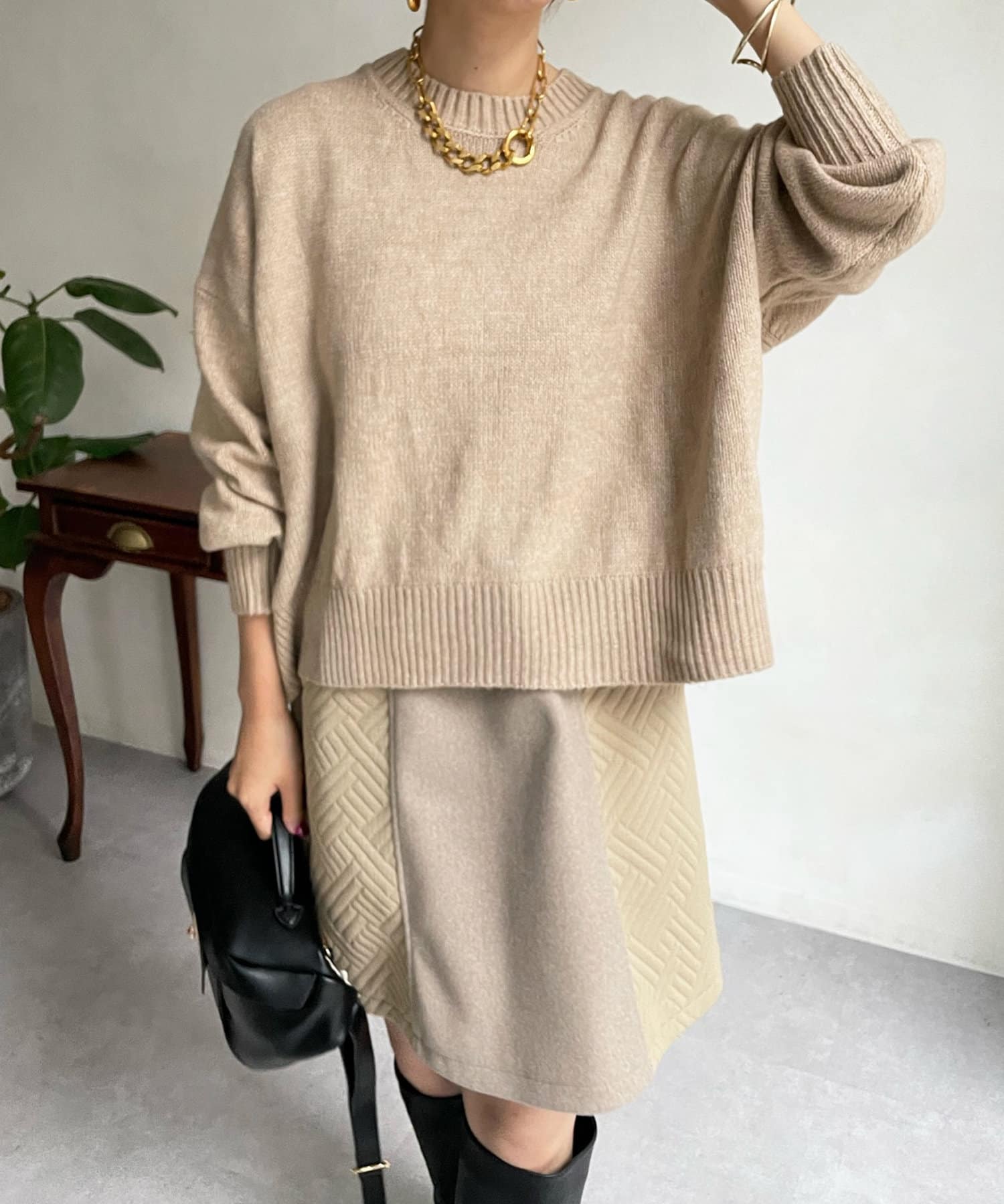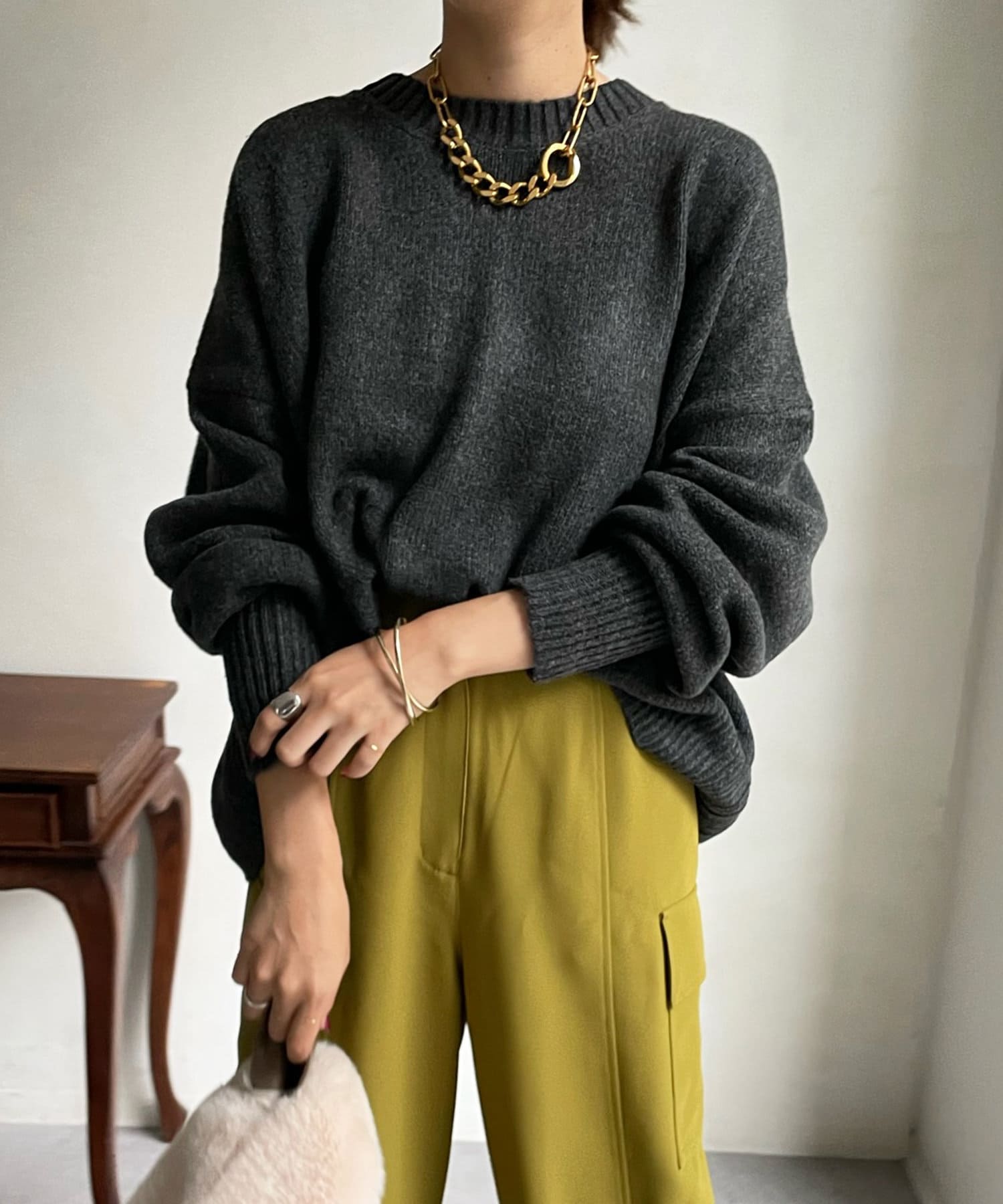 汎用性の高いシンプルなニット。