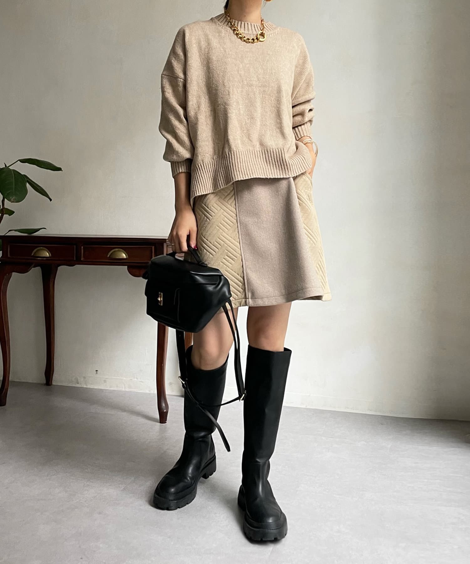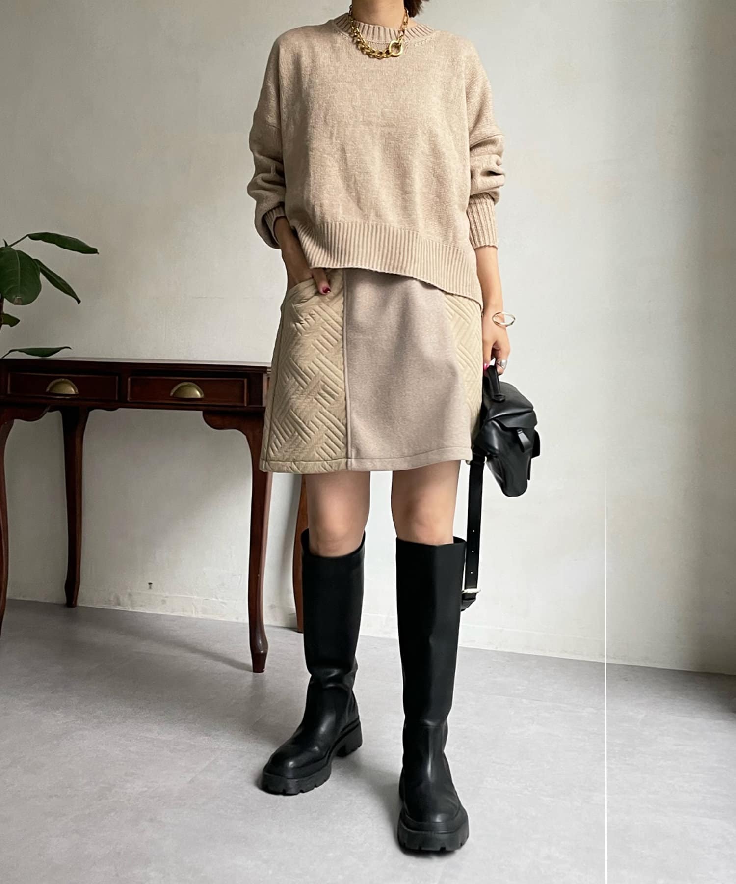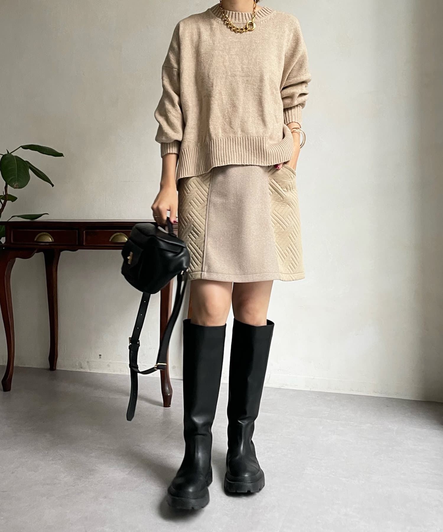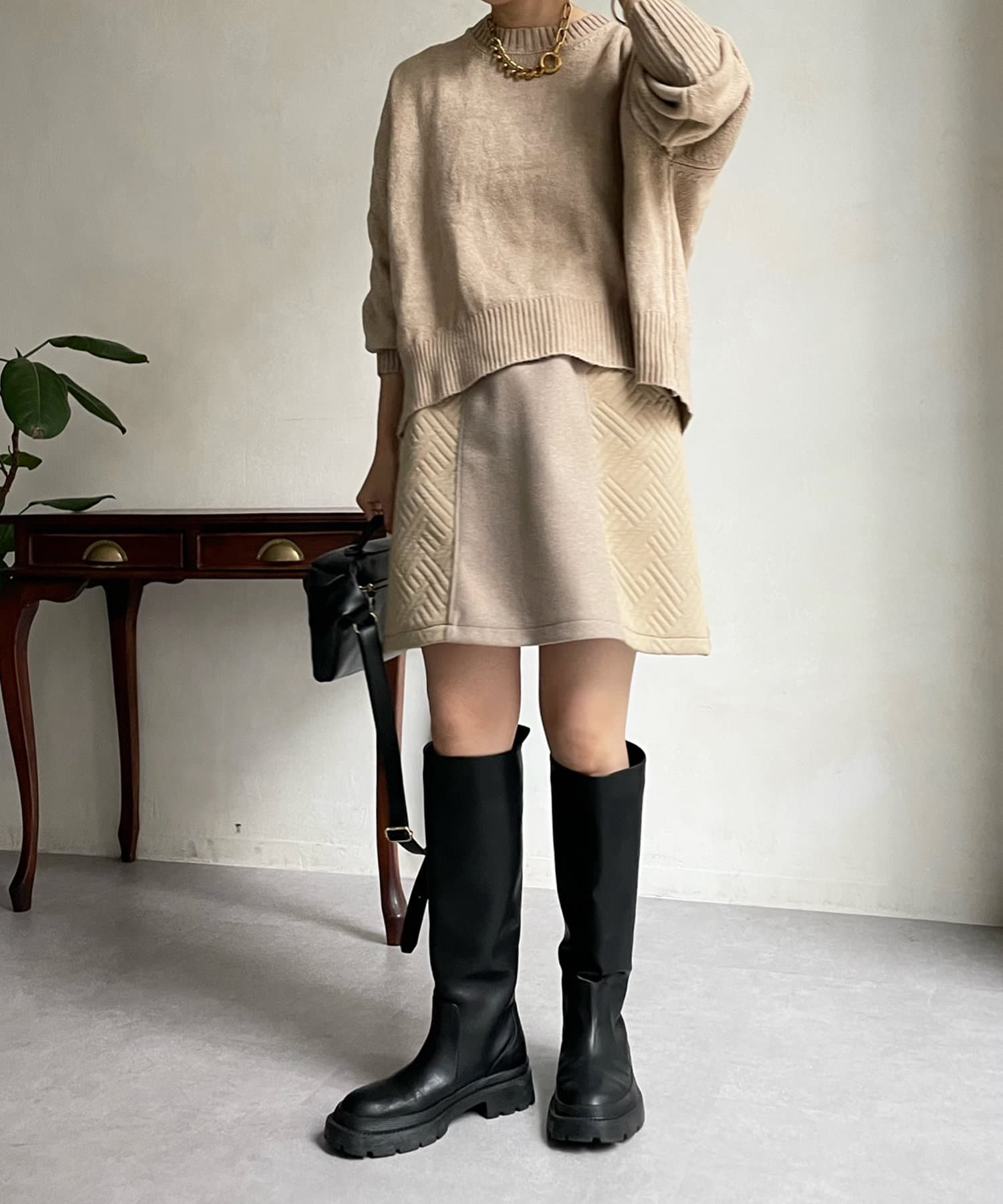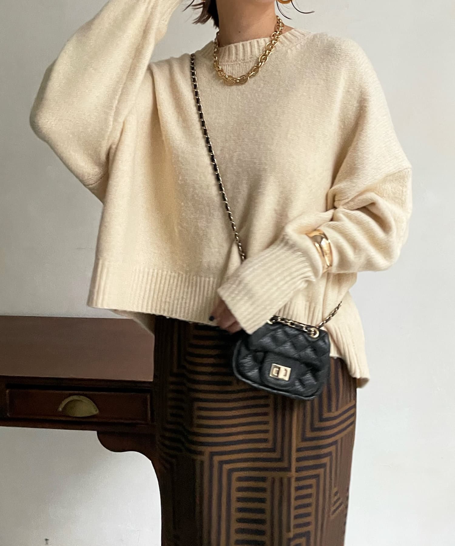 汎用性の高いシンプルなニット。