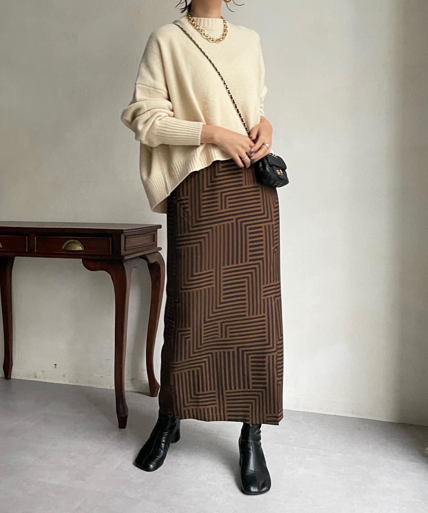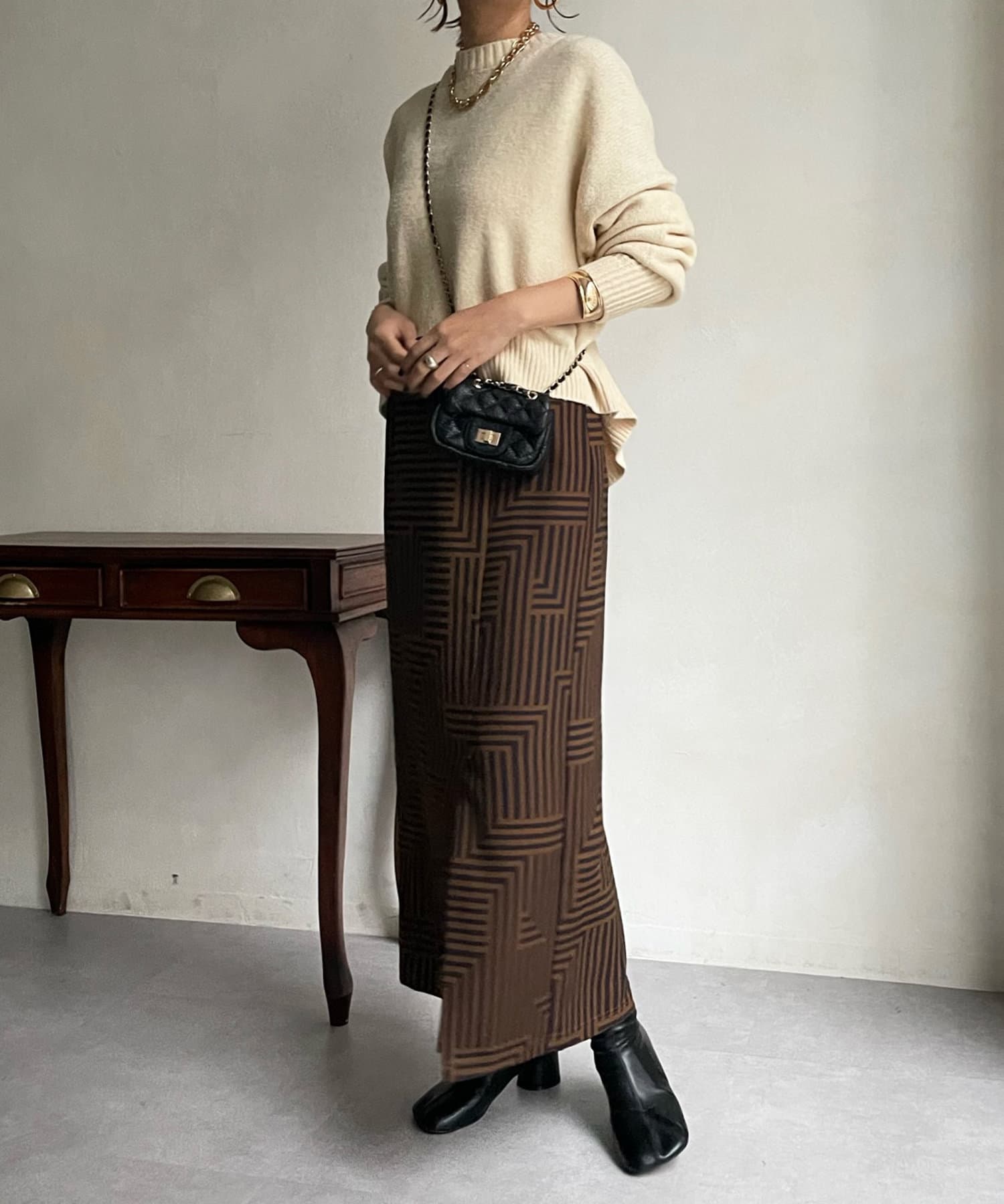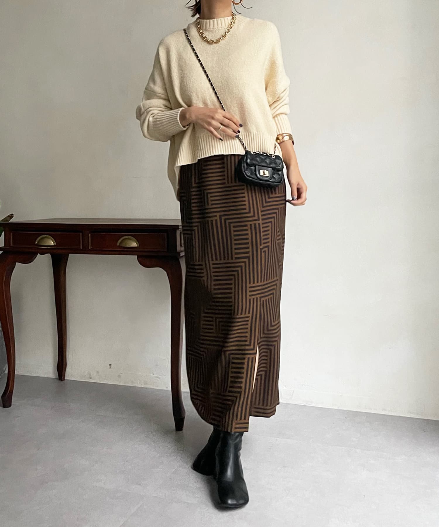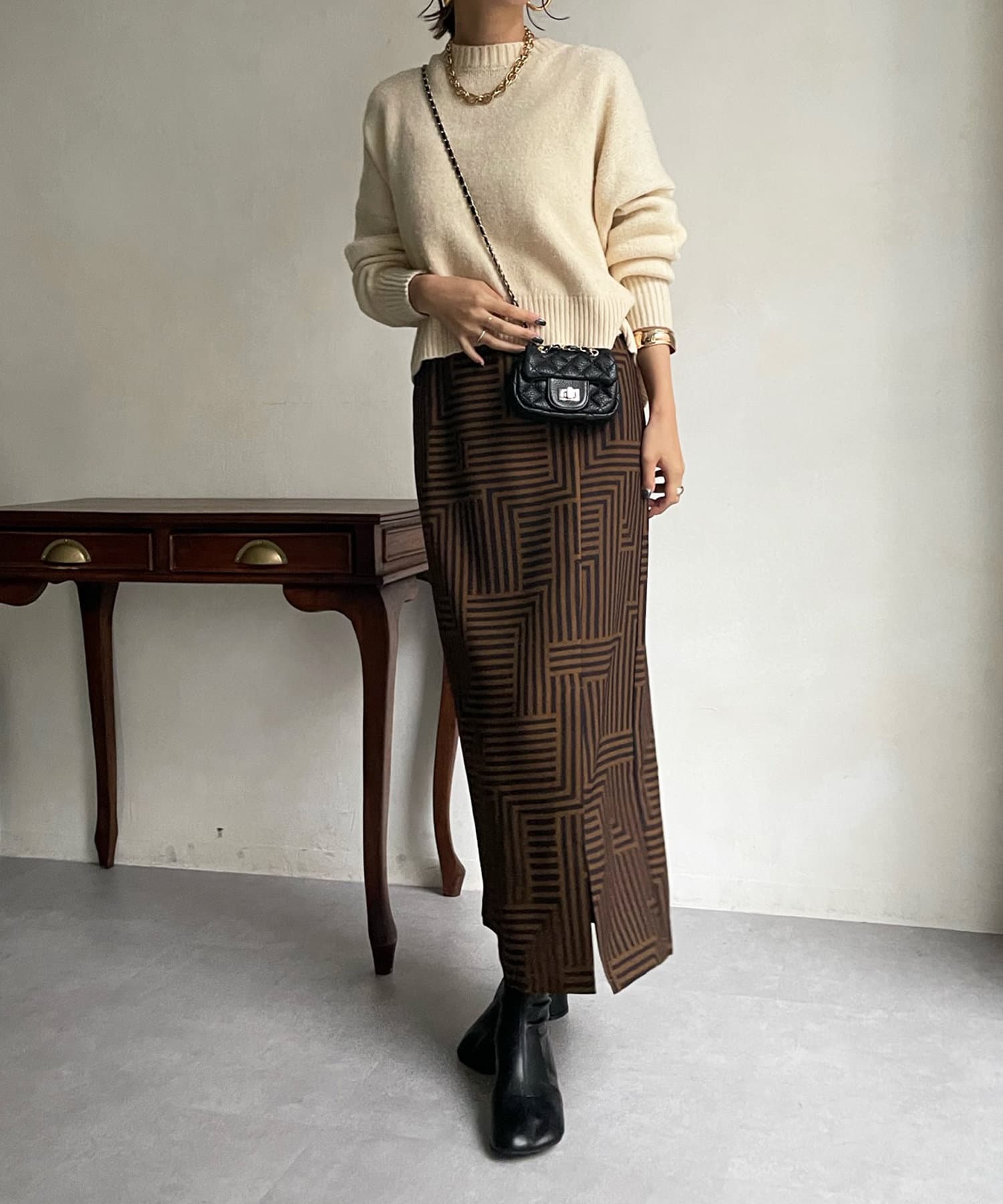 汎用性の高いシンプルなニット。