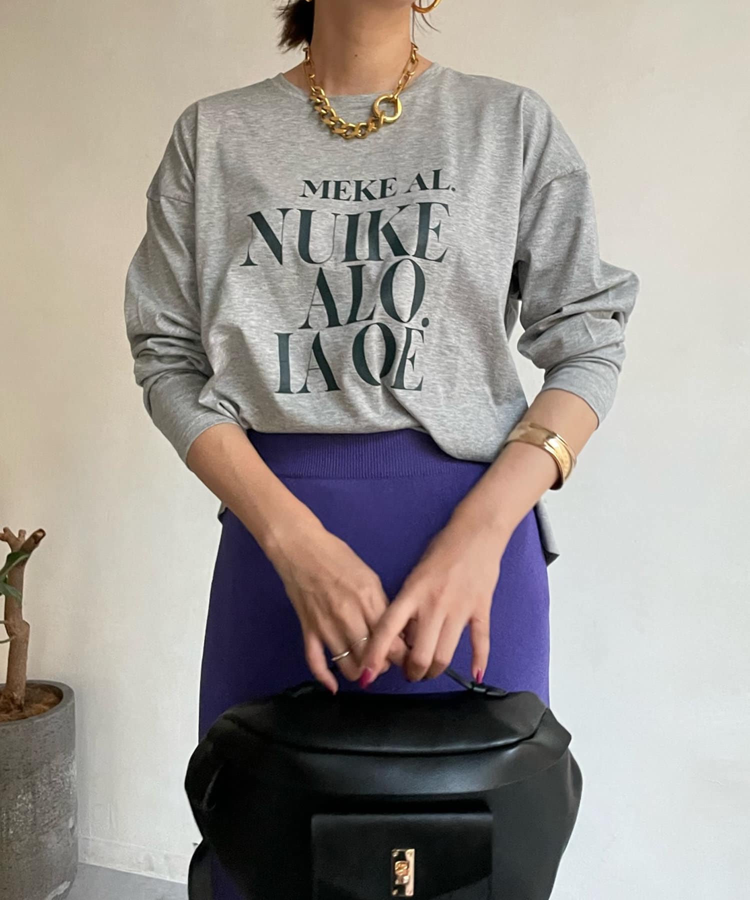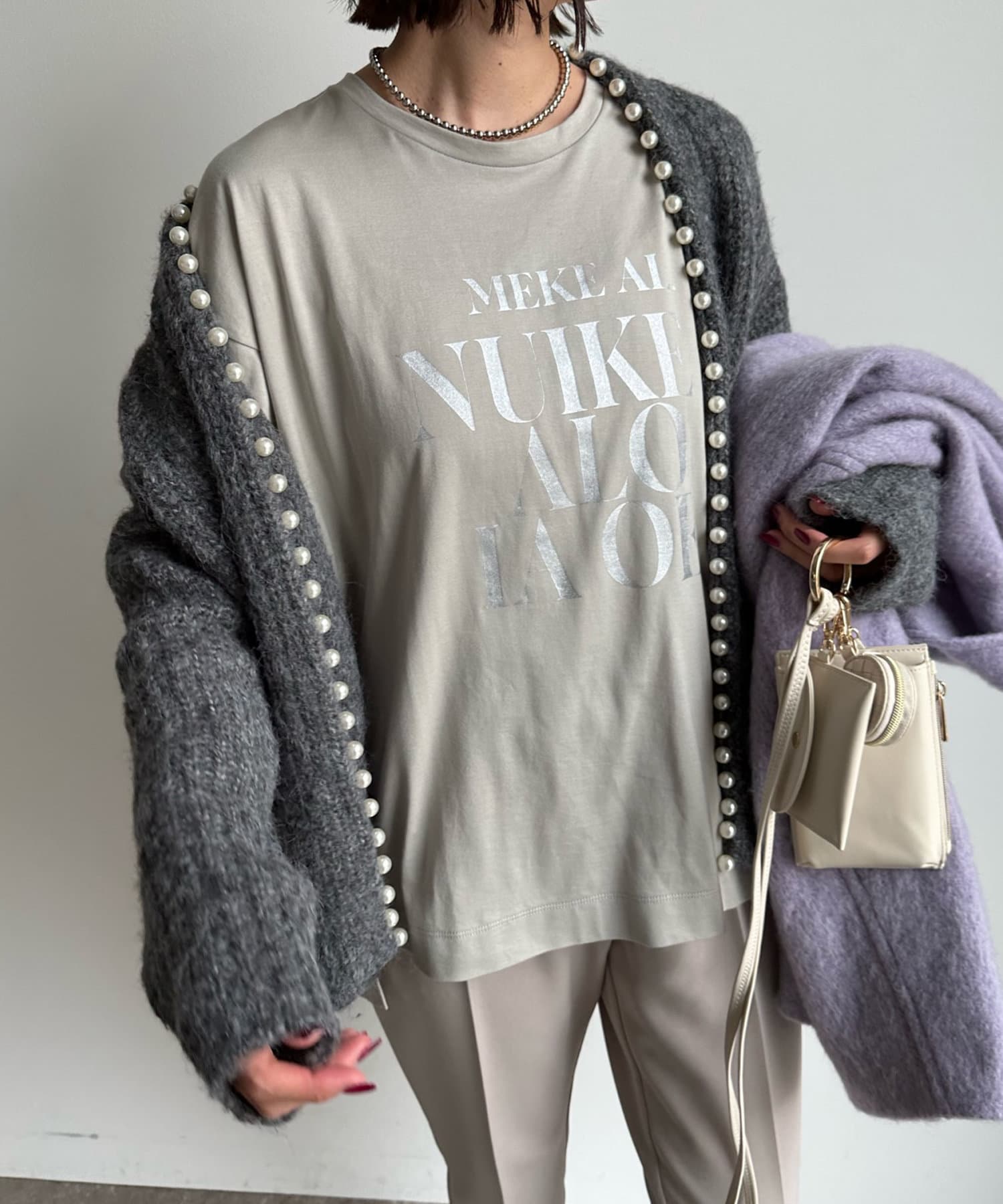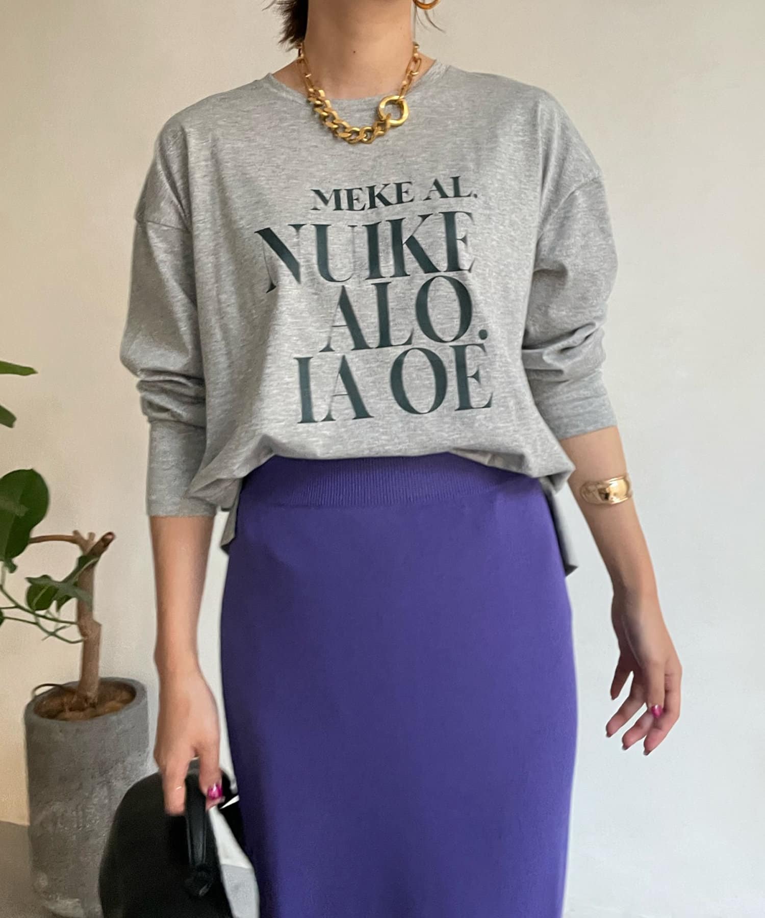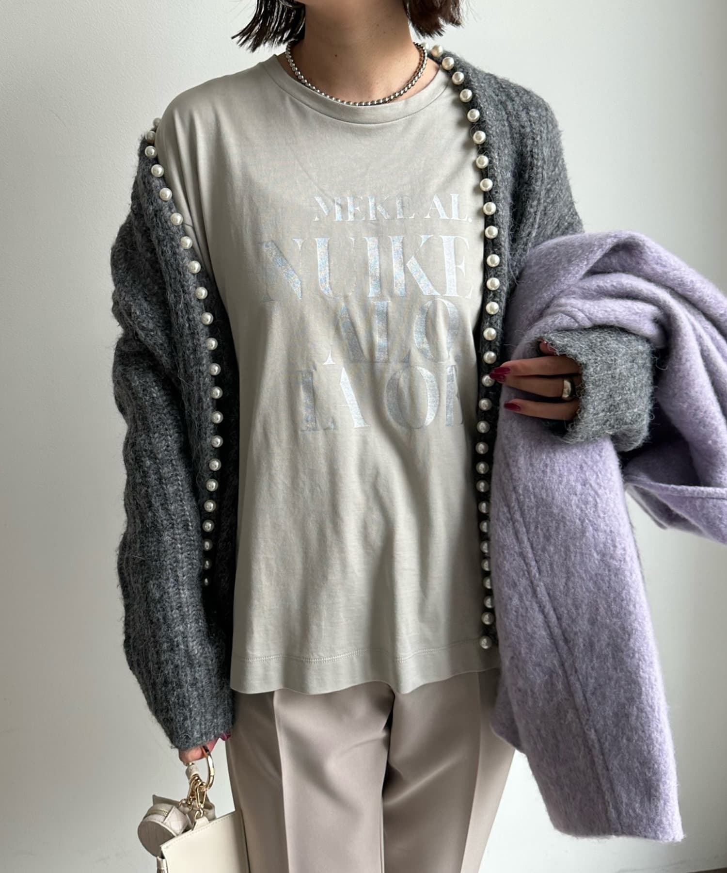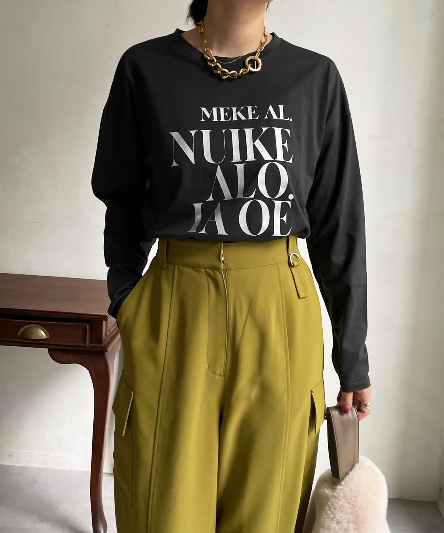 カジュアルながらもスタイリッシュに決まるロゴteeは、羽織りアイテムやカーディガンのインナーにも活躍してくれる優れものですよ!