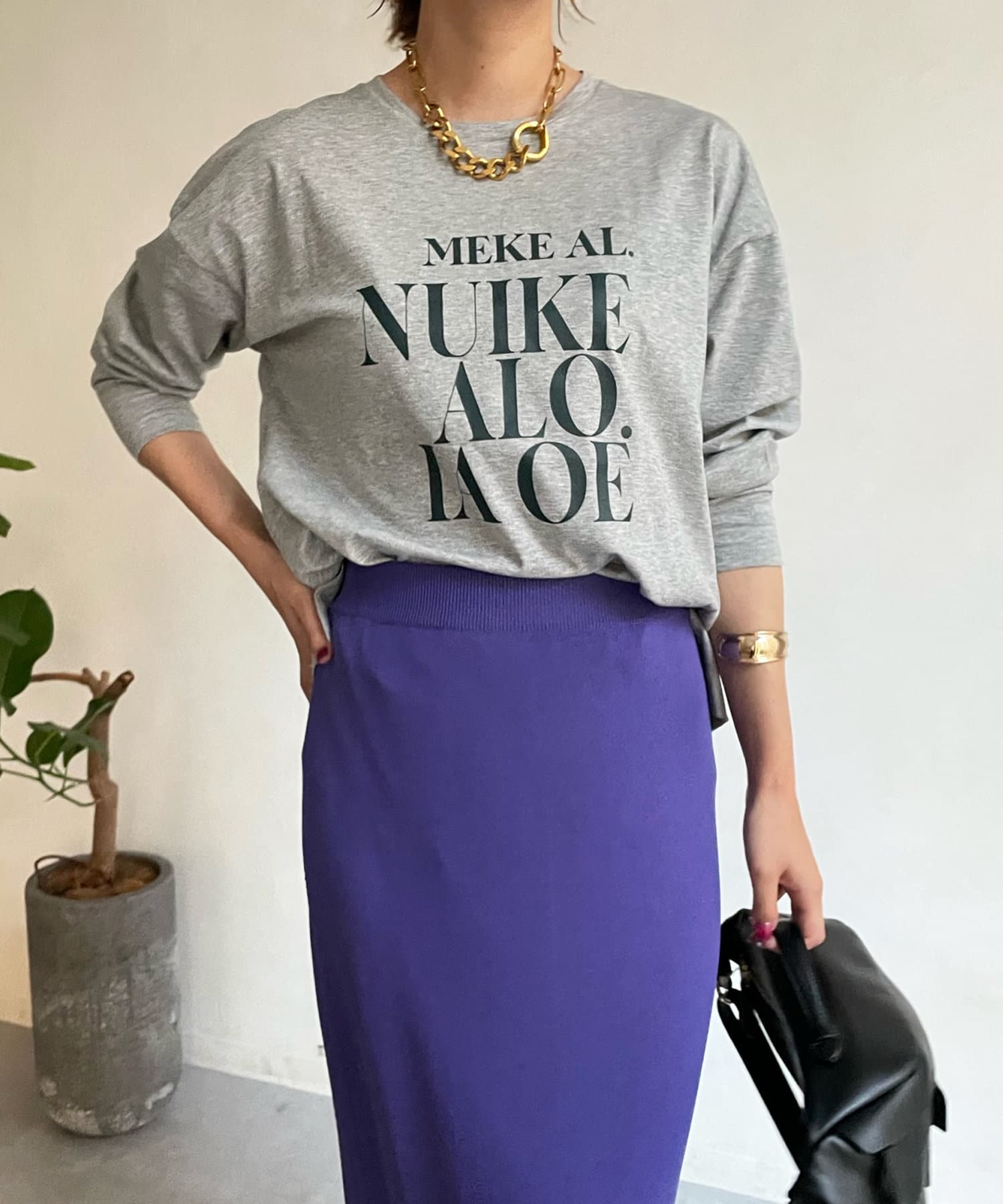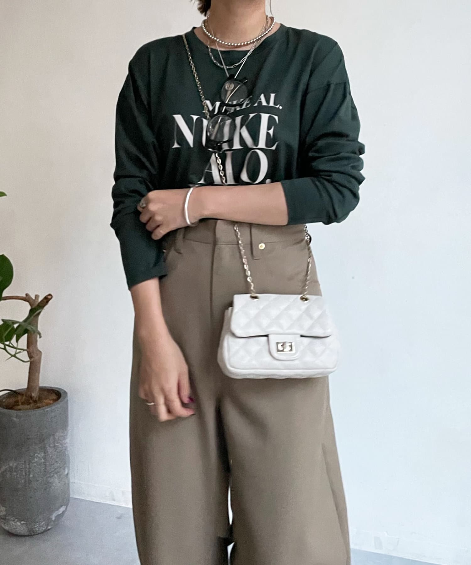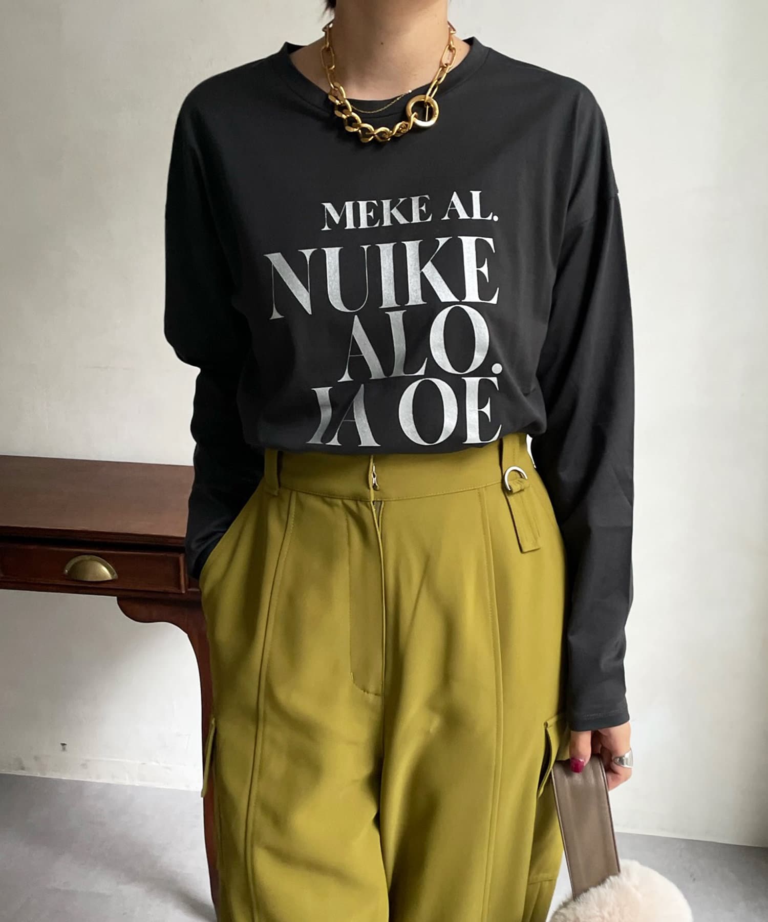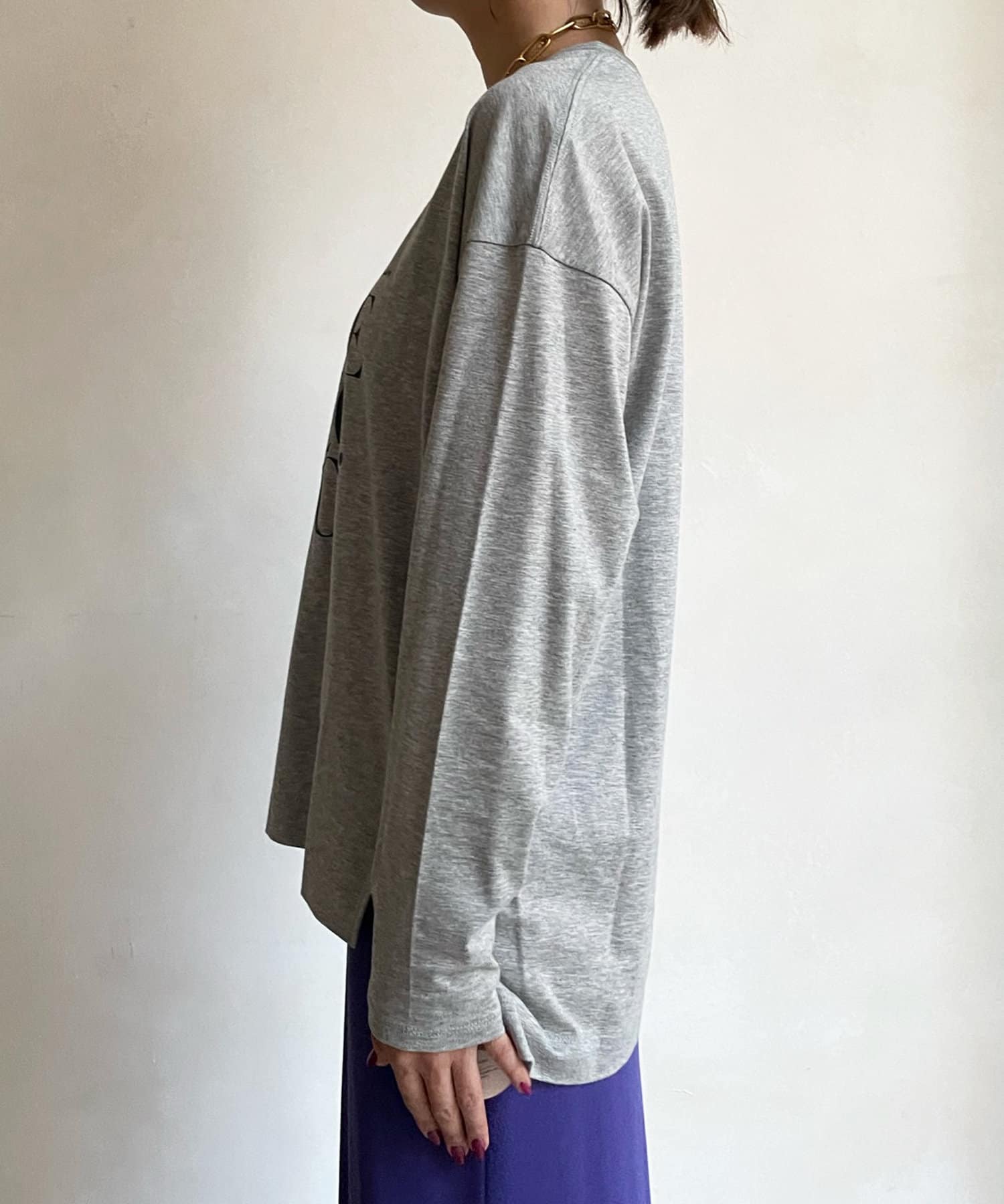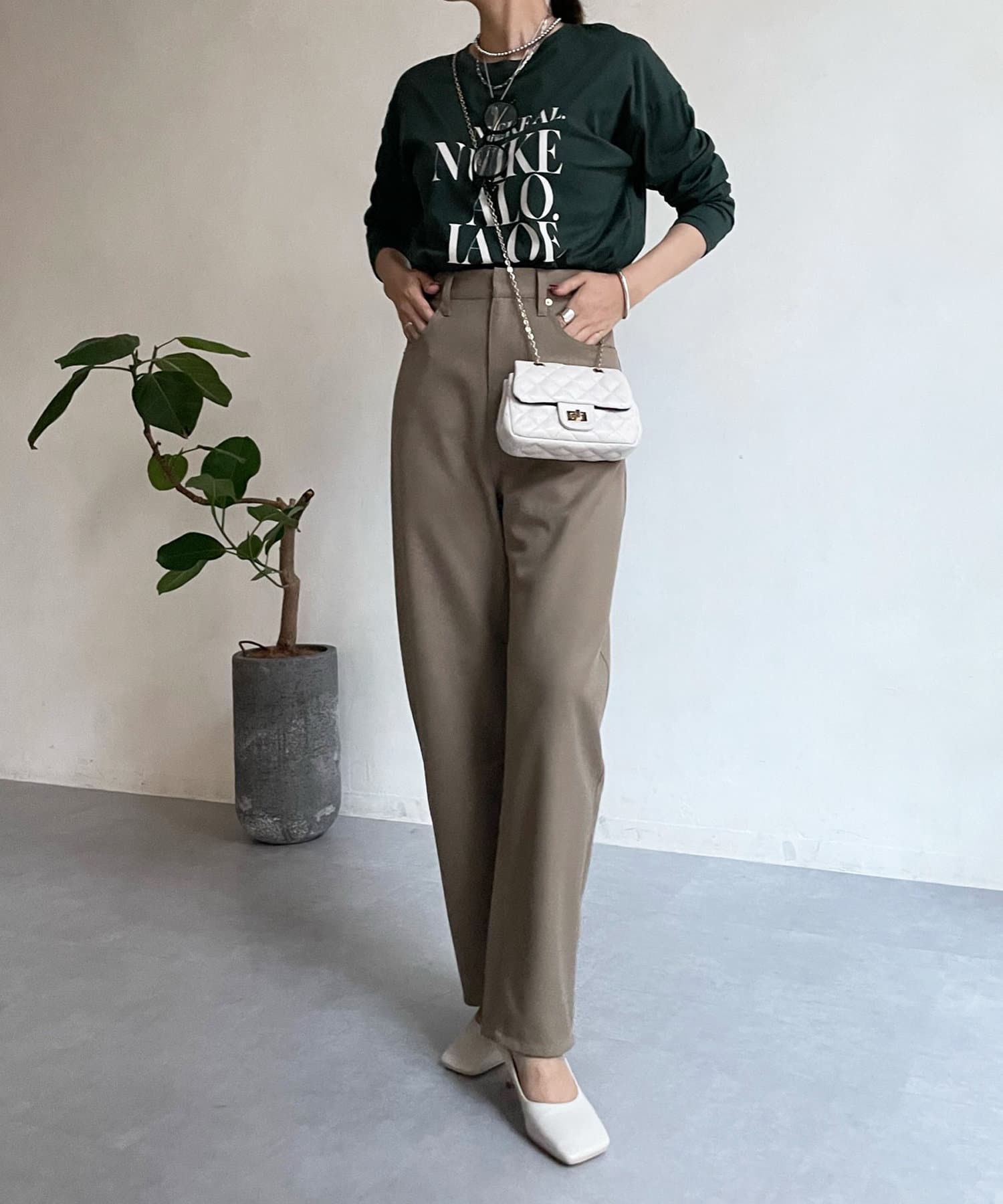 カジュアルながらもスタイリッシュに決まるロゴteeは、羽織りアイテムやカーディガンのインナーにも活躍してくれる優れものですよ!