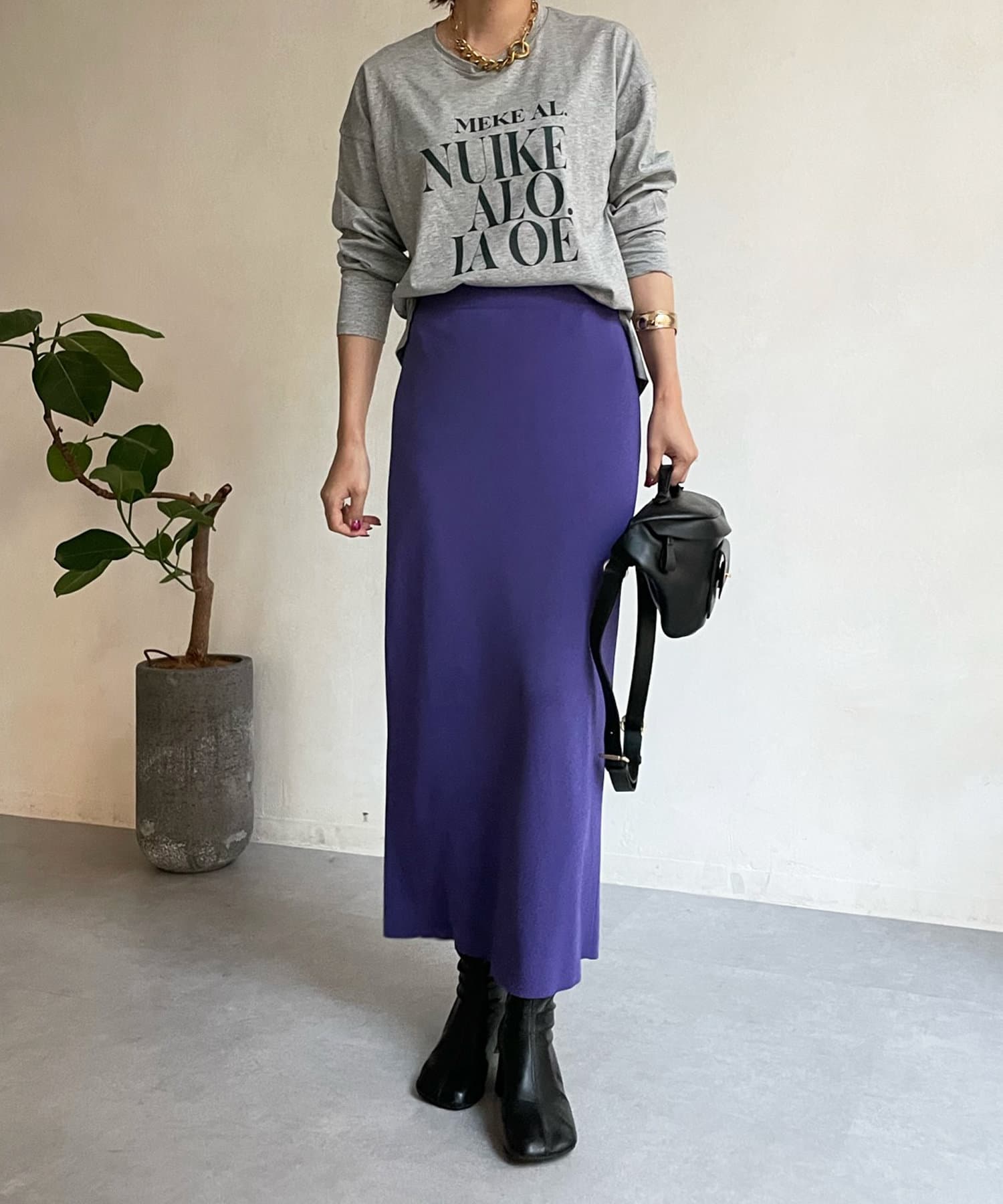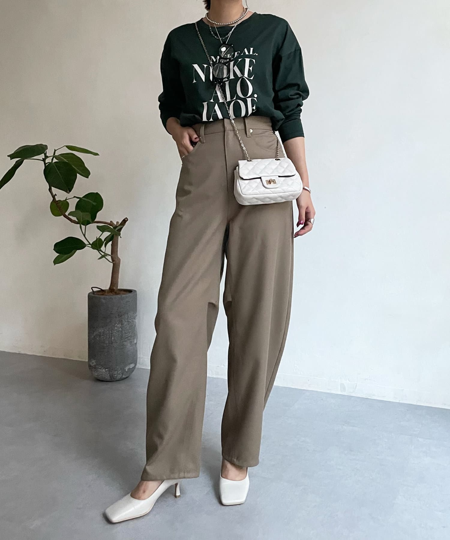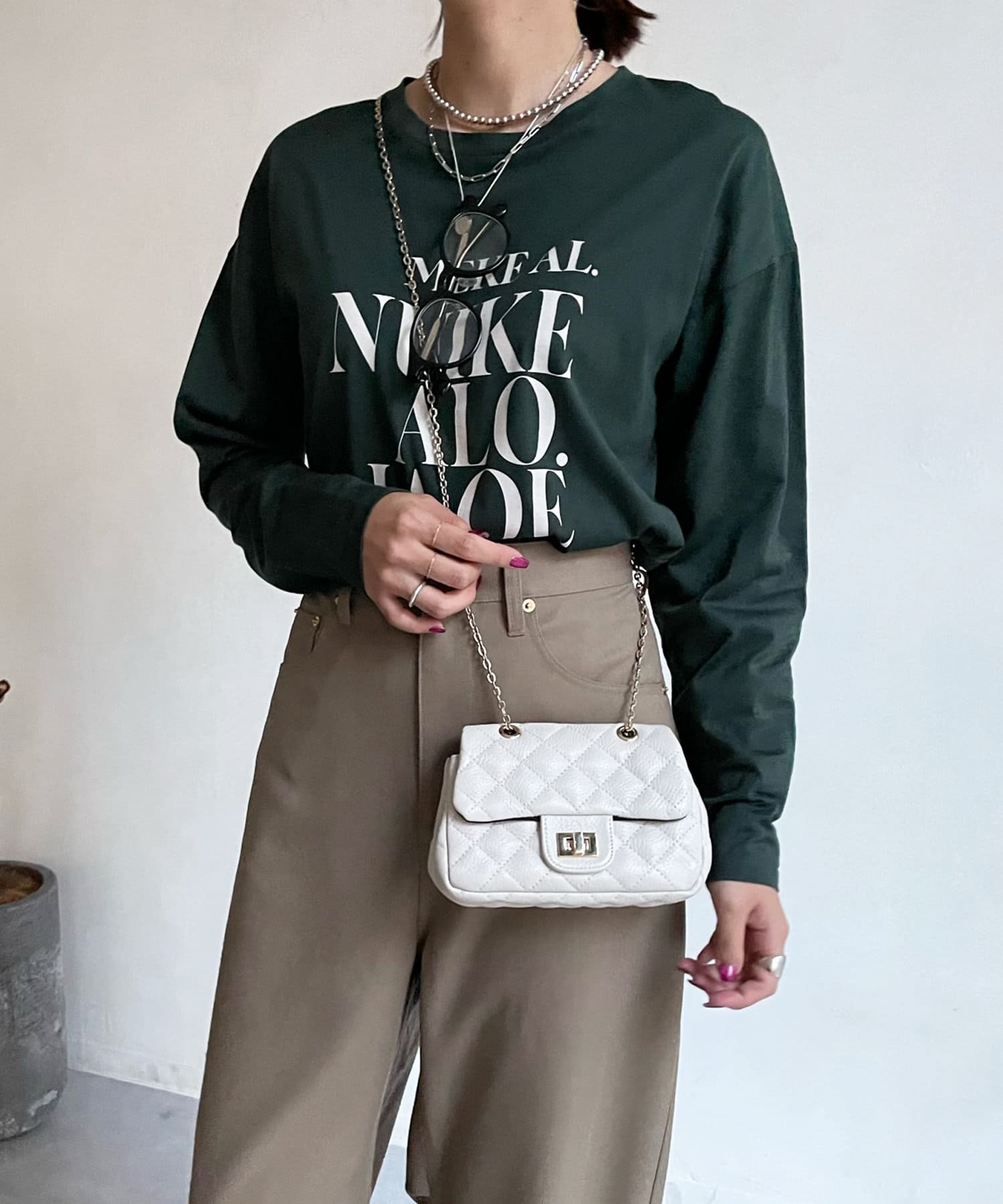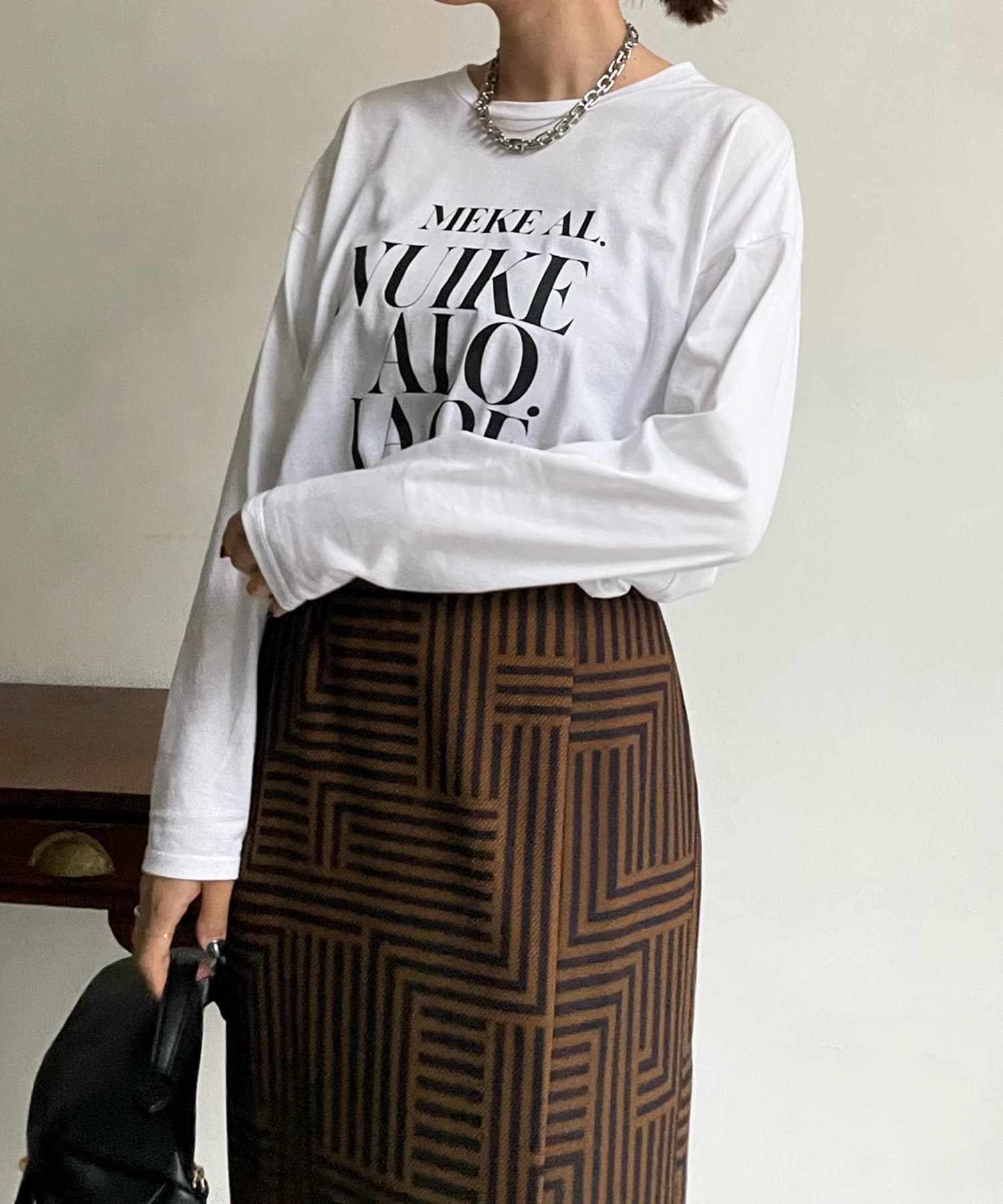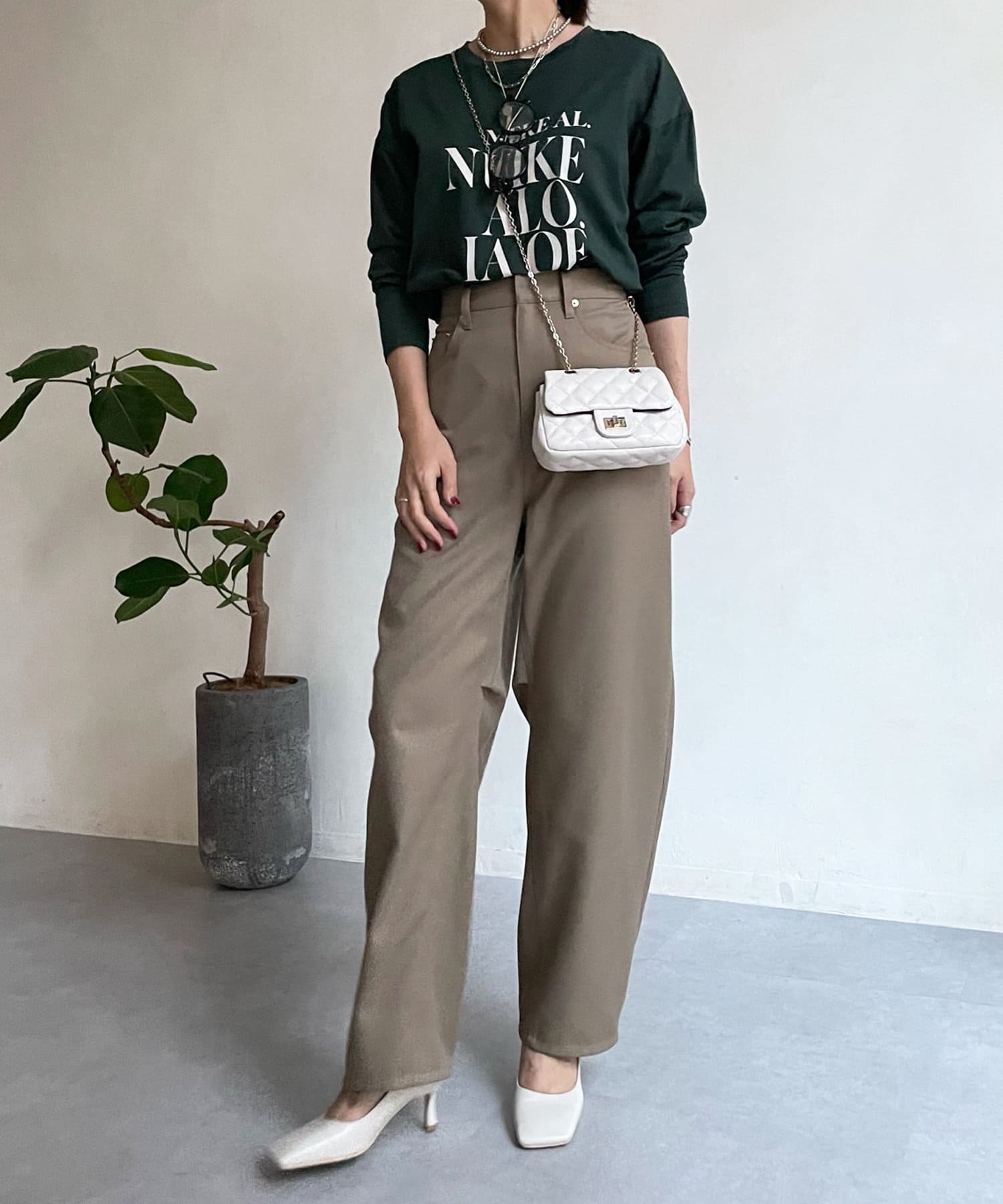 カジュアルながらもスタイリッシュに決まるロゴteeは、羽織りアイテムやカーディガンのインナーにも活躍してくれる優れものですよ!