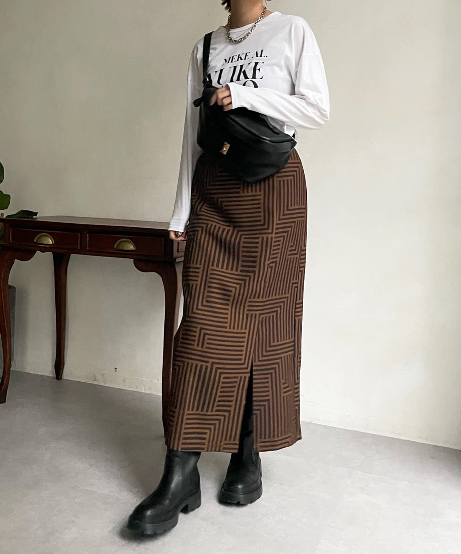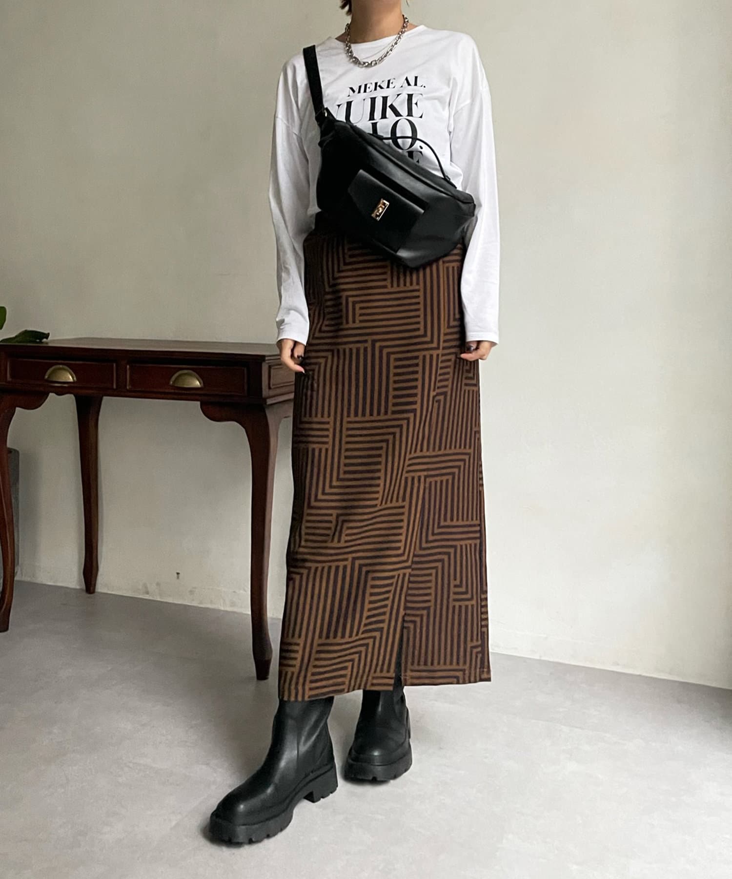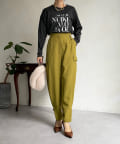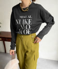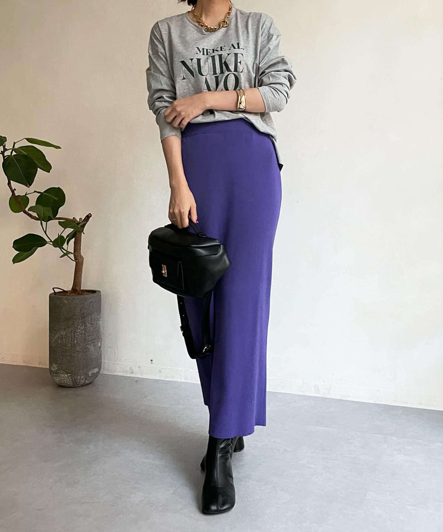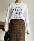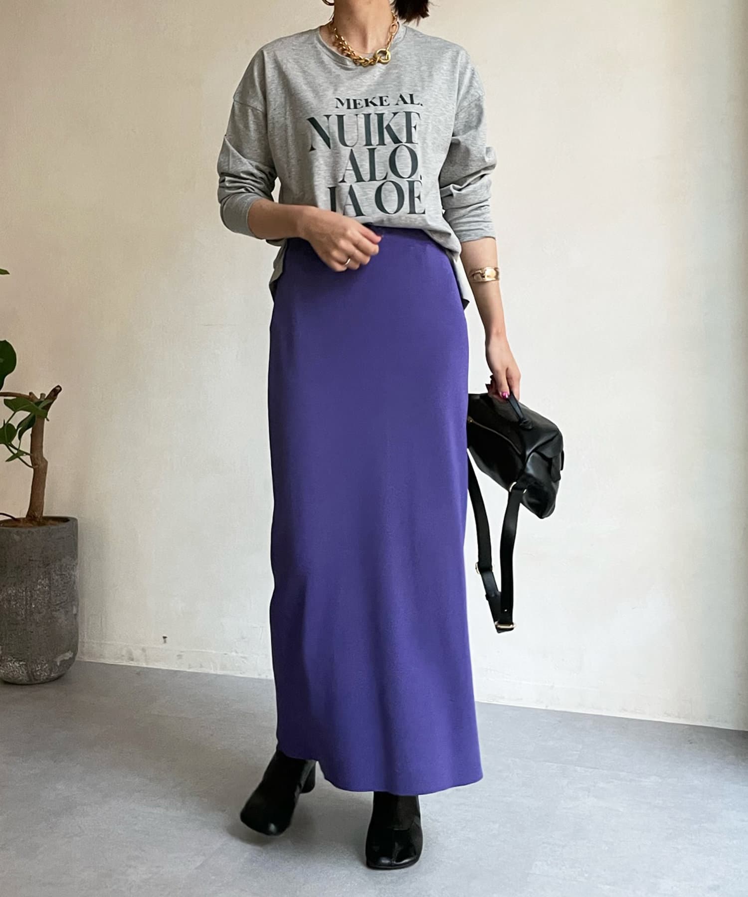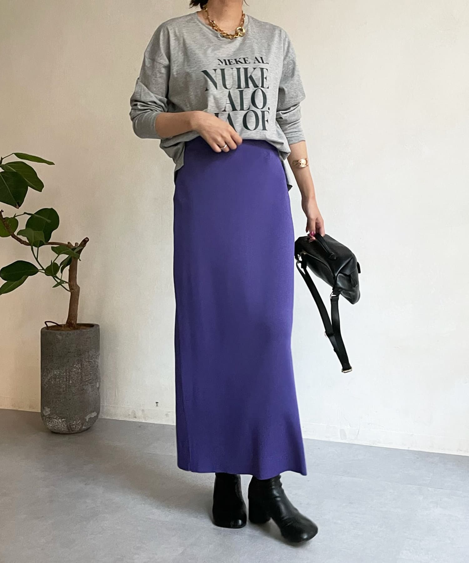 カジュアルながらもスタイリッシュに決まるロゴteeは、羽織りアイテムやカーディガンのインナーにも活躍してくれる優れものですよ!