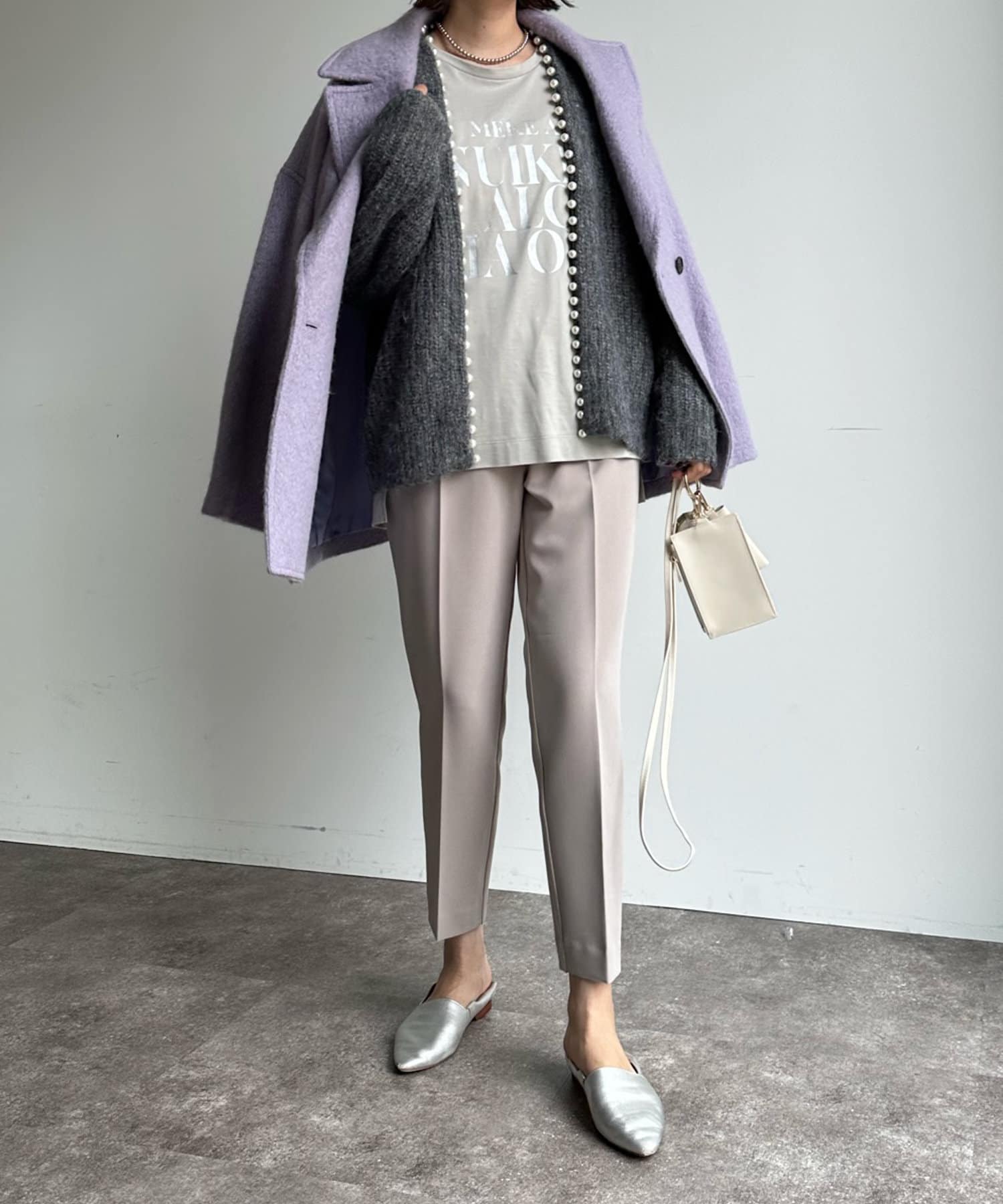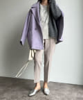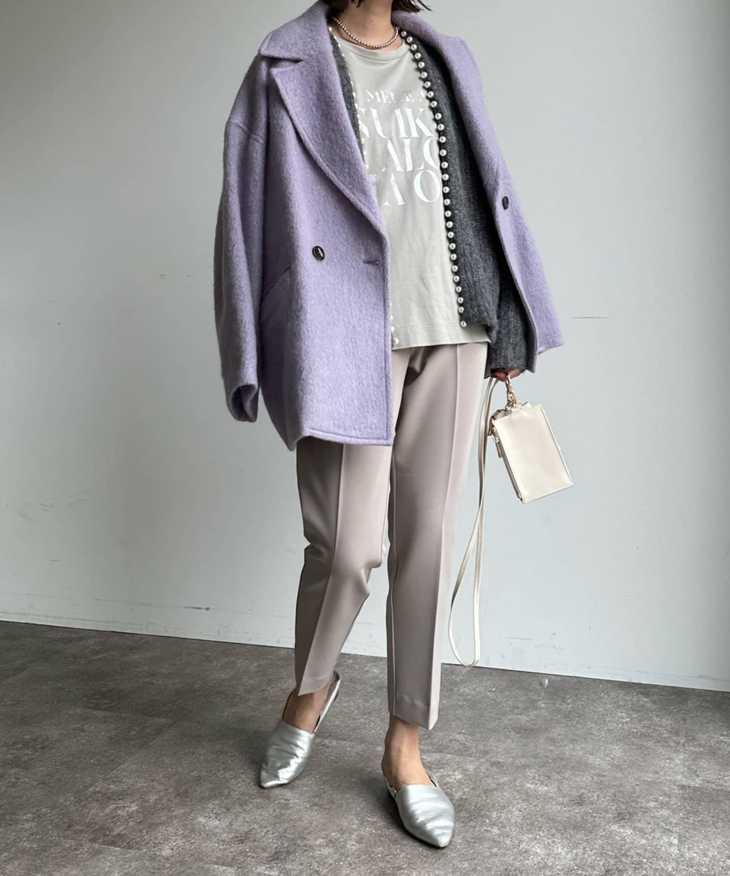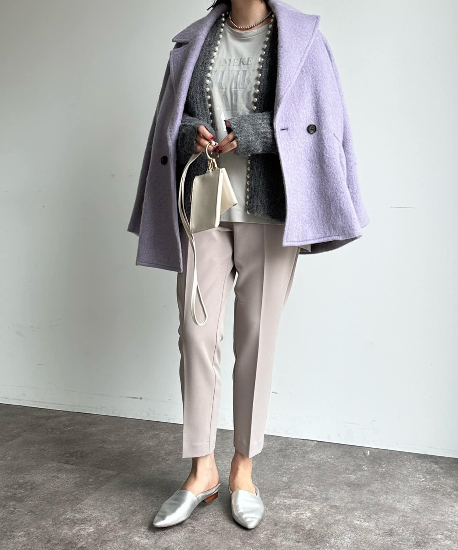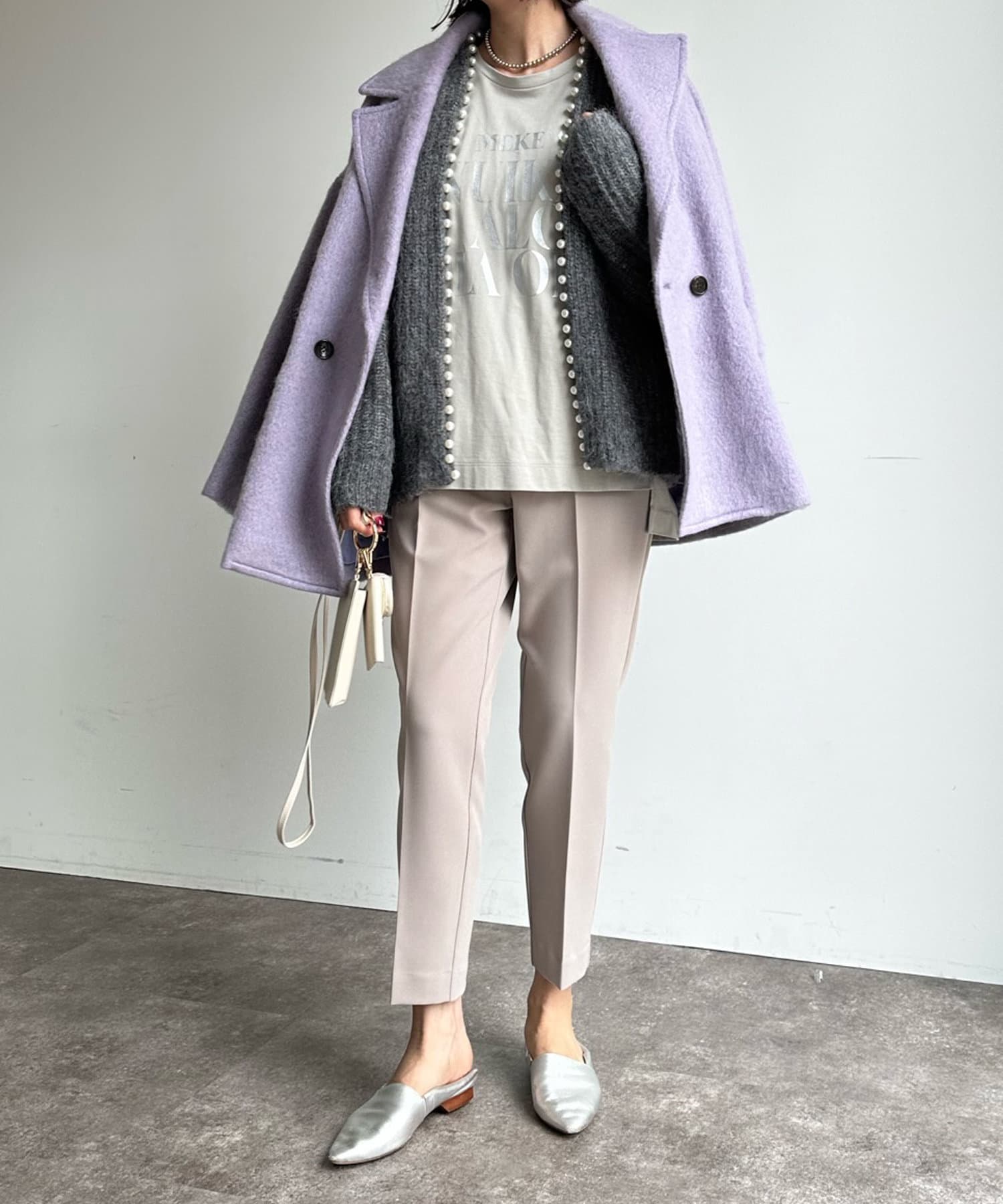 ベーシックなシルエットで、日頃の様々なスタイリングに取り入れやすいのがポイントです。バックはやや長めにし、さり気なく腰回りをカバー。