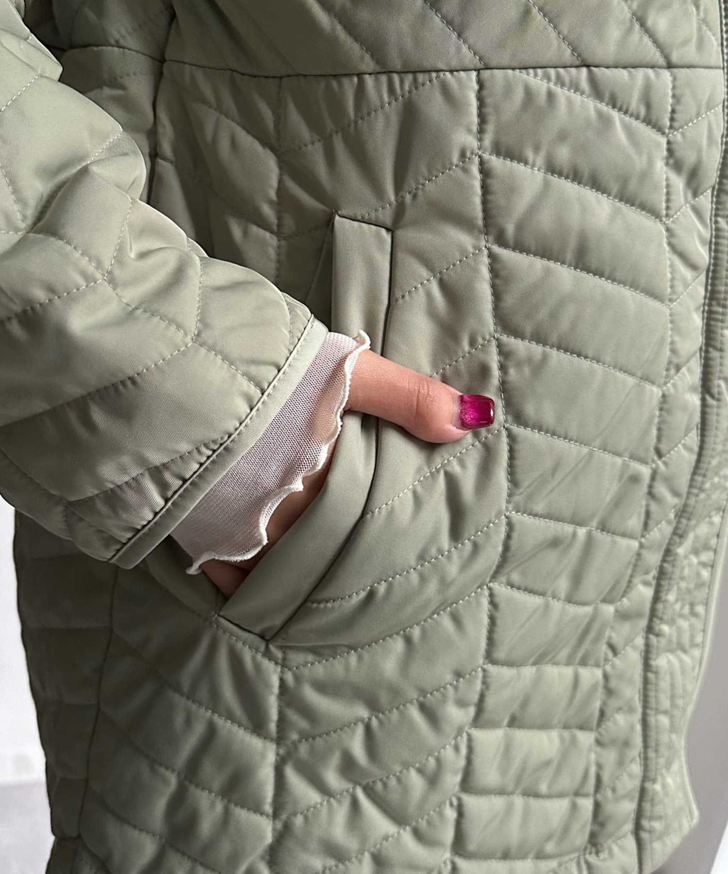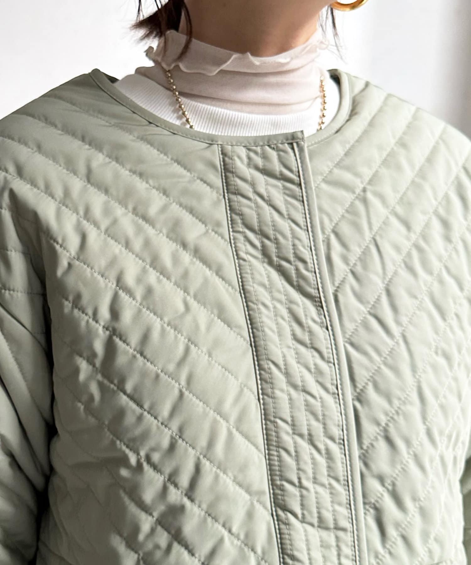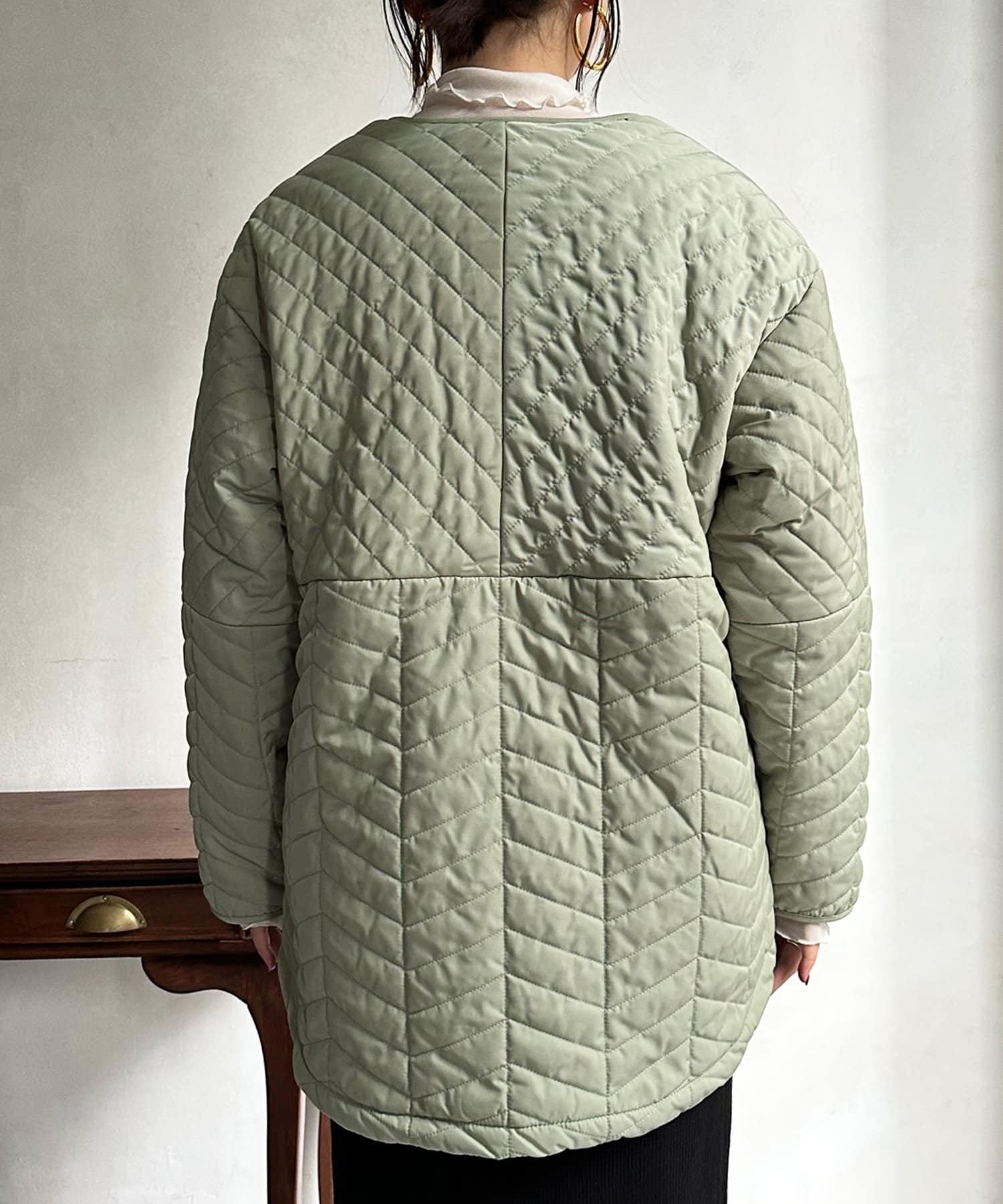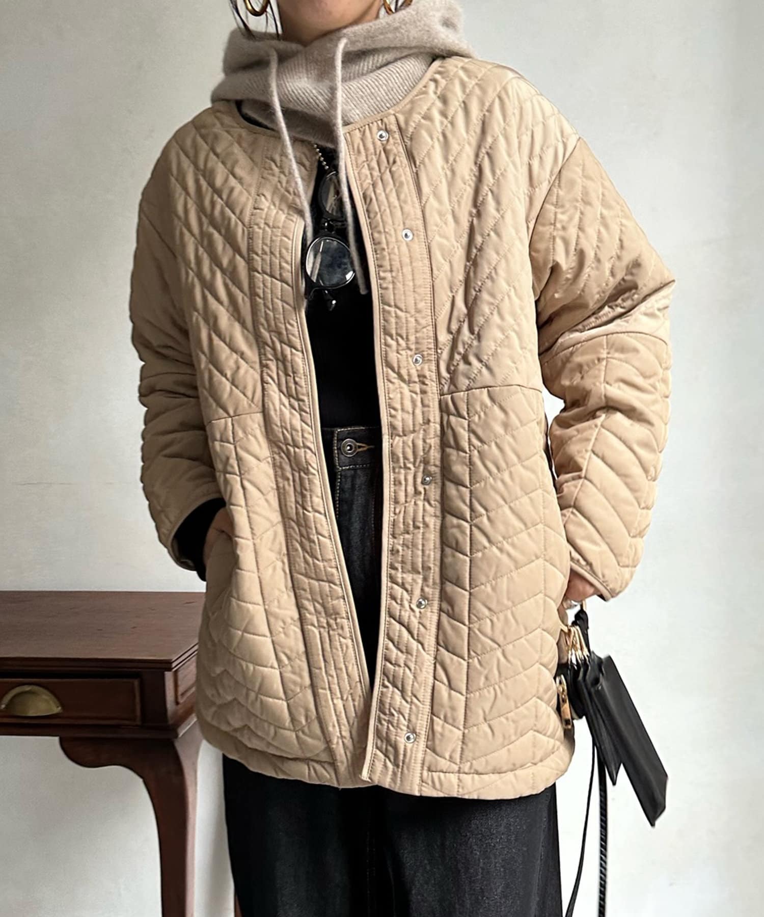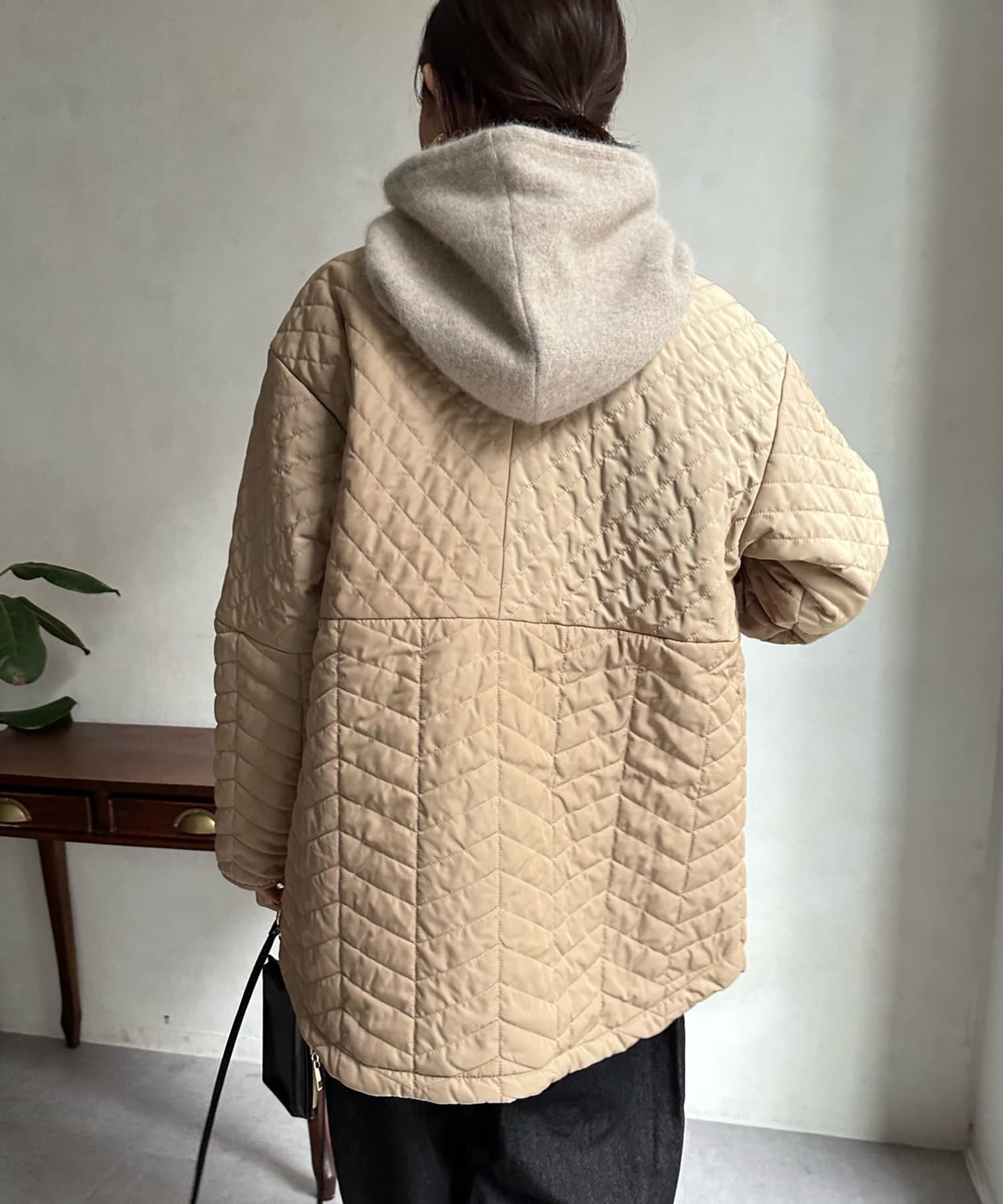 キルティングのパターンをMIXし、切り替えることで、特別感のある1着に。