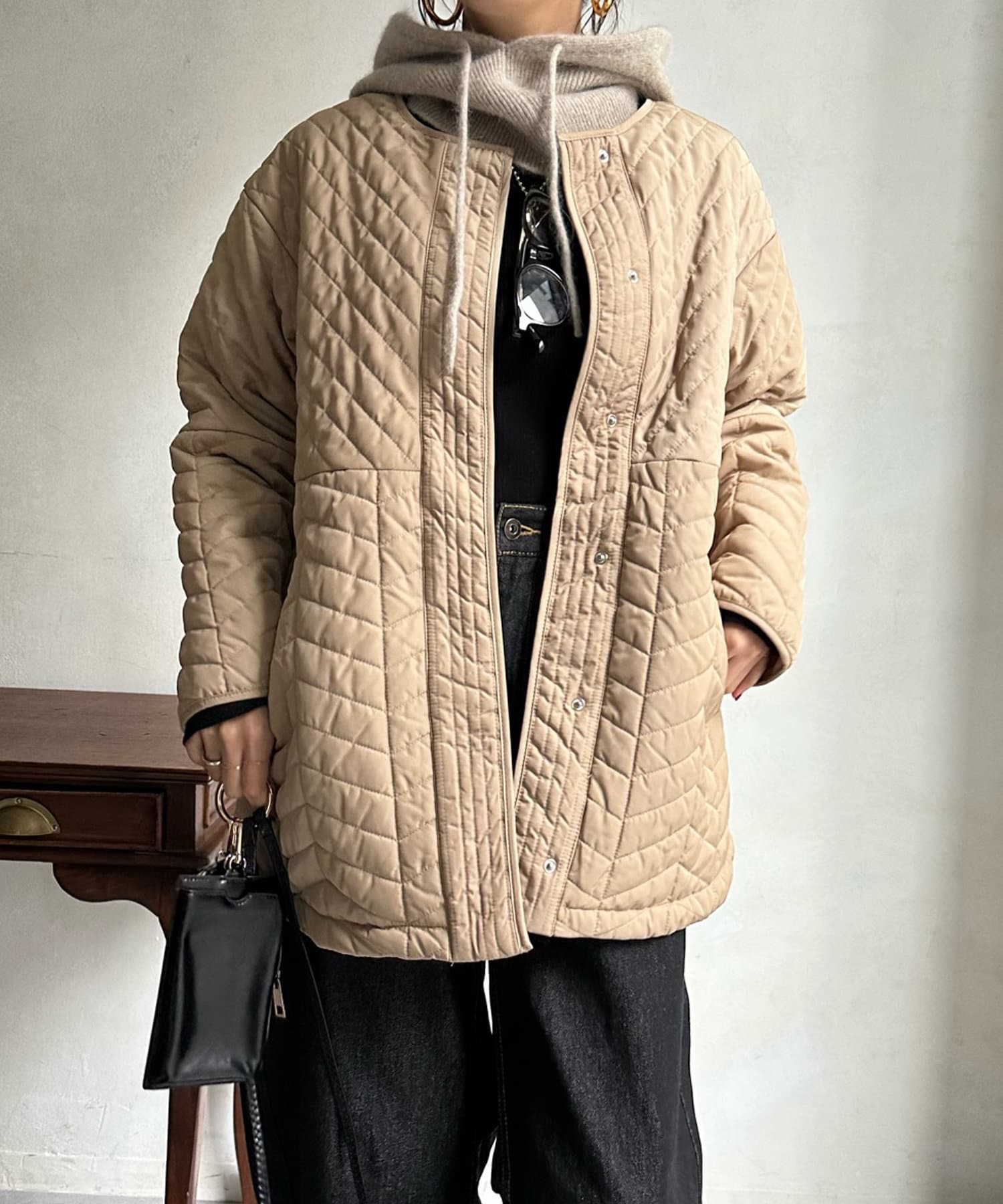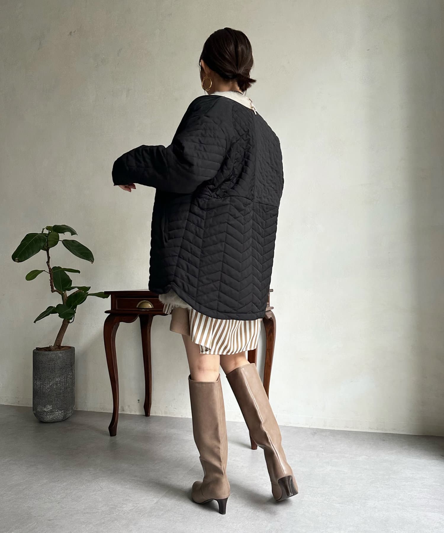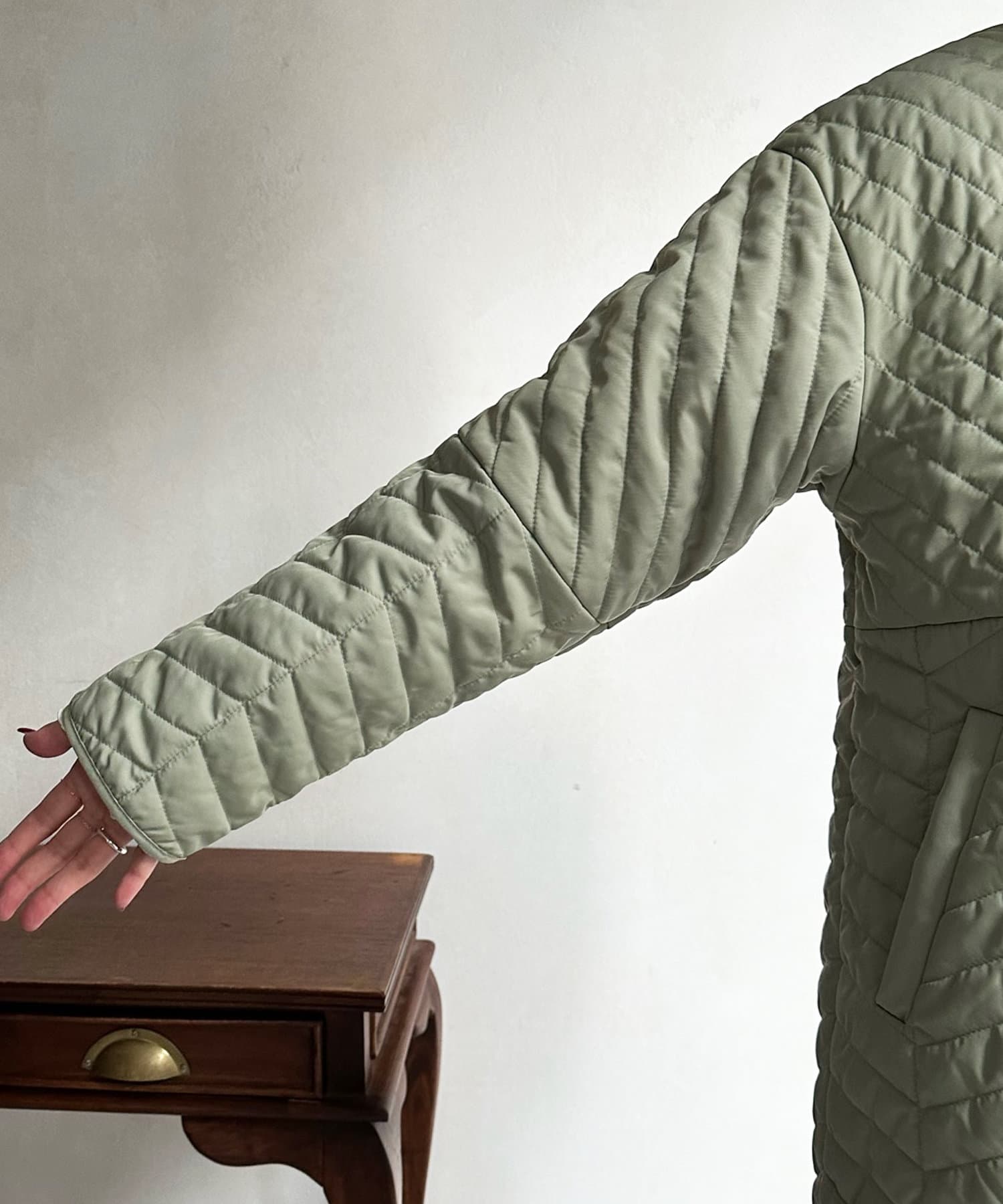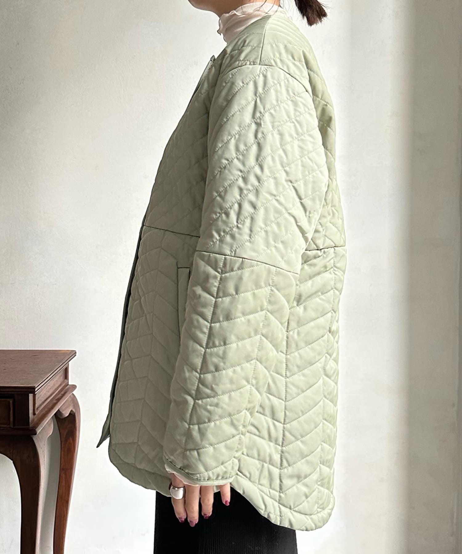 キルティングのパターンをMIXし、切り替えることで、特別感のある1着に。