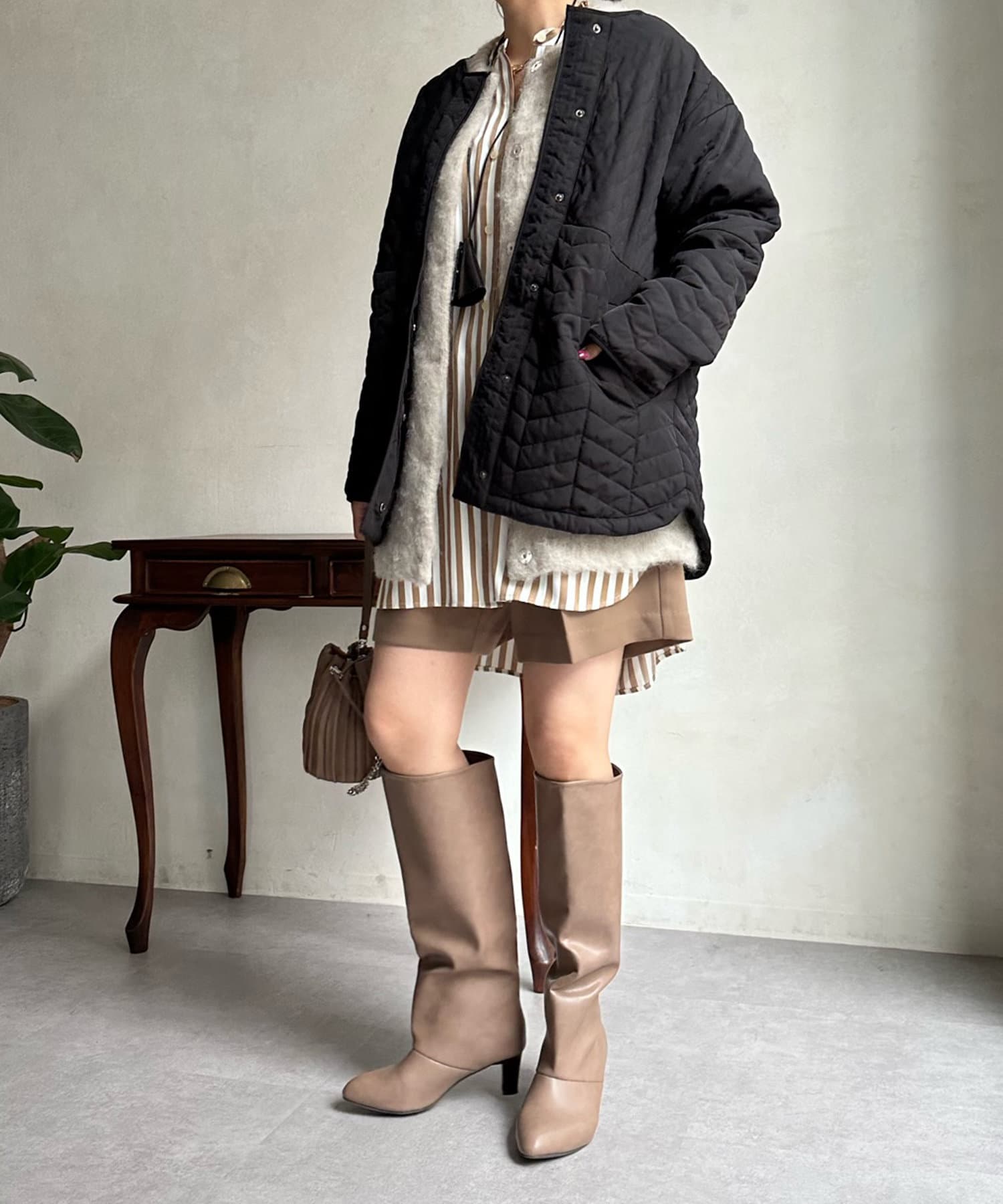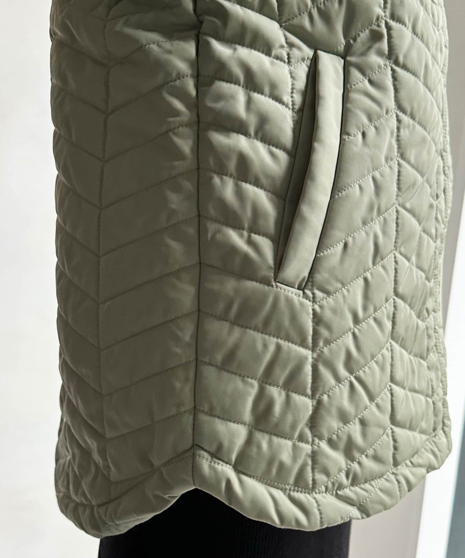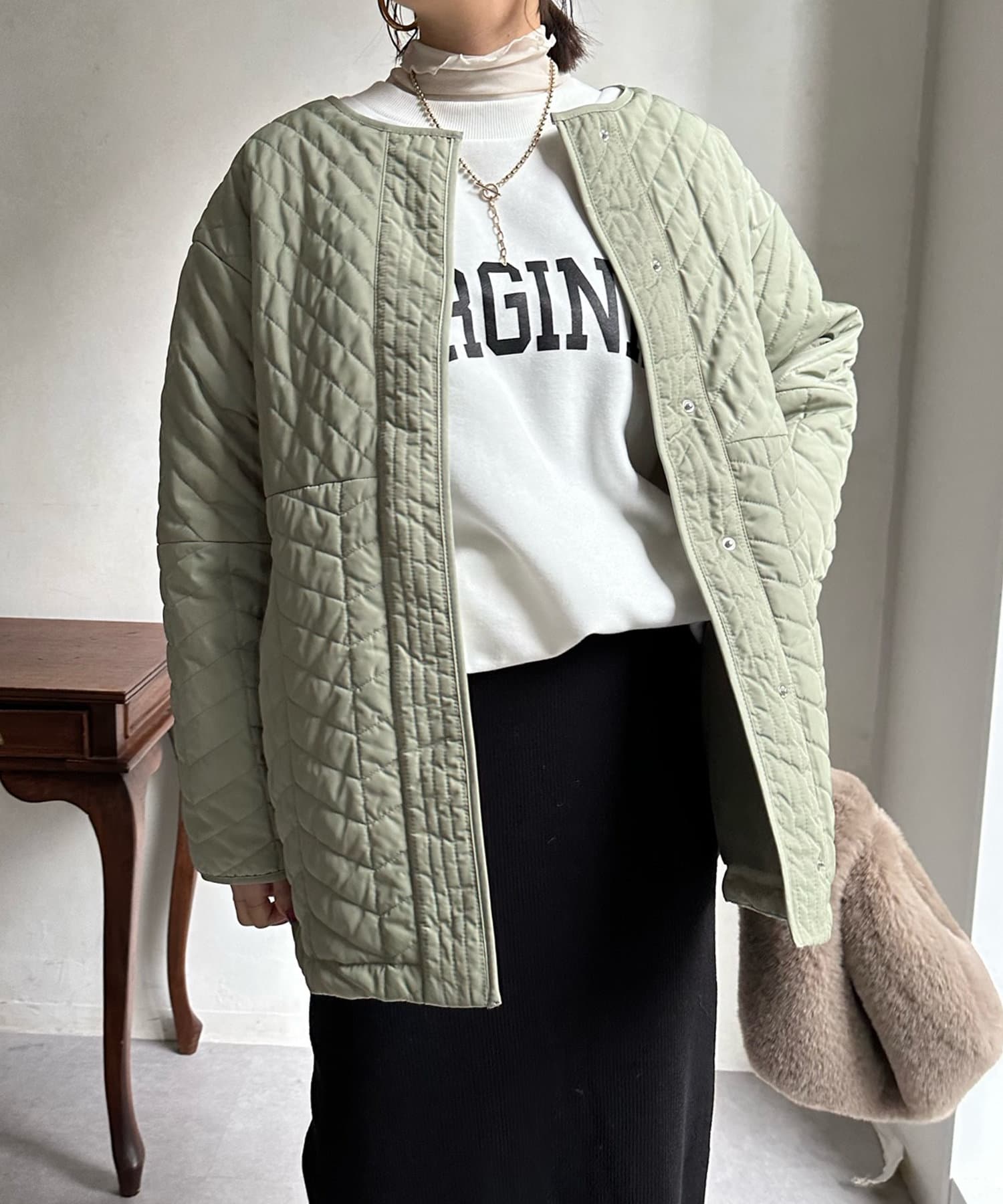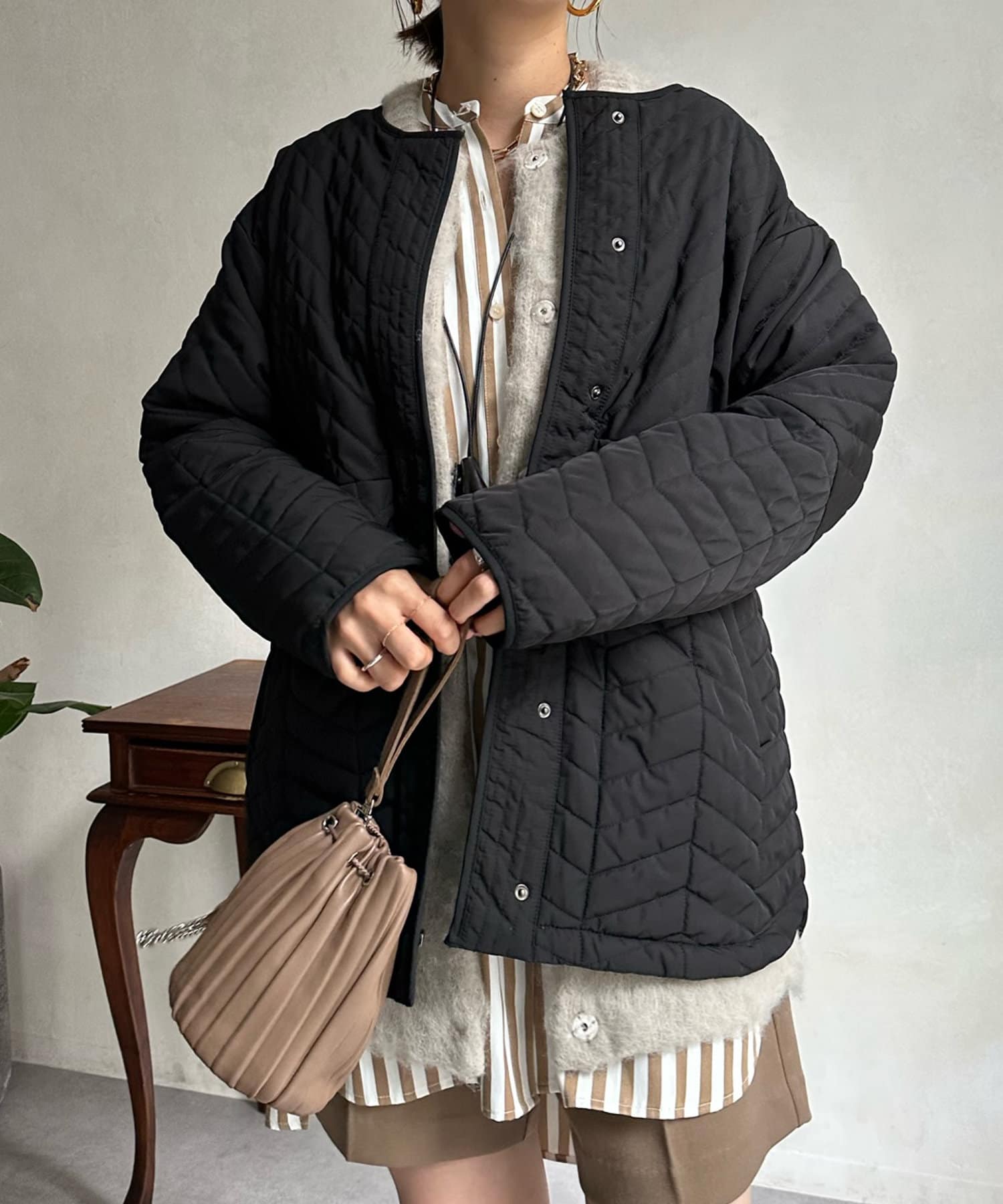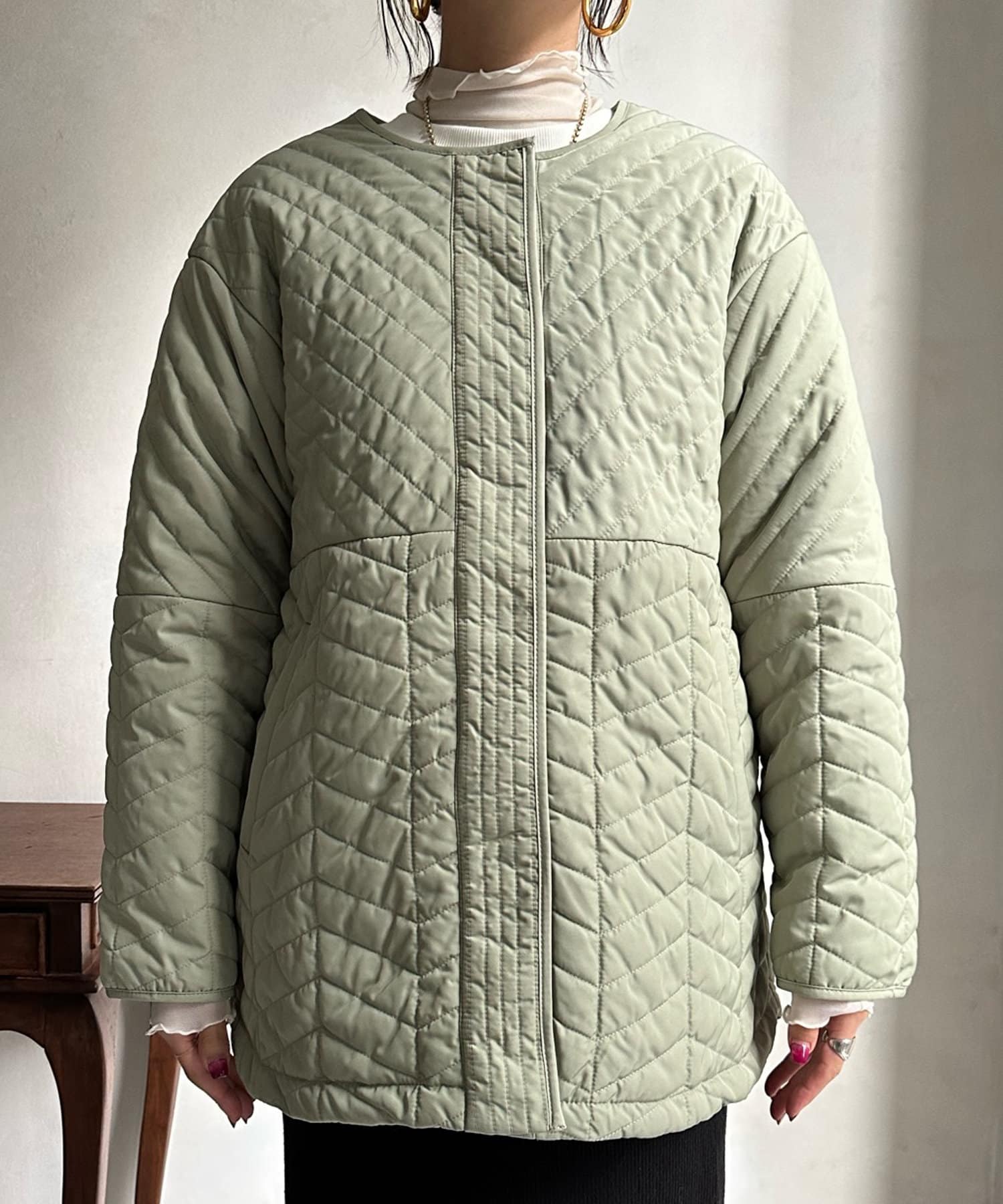 キルティングのパターンをMIXし、切り替えることで、特別感のある1着に。
