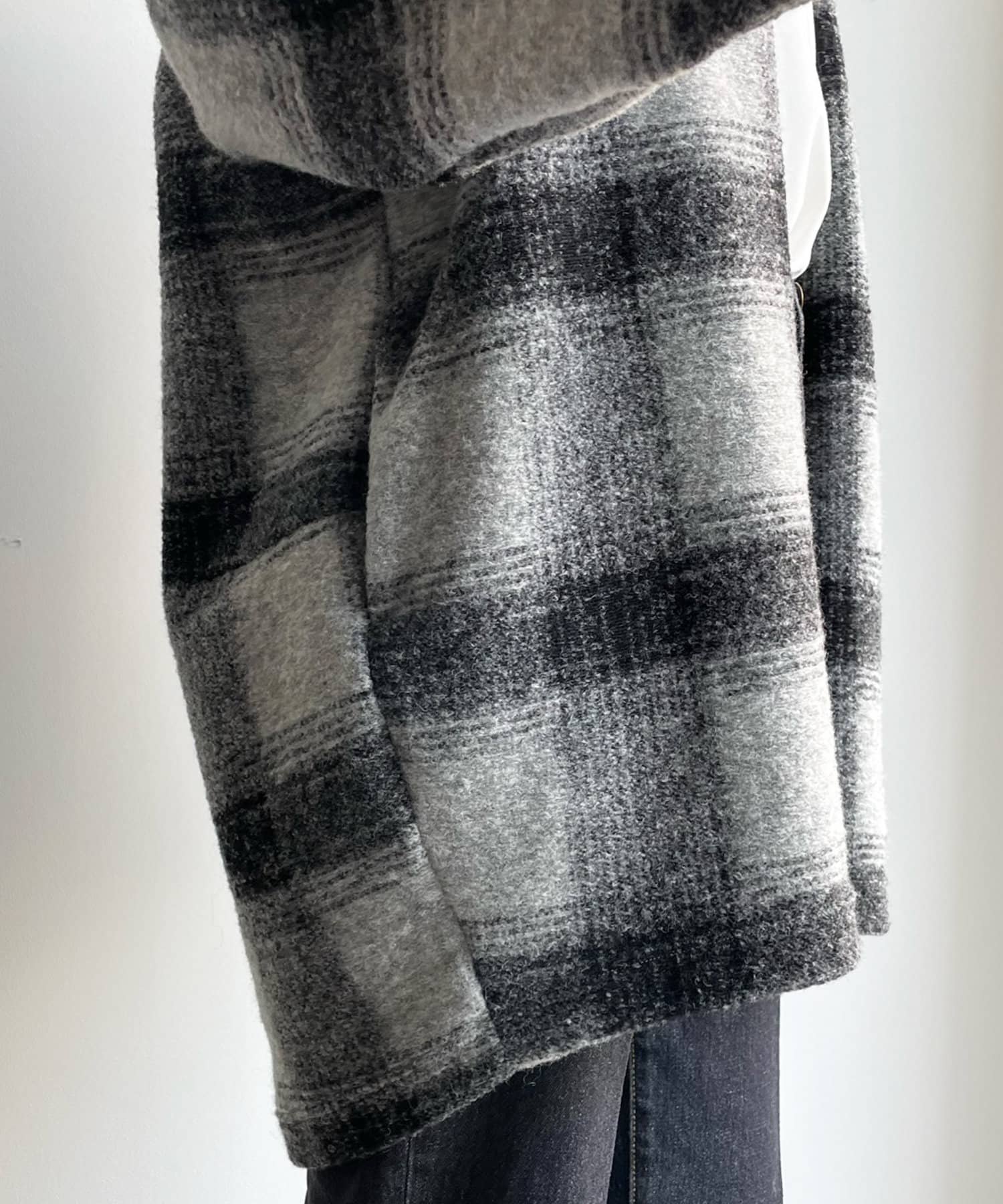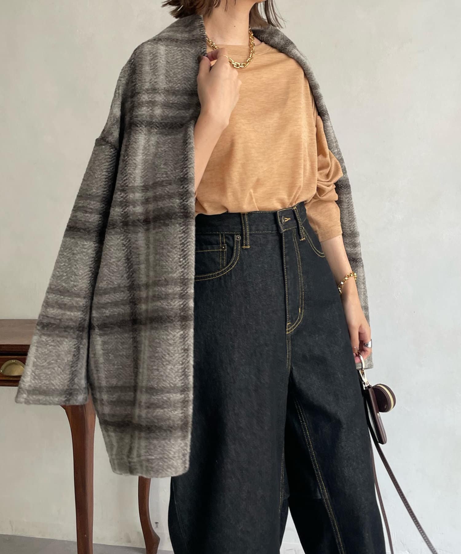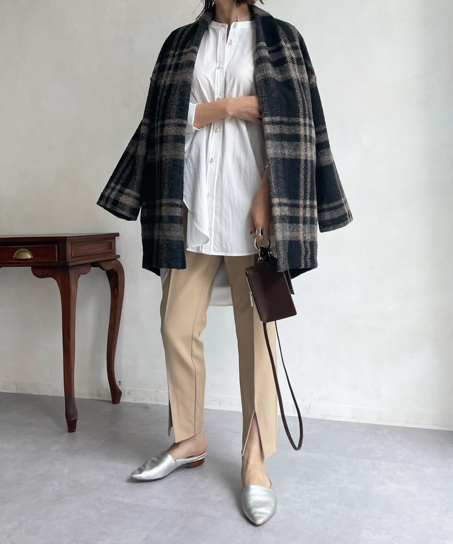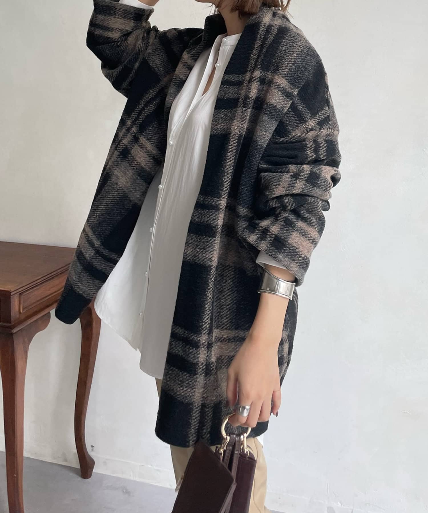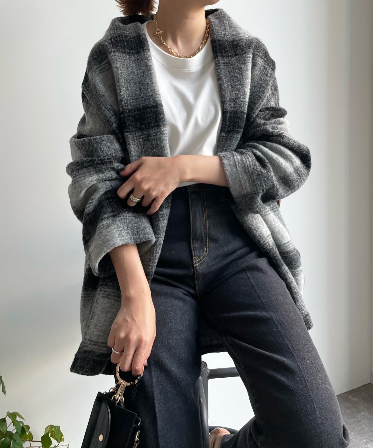 温かみのある素材感と、羽織った時のこなれ感あるシルエットがポイントの1着。