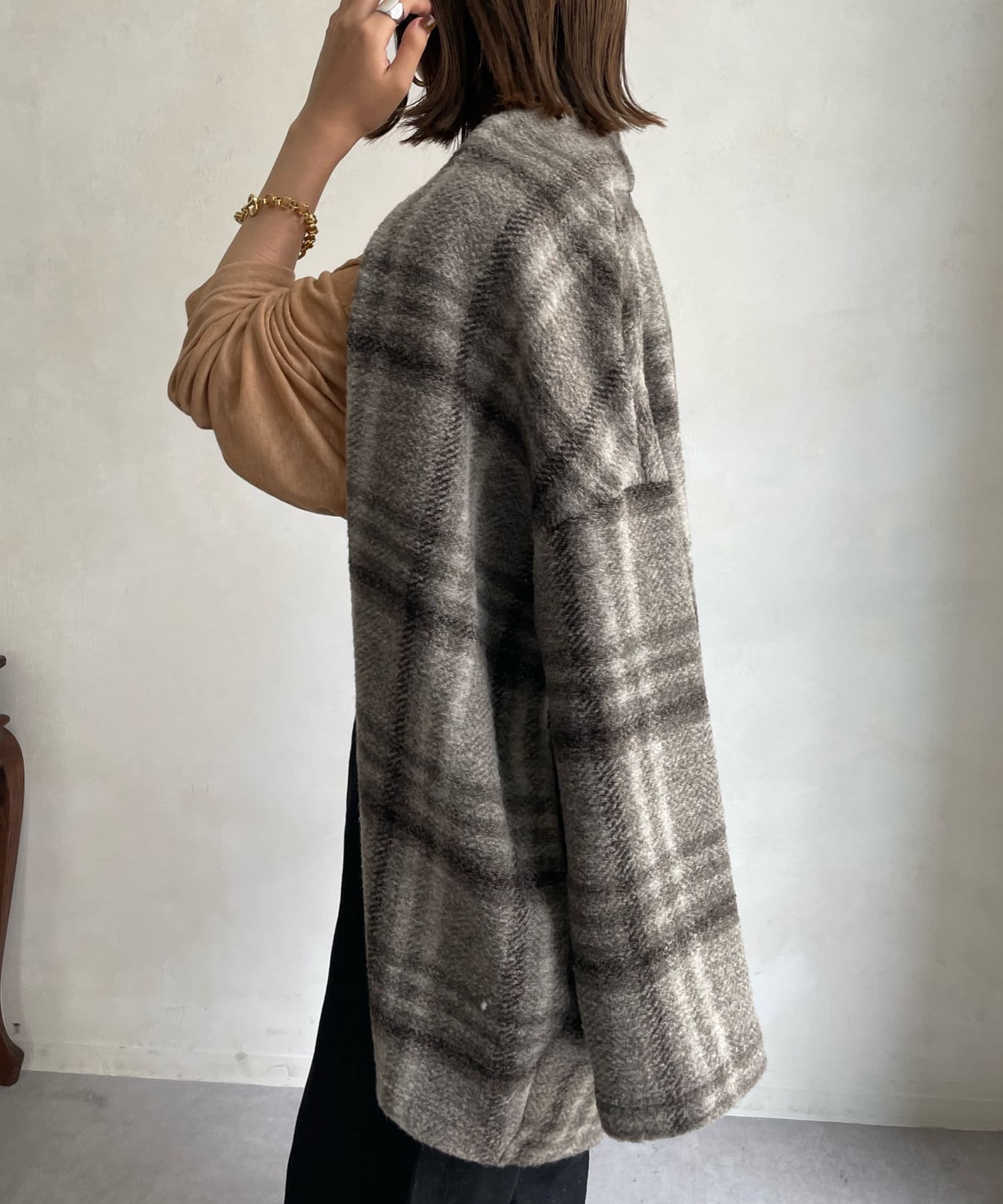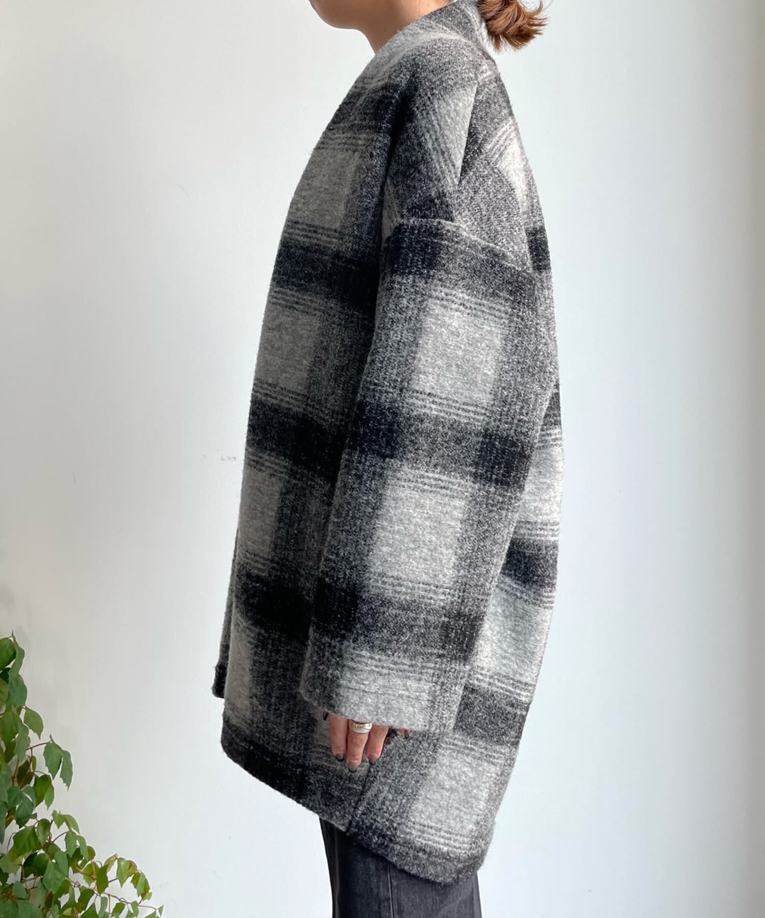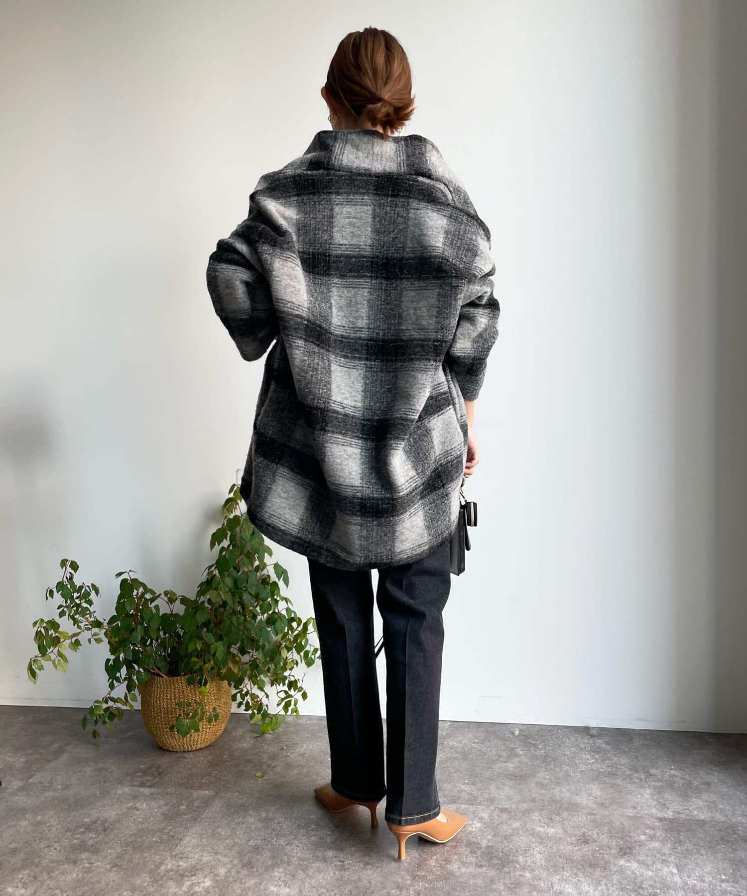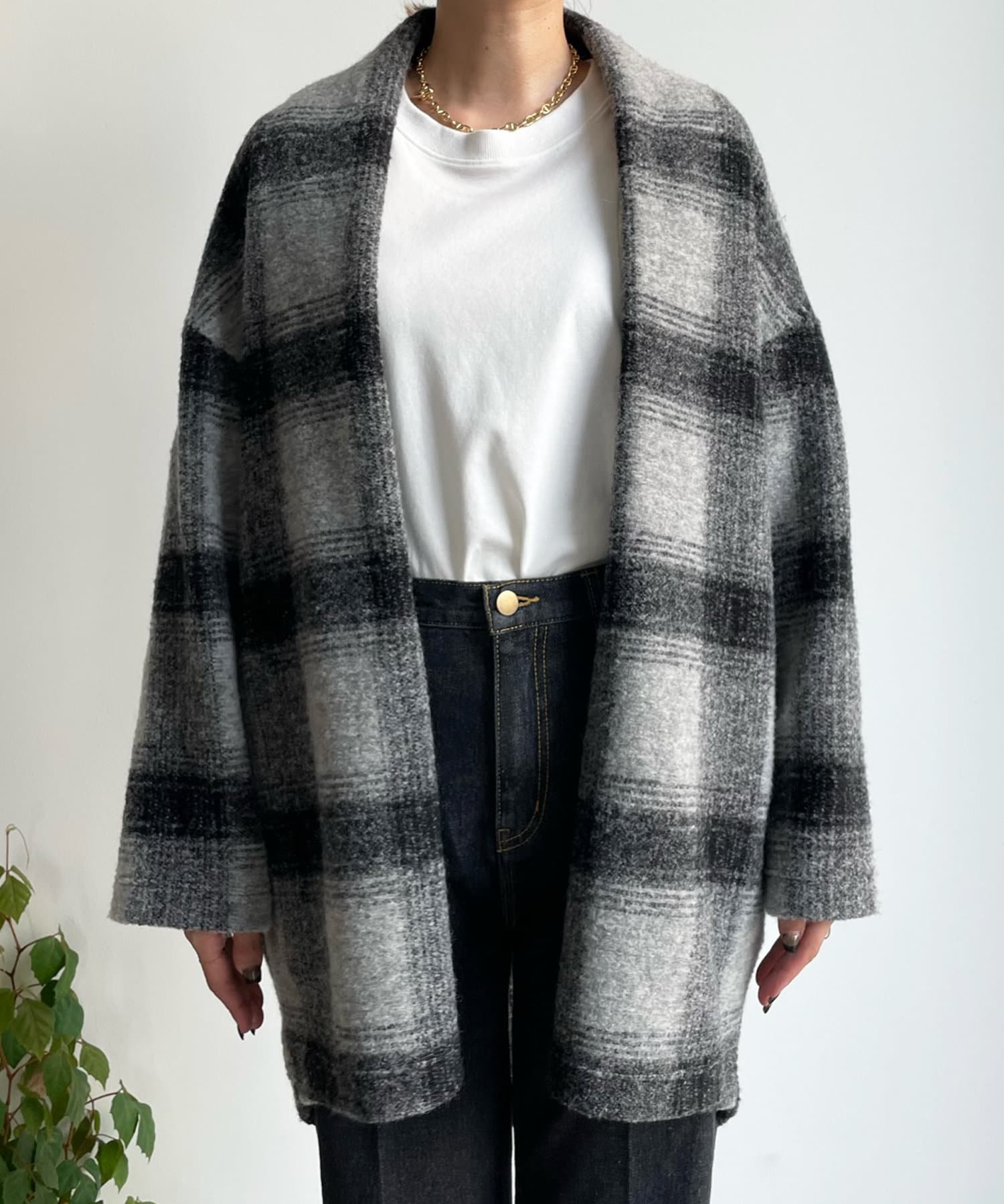 温かみのある素材感と、羽織った時のこなれ感あるシルエットがポイントの1着。