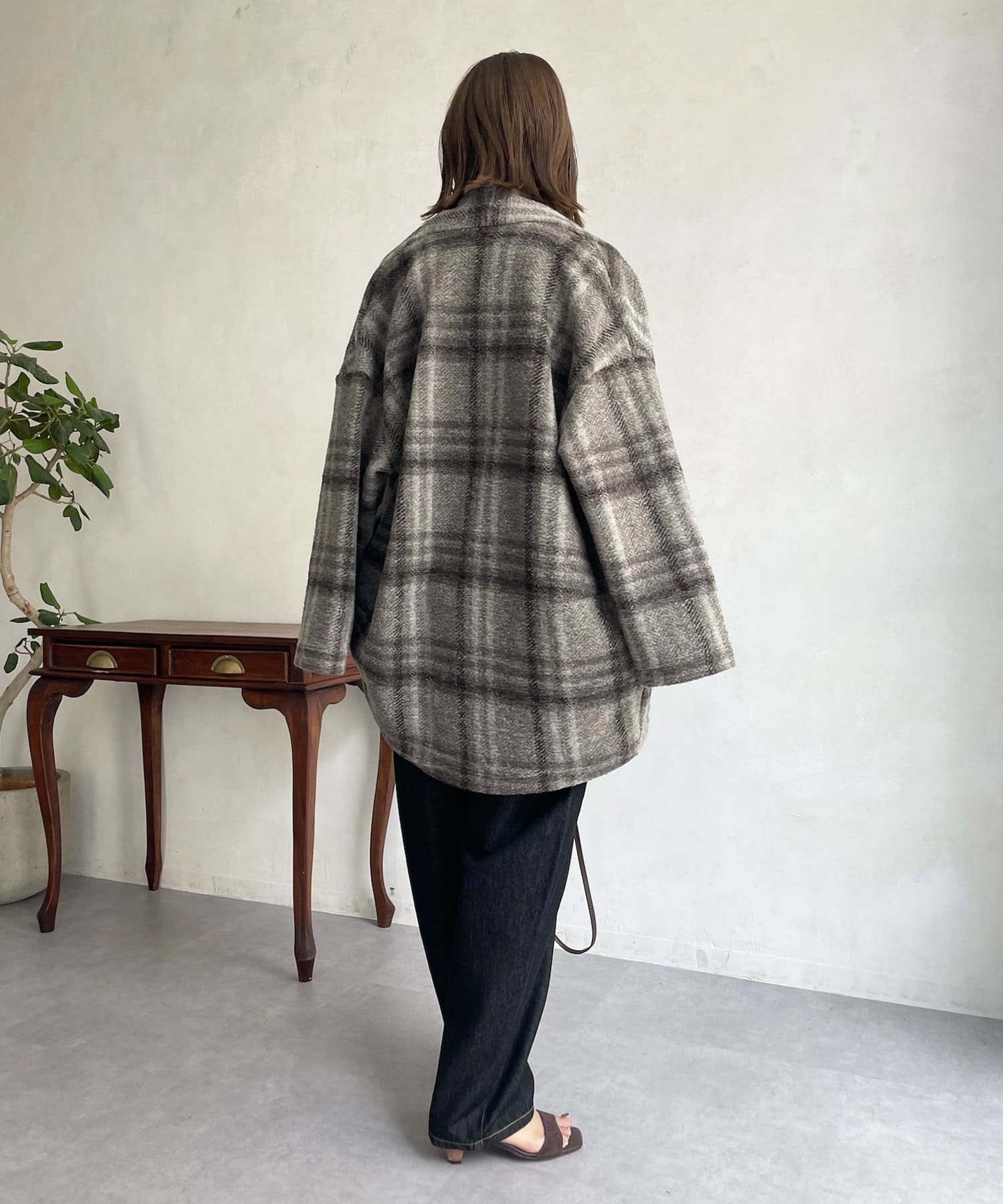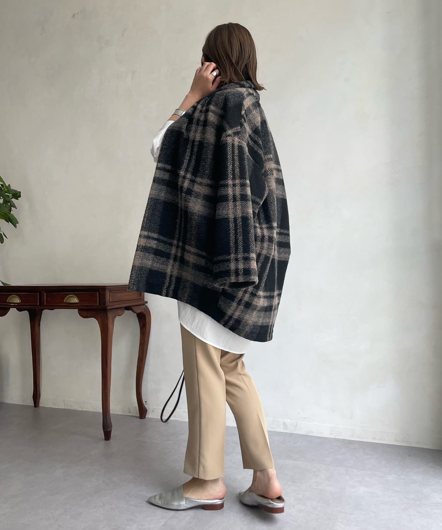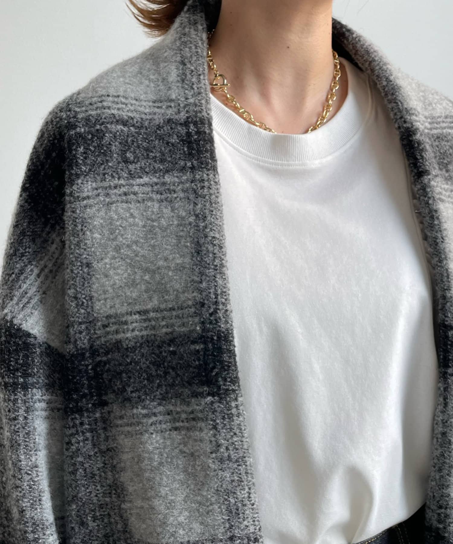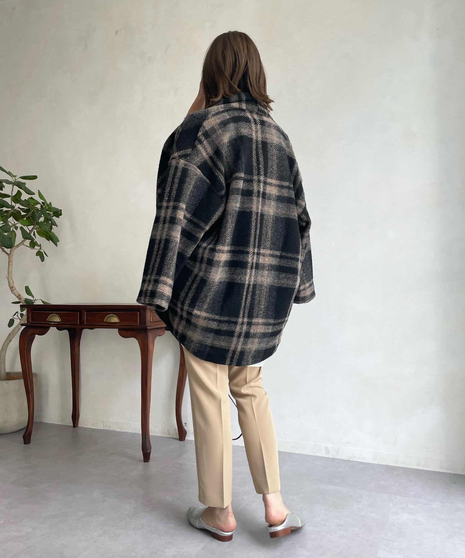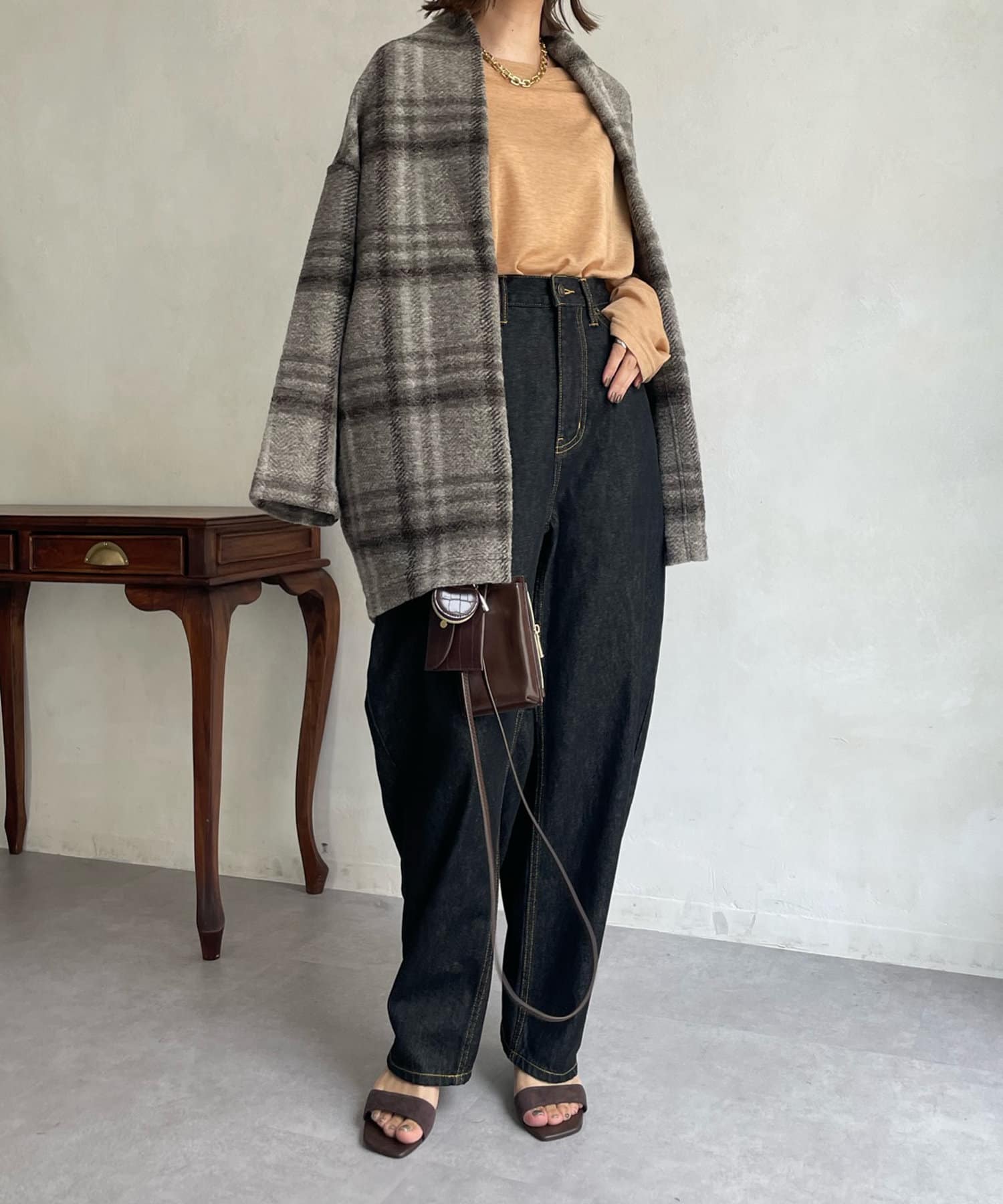 温かみのある素材感と、羽織った時のこなれ感あるシルエットがポイントの1着。