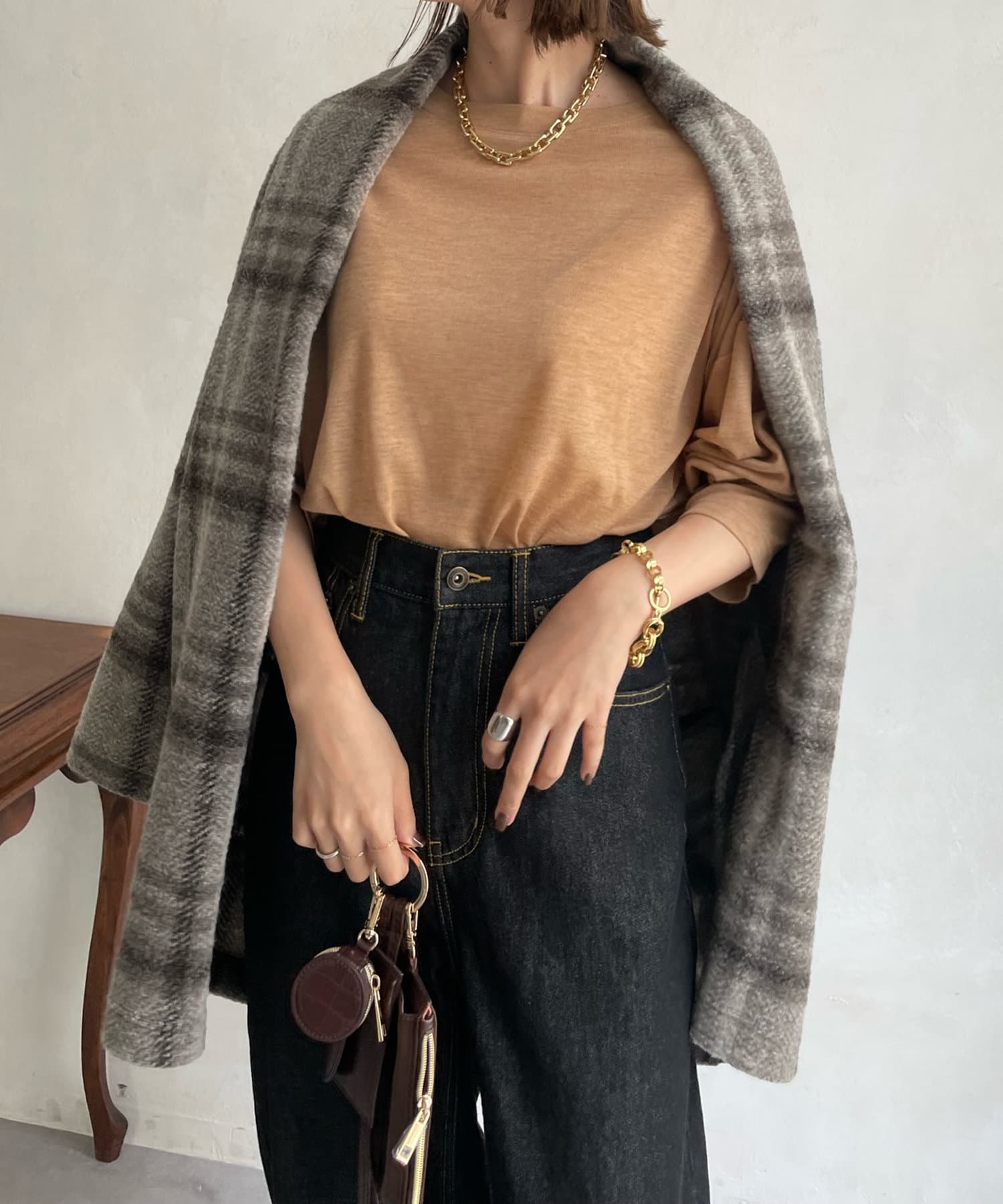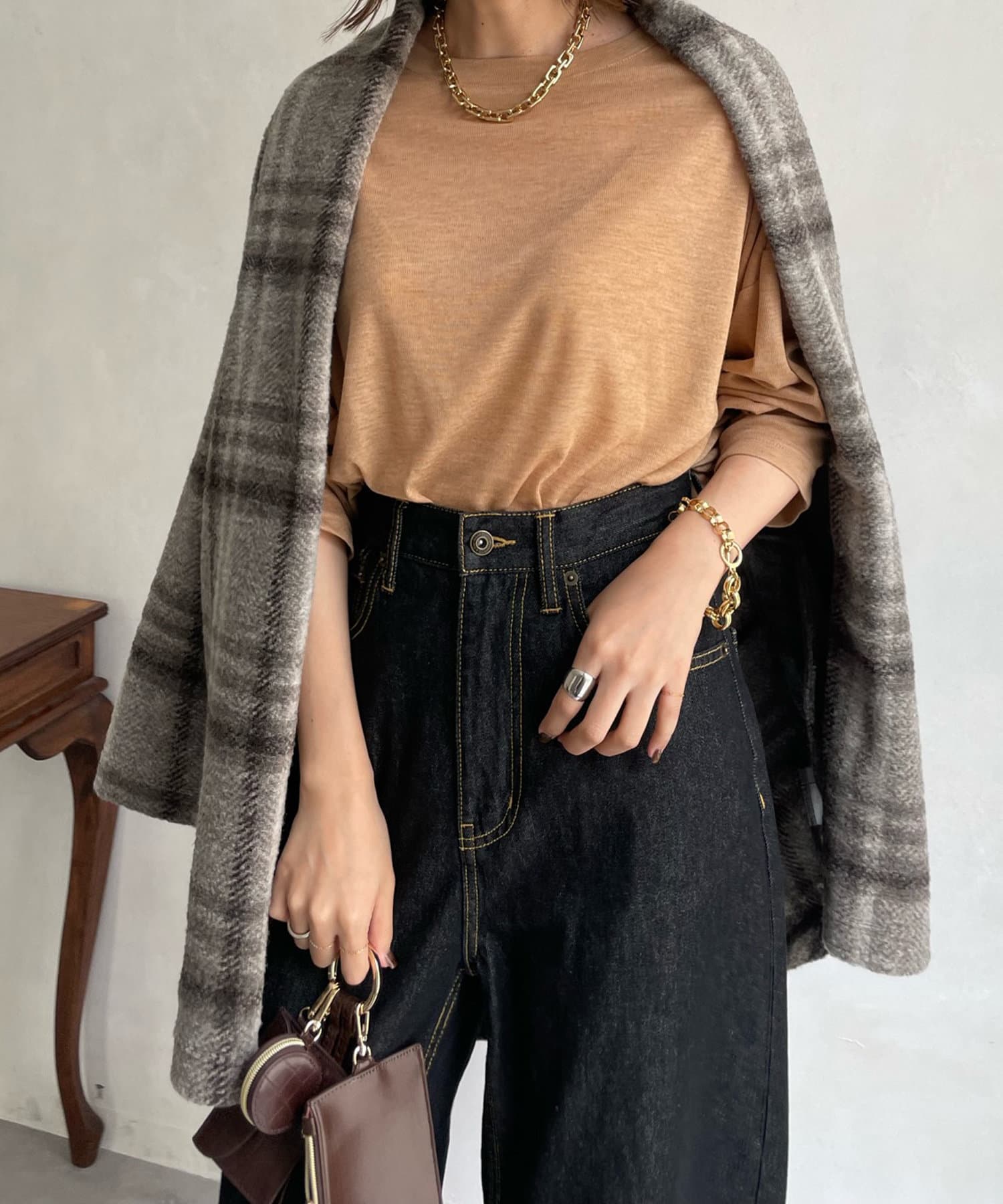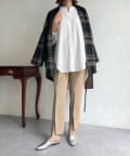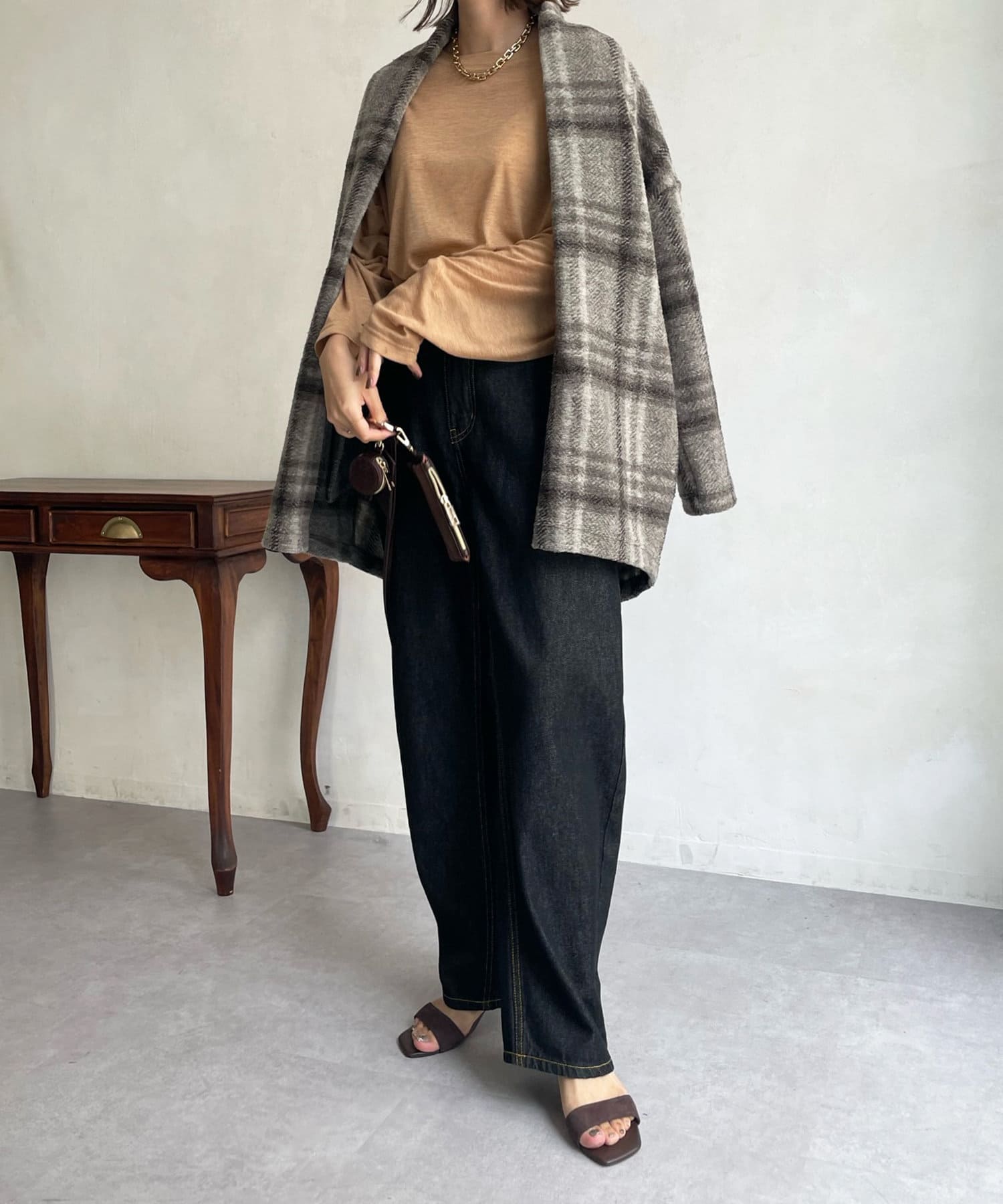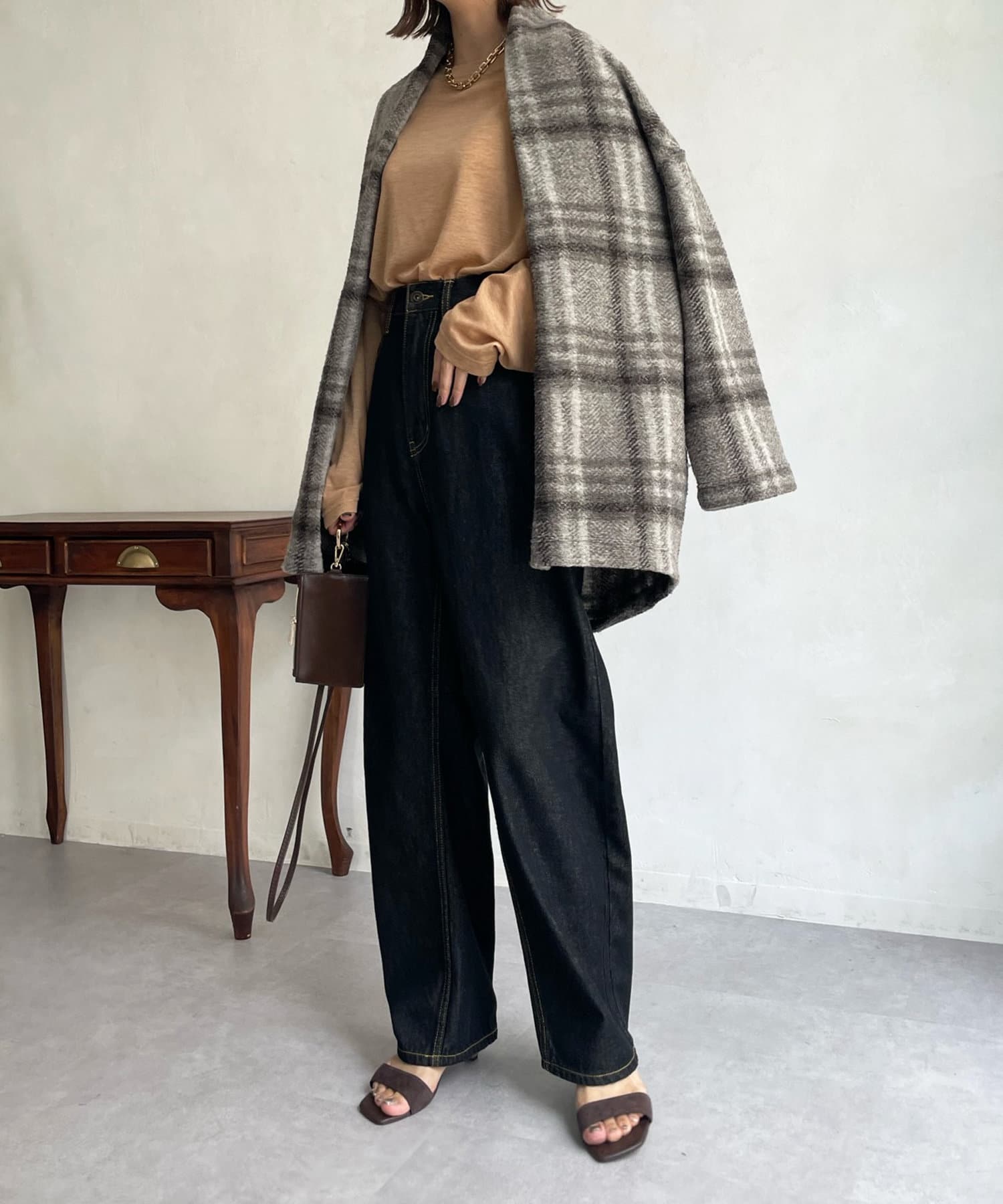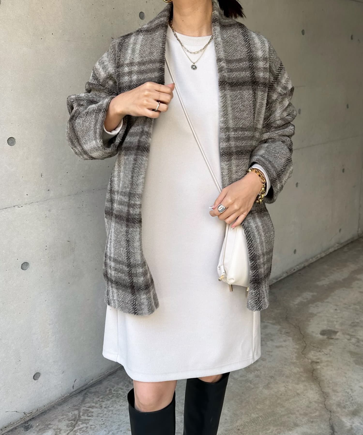 温かみのある素材感と、羽織った時のこなれ感あるシルエットがポイントの1着。