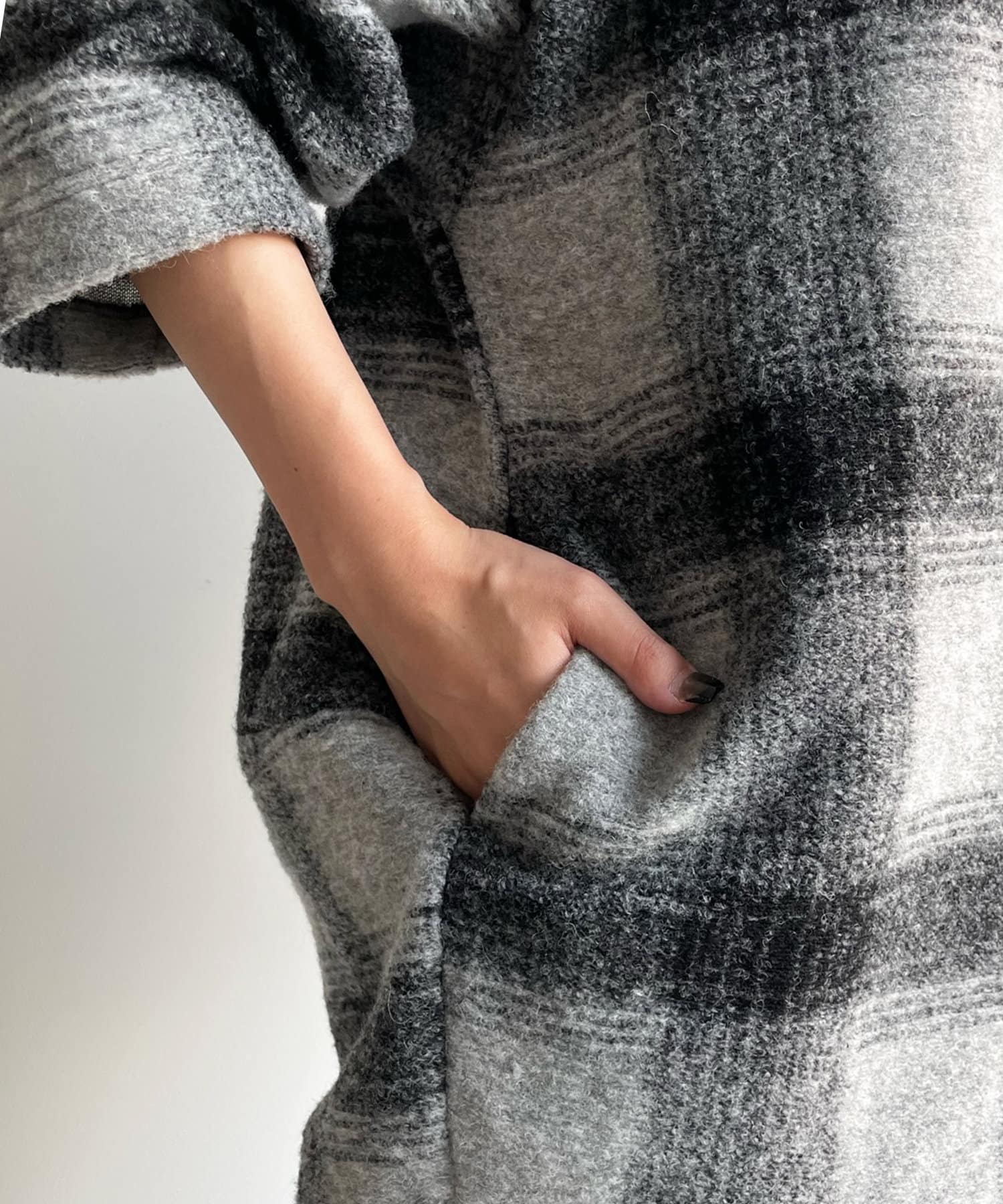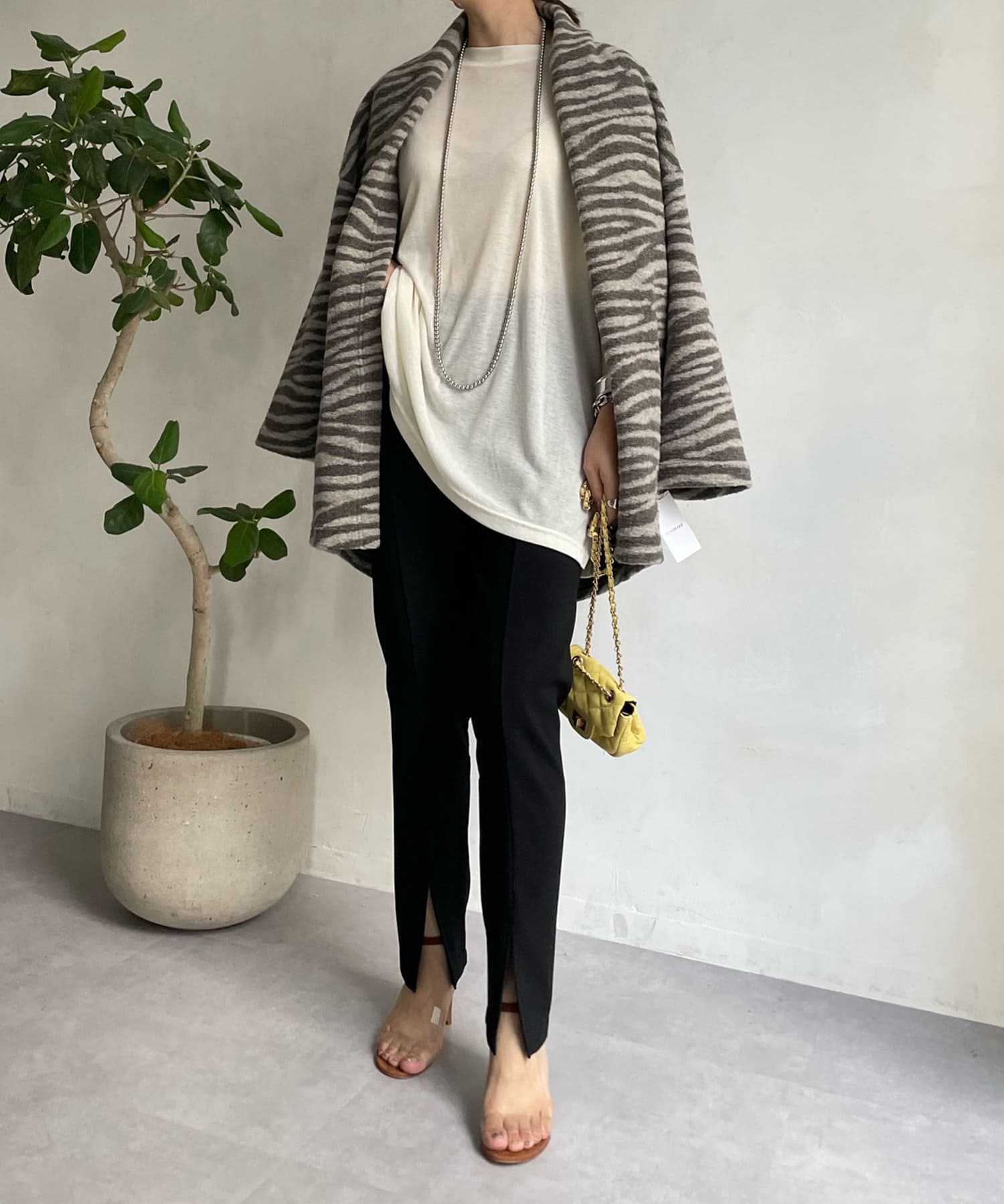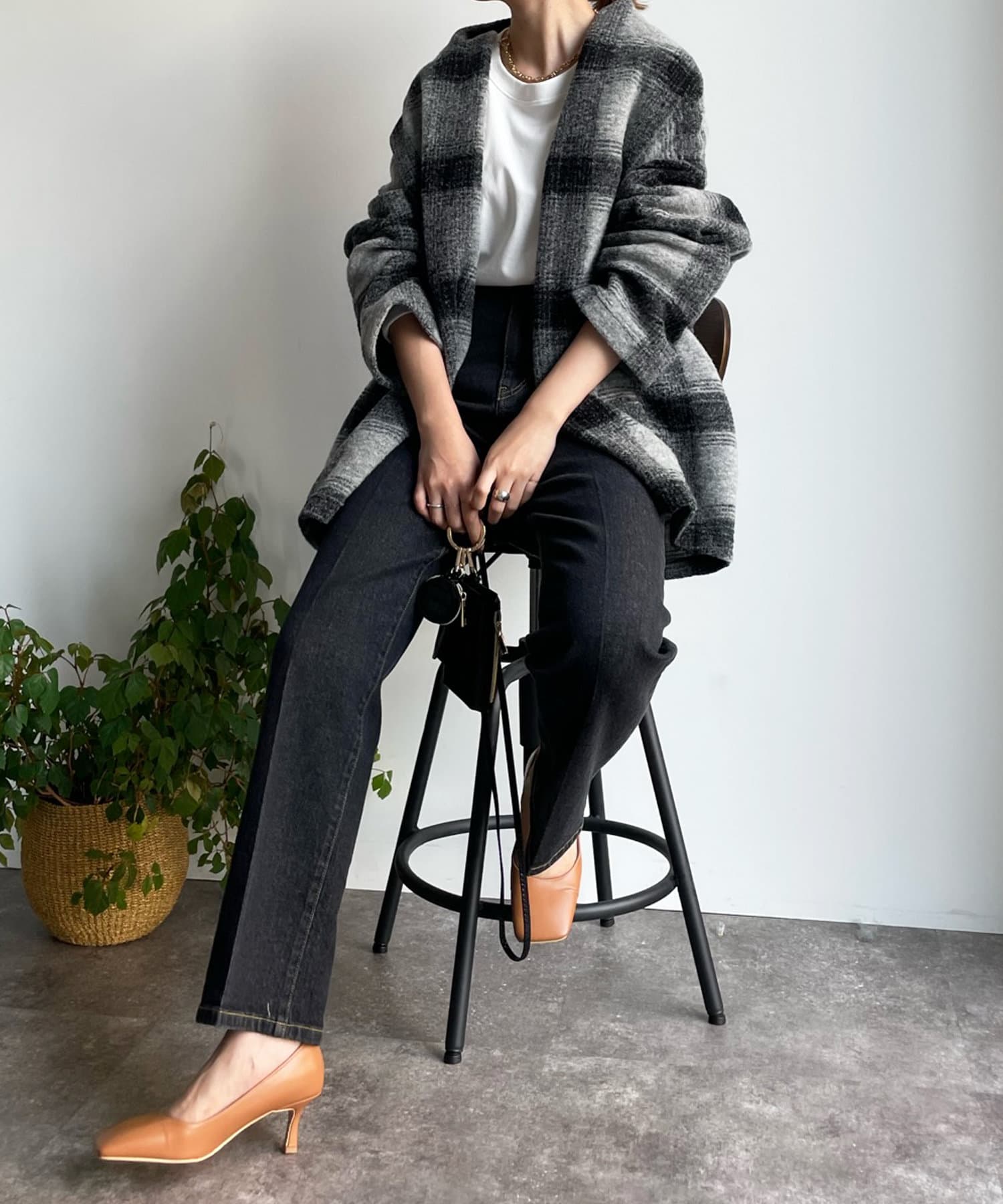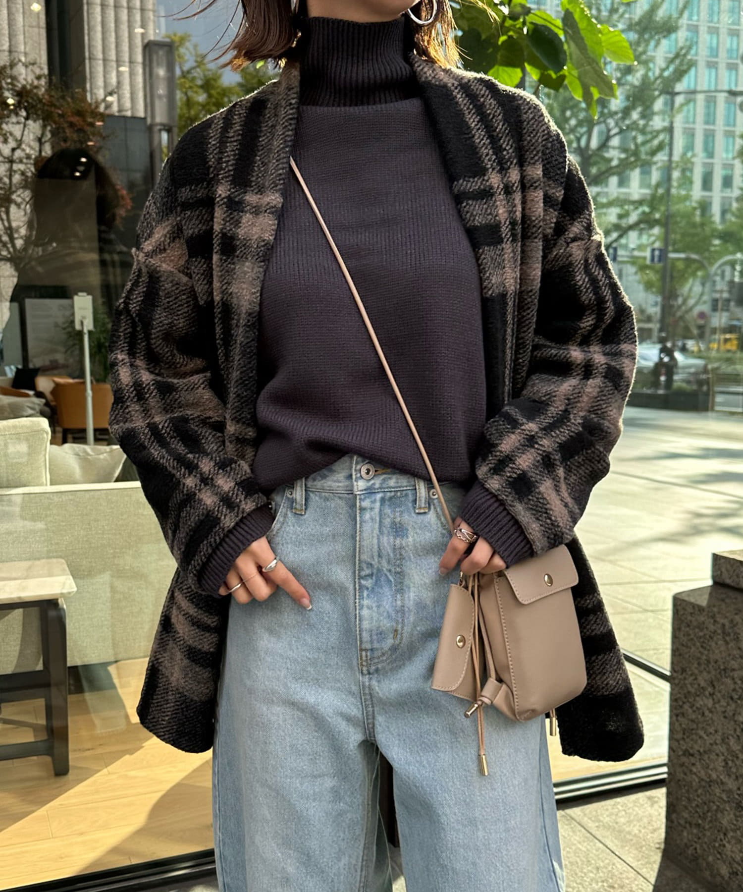 温かみのある素材感と、羽織った時のこなれ感あるシルエットがポイントの1着。
