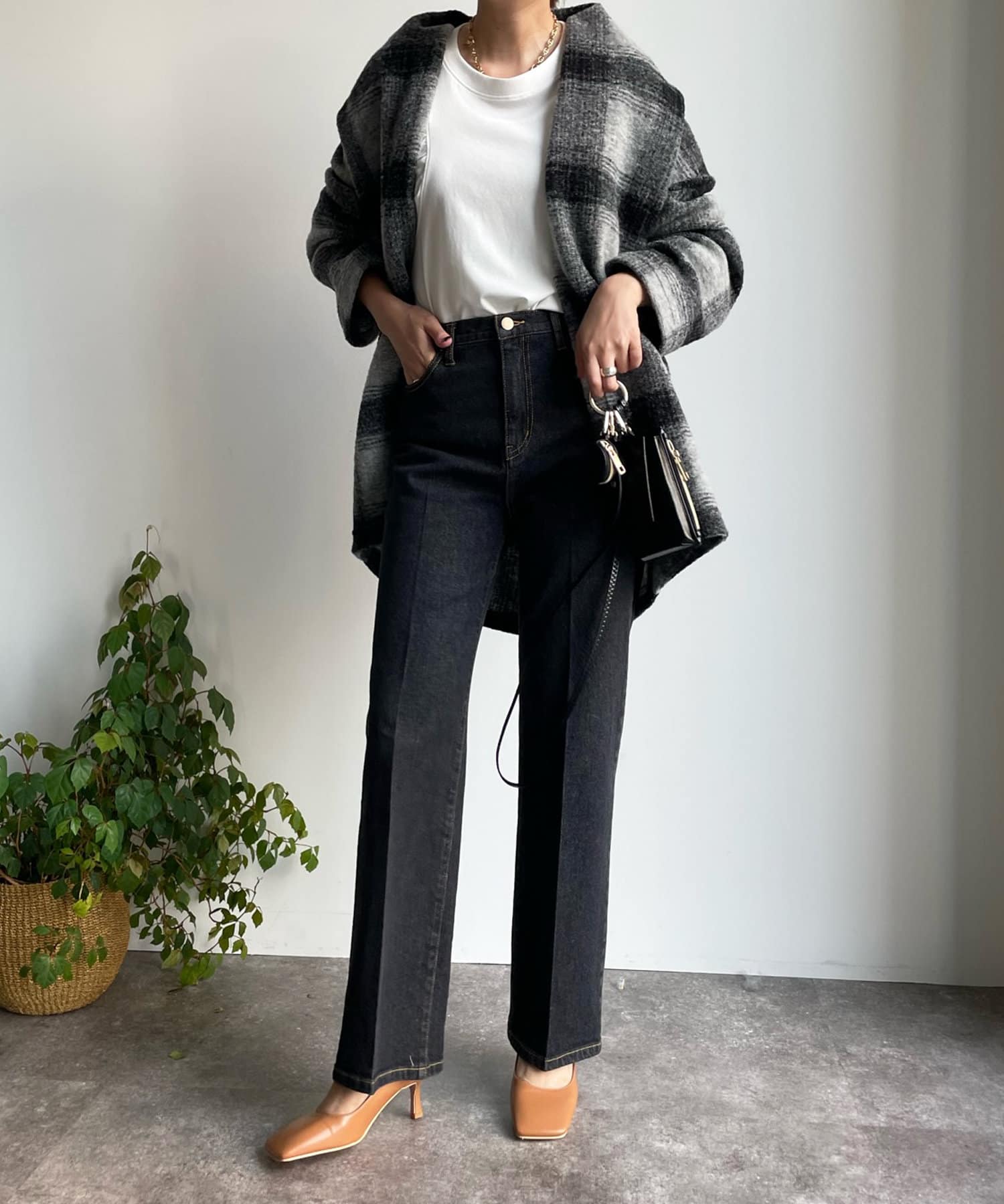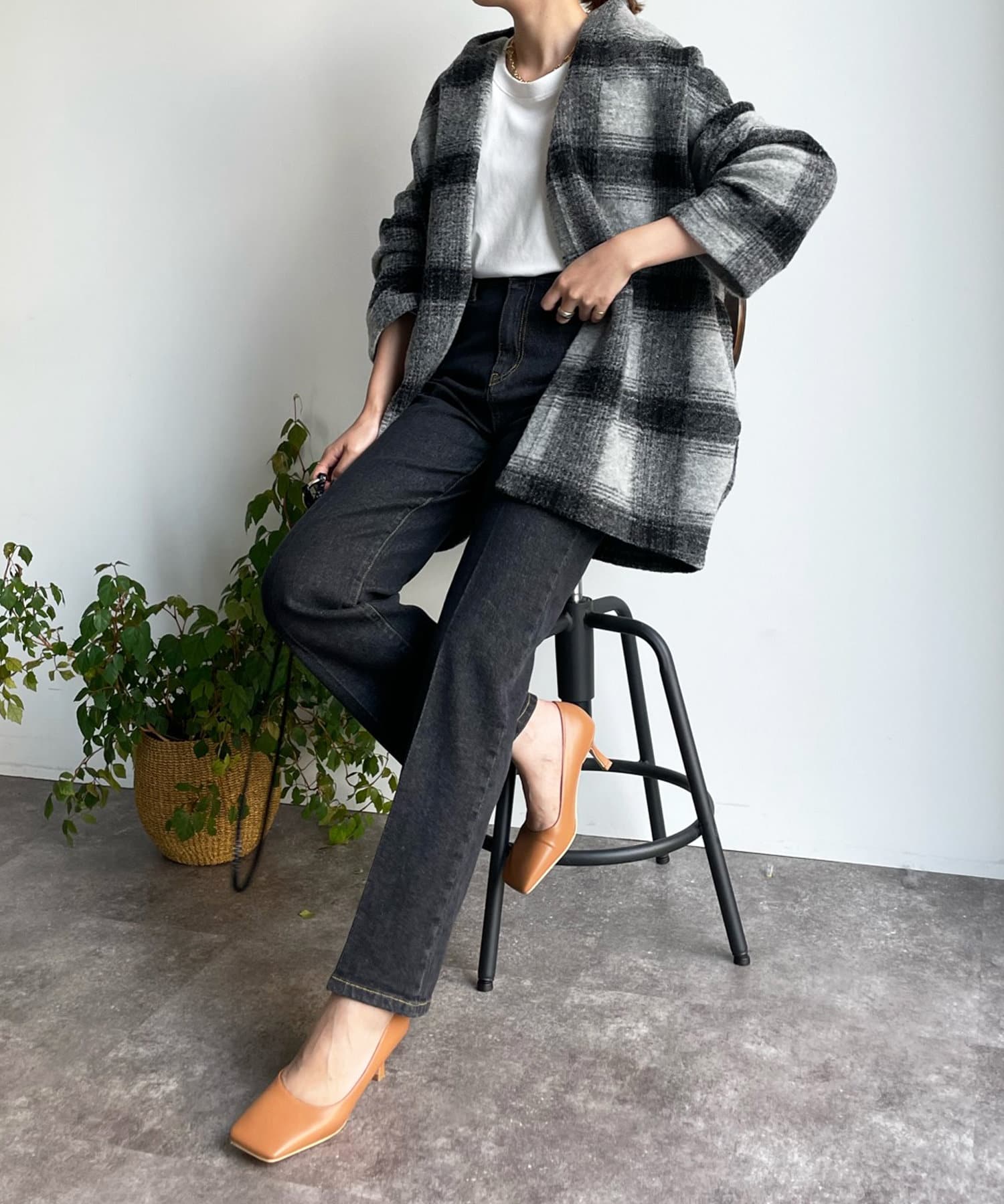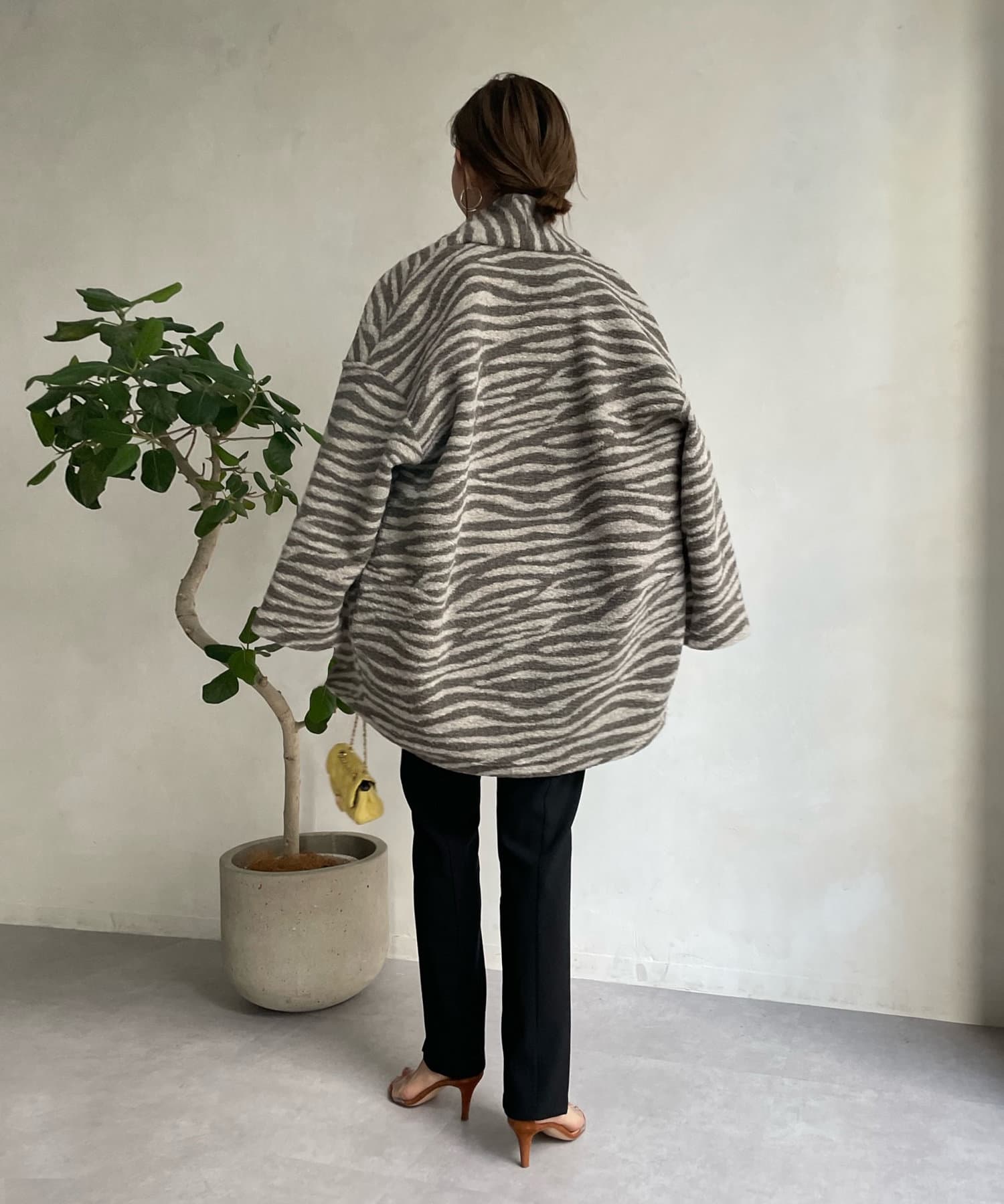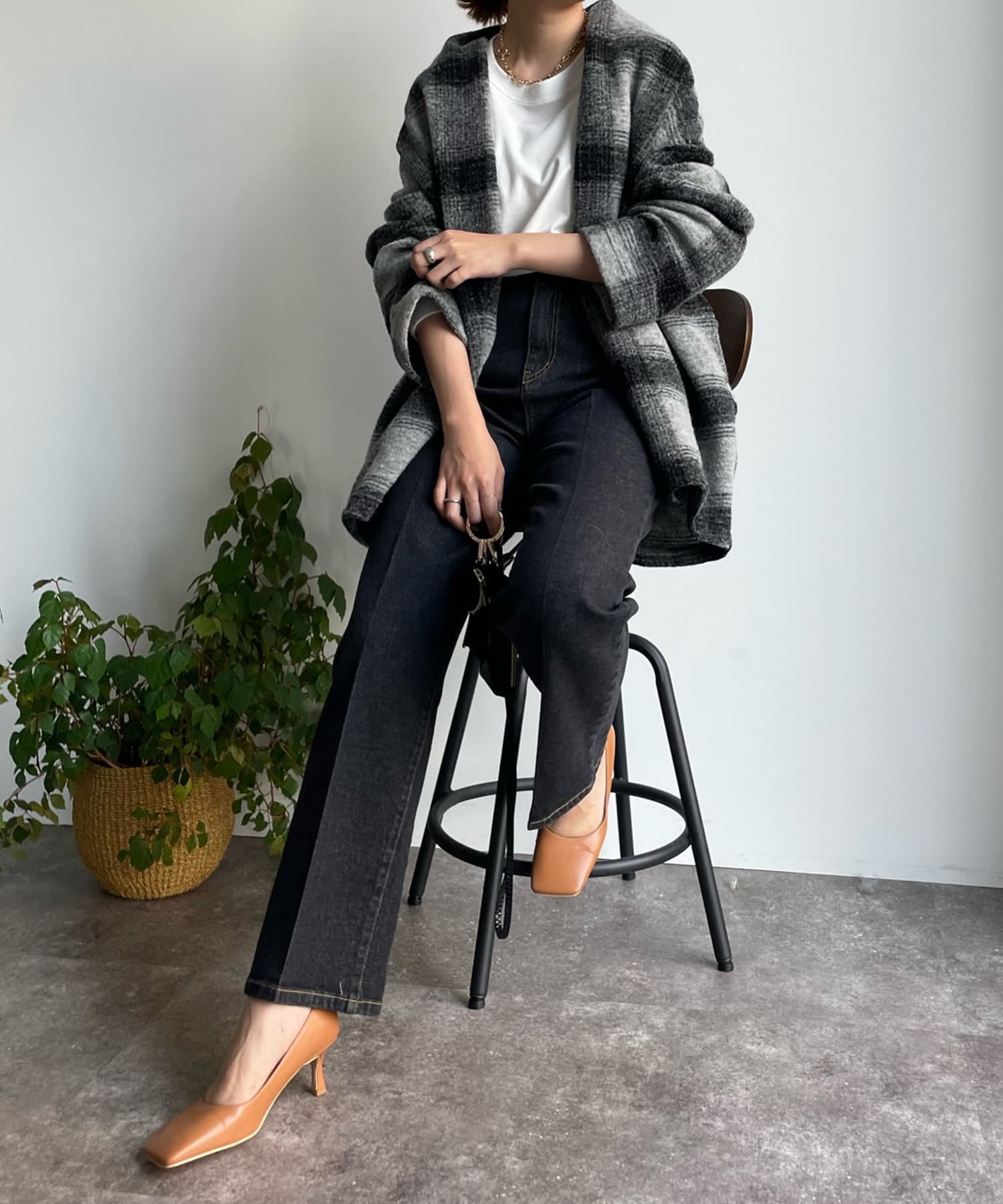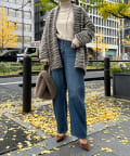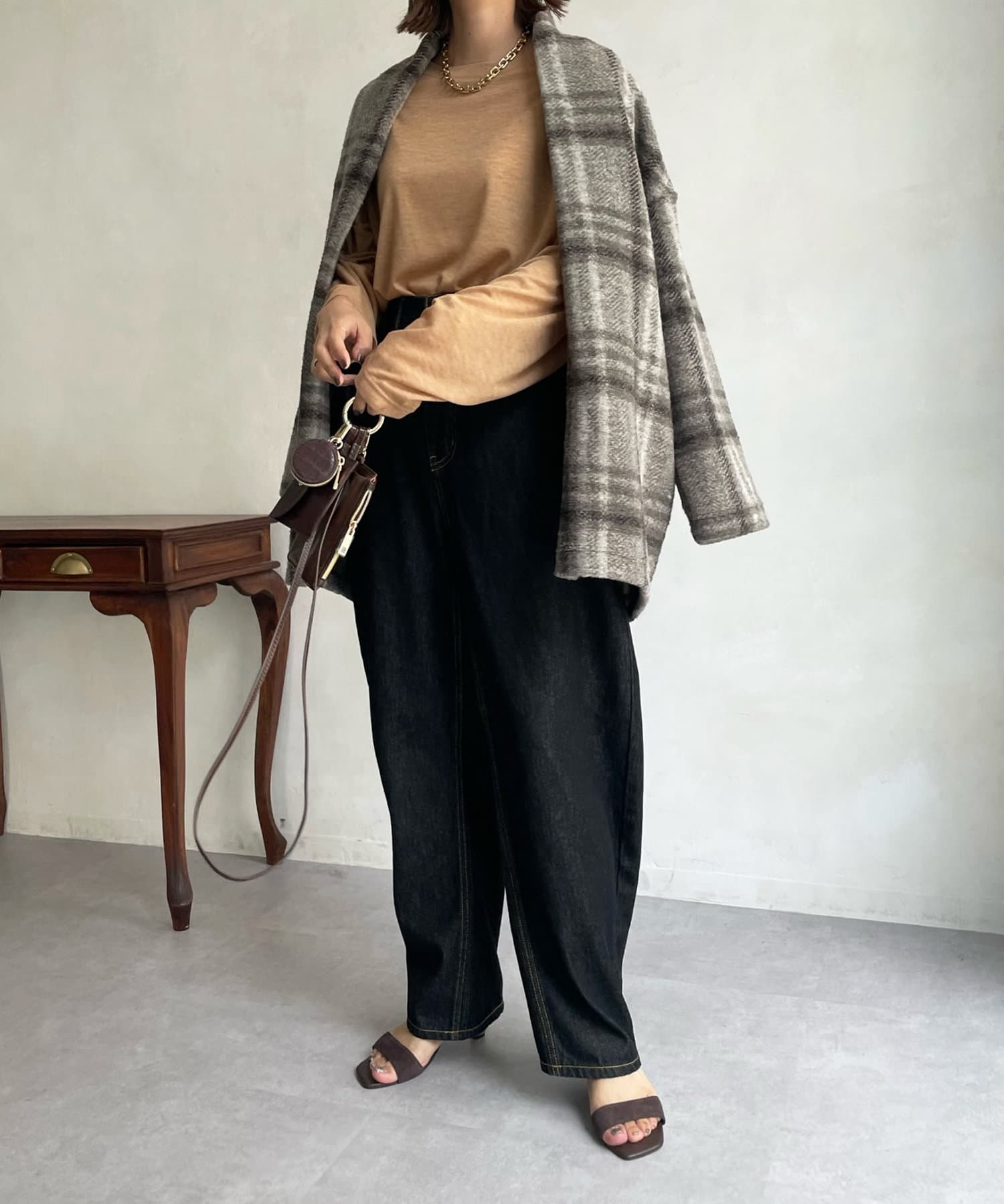温かみのある素材感と、羽織った時のこなれ感あるシルエットがポイントの1着。