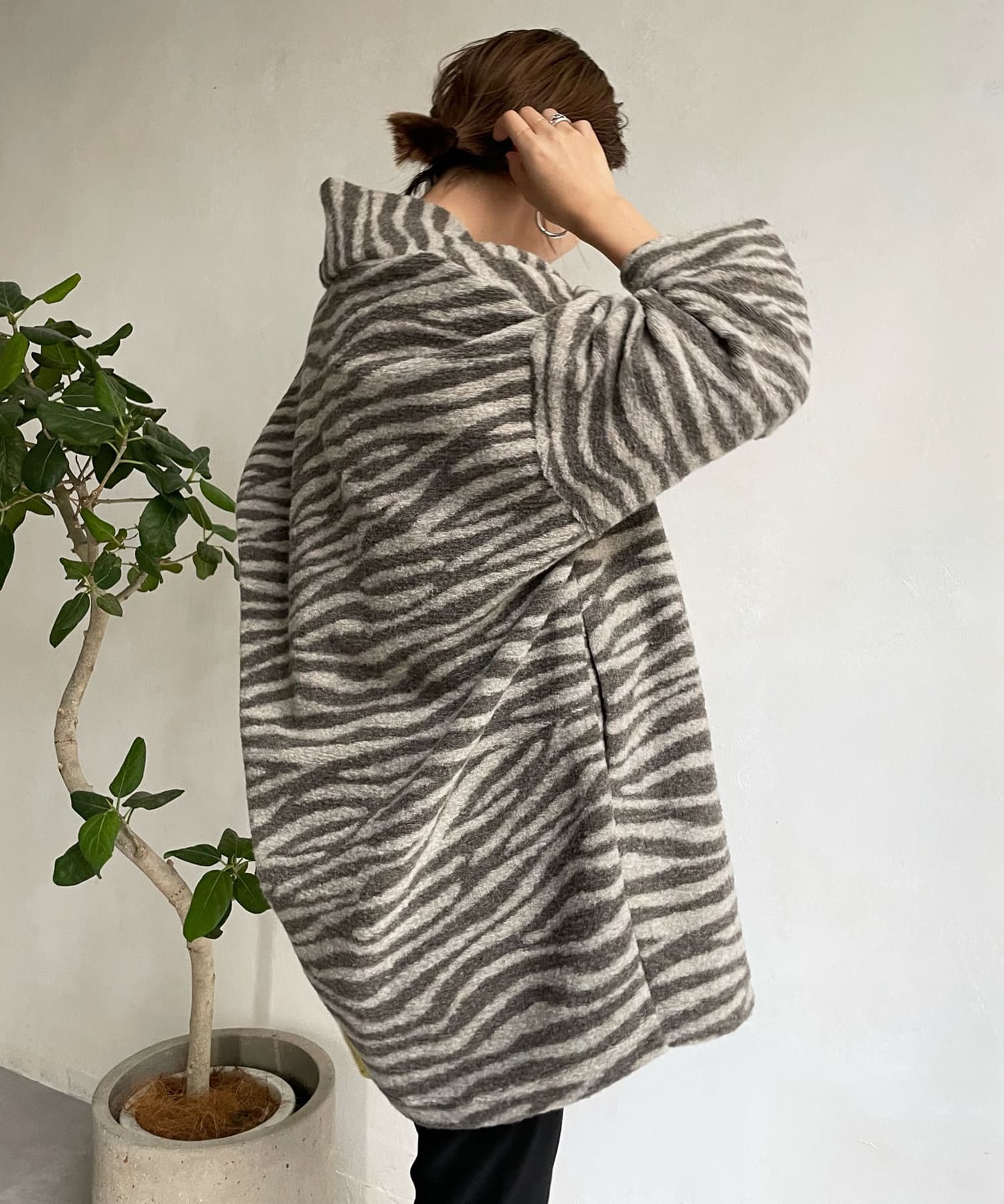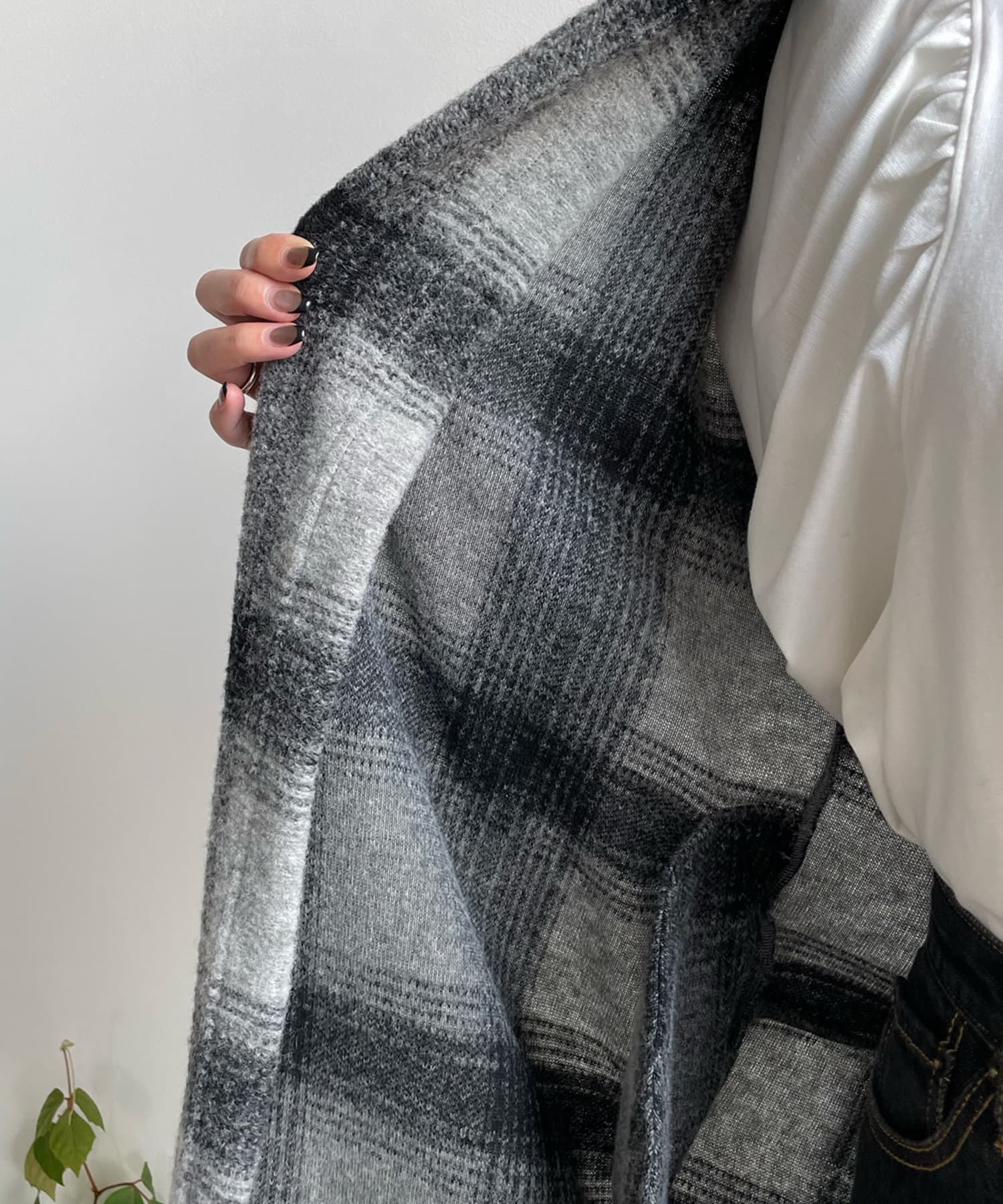ボタンレスの着流しデザインでさっと軽く羽織れるのに、とっても暖かい着心地が魅力です。