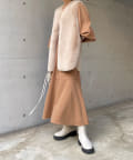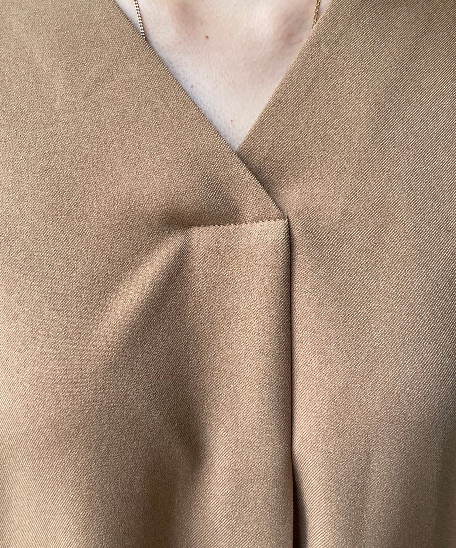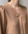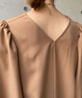 パフスリーブ+Vネックのデザインにすることで、肩のラインをカバーし、顔周りをすっきりと見せてくれるので華奢見え効果抜群。