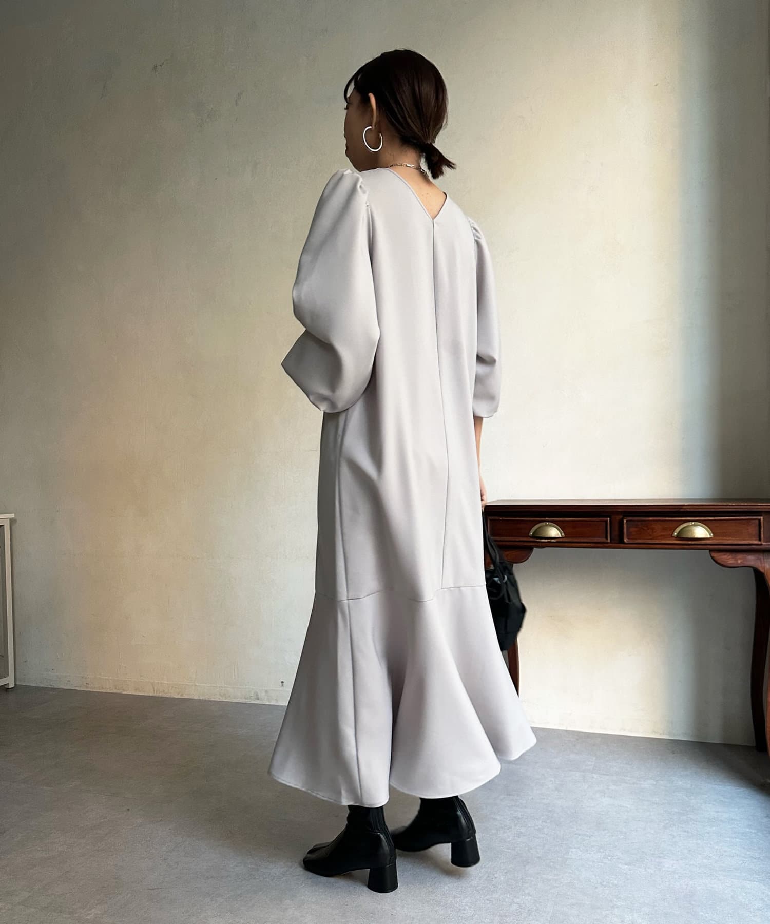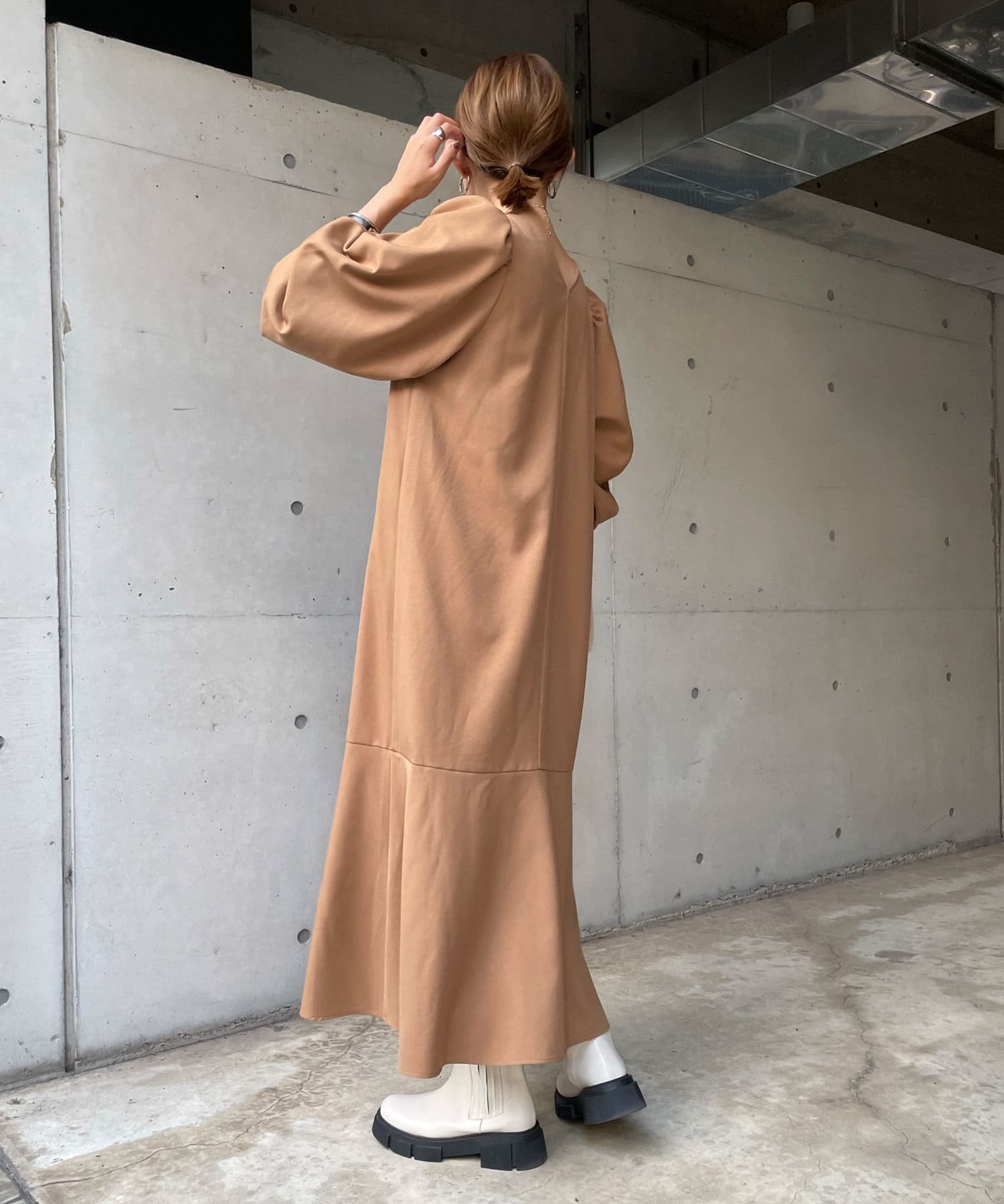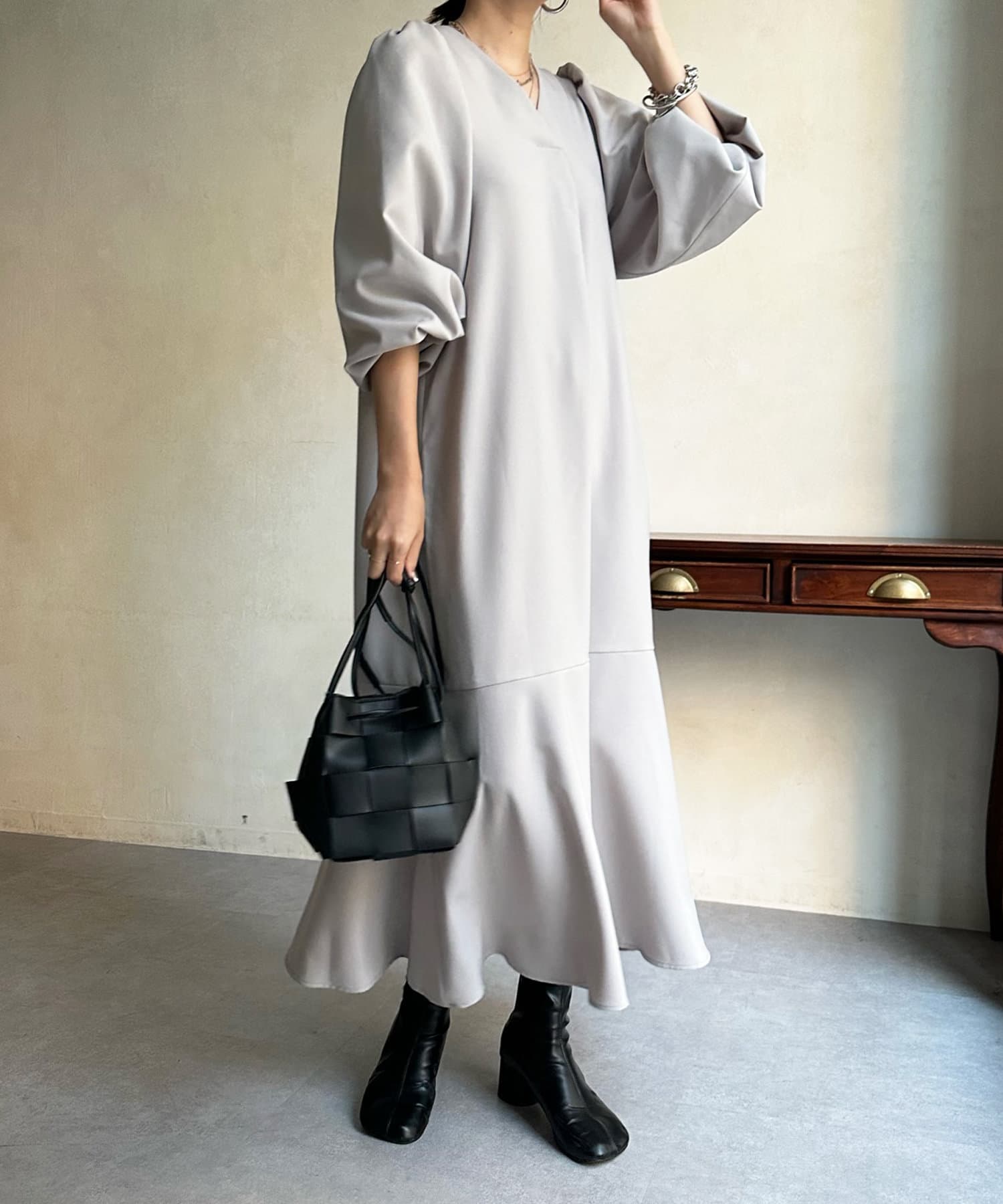 ふんわりと大胆なボリュームスリーブが存在感抜群のワンピース。