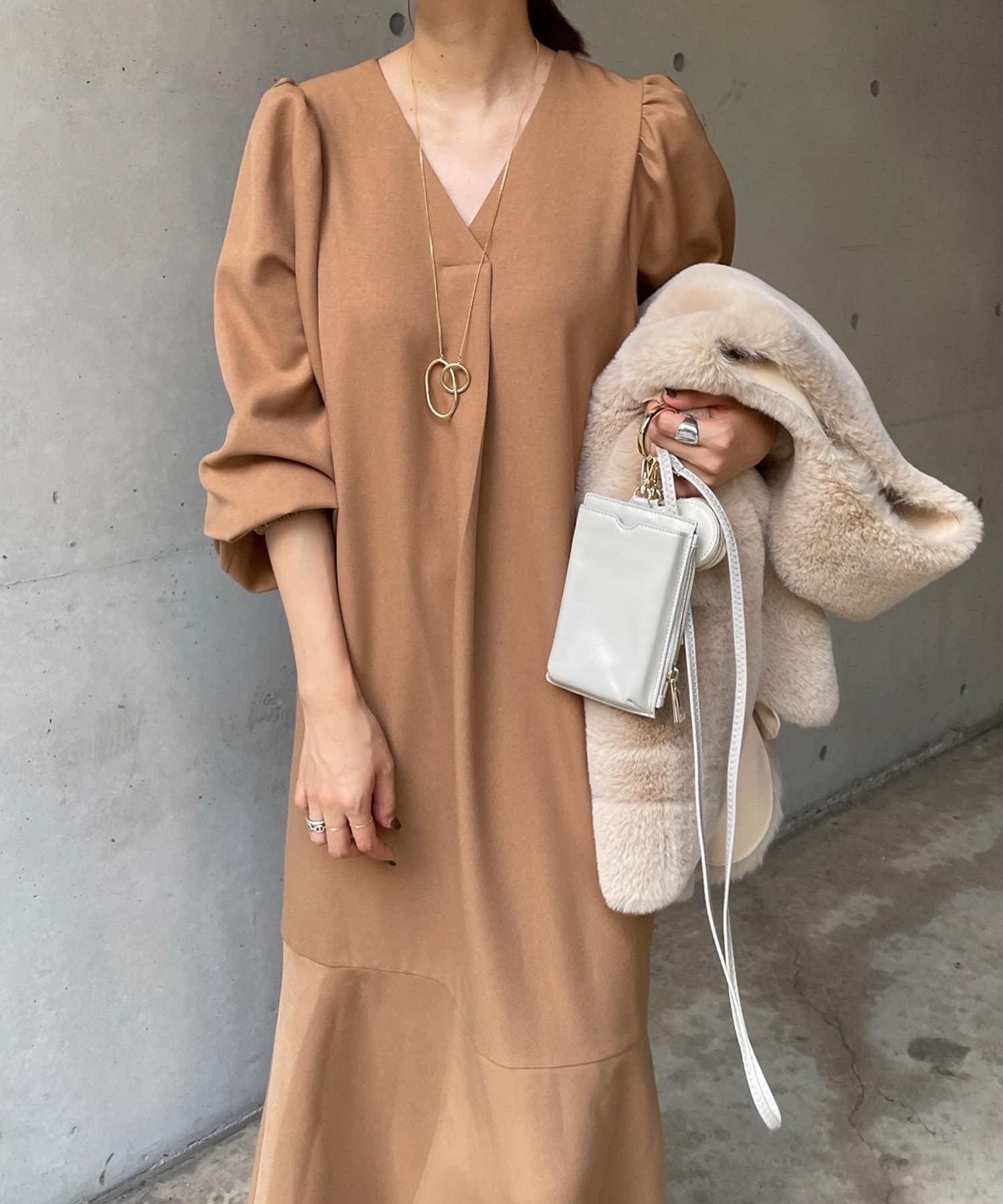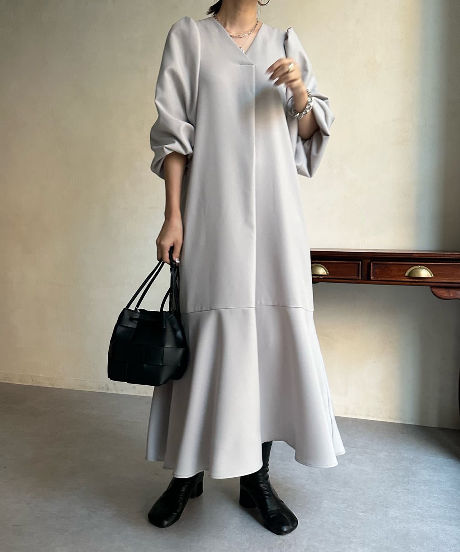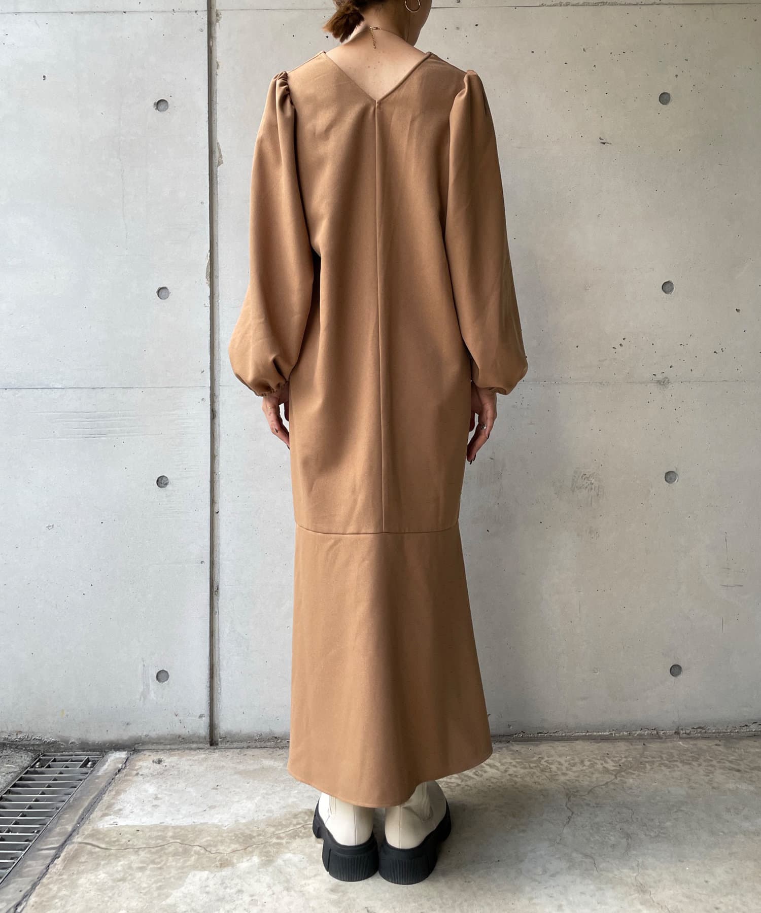 ふんわりと大胆なボリュームスリーブが存在感抜群のワンピース。