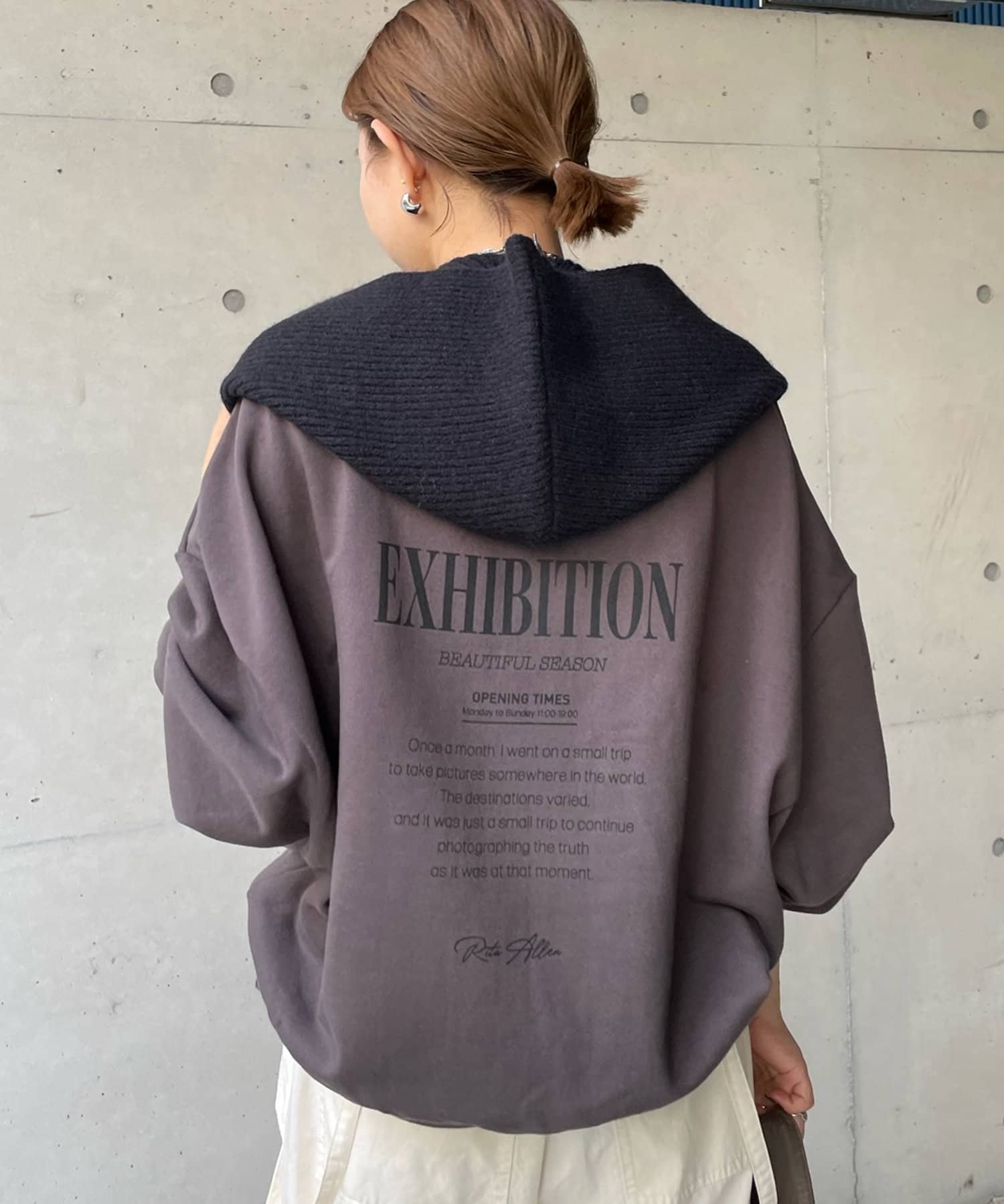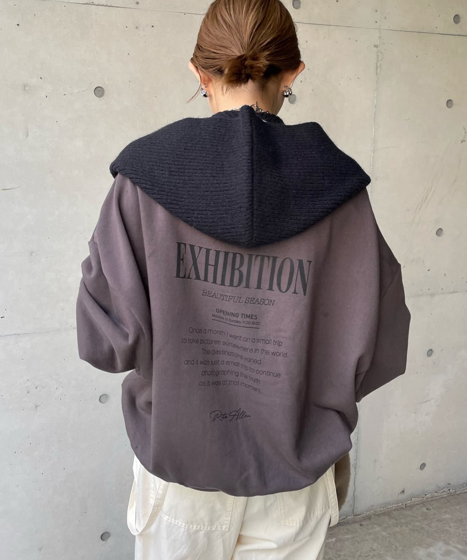 フーディーを着ているかのような着こなしが楽しめるマフラー。