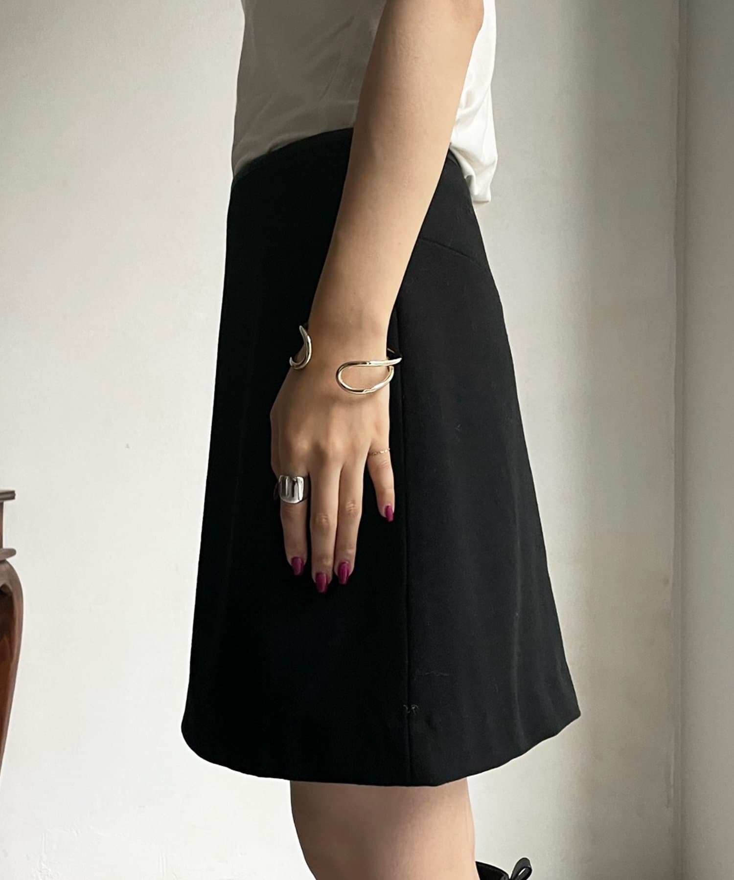 短すぎない絶妙なひざ上丈で大人らしく決まり、台形のシルエットはウエスト回りをすっきりと綺麗に見せてくれます。