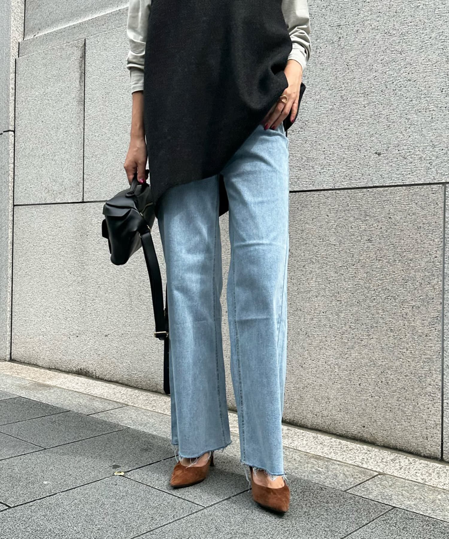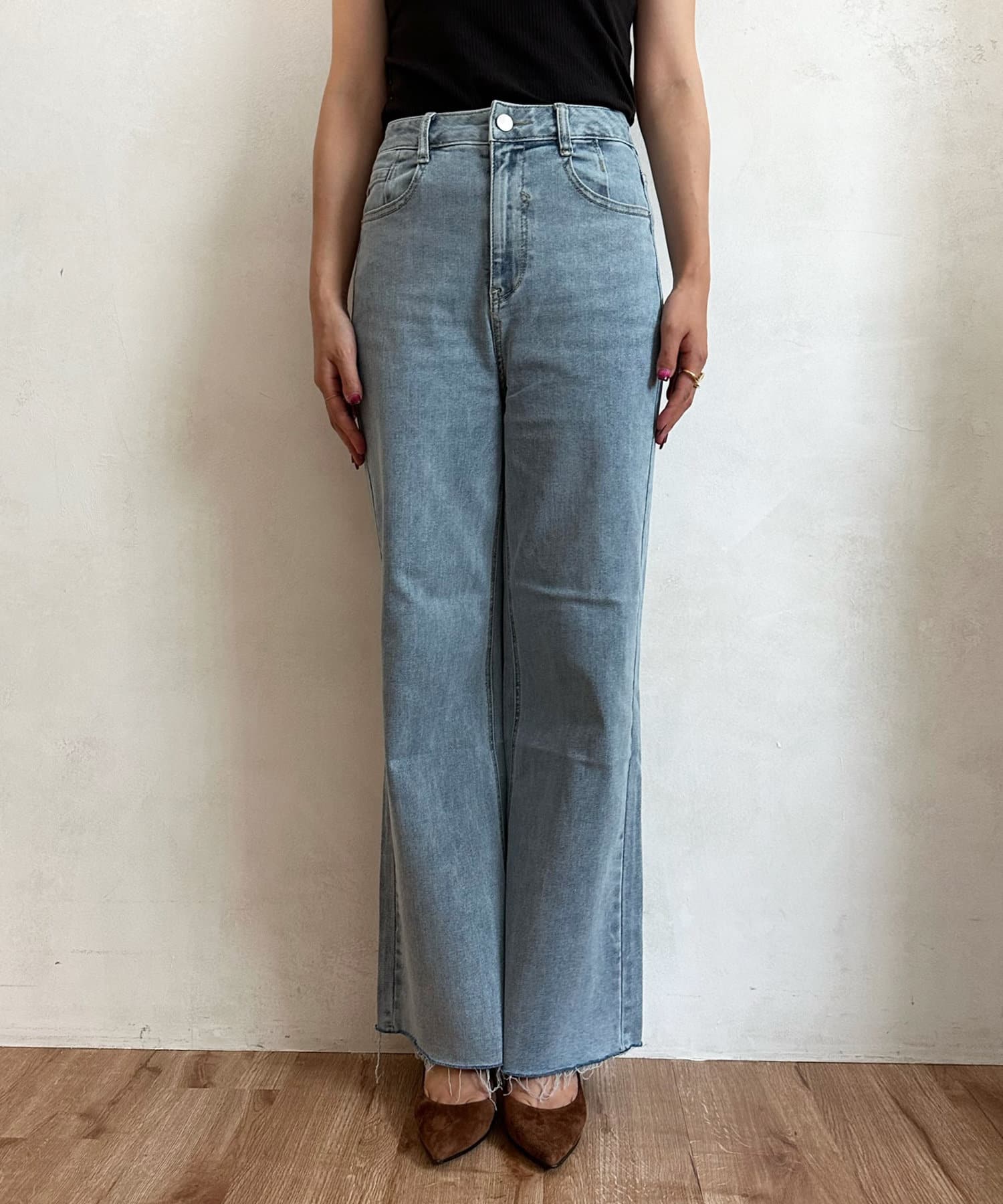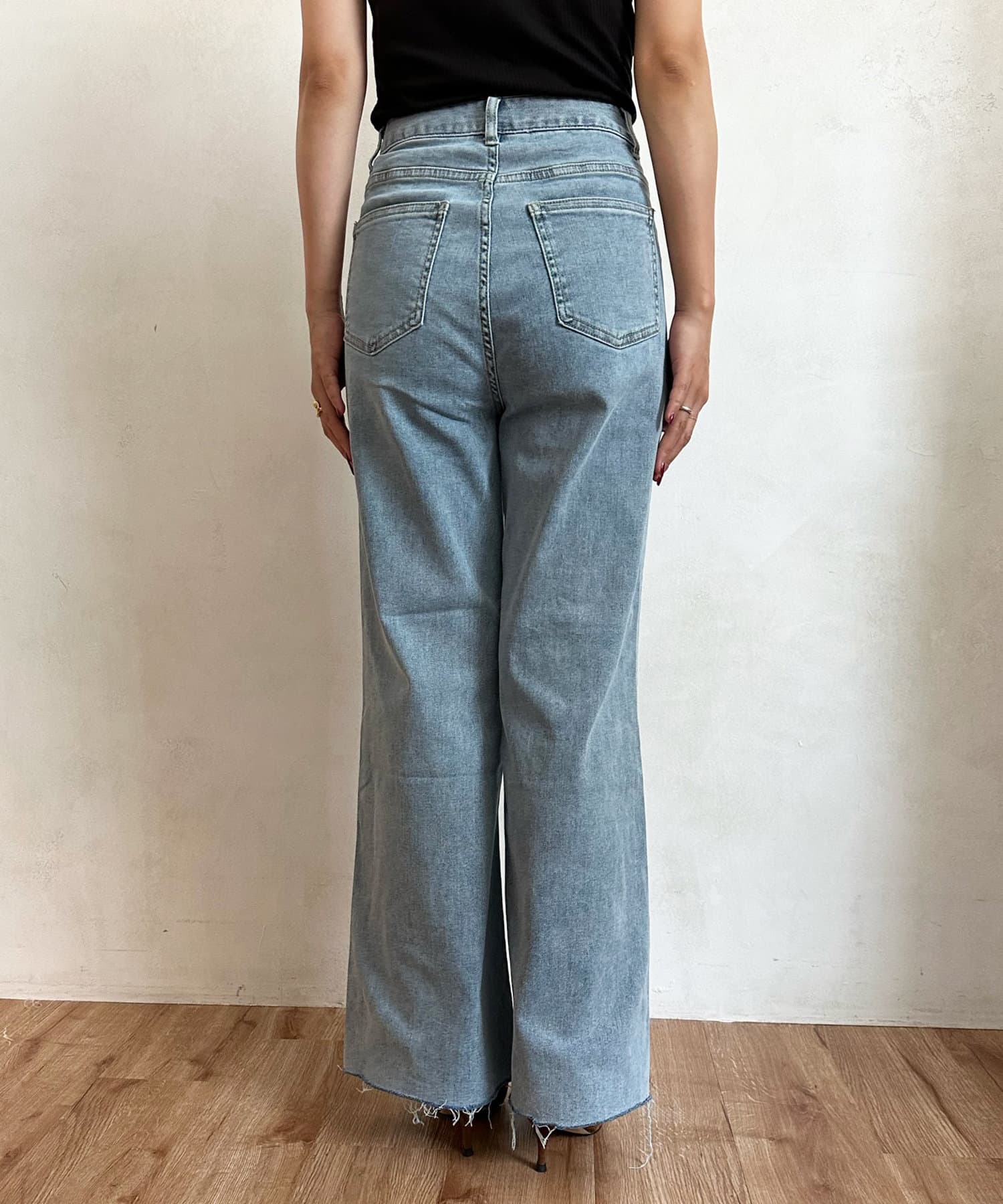 裾にカットオフを施し、履くだけで抜け感+サマ見えが叶うデニムパンツ。