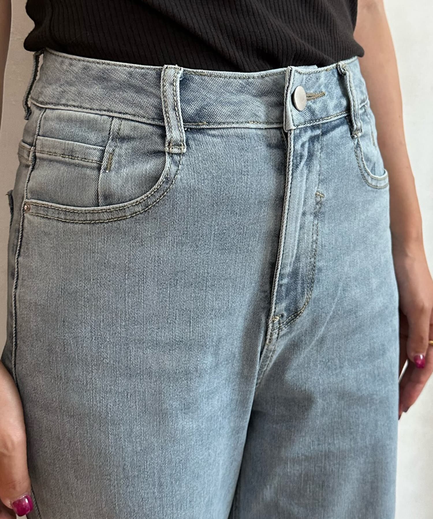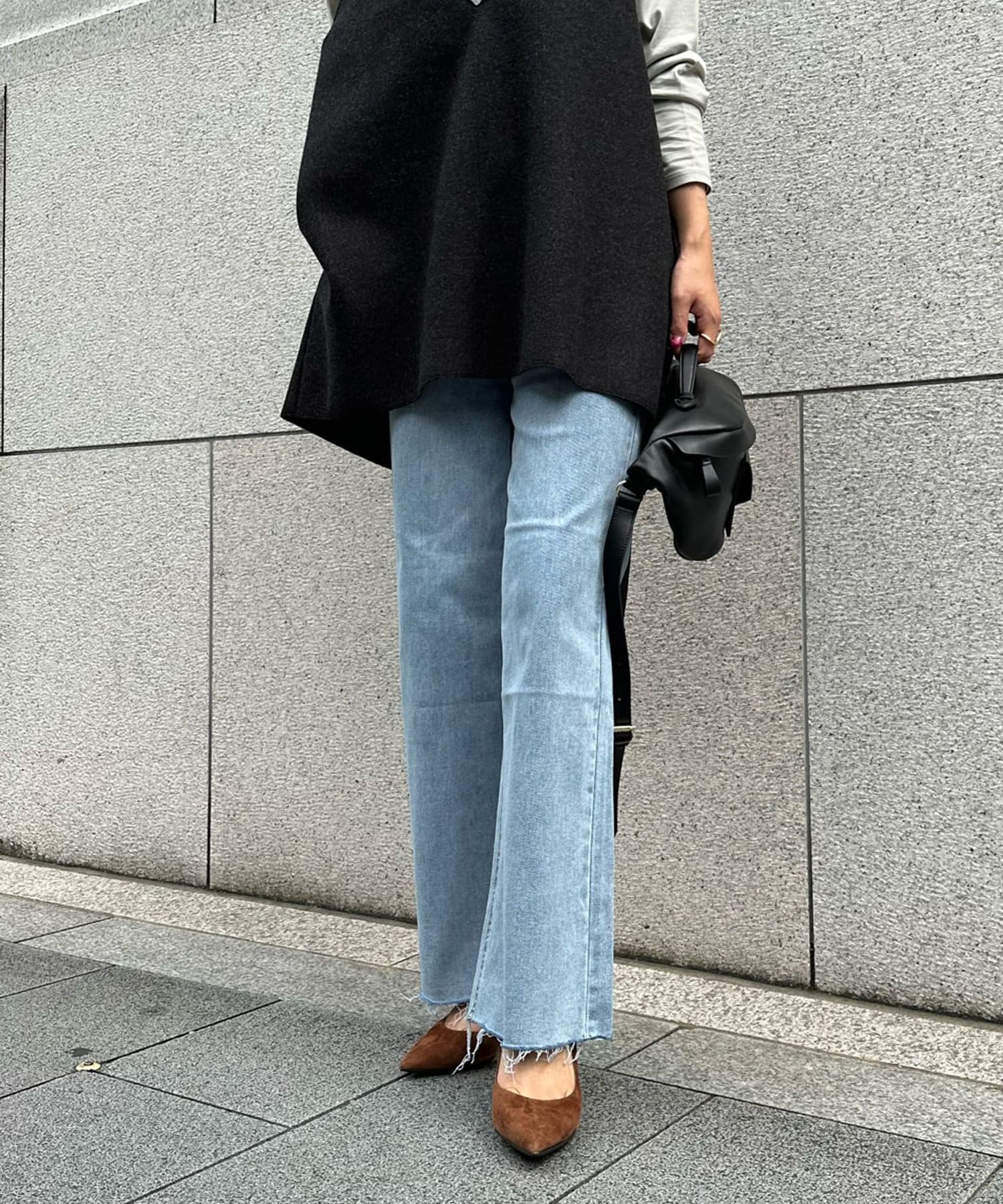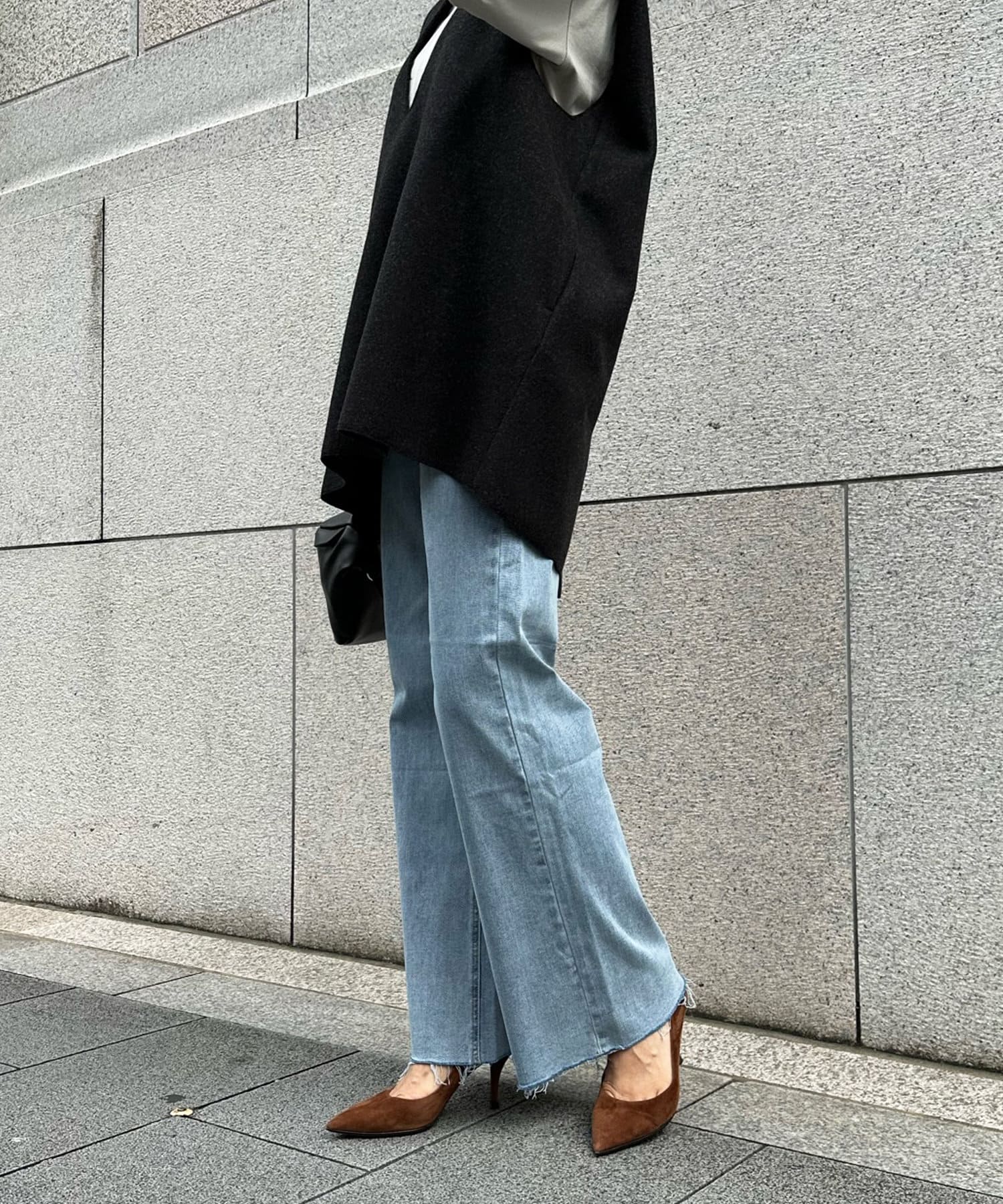 裾にカットオフを施し、履くだけで抜け感+サマ見えが叶うデニムパンツ。
