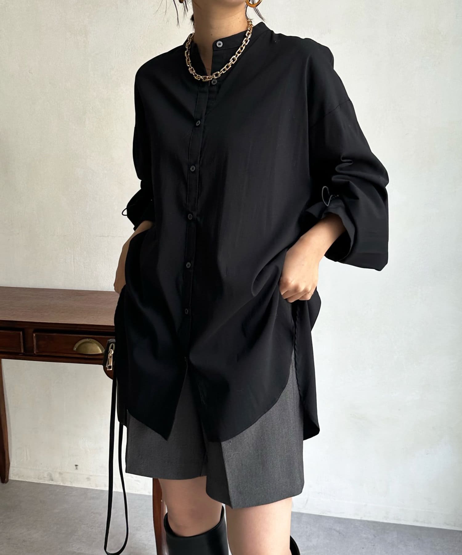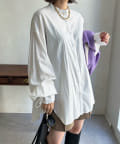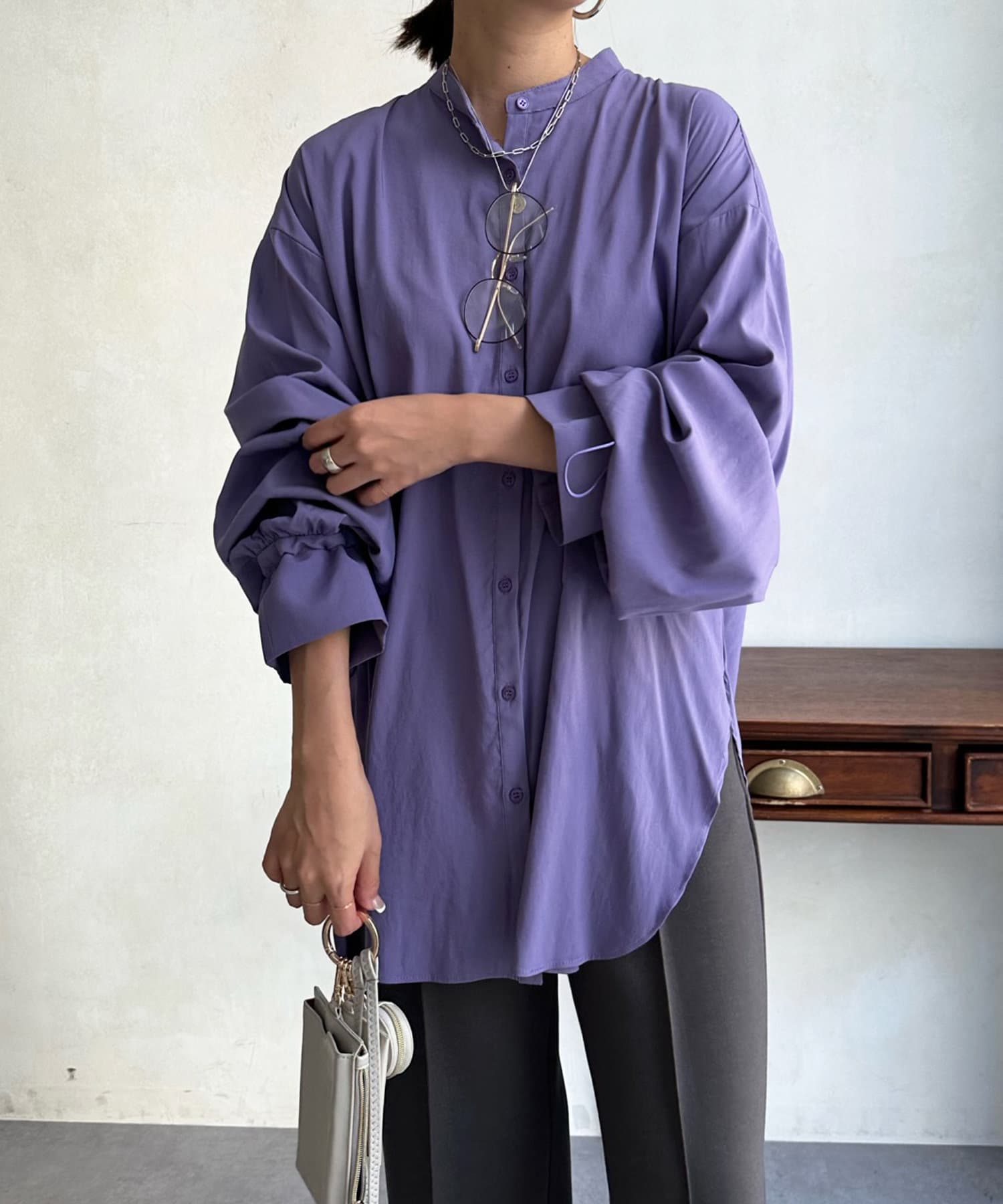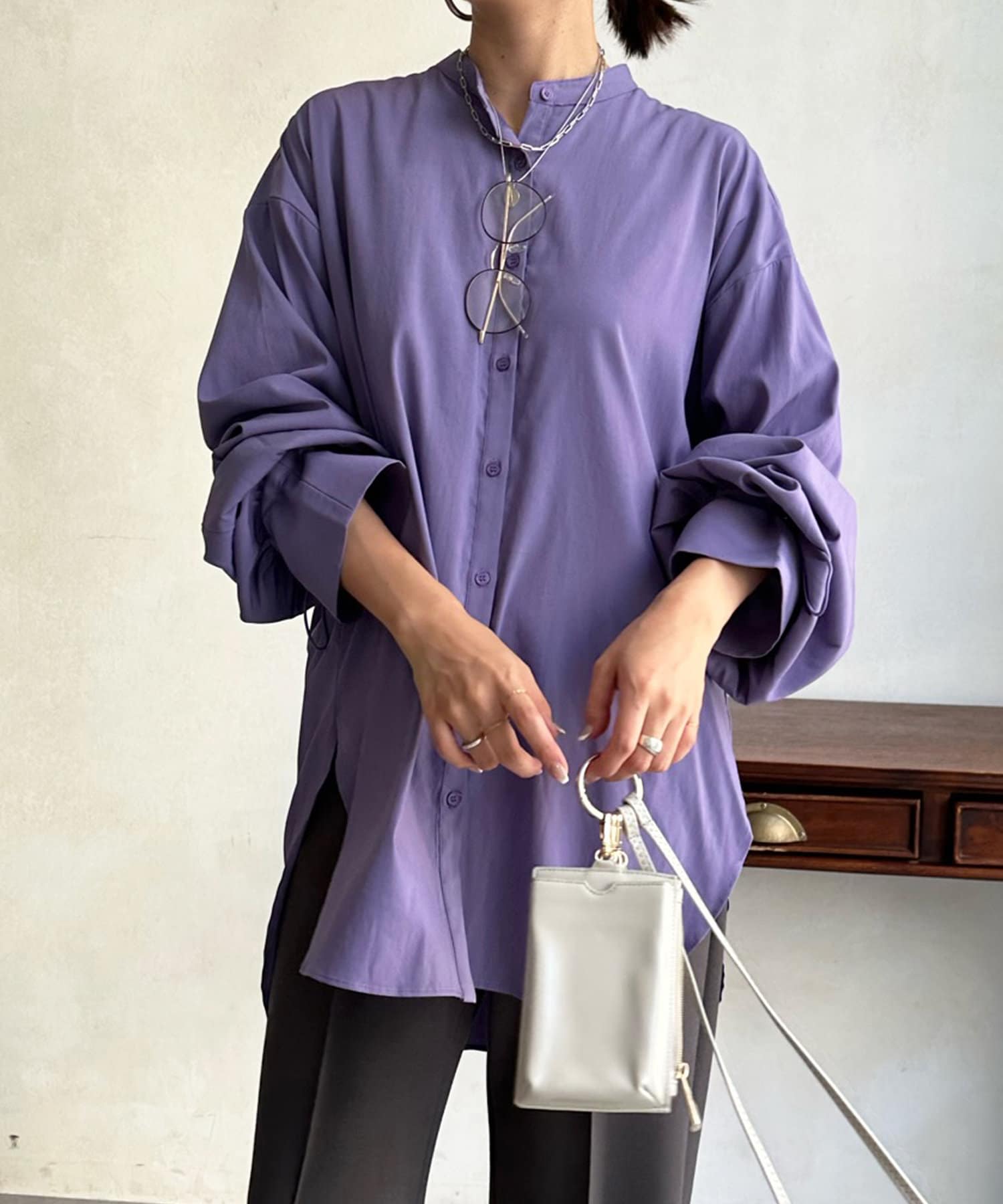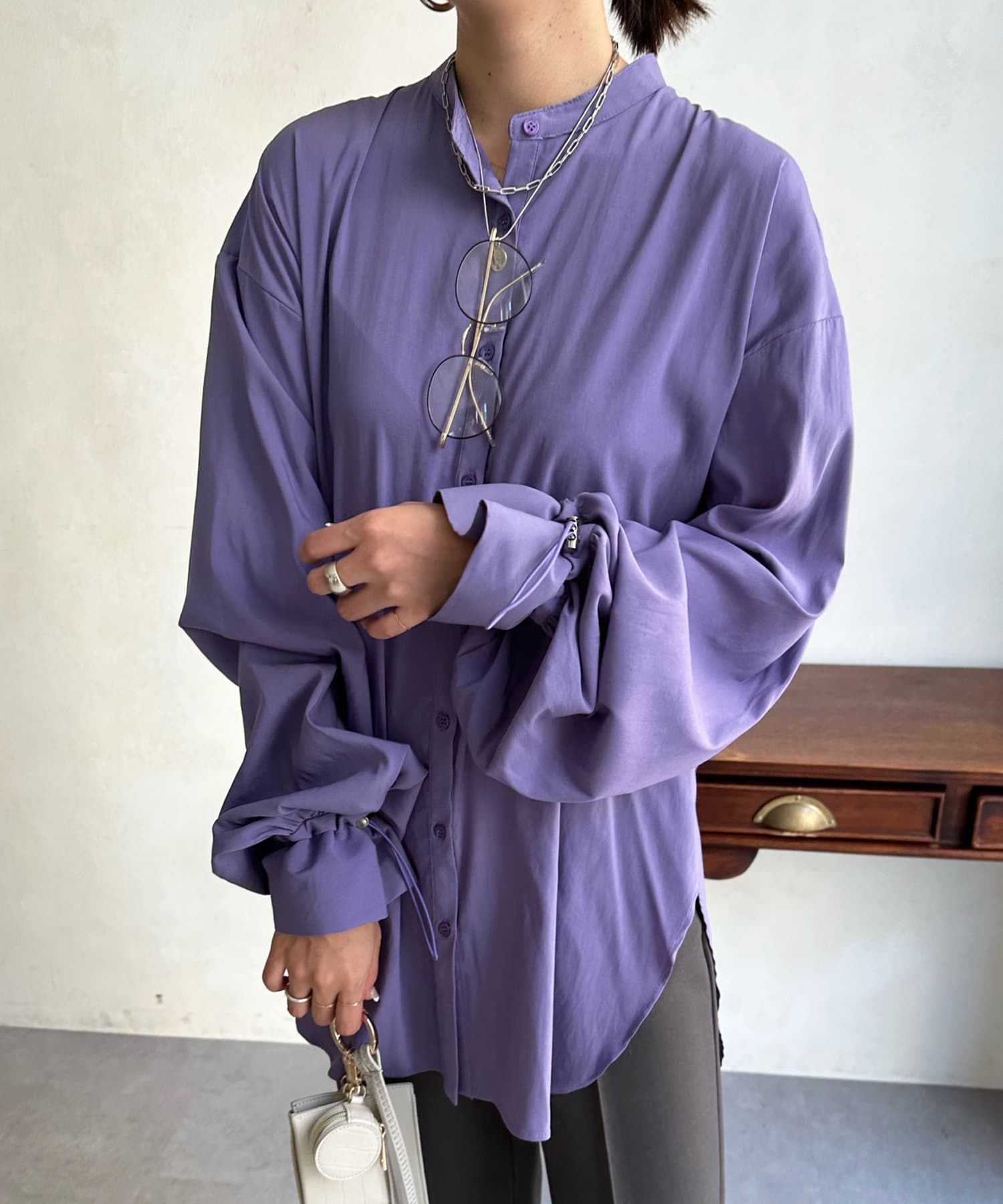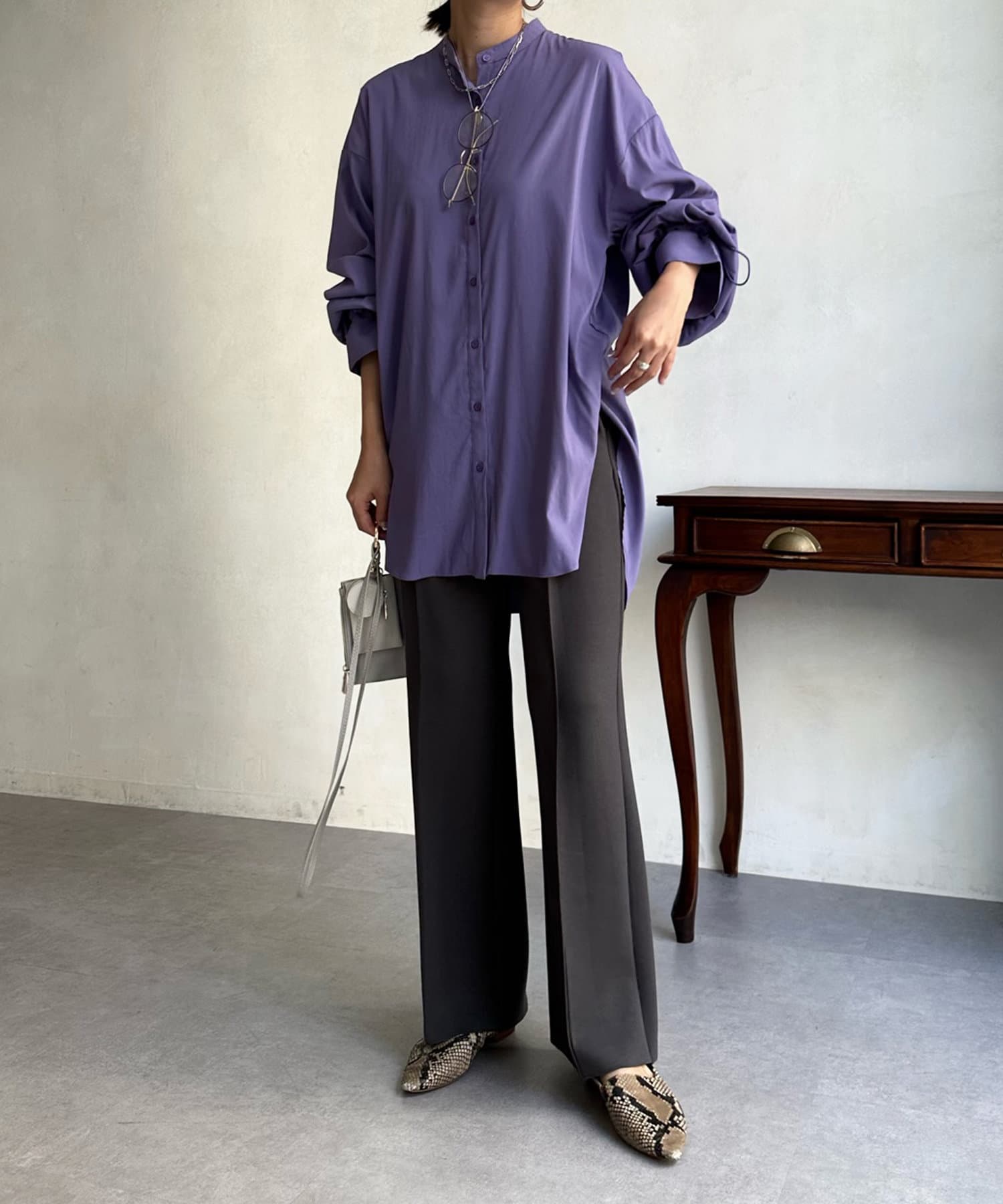 袖口にドロストコードのデザインをプラスし、メリハリのある袖シルエットがポイントのブラウス。
