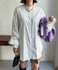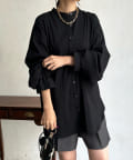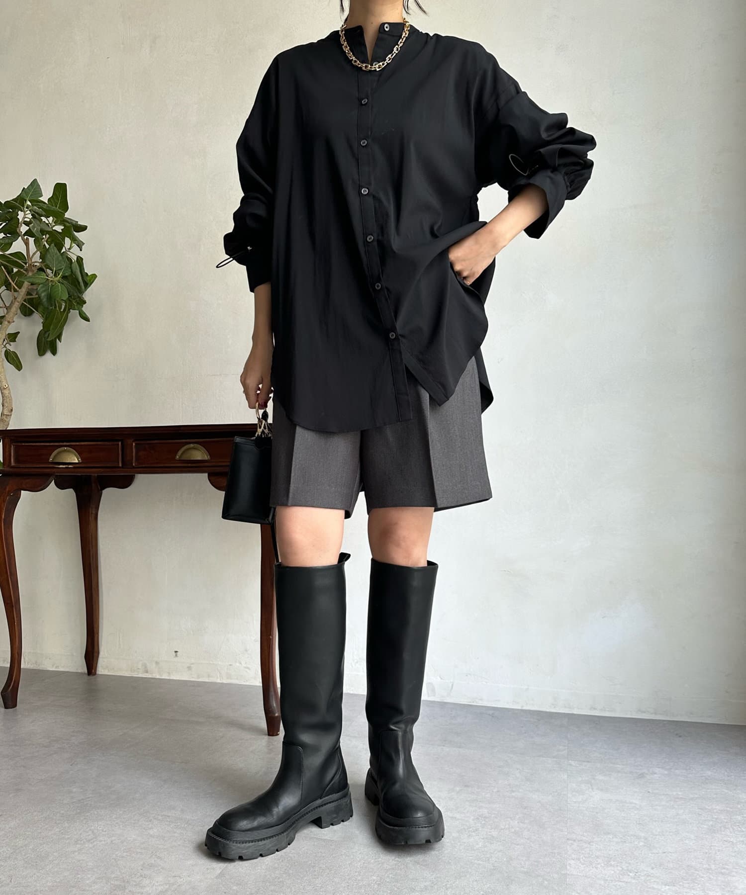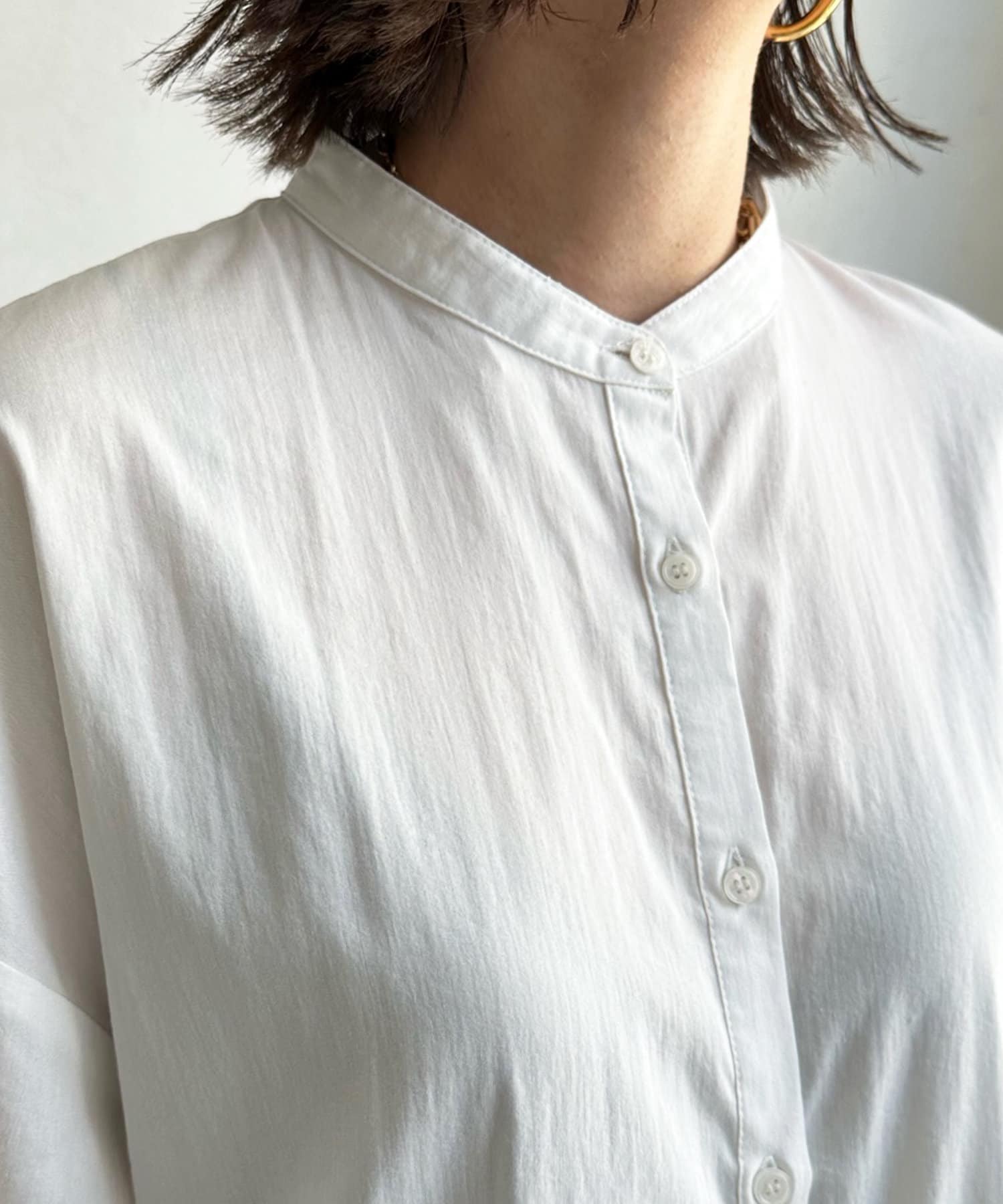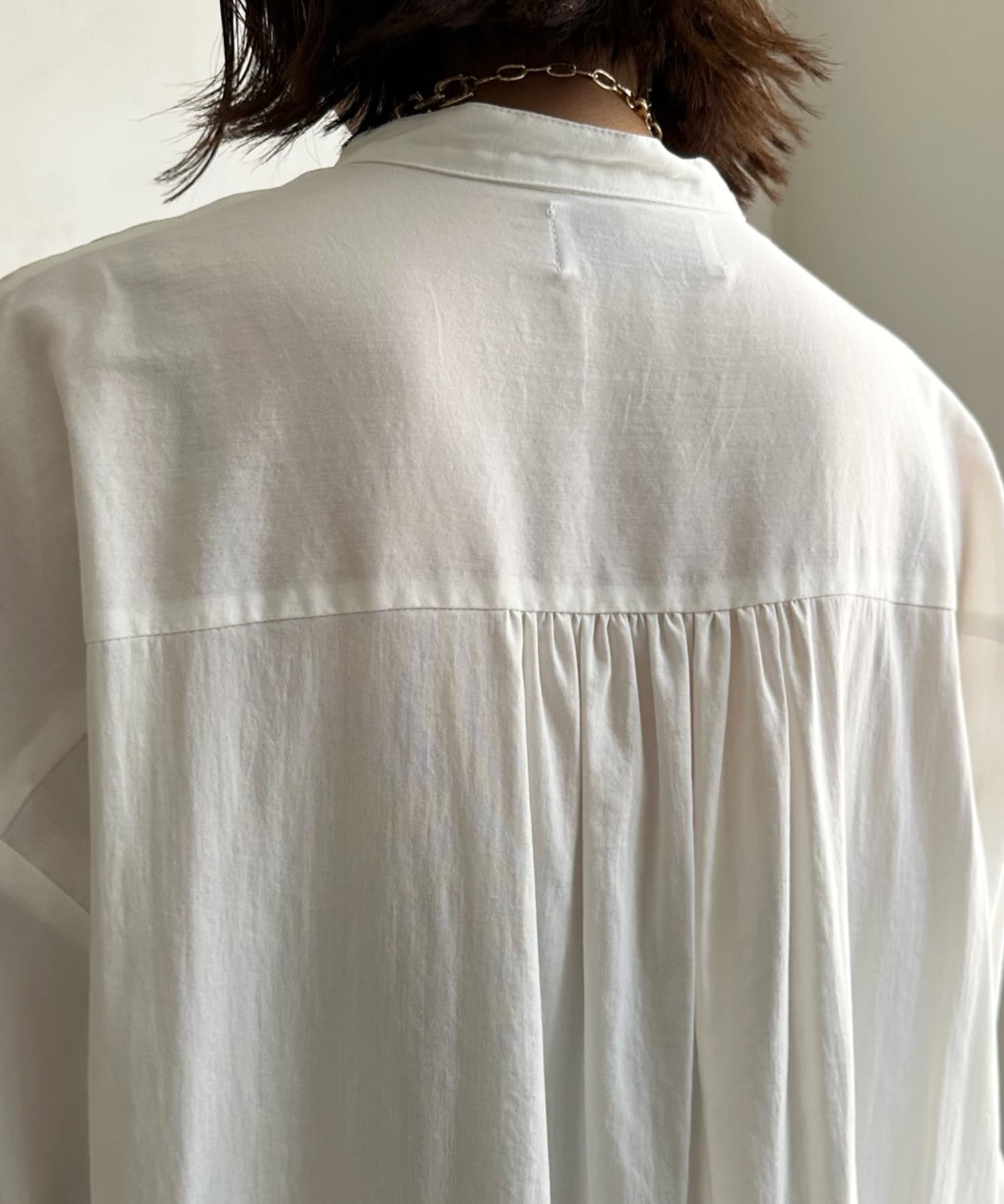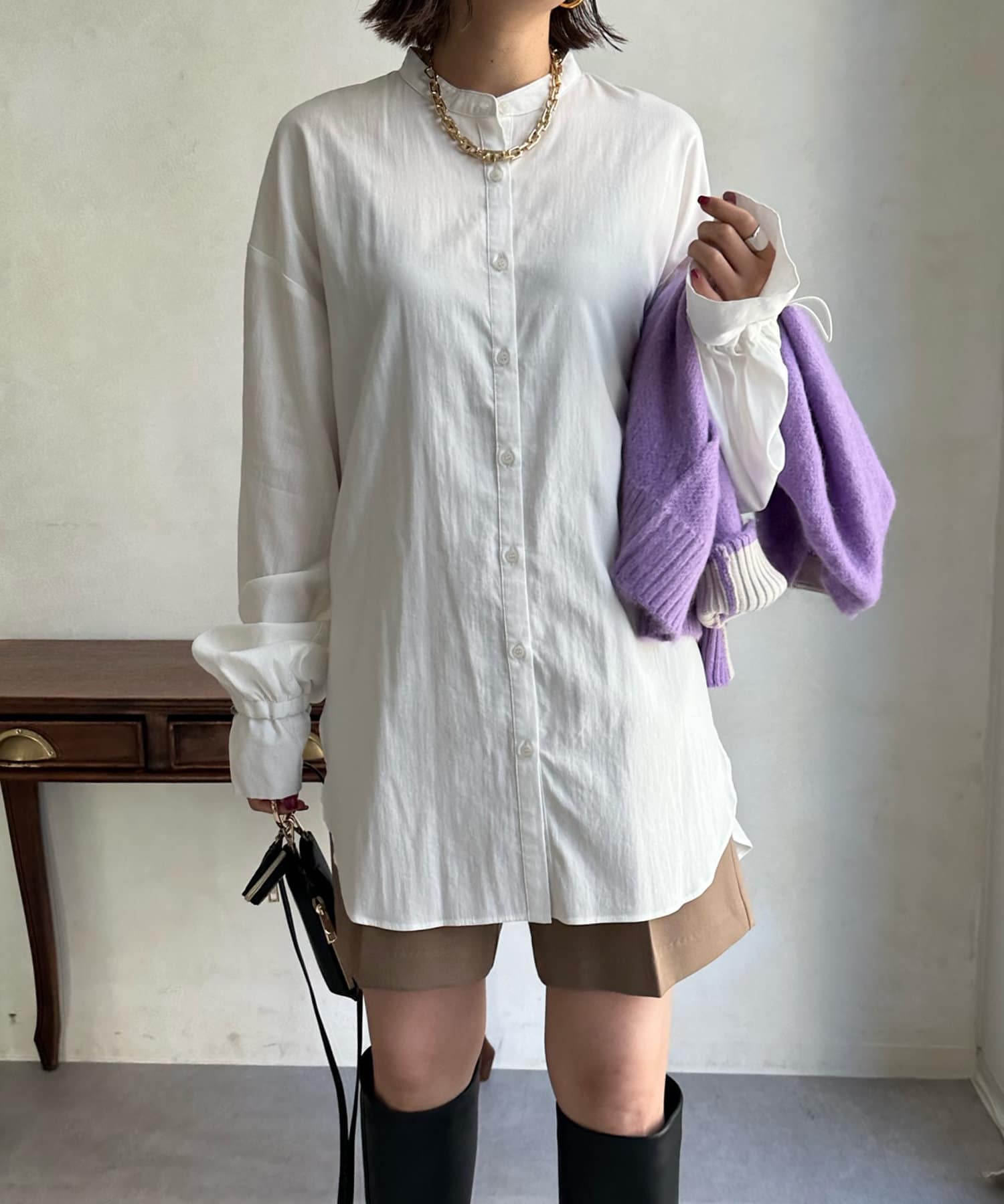 袖口にドロストコードのデザインをプラスし、メリハリのある袖シルエットがポイントのブラウス。