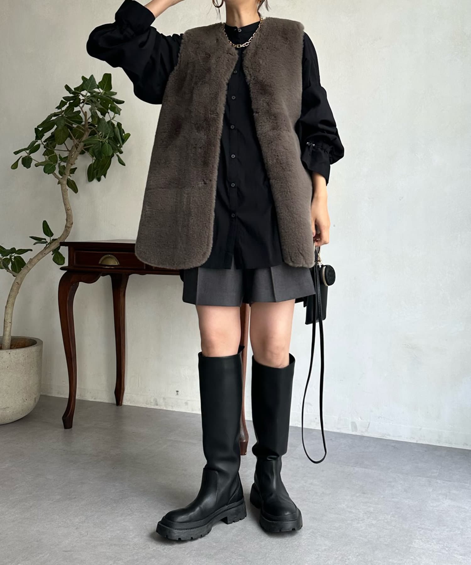 ヒップも隠れる前後差のある丈感なので、体系カバーもばっちり。