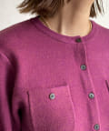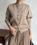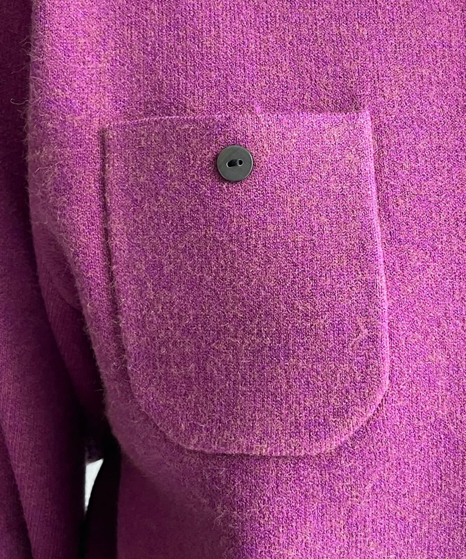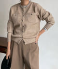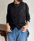 スタンダードなシルエットは、羽織りとしてもボタンを閉てプルオーバーとしても着用でき、1枚で存在感のある装いに仕上がります。
