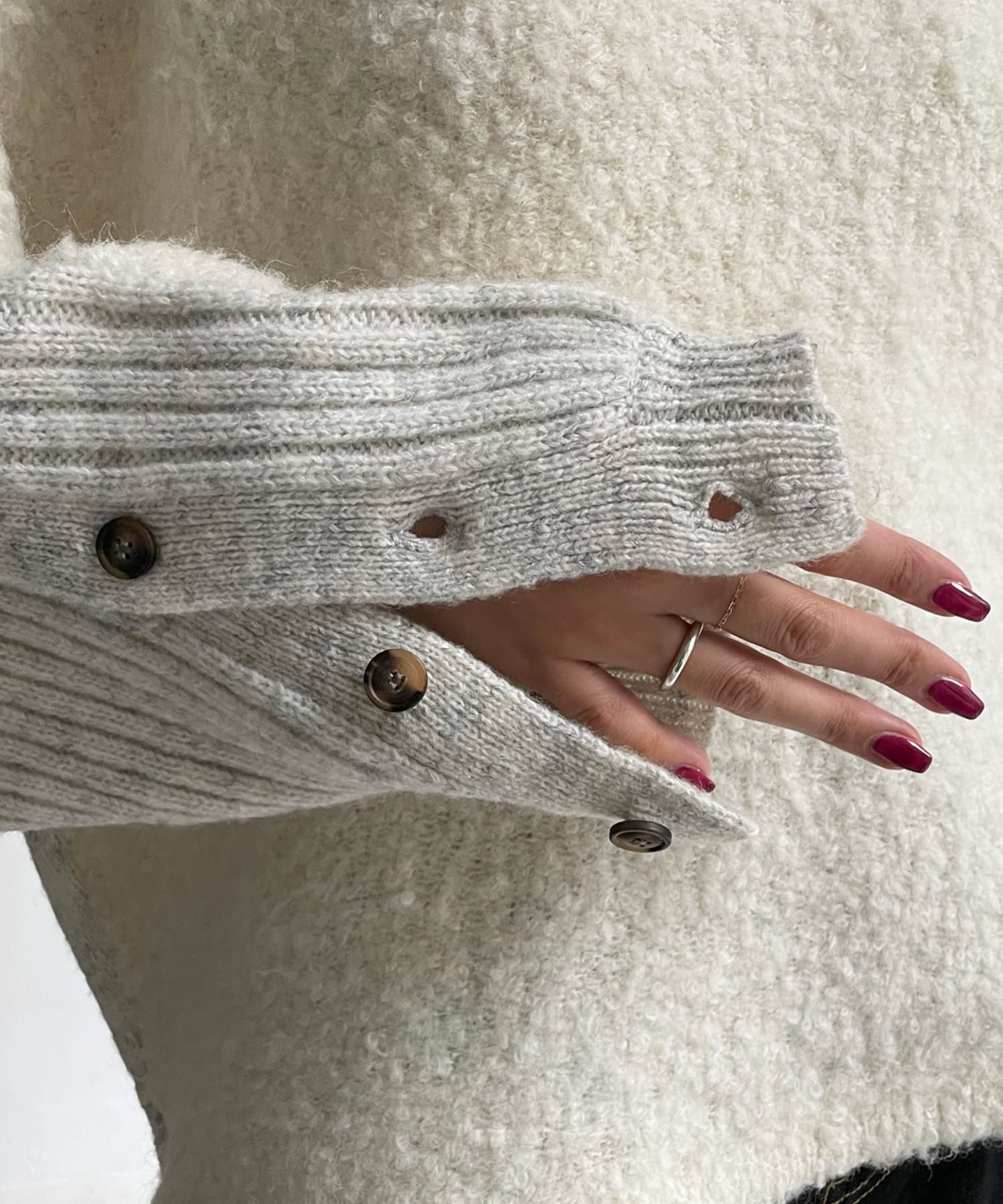 手放せないリングヤーンニット