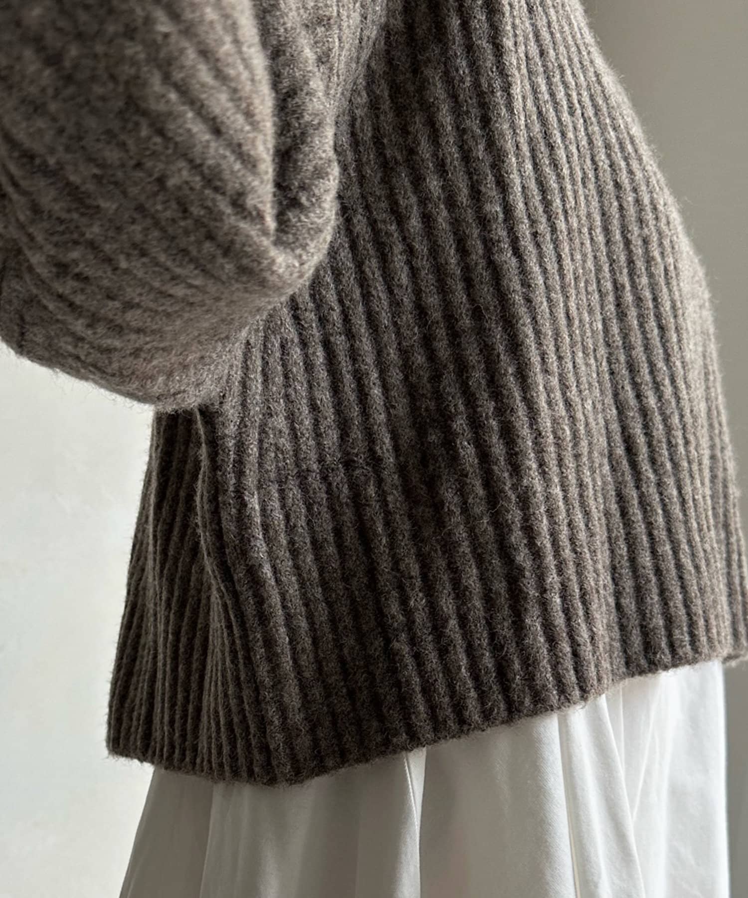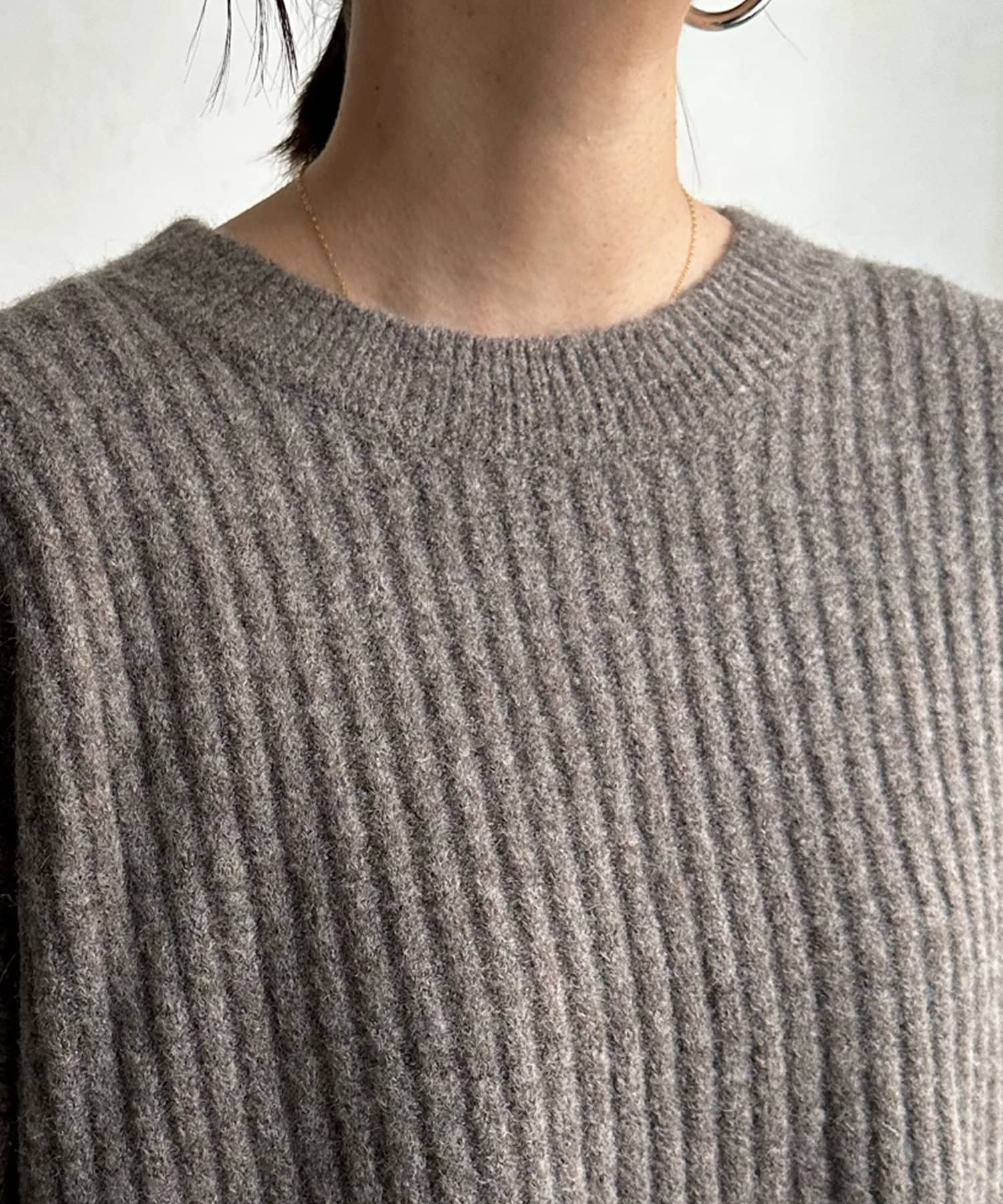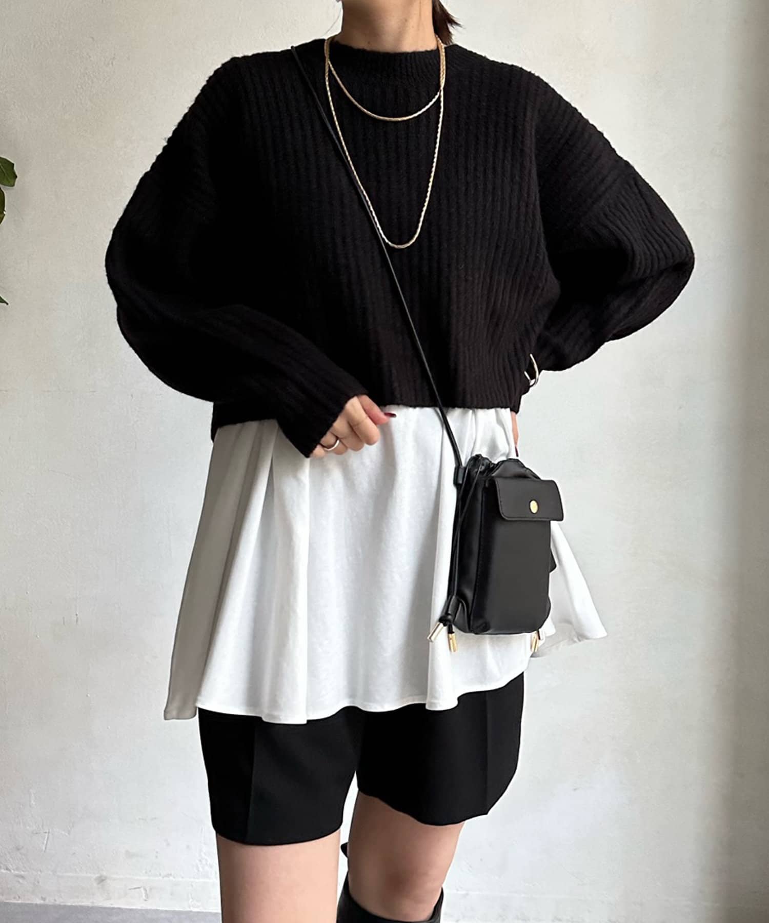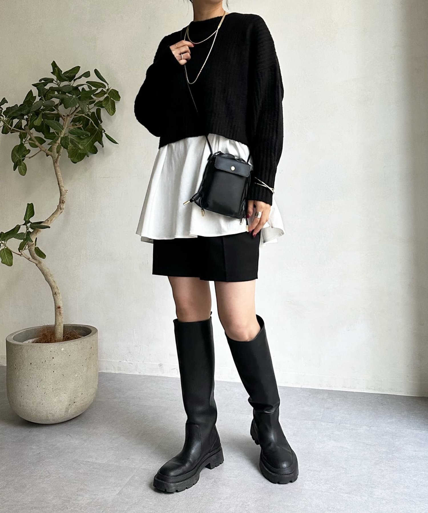 ショート丈のニットはサマ見えするトレンド感がありつつ、ヤクブレンドの素材で暖かさもキープ。